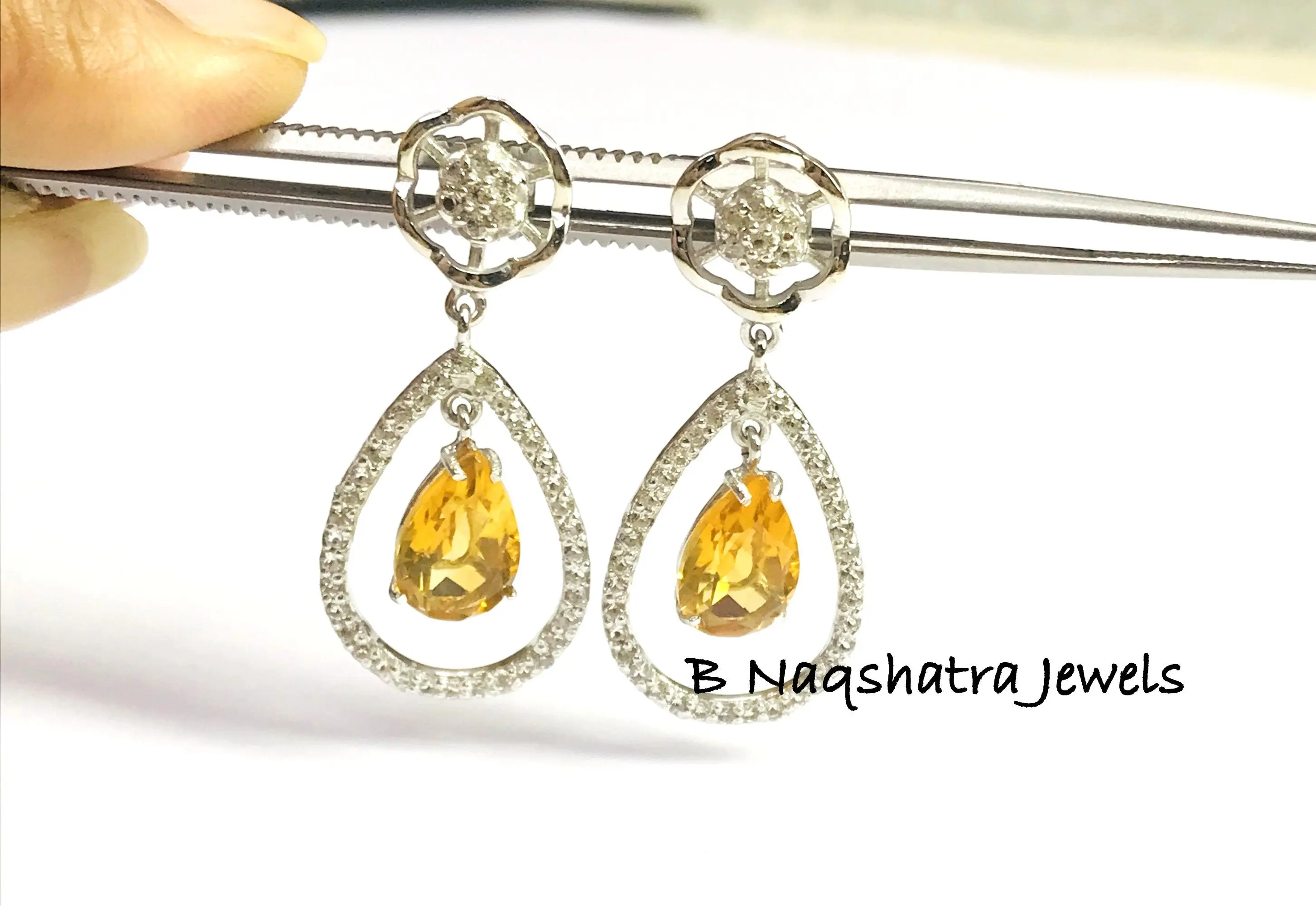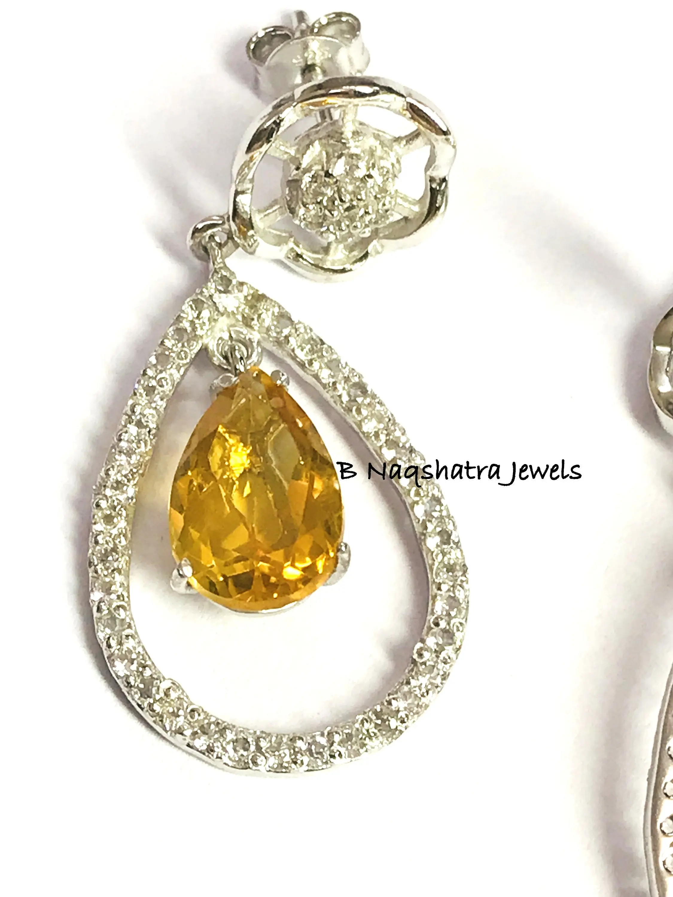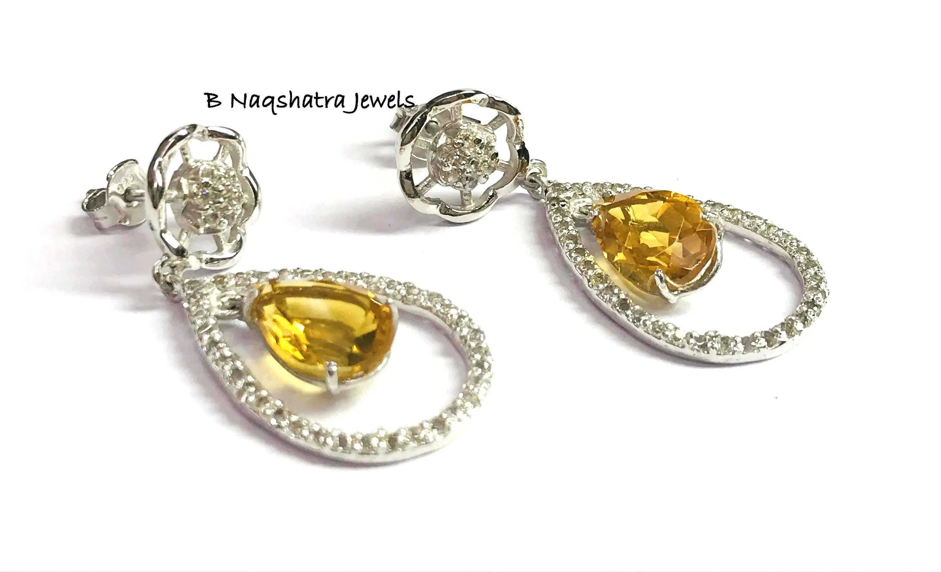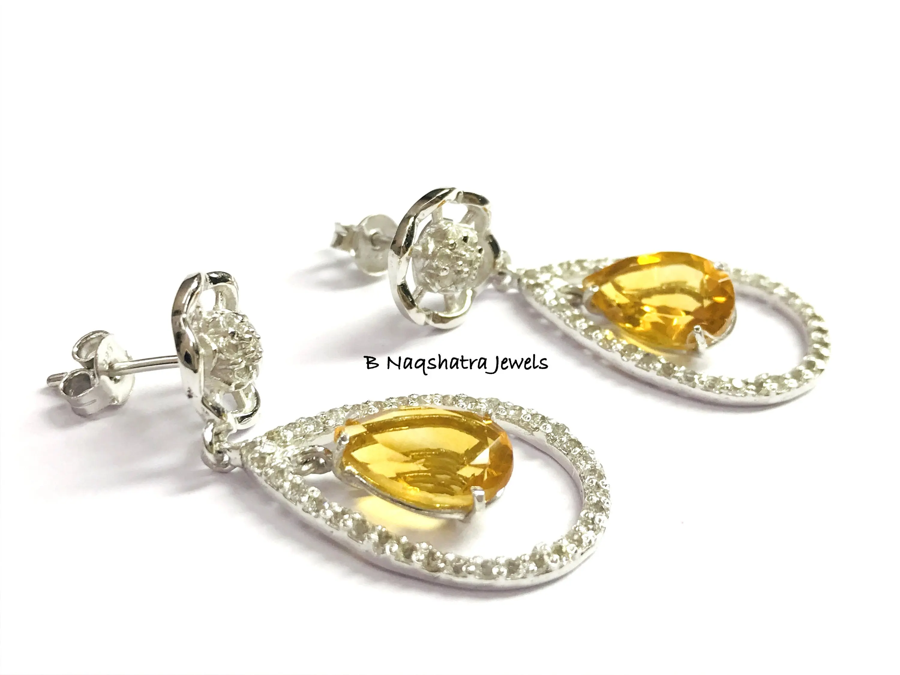 NATURAL CITRINE DANGLE Earrings ,925 sterling silver ,November birthstone,Yellow earrings gift for loved ones,Women Earrings,Evening wear,Party wear