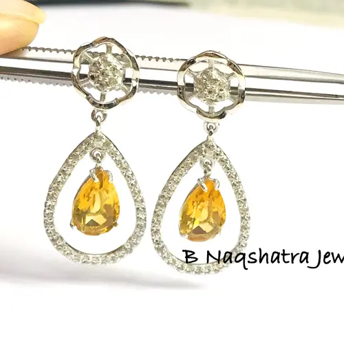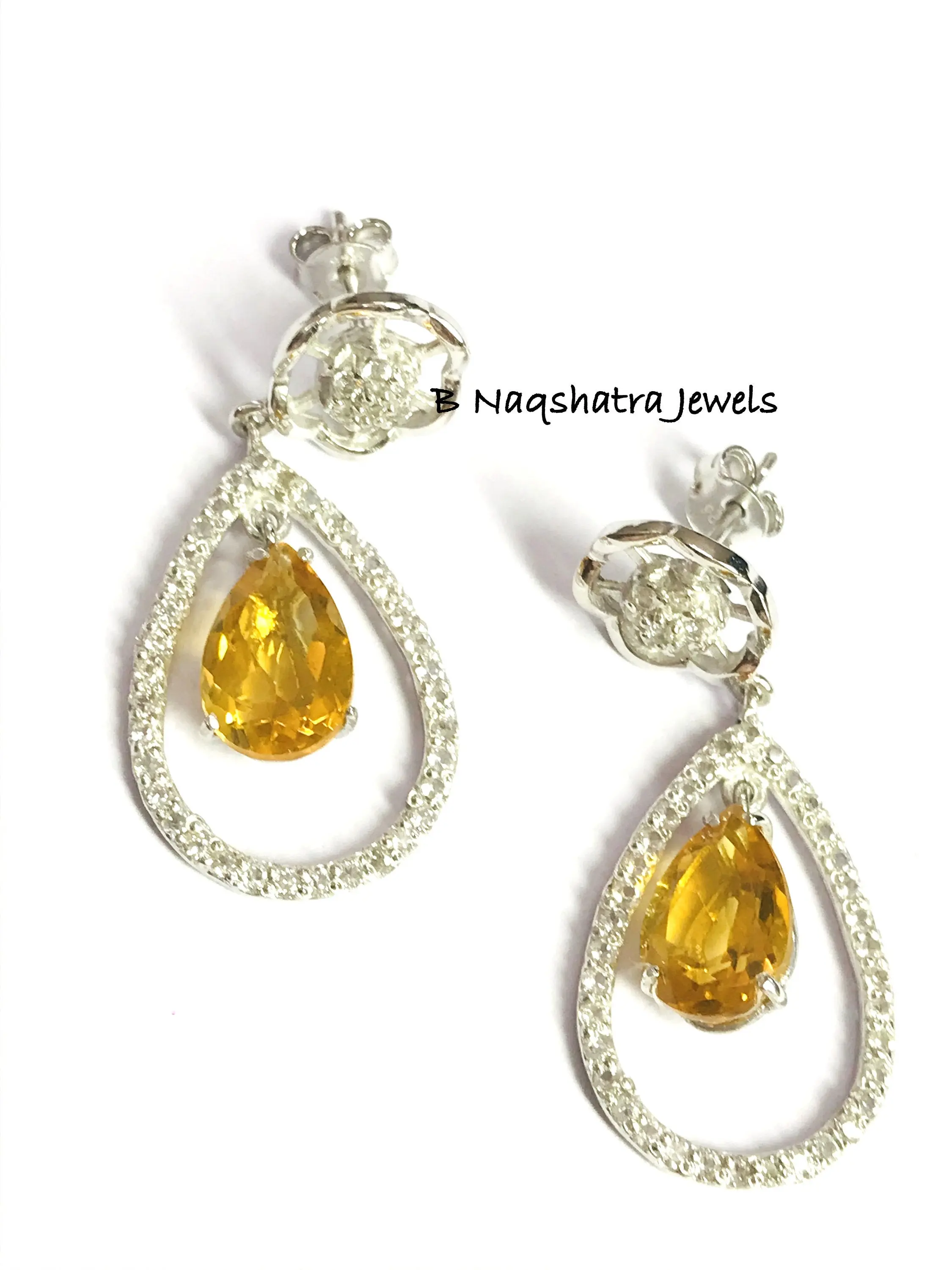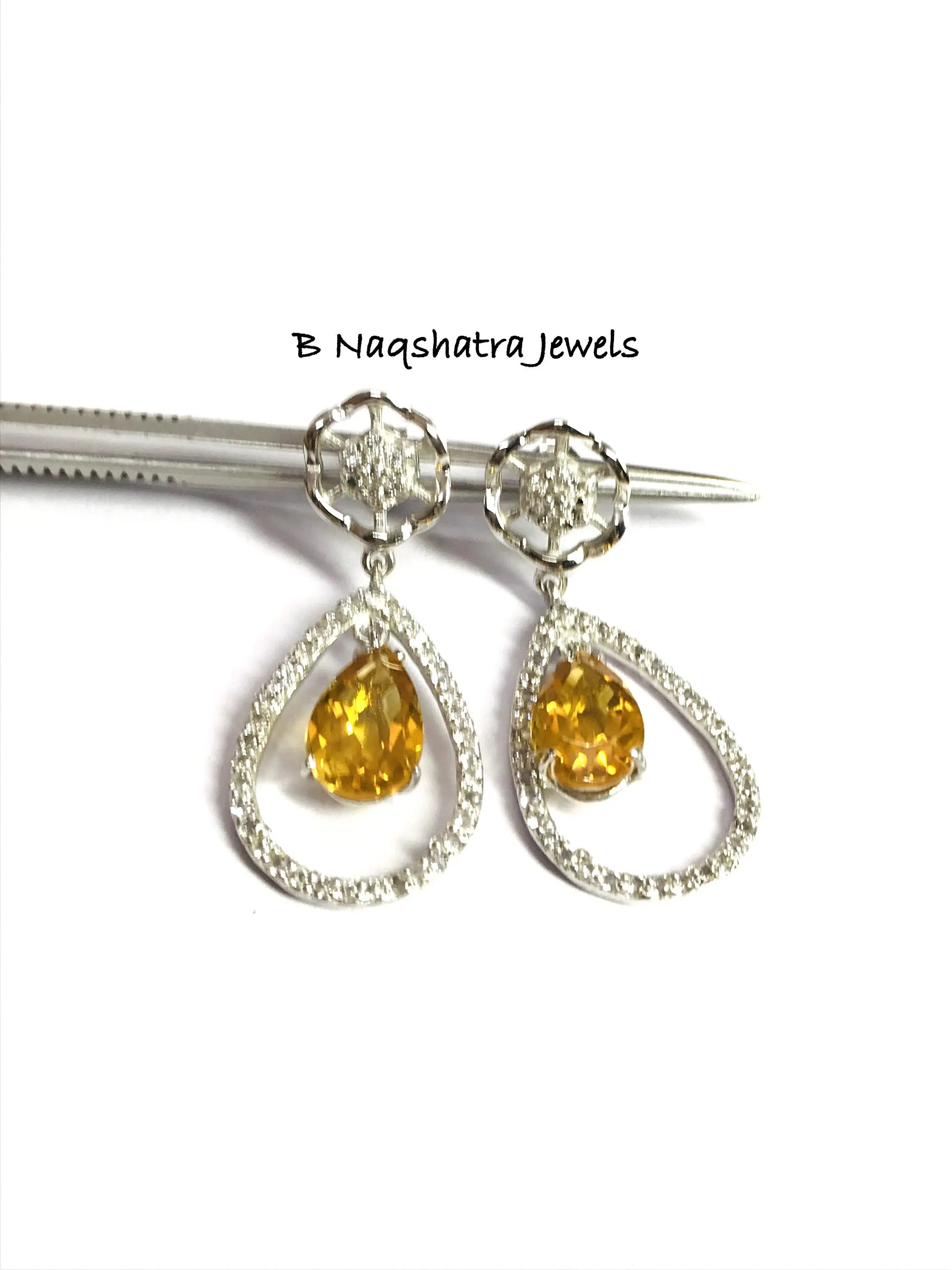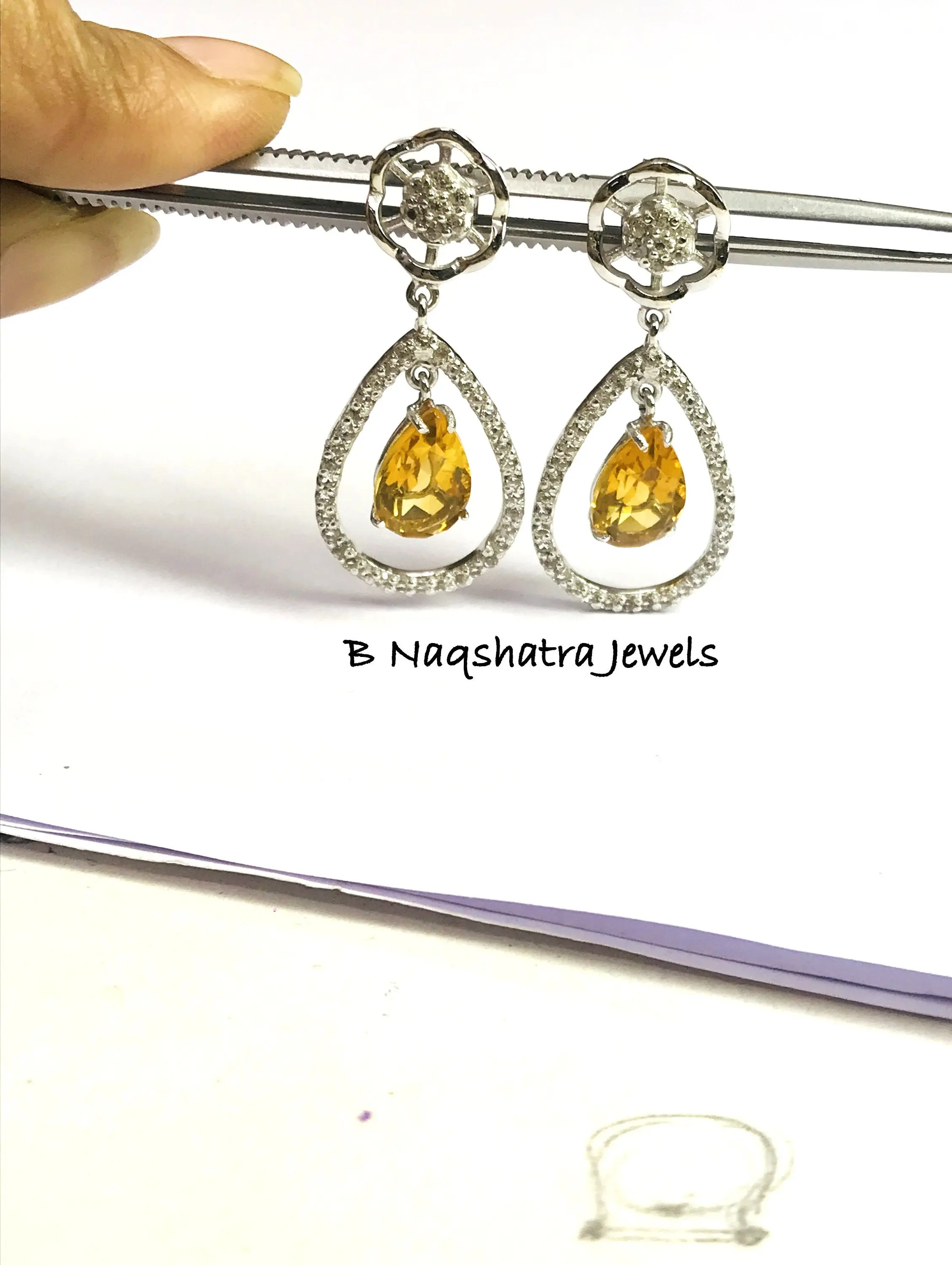 NATURAL CITRINE DANGLE Earrings ,925 sterling silver ,November birthstone,Yellow earrings gift for loved ones,Women Earrings,Evening wear,Party wear