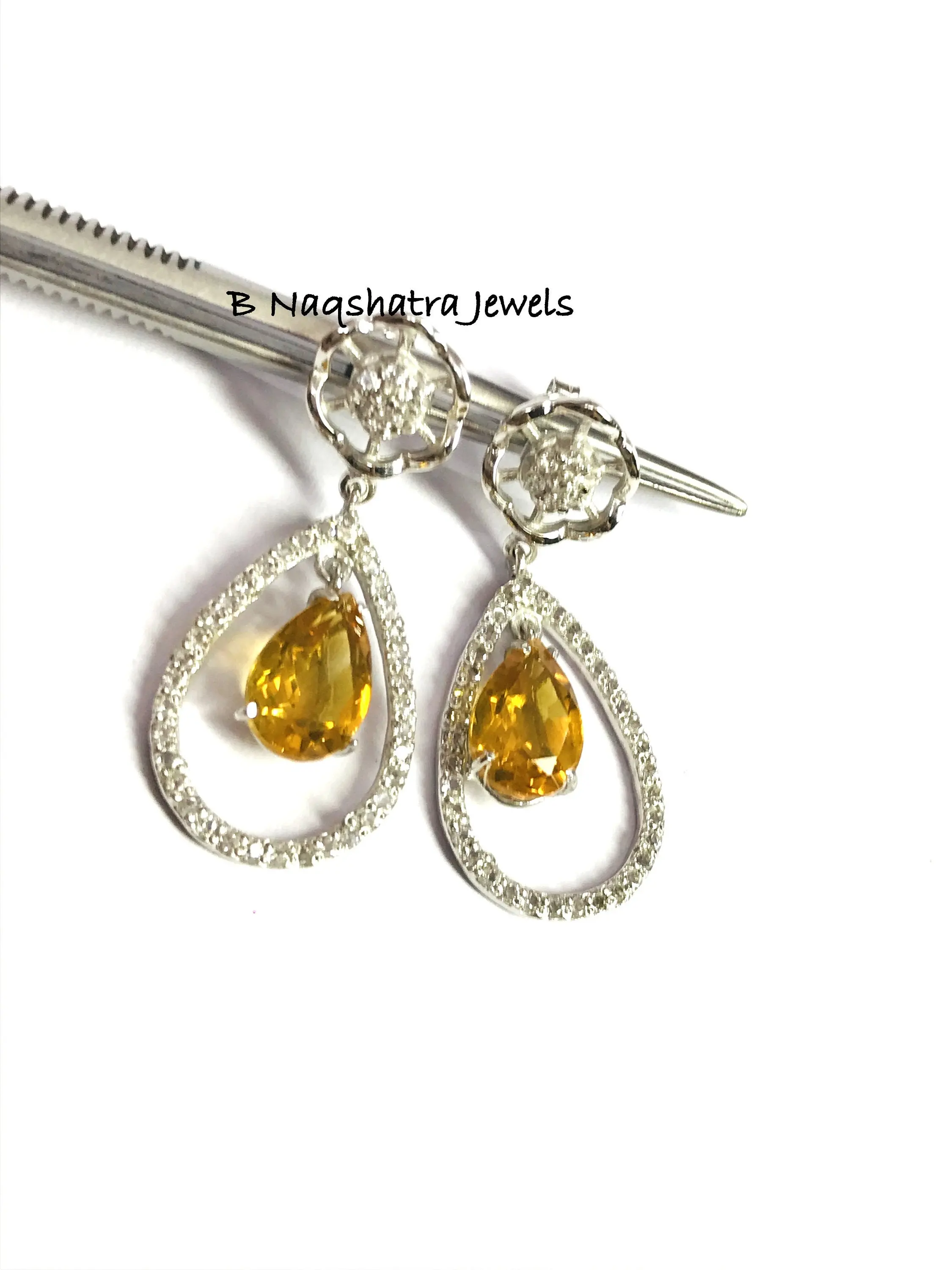 CITRINE TOPAZ DANGLE Earrings,925 Sterling silver,November birthstone, Yellow earrings, Gift for loved ones, Women Earrings ..