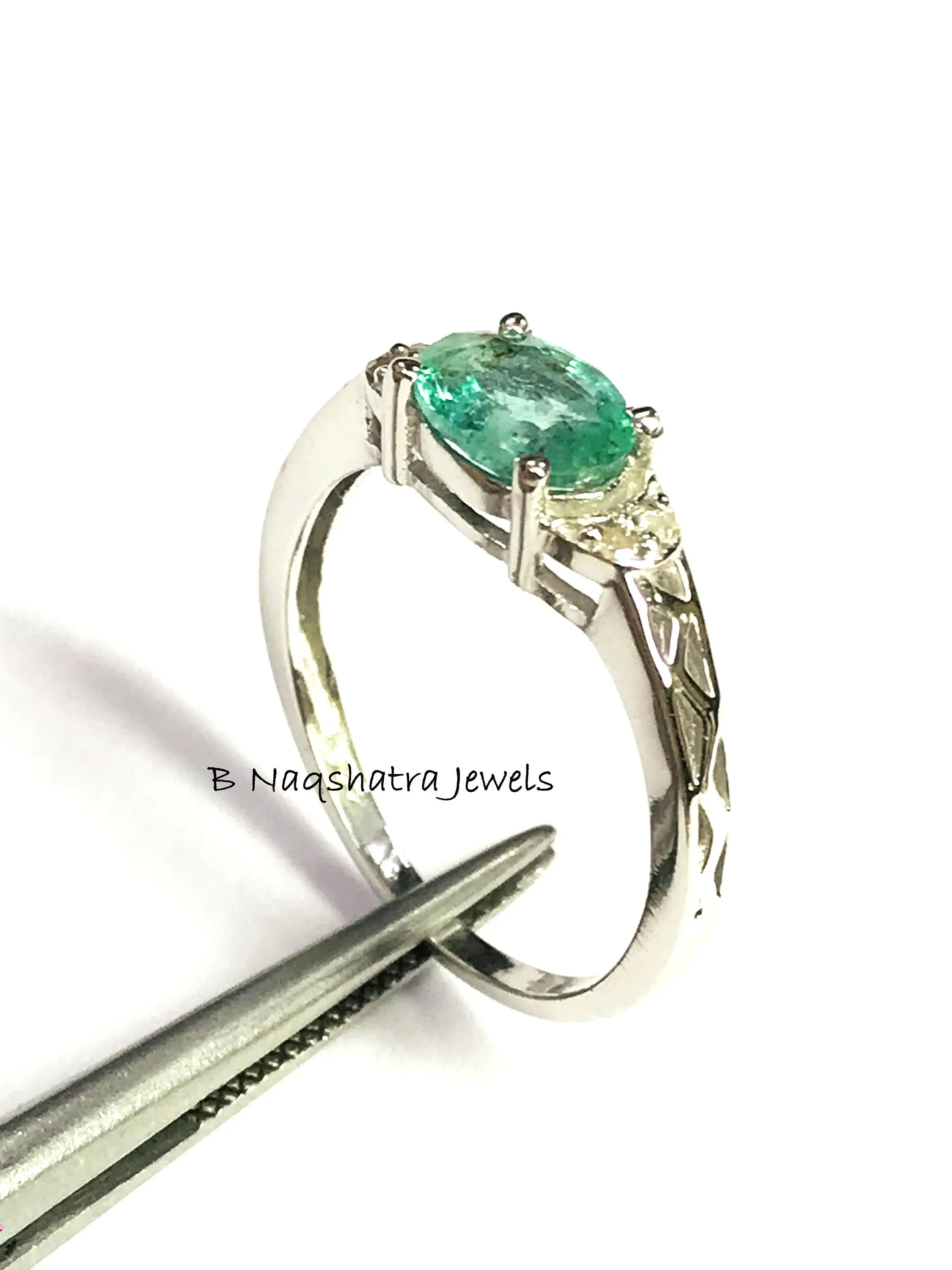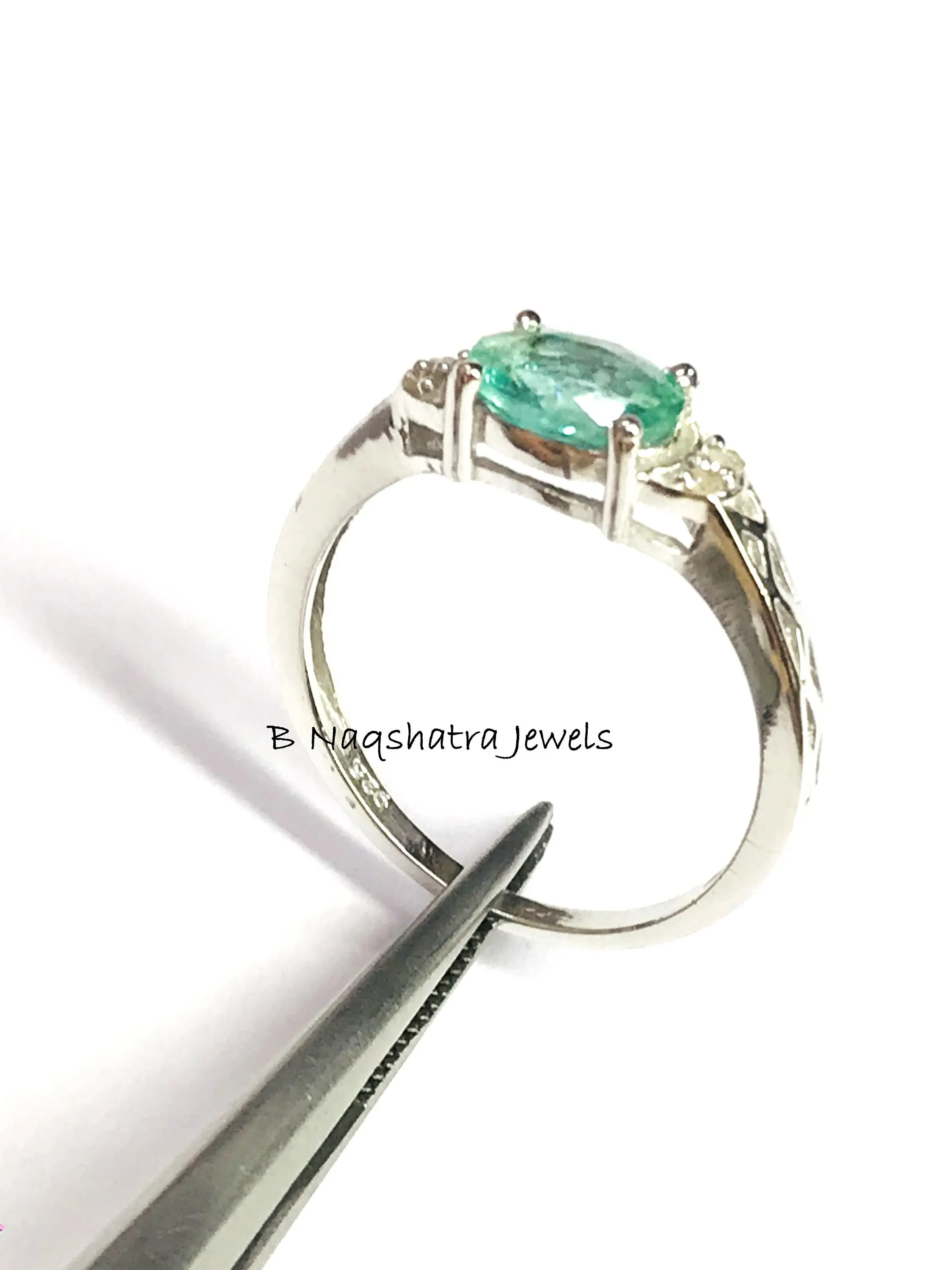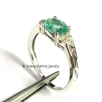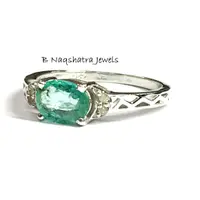EMERALD RING, May birthstone ,Emerald Diamond Engagement ring, oval emerald ring,Women ring ,Green gemstone