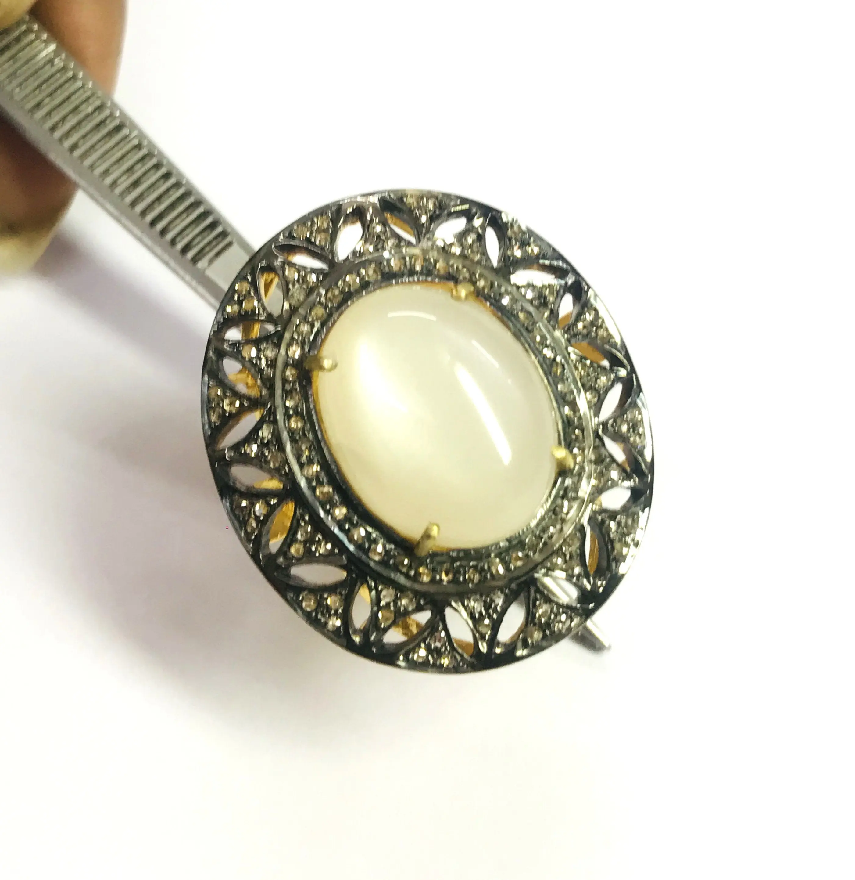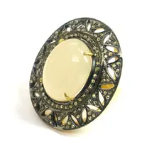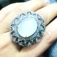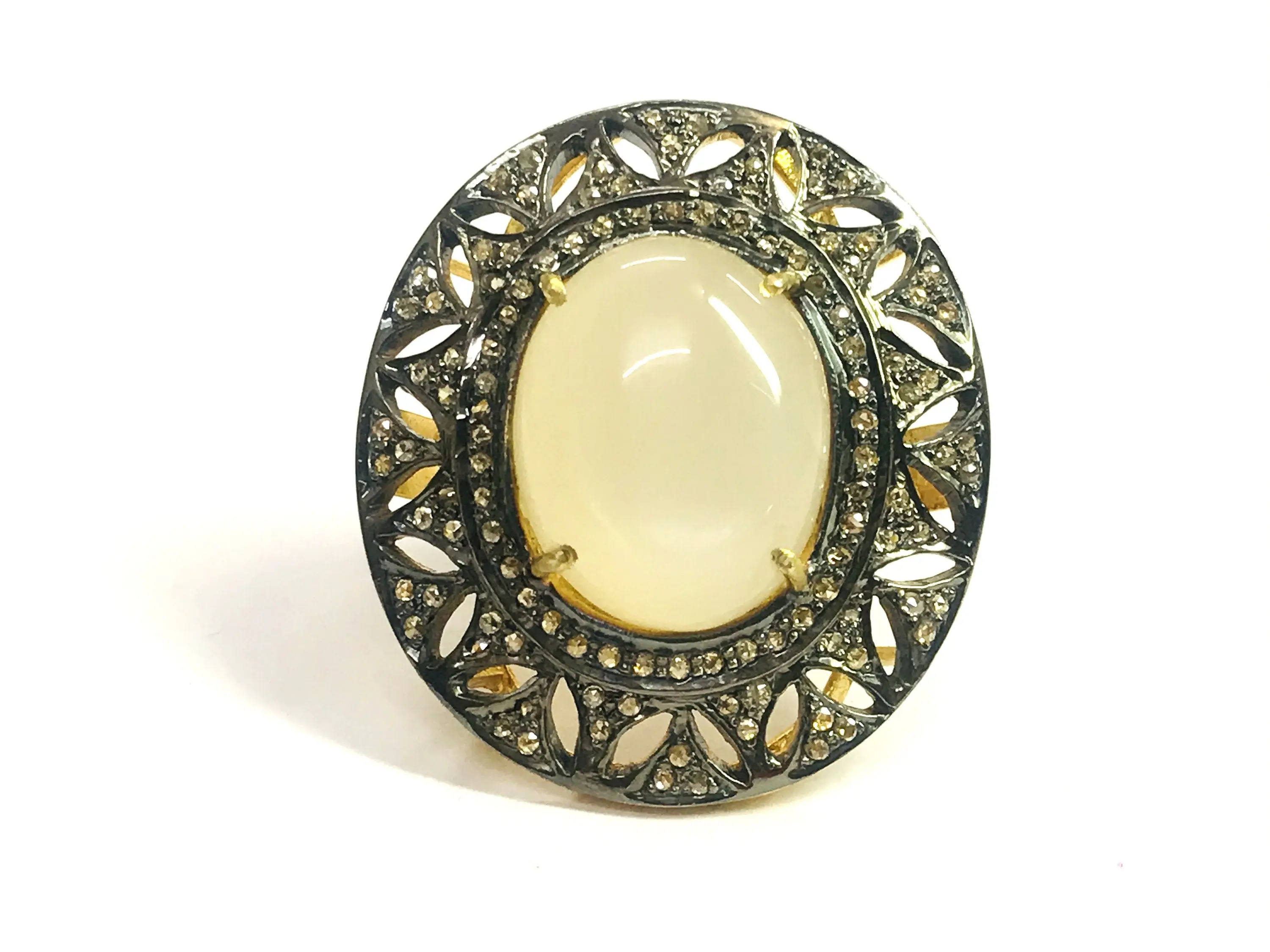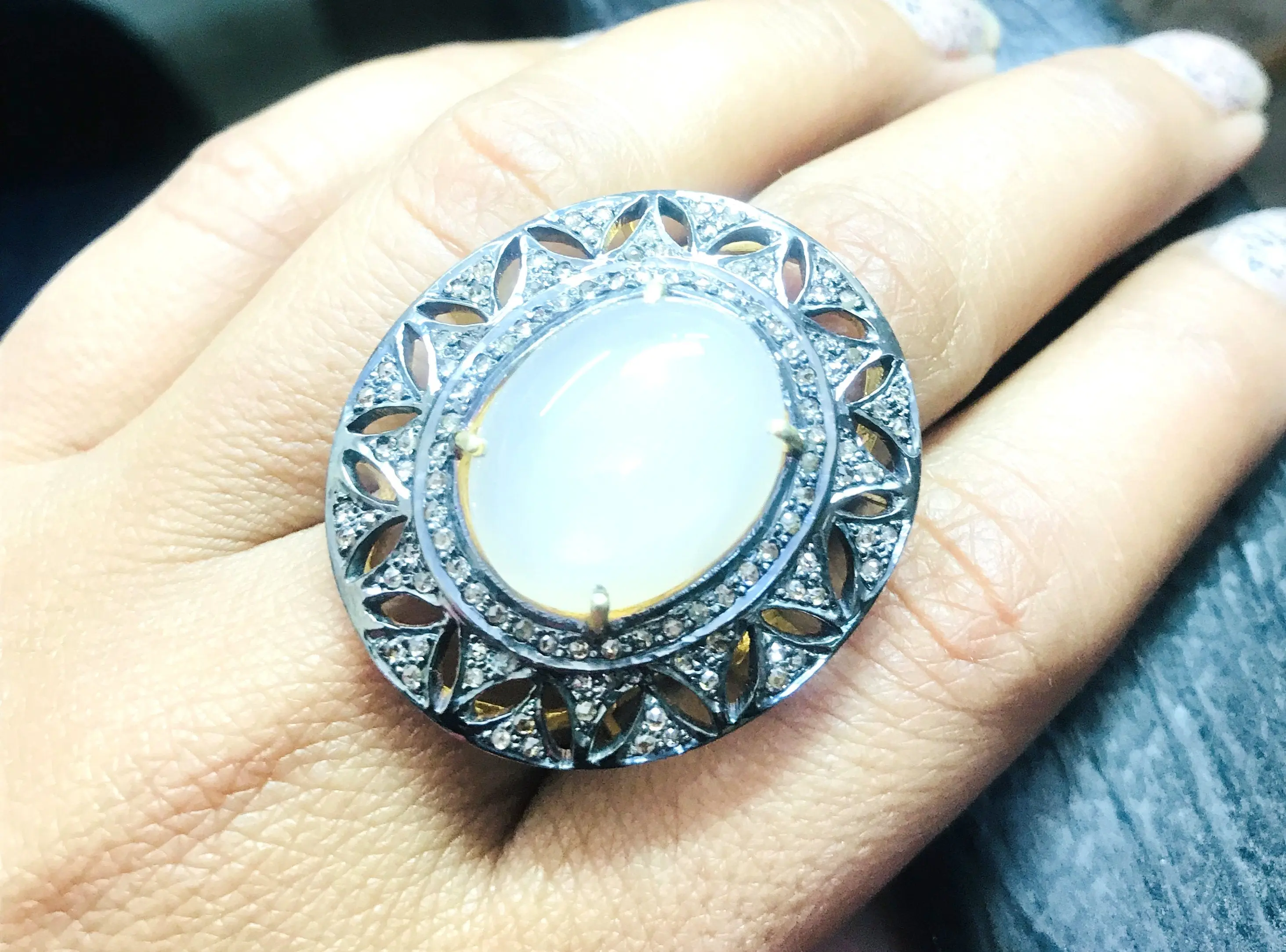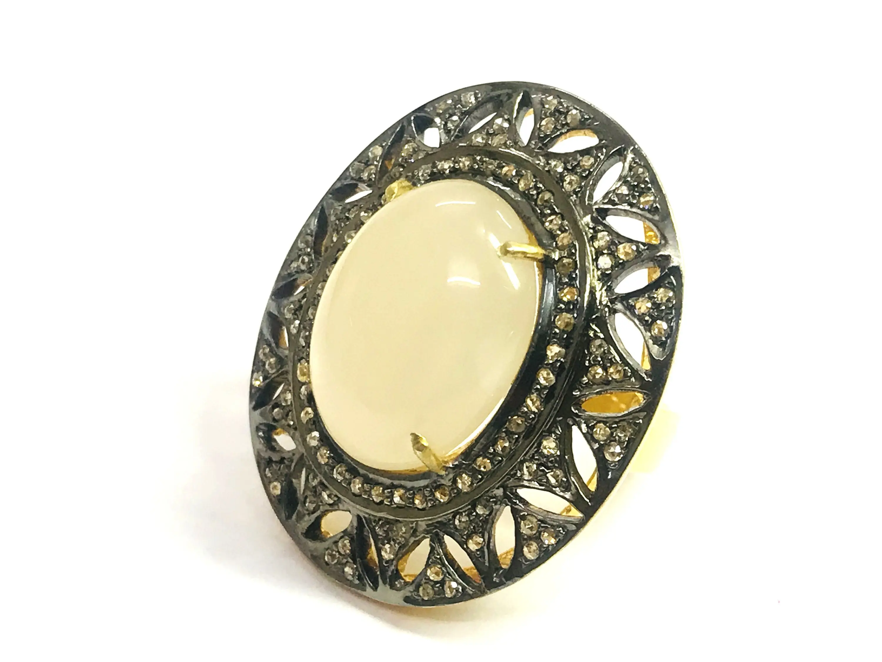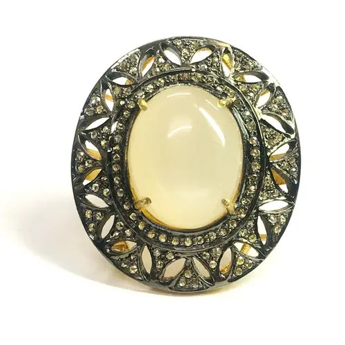 MOONSTONE DIAMOND VICTORIAN Ring ,Oval Cabochon , Cocktail Ring ,Sterling Silver, Perfect Moonlight ,June Birthstone,Promise Ring For Her..