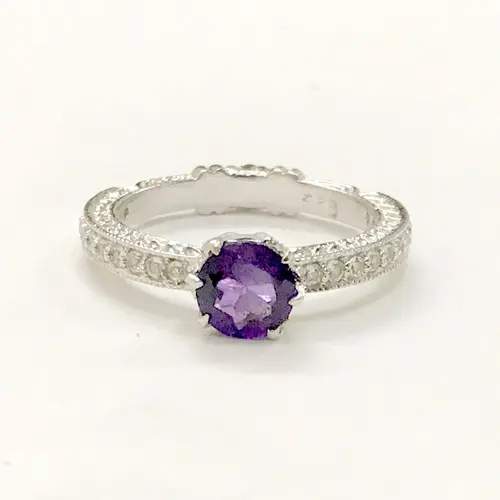 Amethyst, the birthstone of February, is a variety of Quartz that carries a spectacular purple color that ranges from a blend of deep violet and red to a lighter lilac hue.