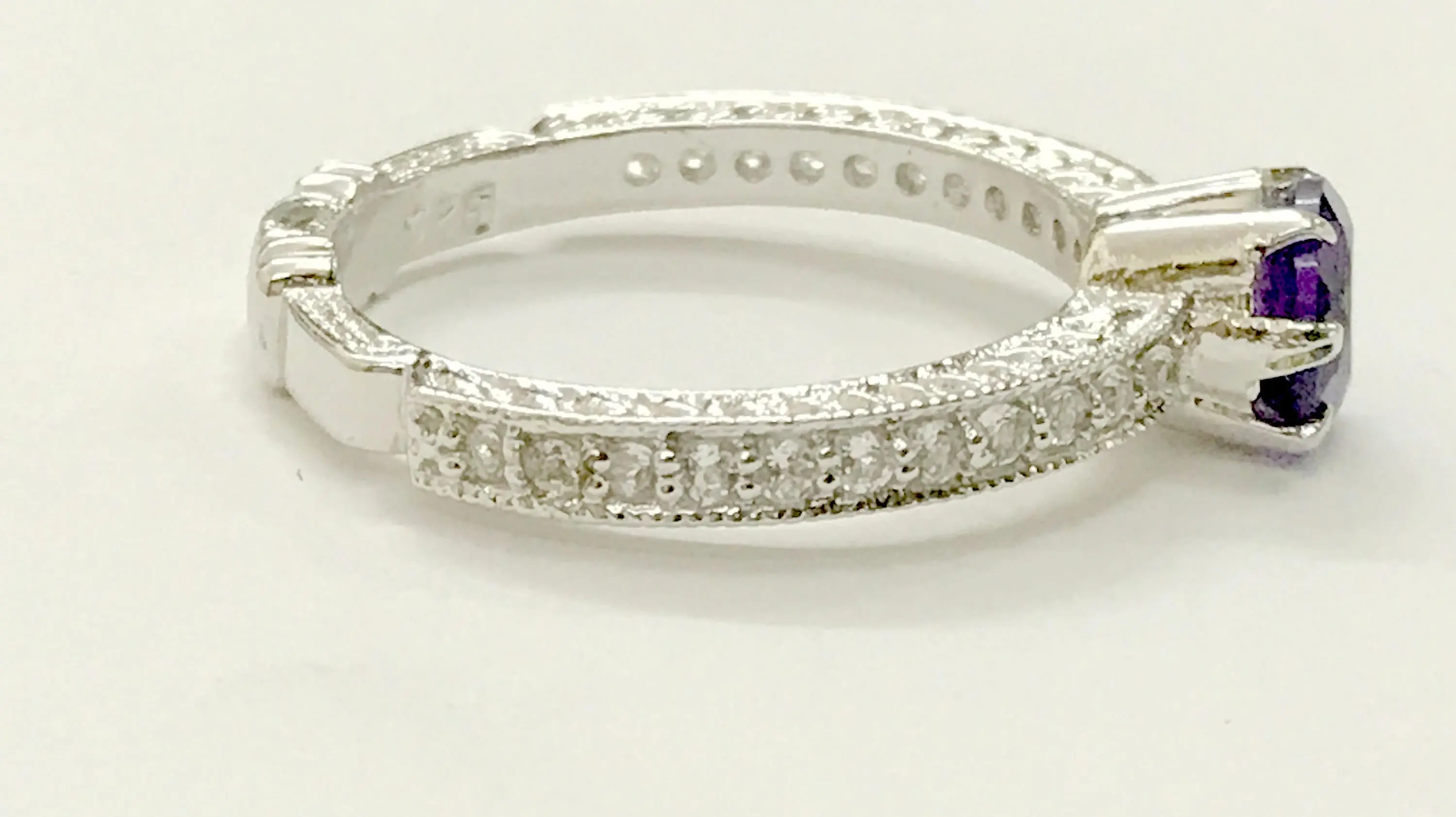 Gorgeous Sterling Silver Ring in a beautiful Purple Amethyst, which makes a lovely birthstone ring for those February Birthday Gals.