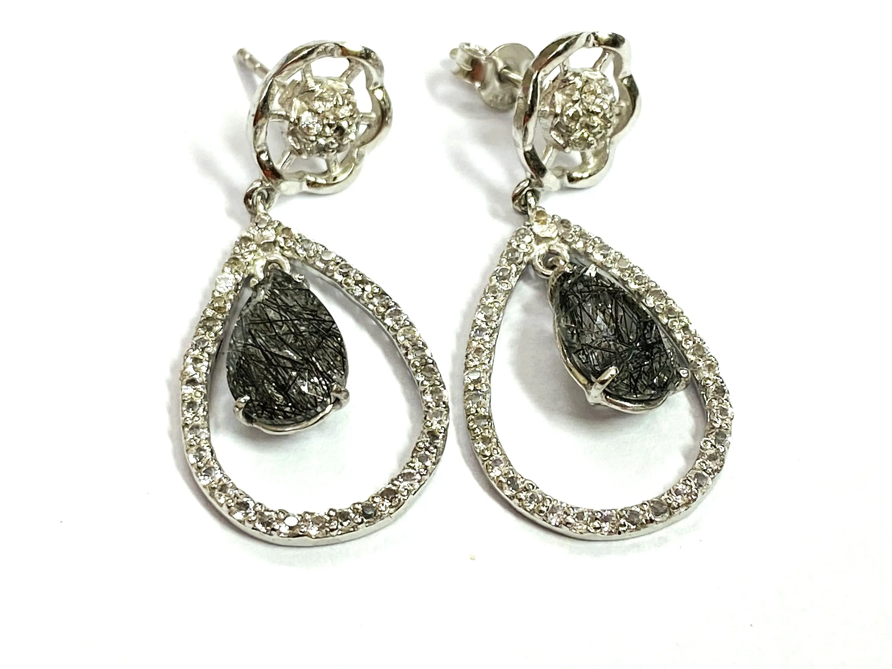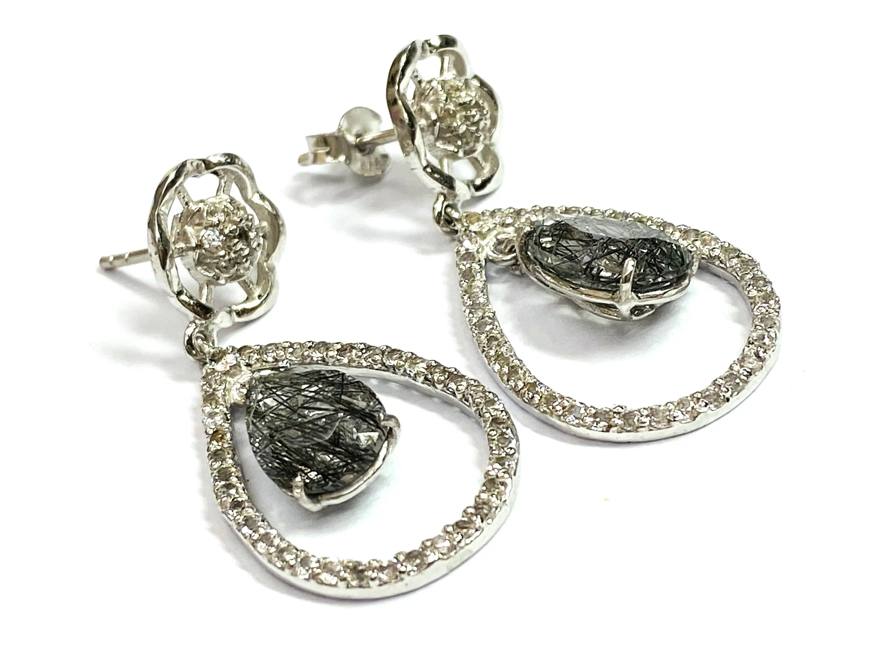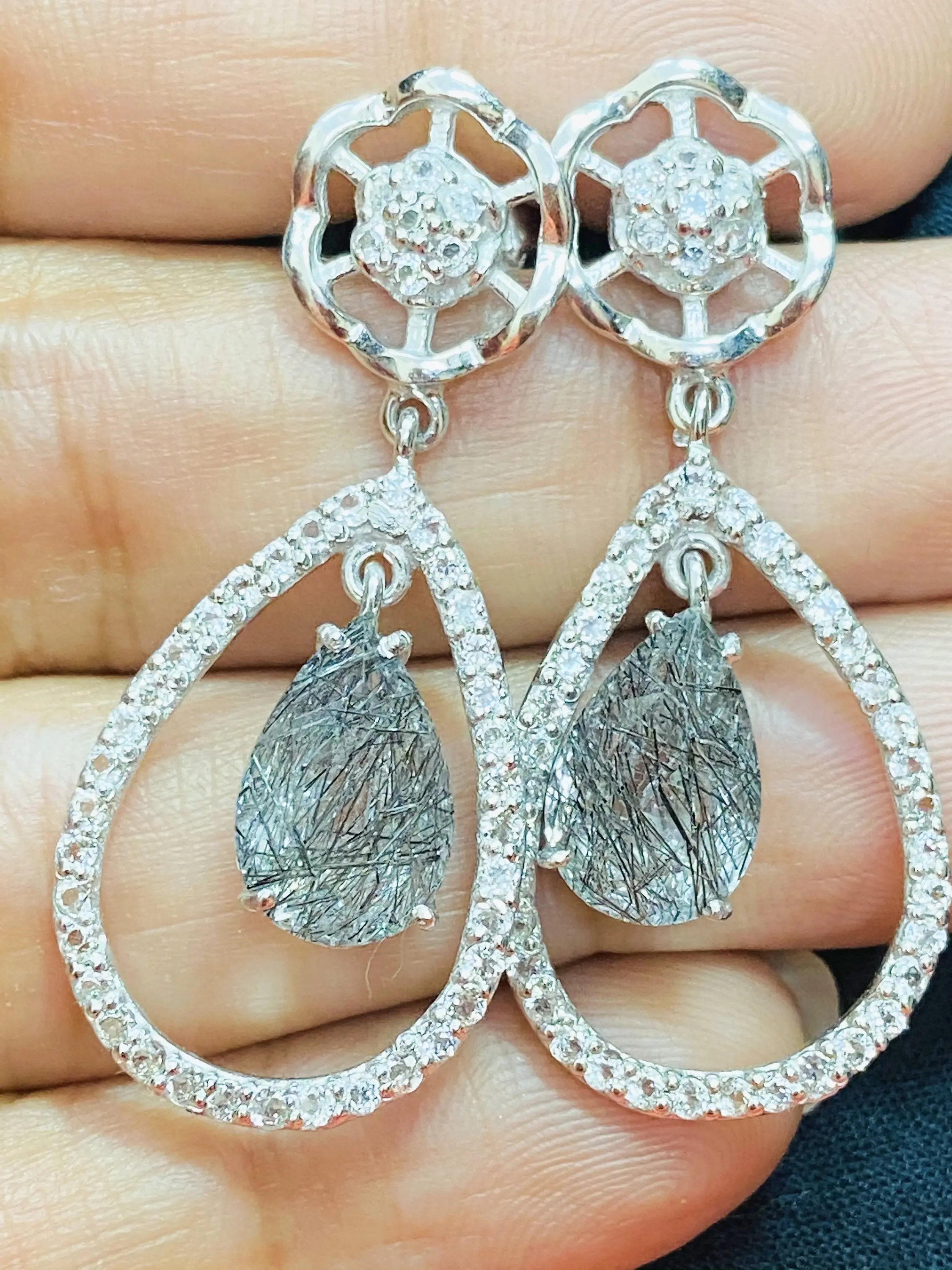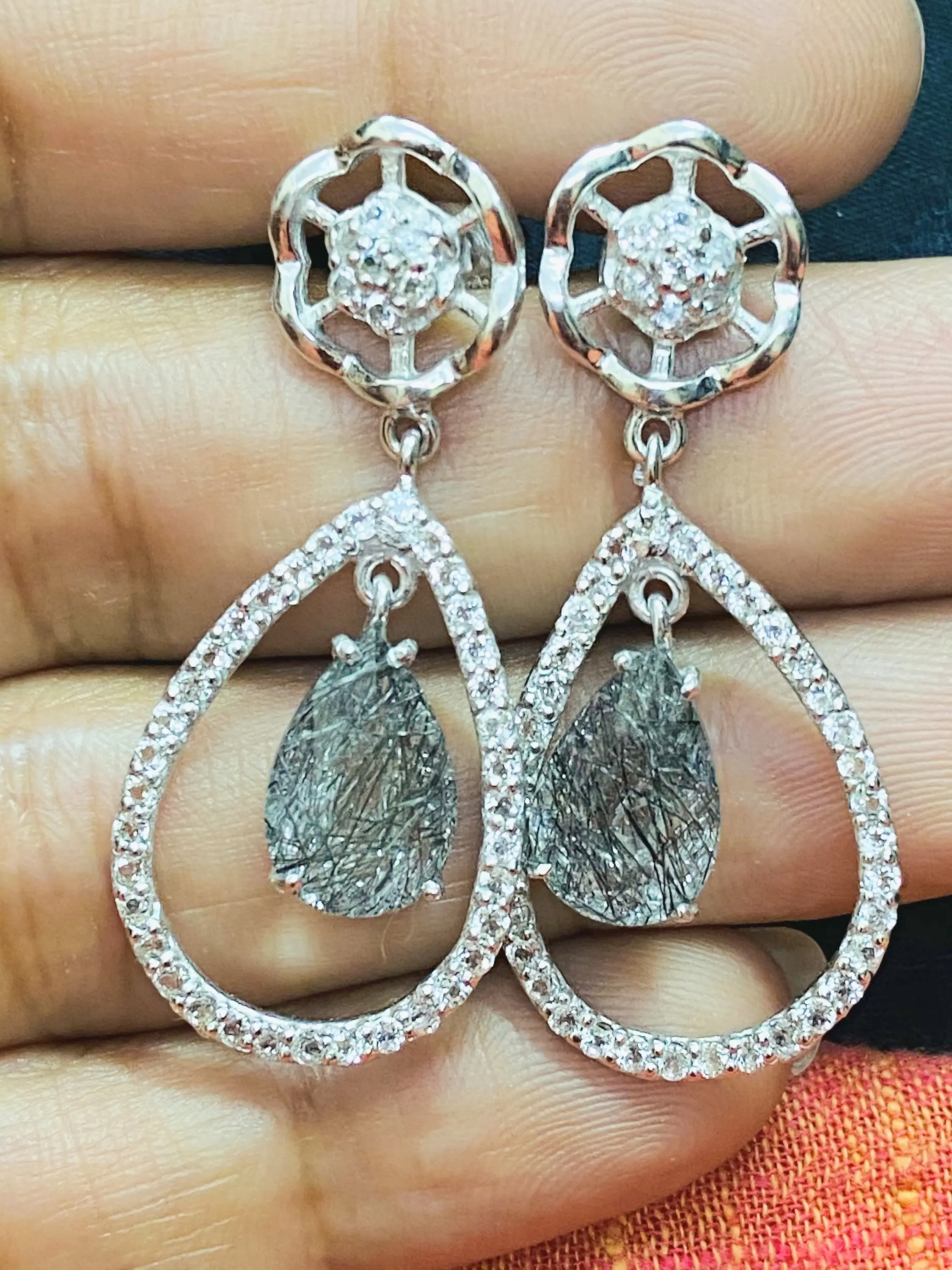 Black Rutile Quartz -Earrings, Rutiliated Quartz ,Jewelry, Gemini & Taurus Gemstone , Black tourmaline , Promise Gift for her .