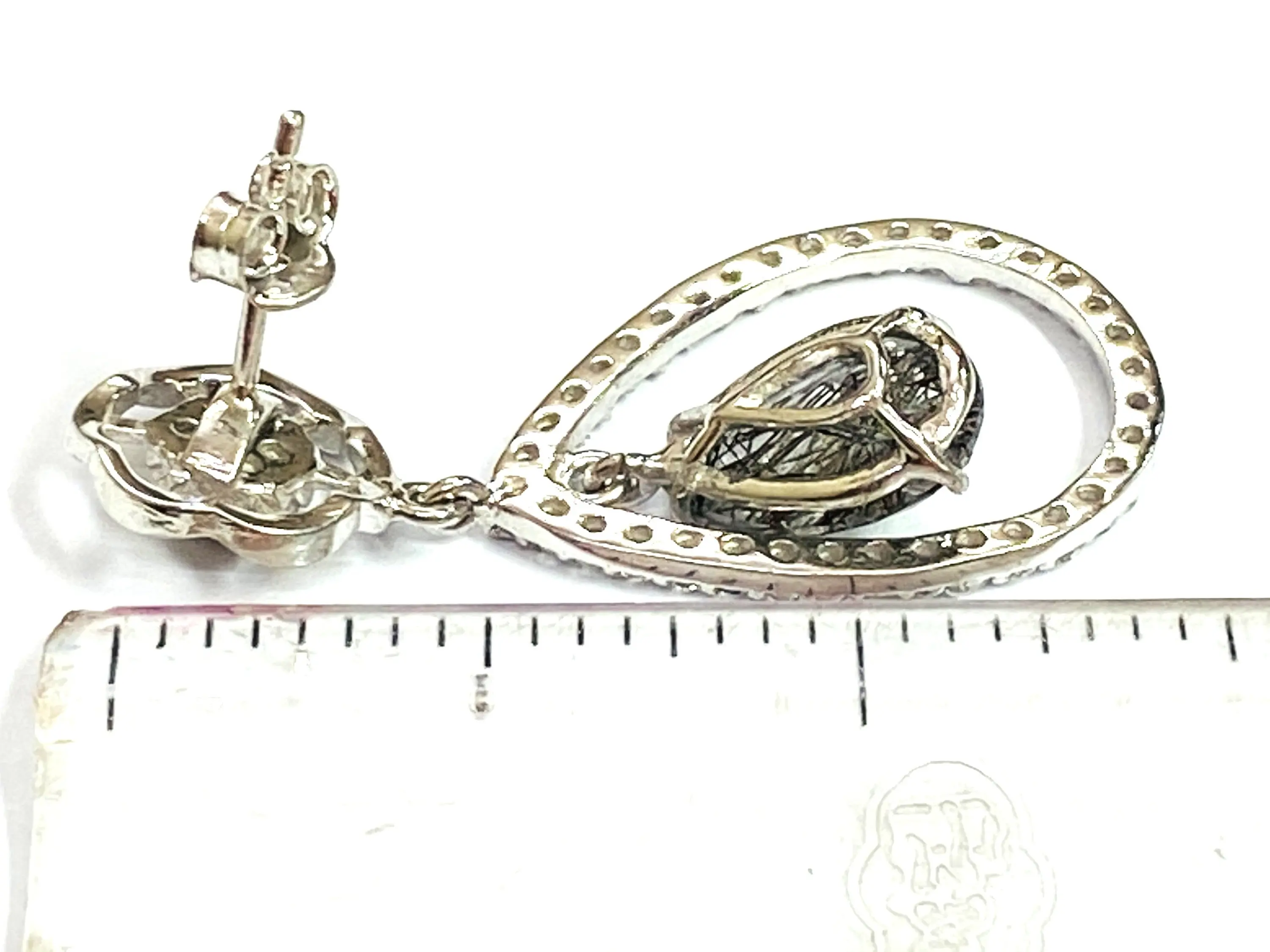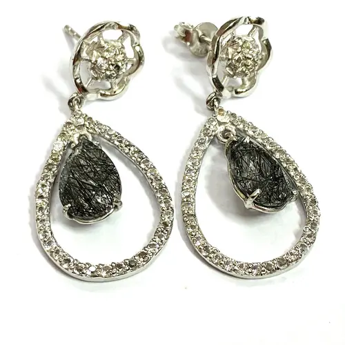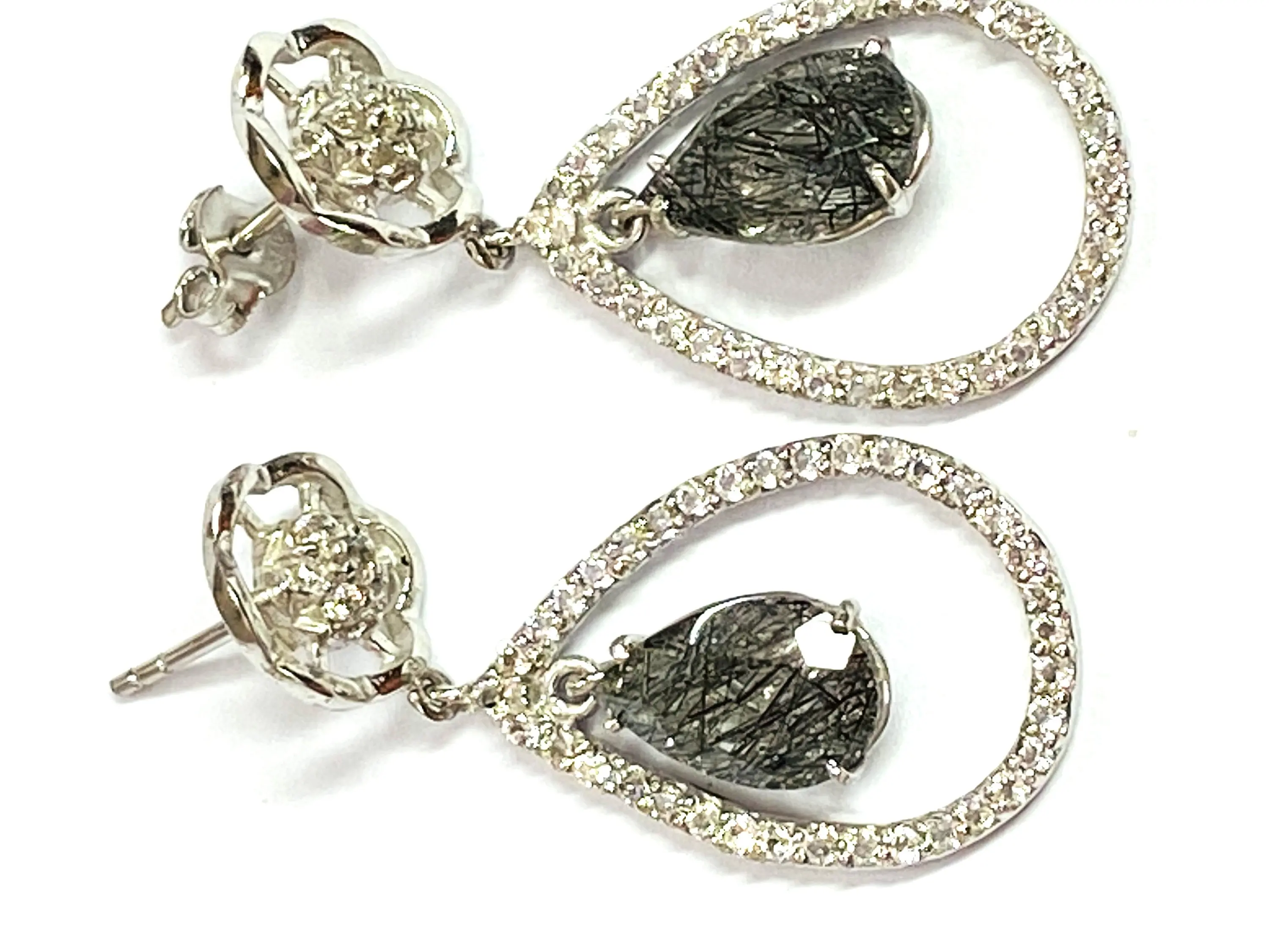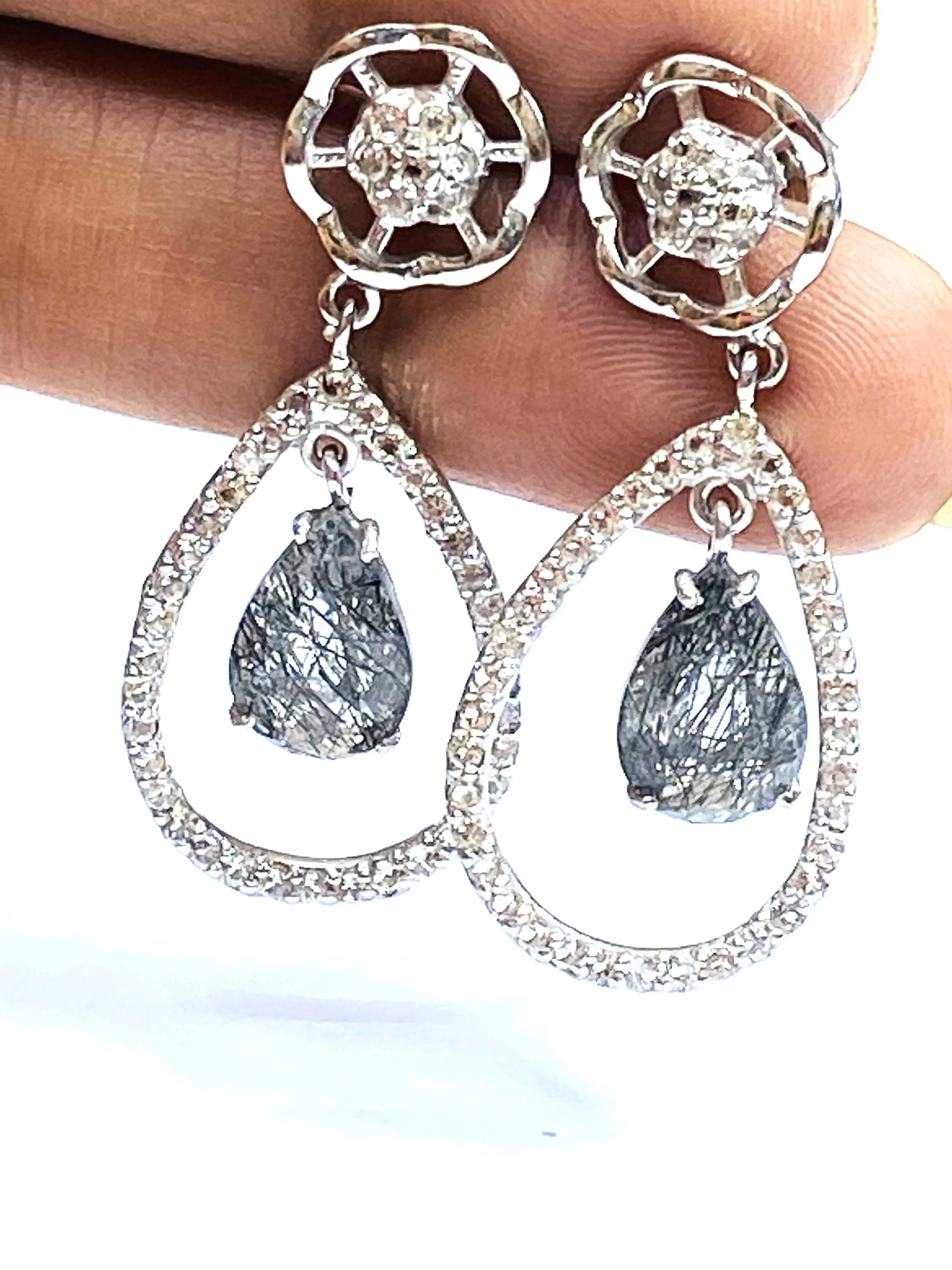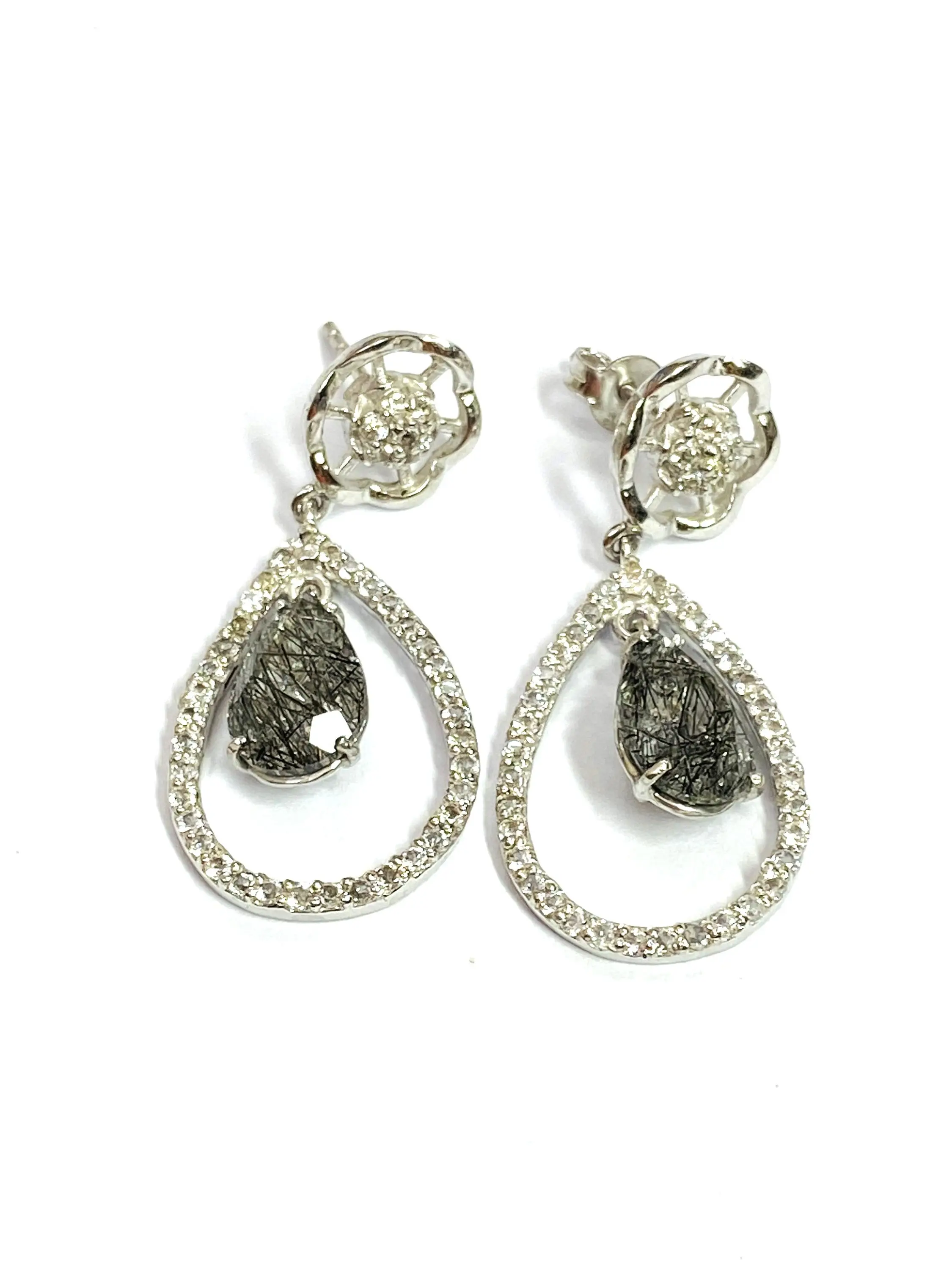 Black Rutile Quartz -Earrings, Rutiliated Quartz ,Jewelry, Gemini & Taurus Gemstone , Black tourmaline , Promise Gift for her .