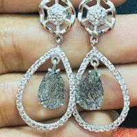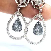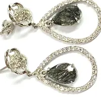 Gem: Black Rutile Quartz Pear shape and white topaz