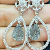Black Rutile Quartz -Earrings, Rutiliated Quartz ,Jewelry, Gemini & Taurus Gemstone , Black tourmaline ,Christmas Gift .