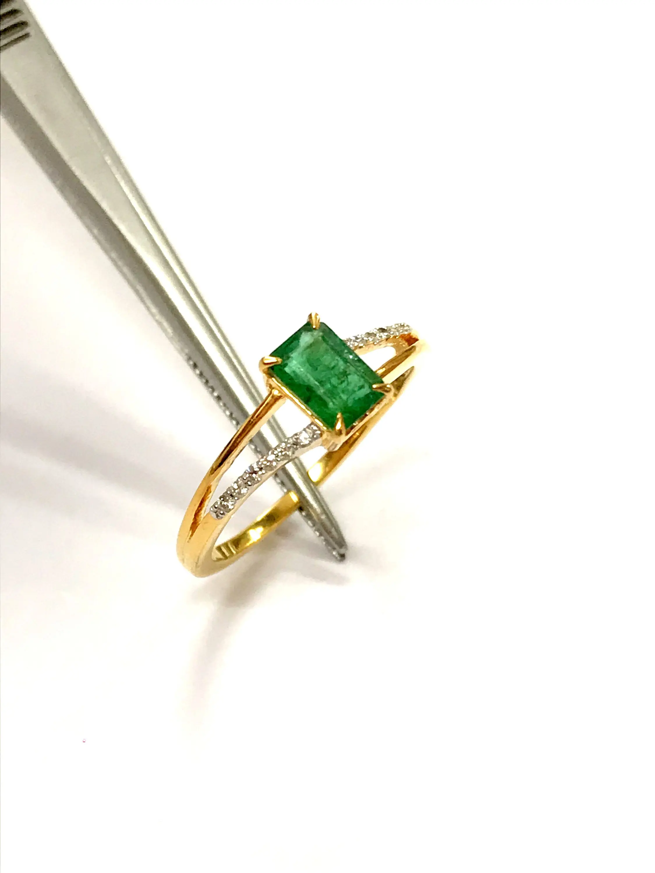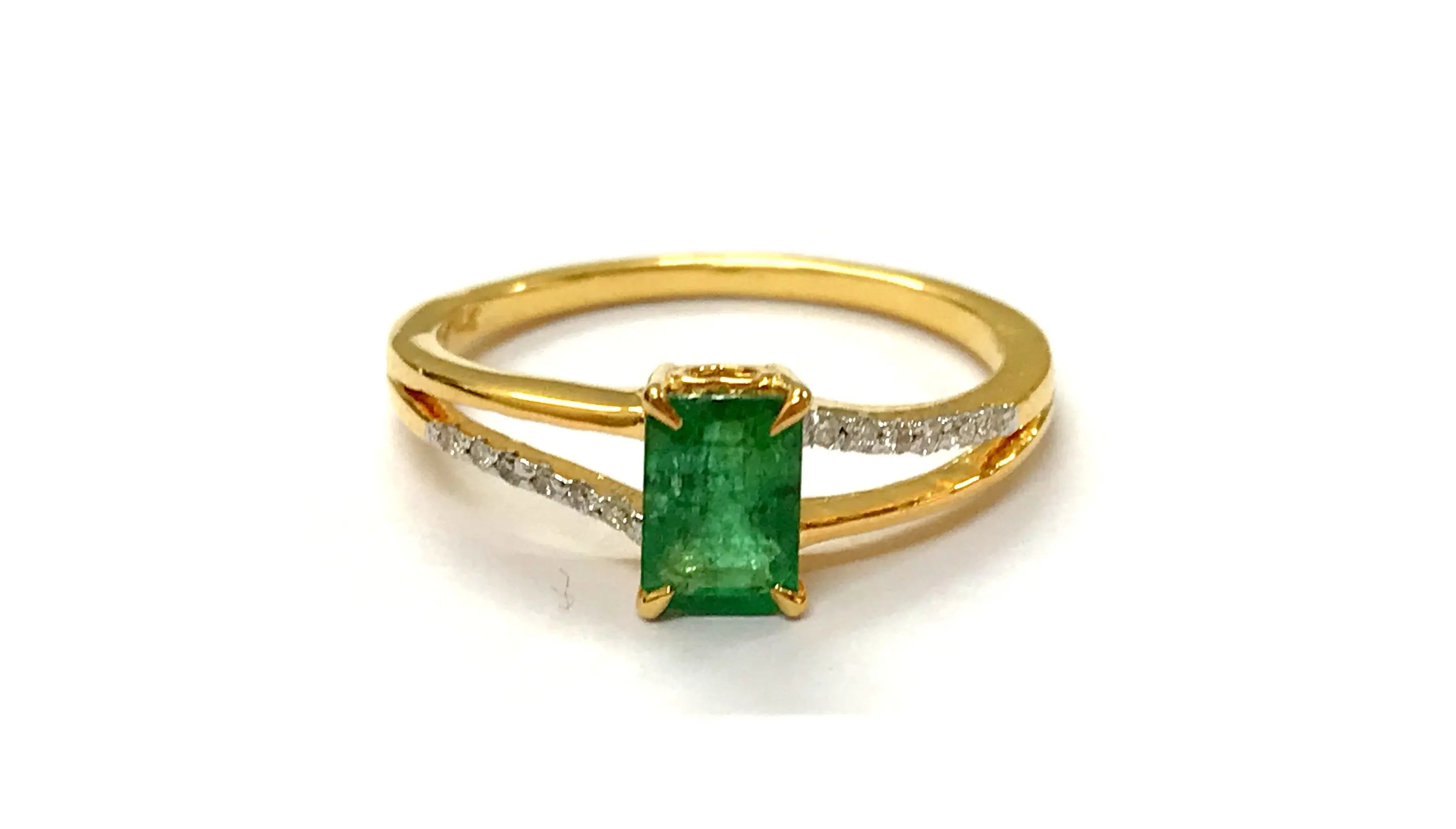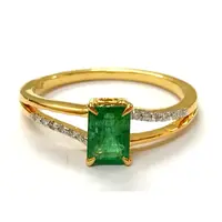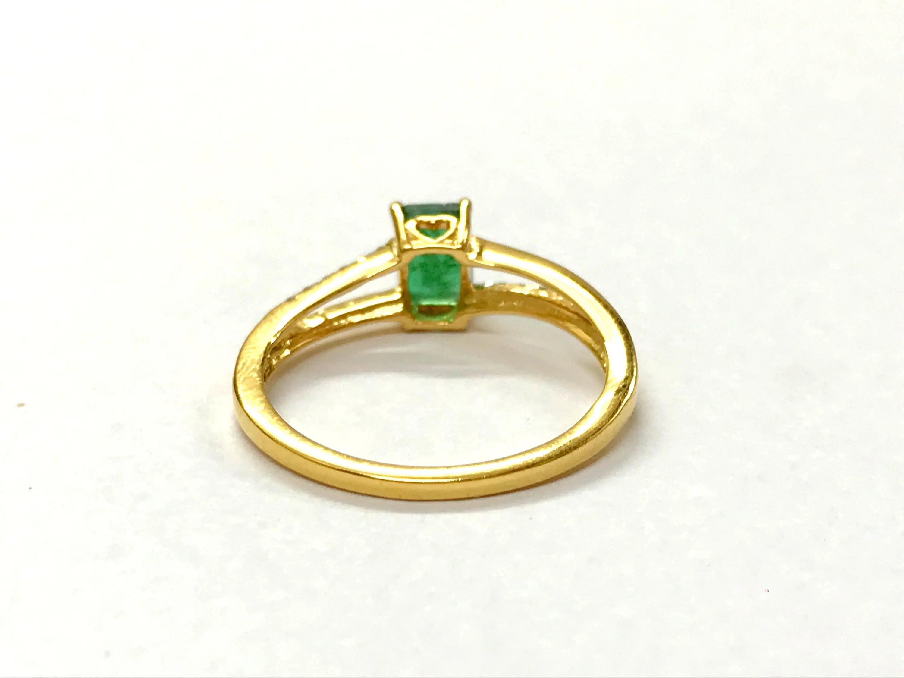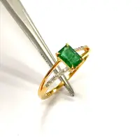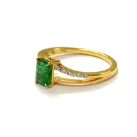 DAINTY EMERALD DIAMOND 14K Gold Ring , May Birthstone , Emerald Engagement Ring , Stackable Ring , Emerald cut Octogon ....
