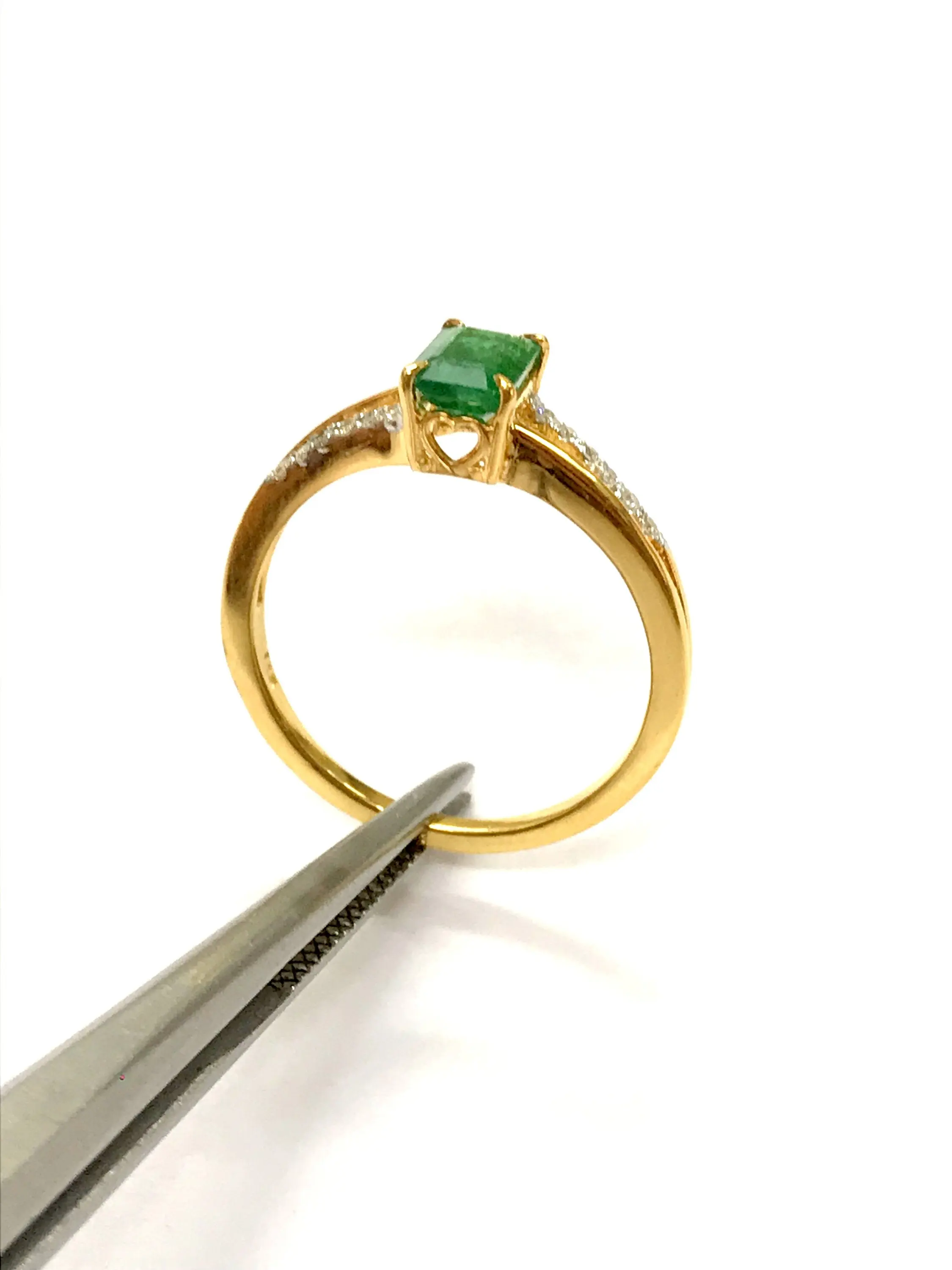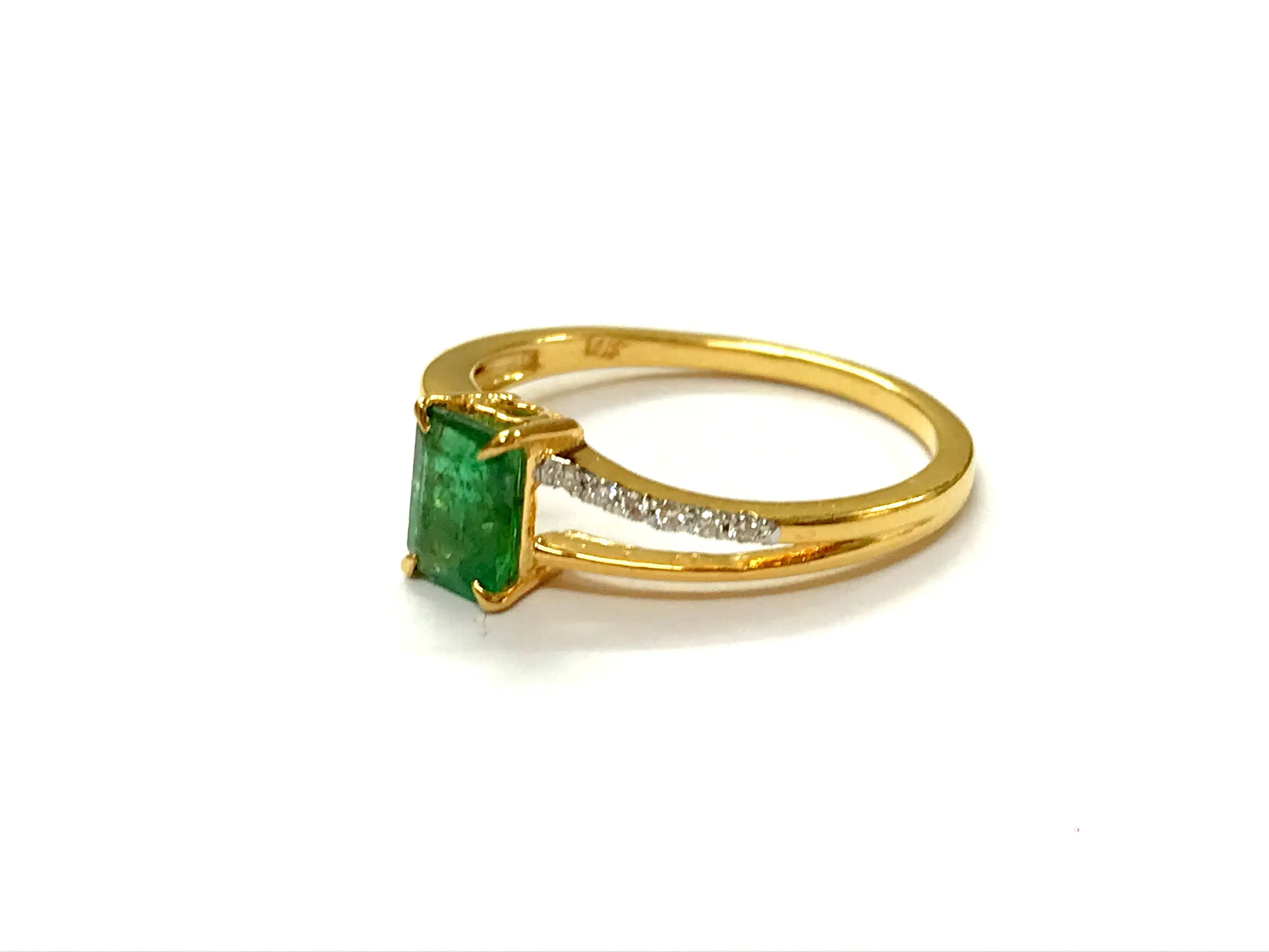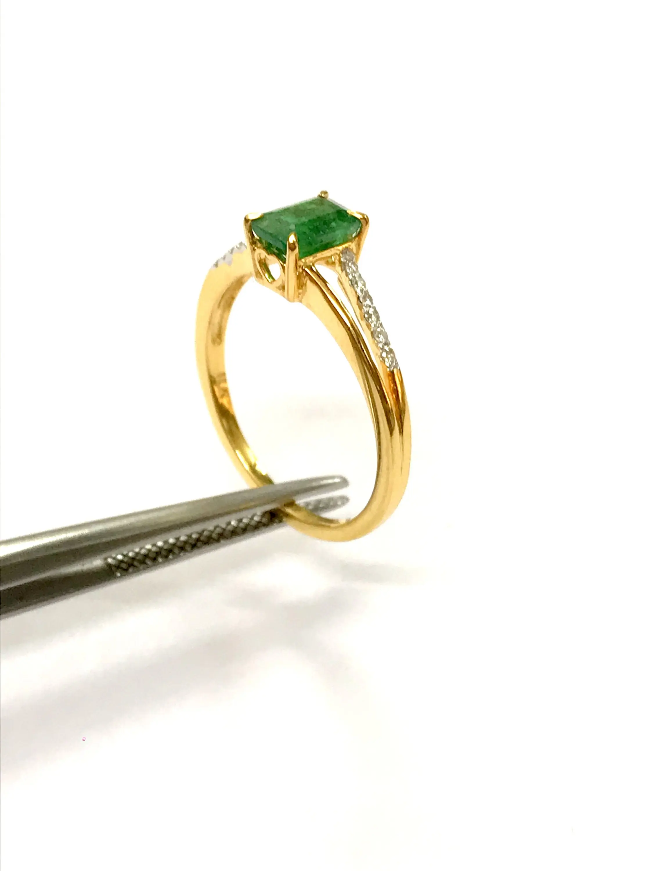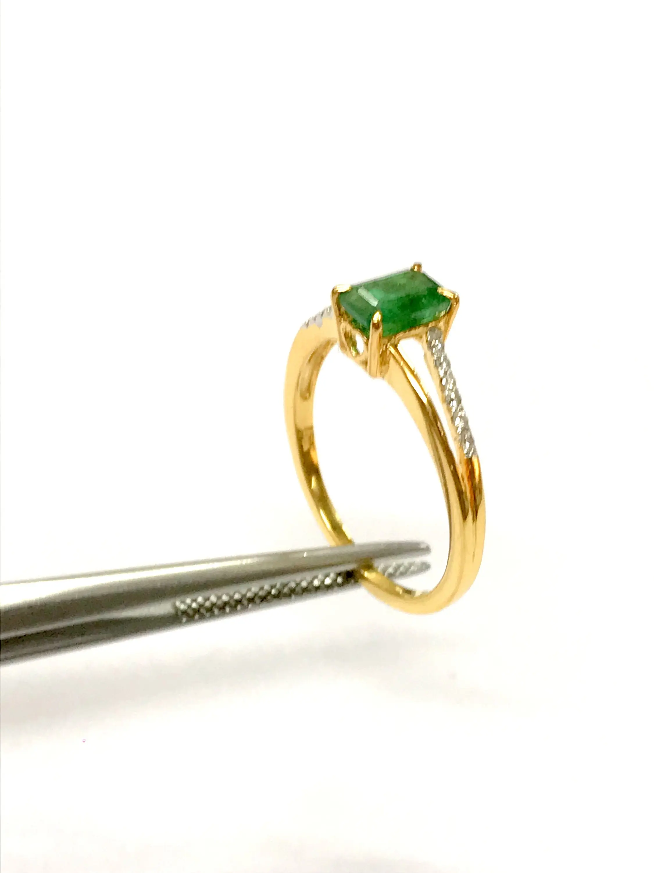 DAINTY EMERALD DIAMOND 14K Gold Ring , May Birthstone , Emerald Engagement Ring , Stackable Ring , Emerald cut Octogon ....