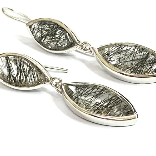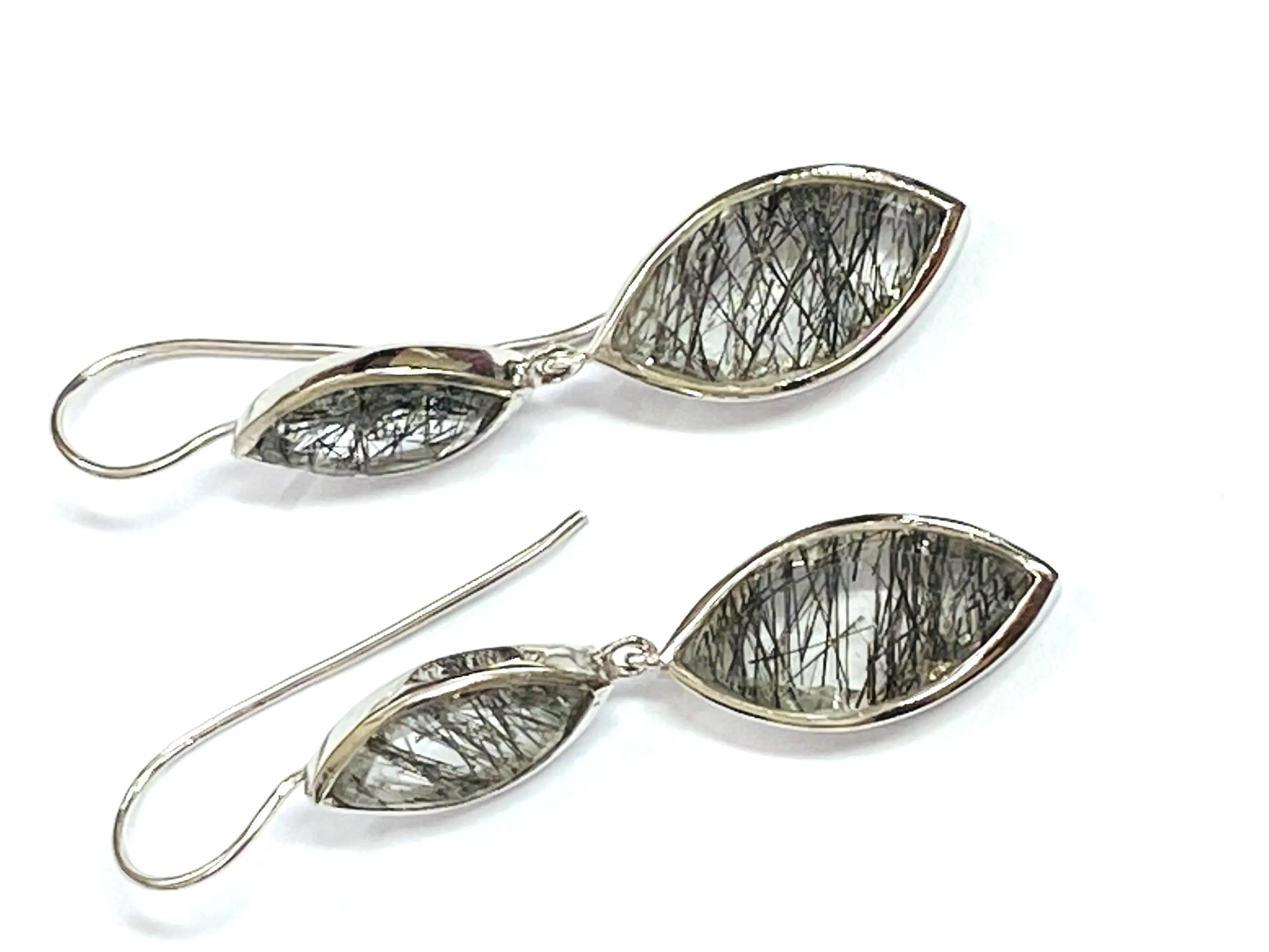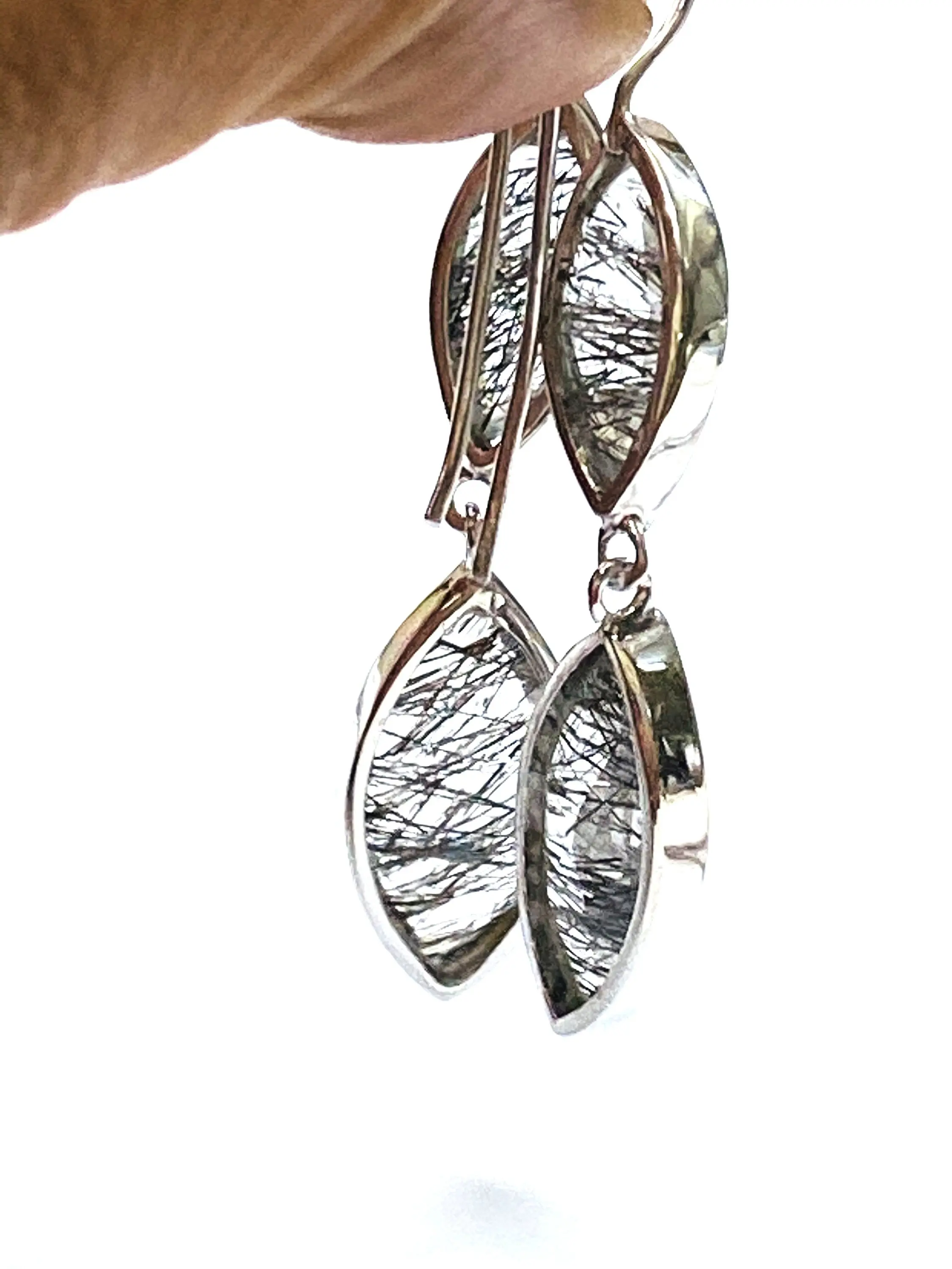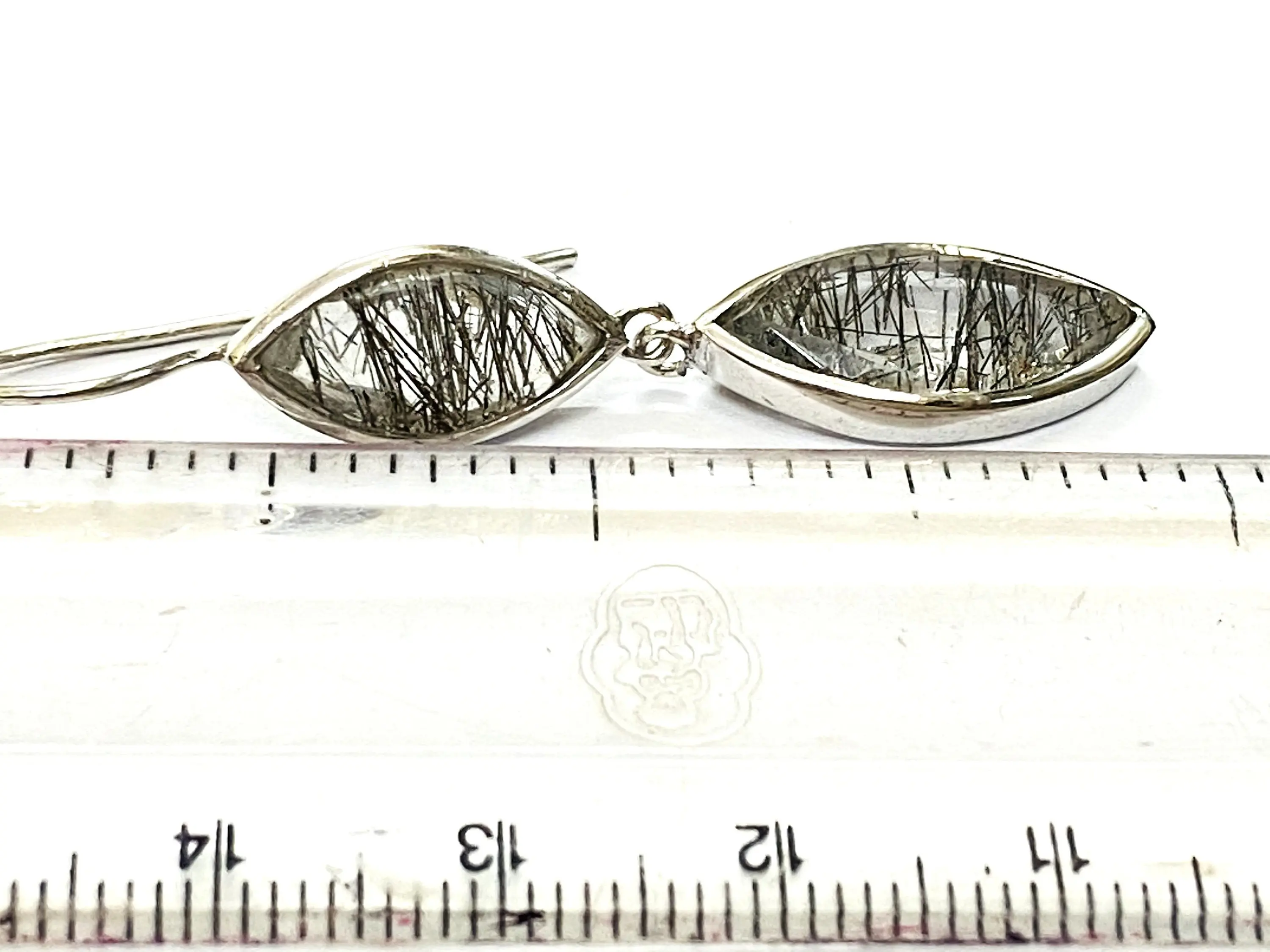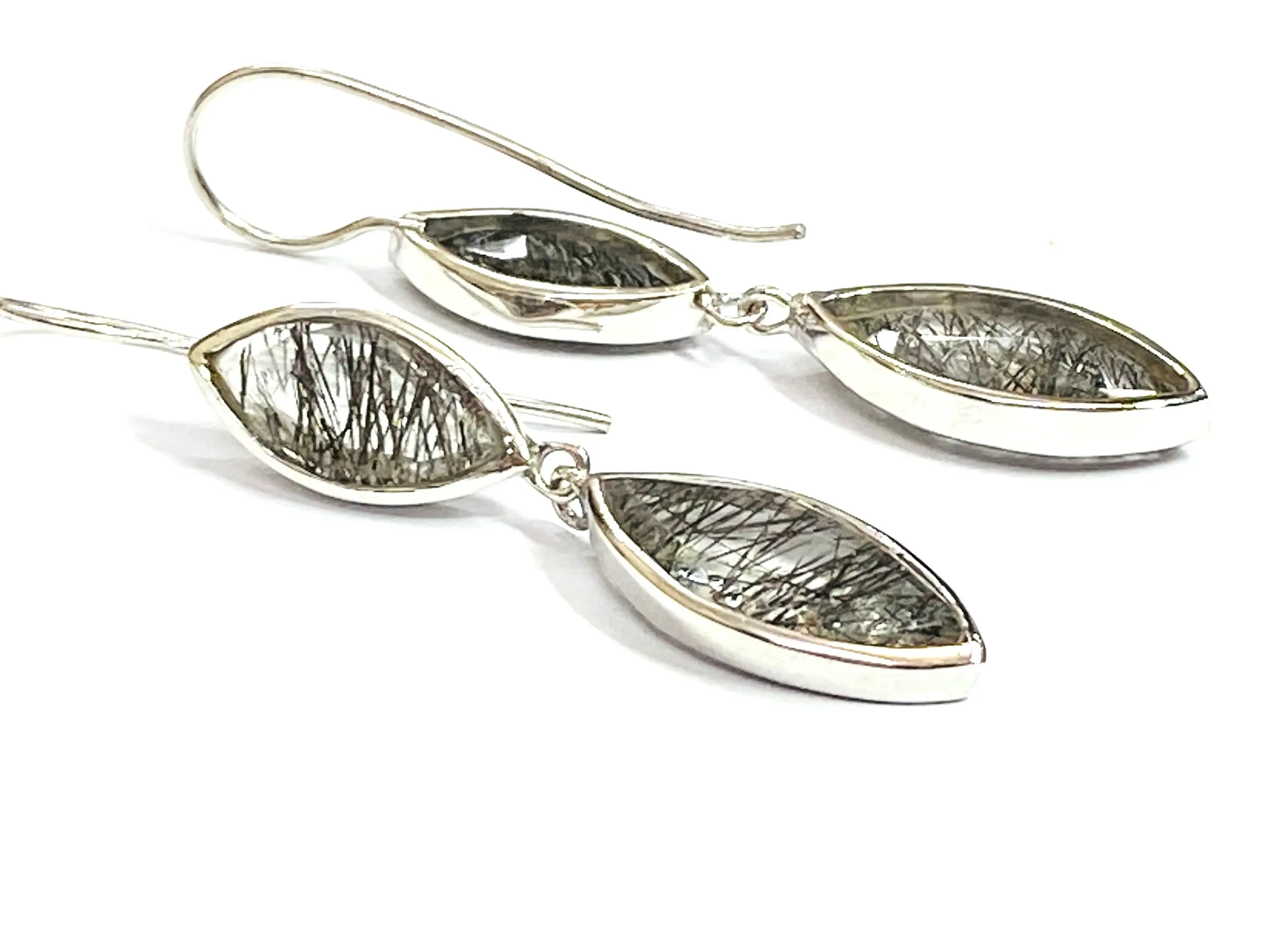 Black Rutile Quartz - DANGLE Earrings,,Tourmalinated Quartz, Rose Cut Rutile Jewelry, Gemini & Taurus Gemstone and December Birthstone