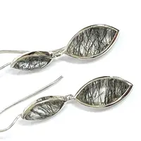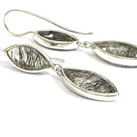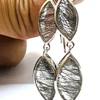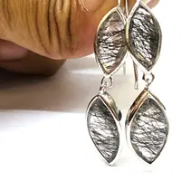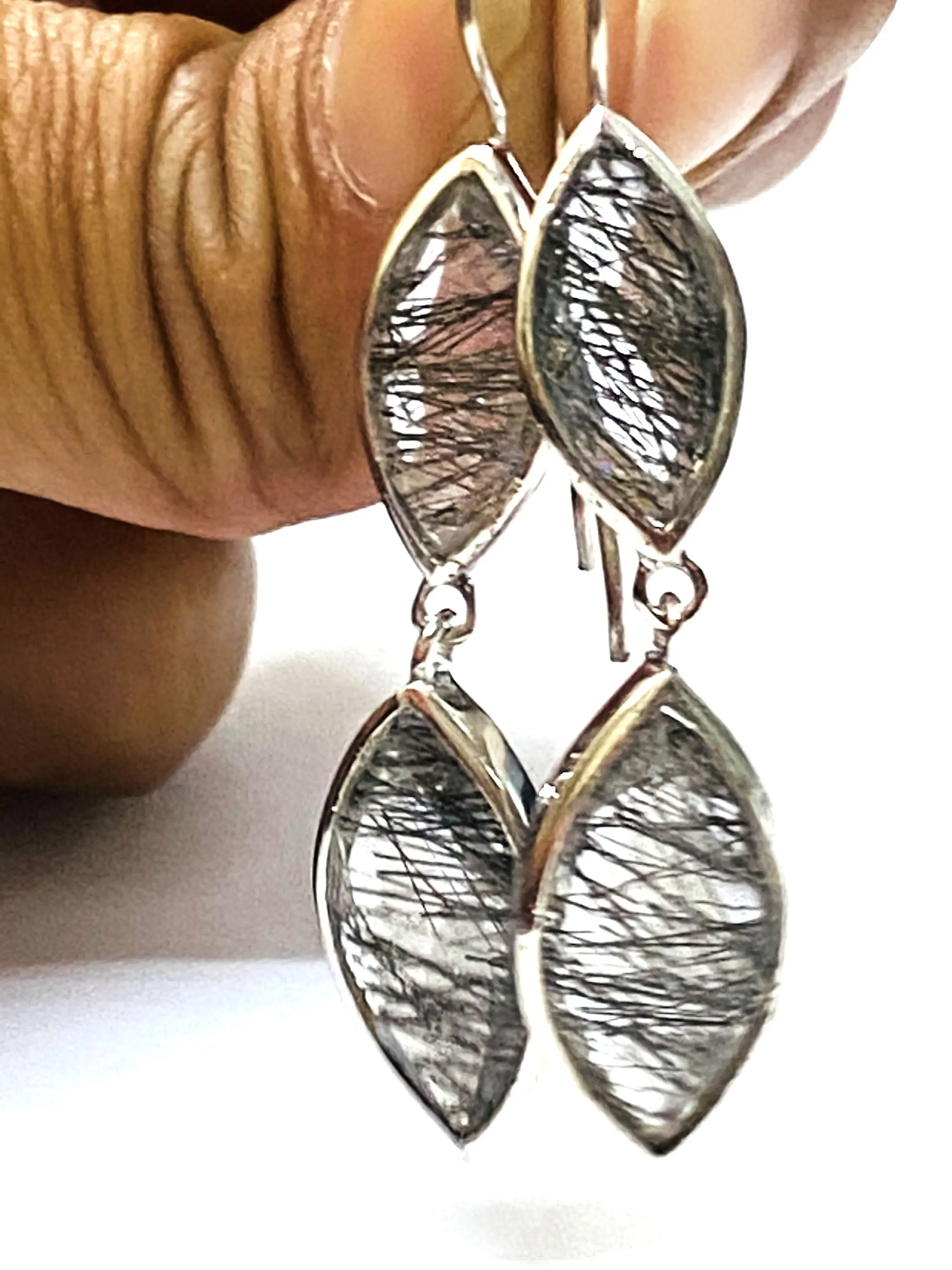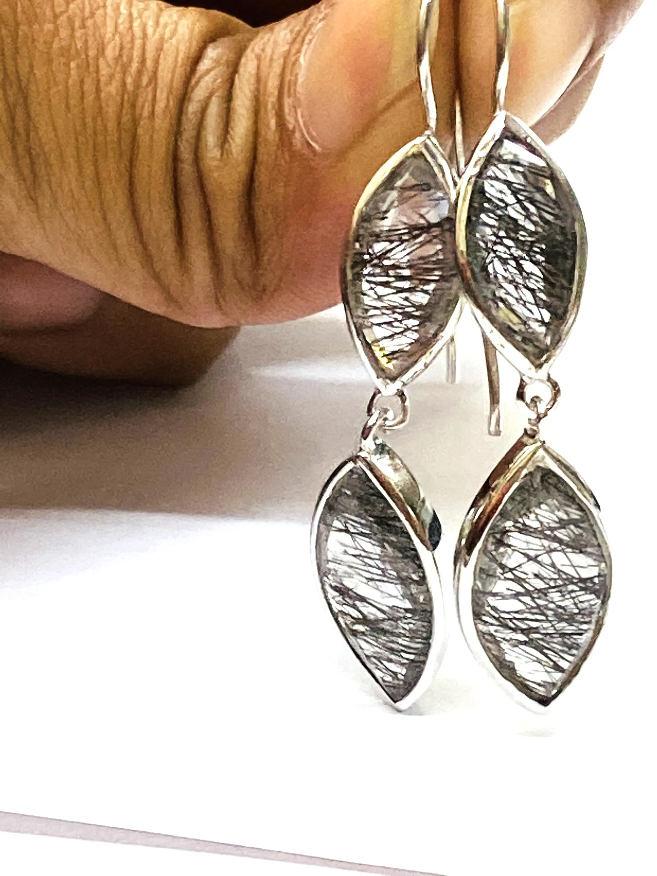 Black Rutile Quartz DANGLE EARRING ,Tourmalinated Quartz ,Rose Cut Rutile Jewelry,Gemini & Taurus Gemstone