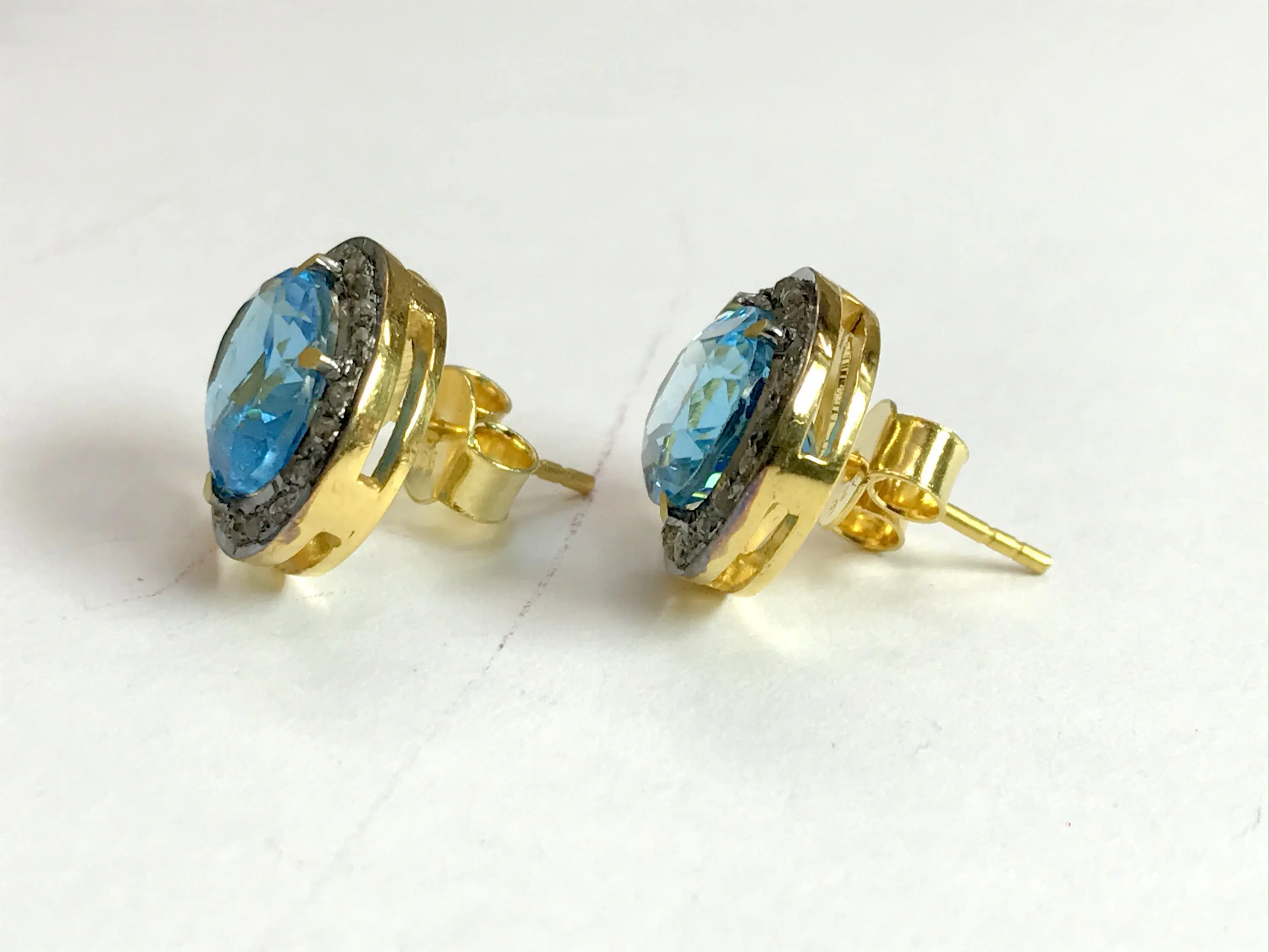 ✦Stone Size: 7x9 mm oval blue topaz and round diamonds