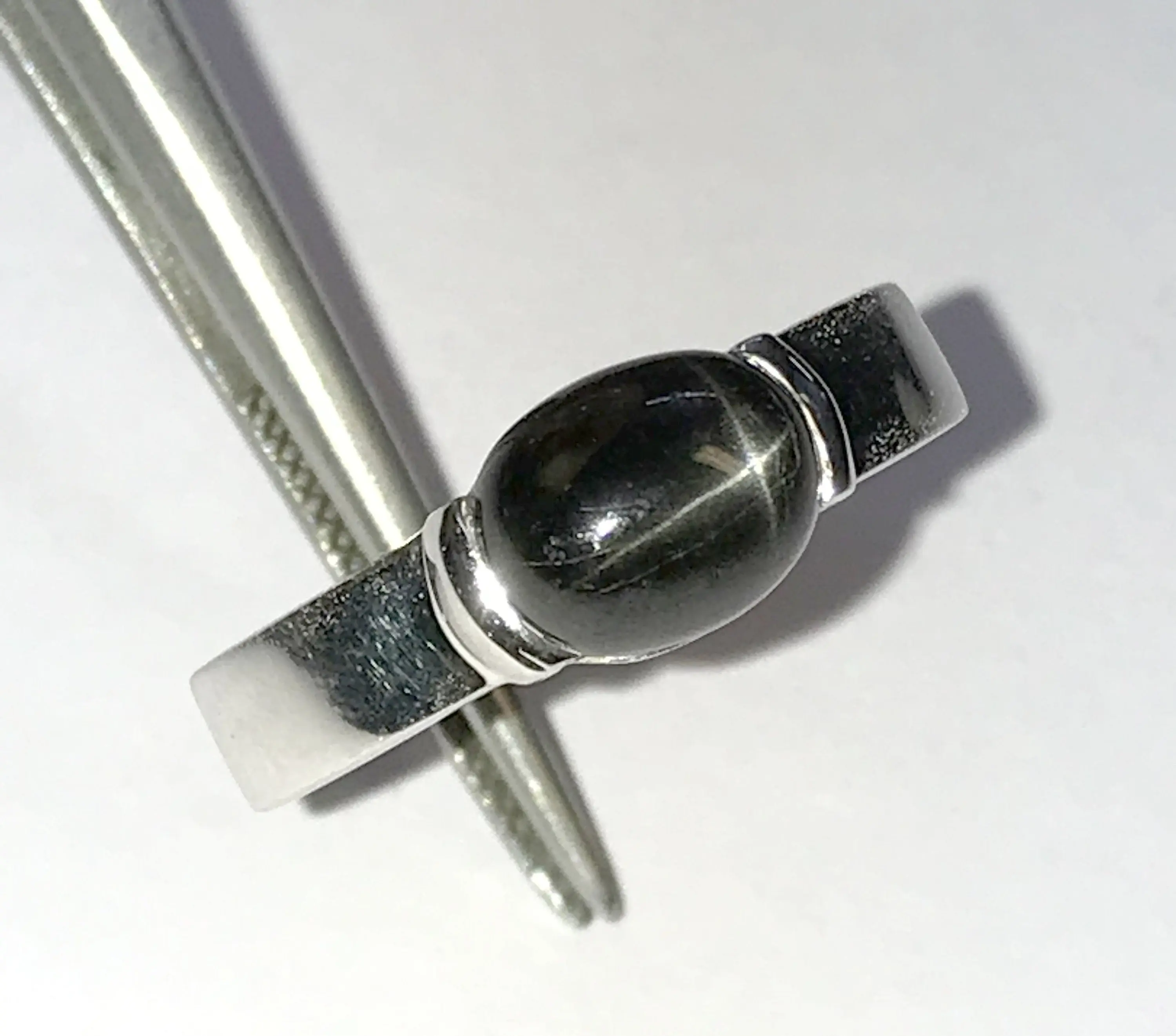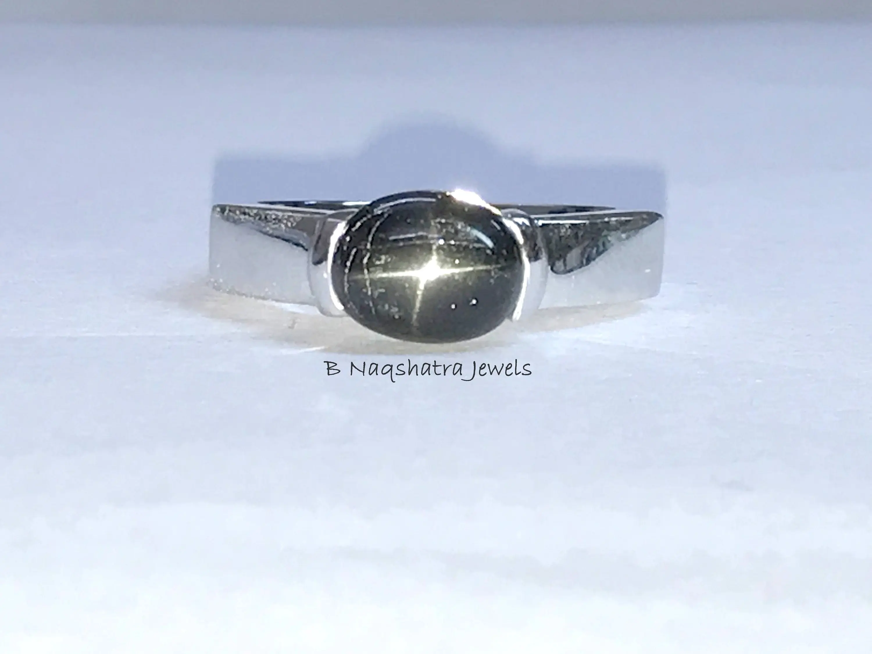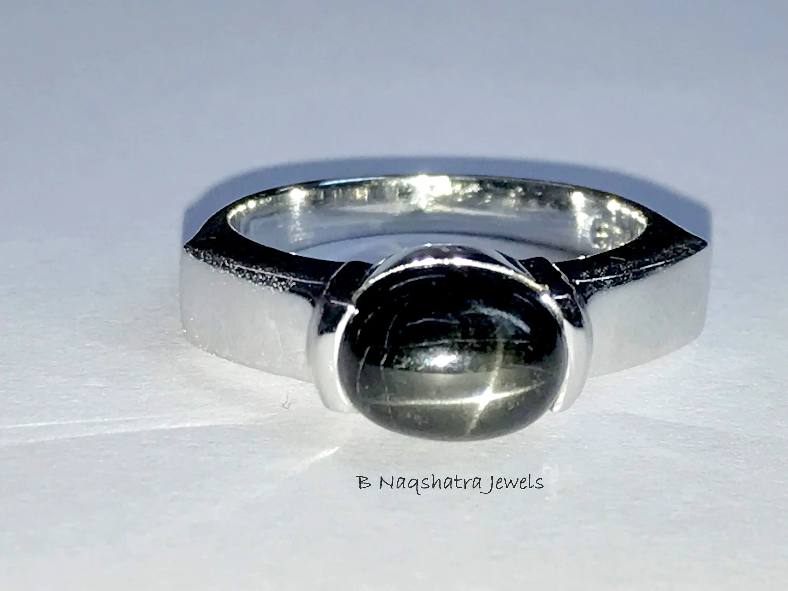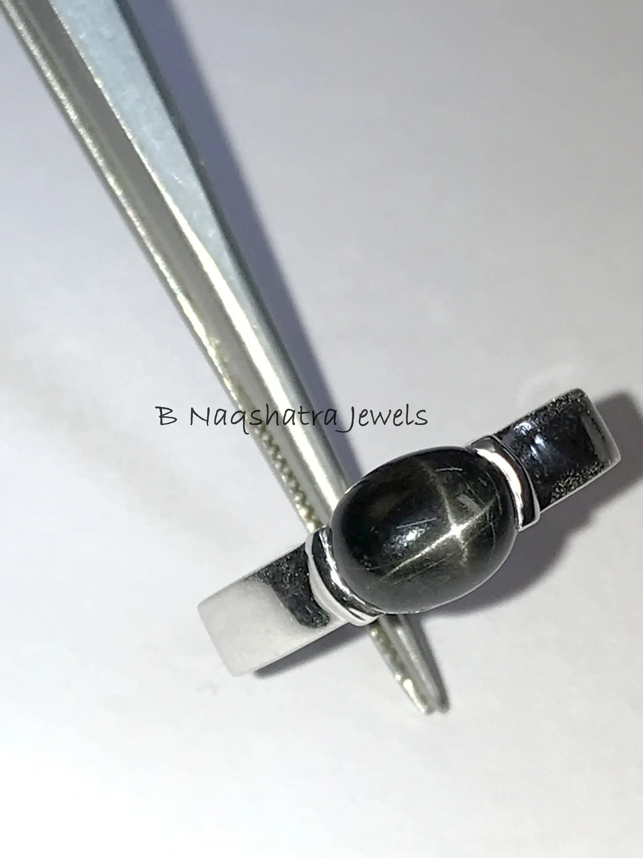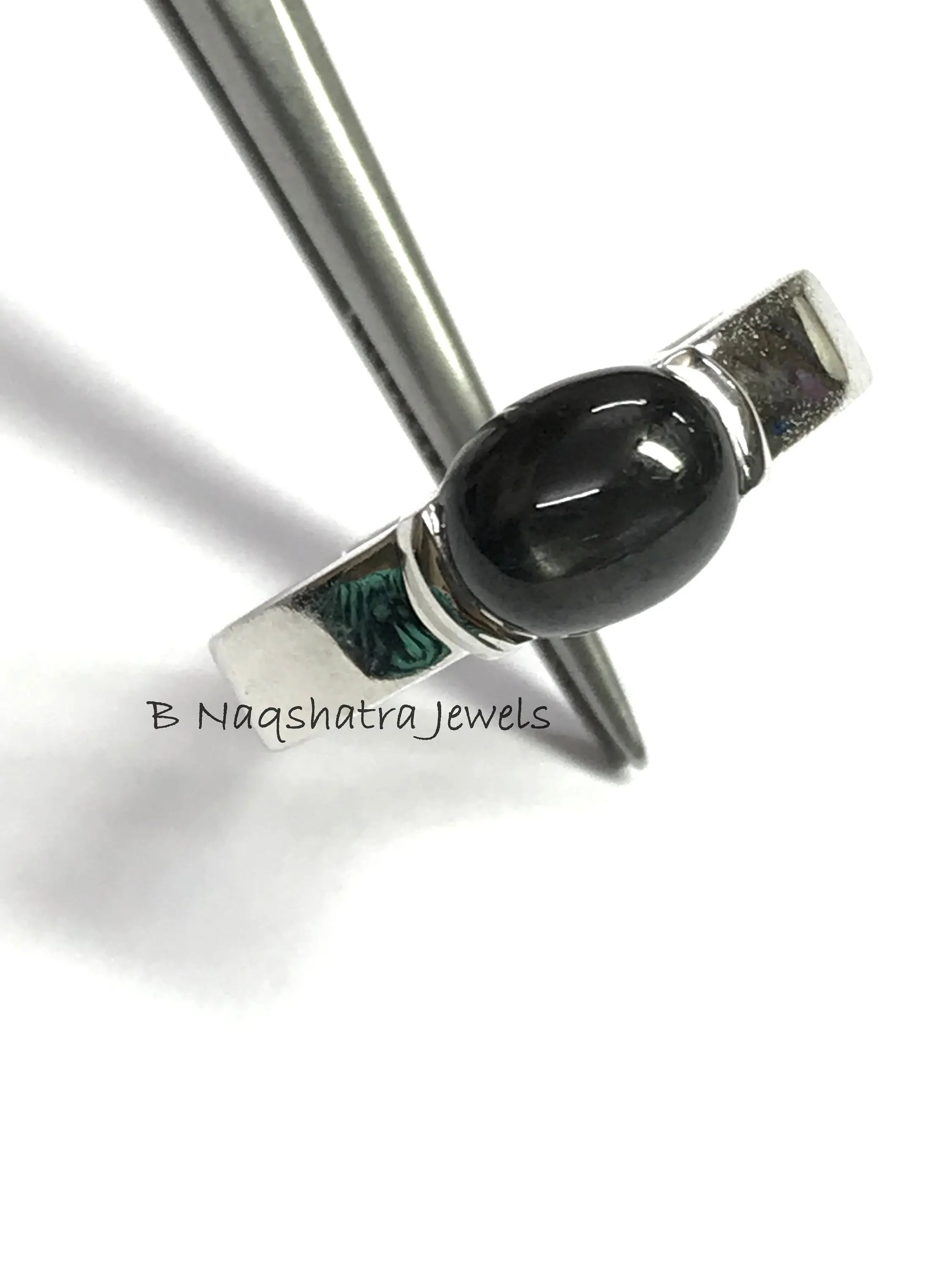 92.5 sterling sliver with rhodium plated rings studded with semi - precious stone as black star...