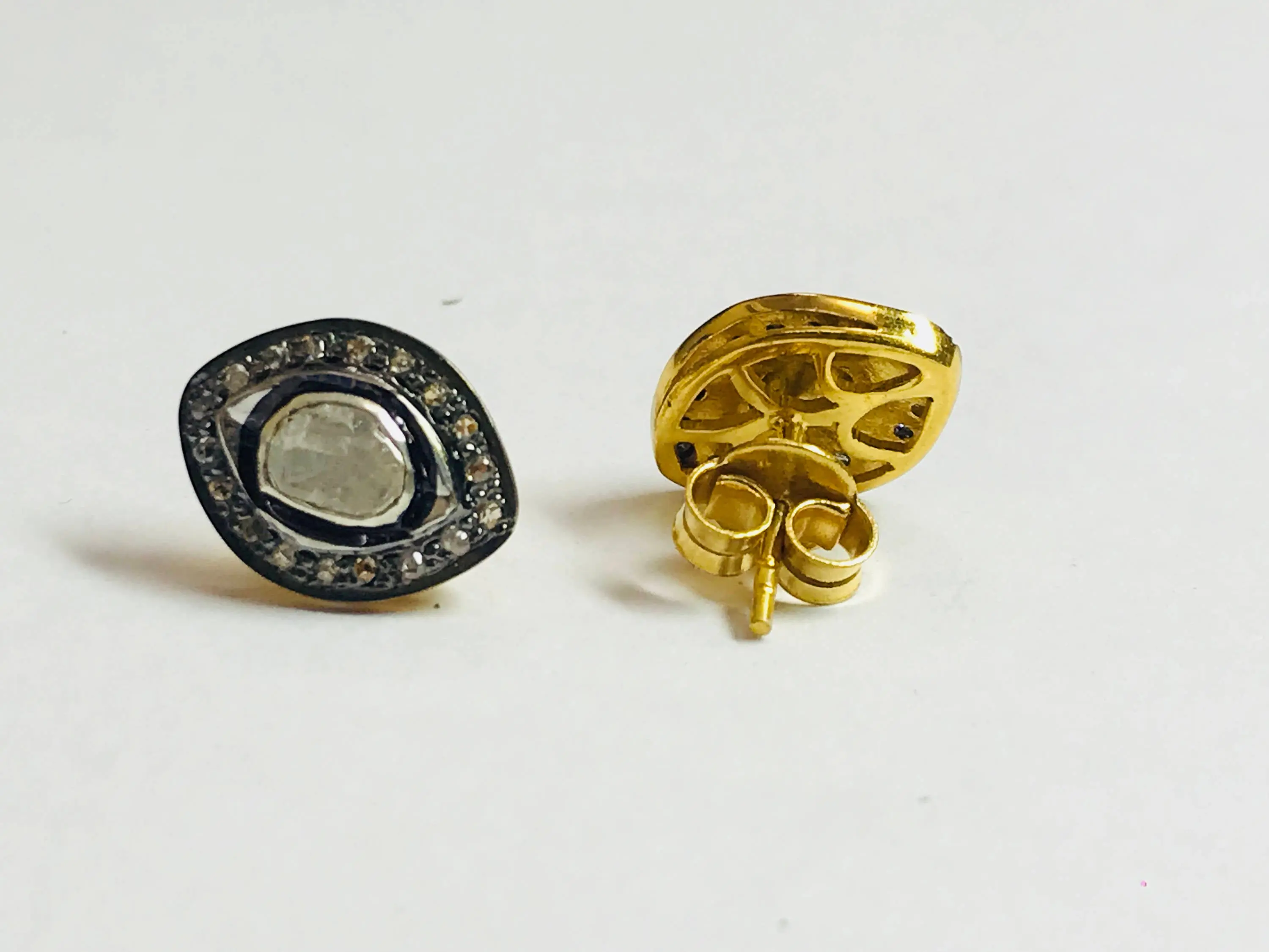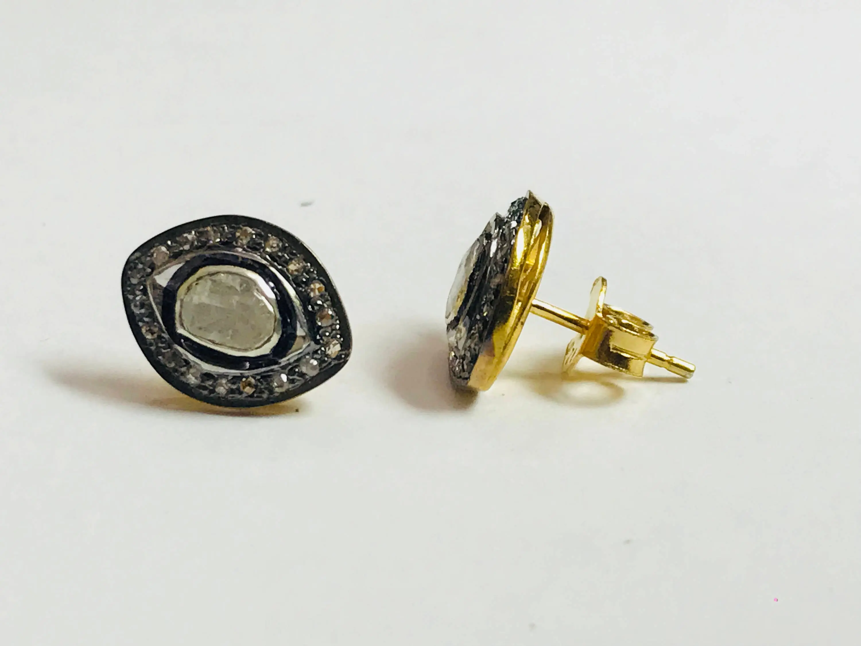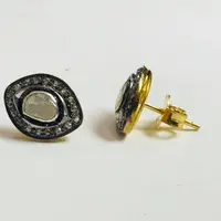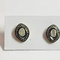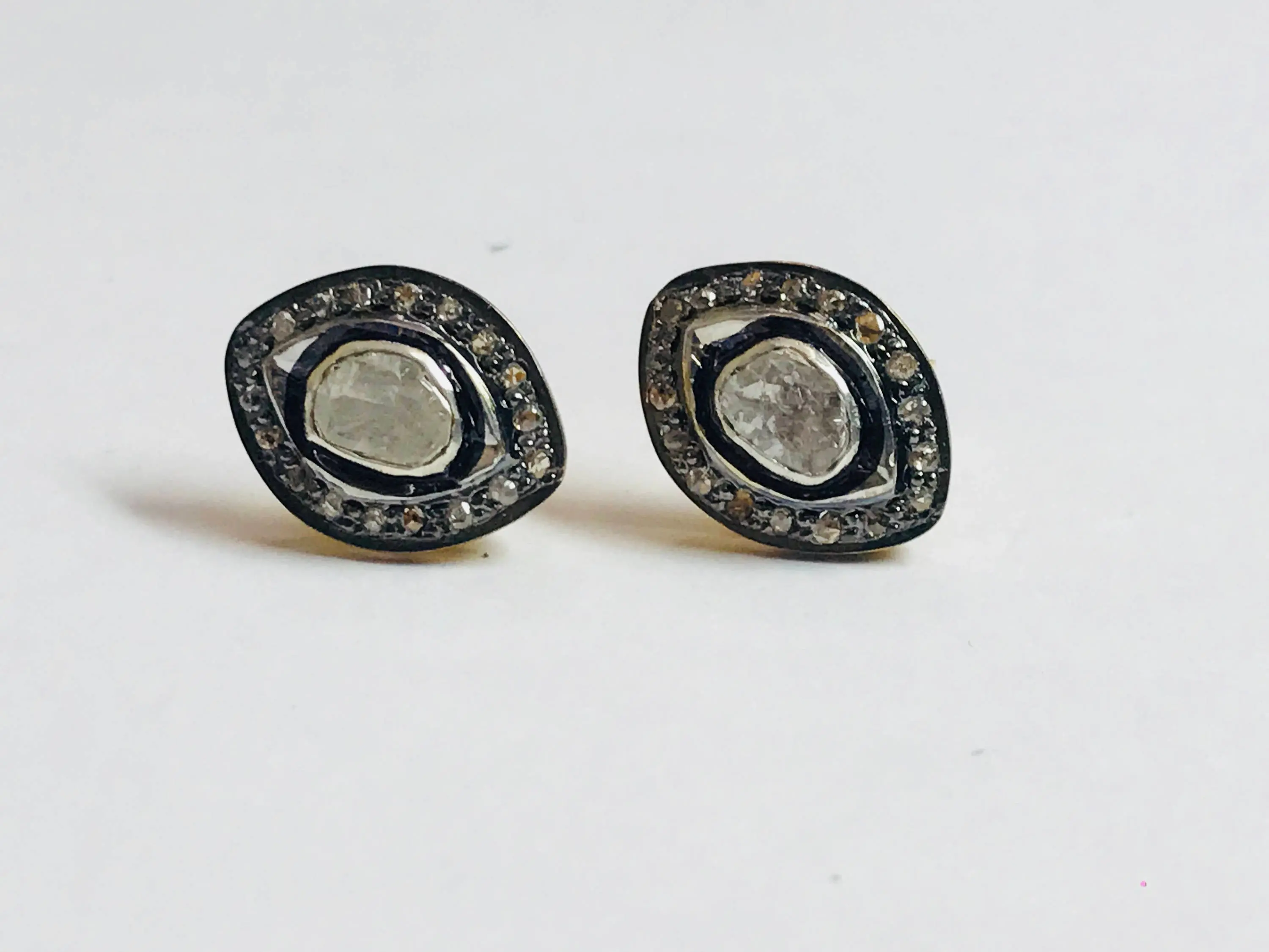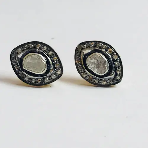 finest handmade art , elegant design , antique style , victorian polki diamonds studs in 925 sterling silver ........