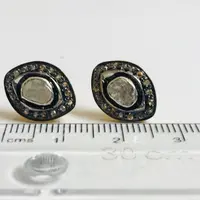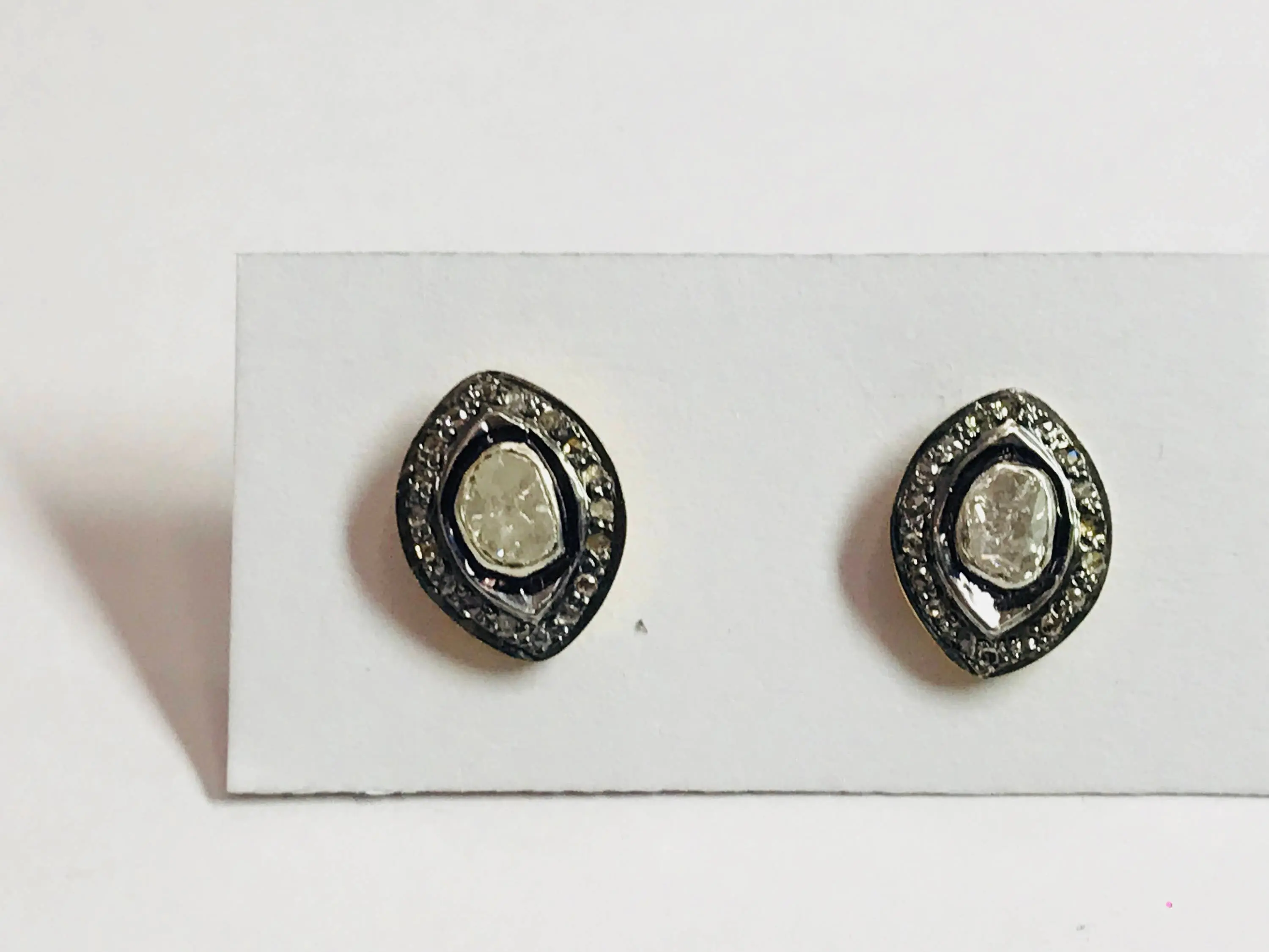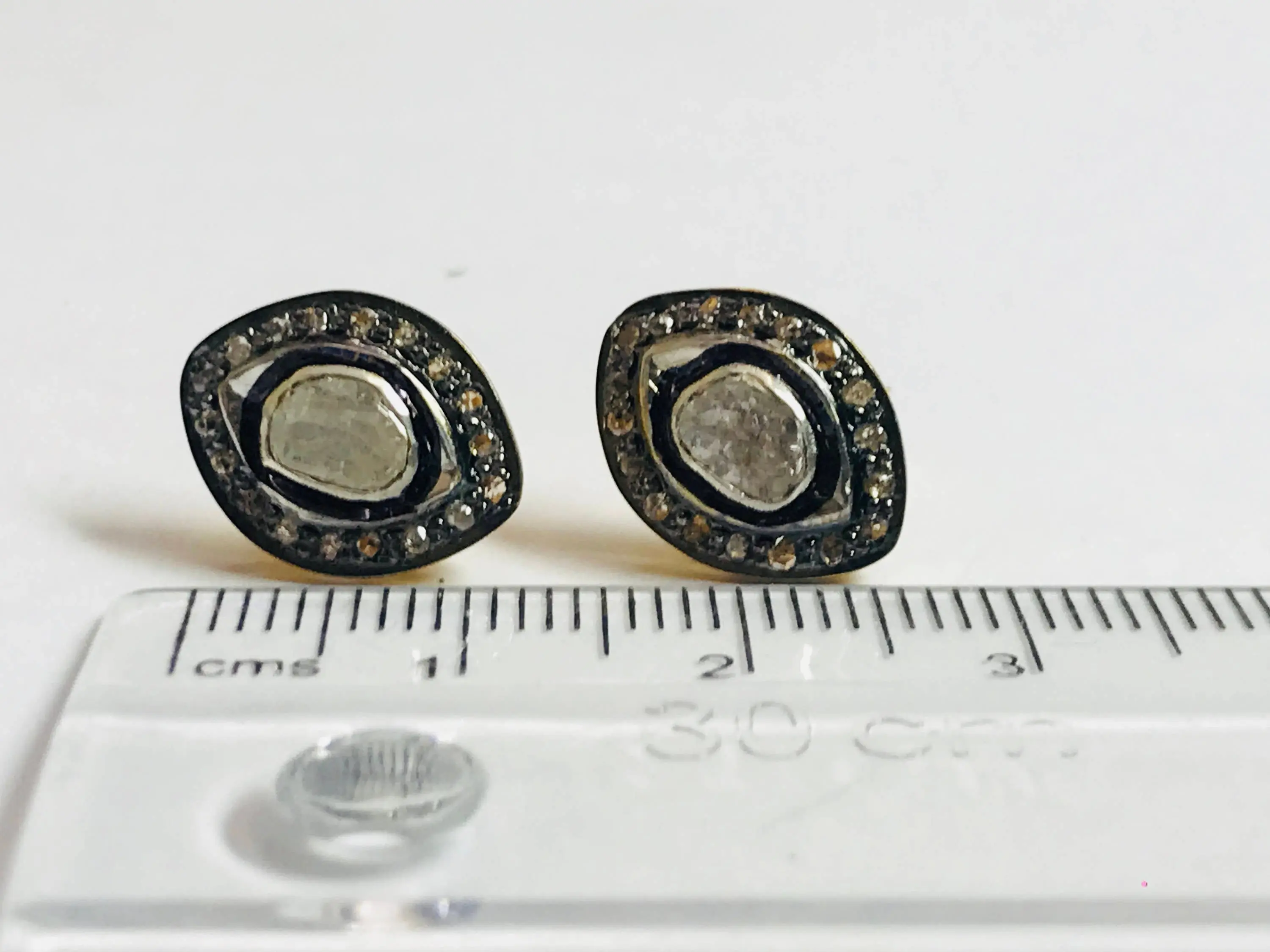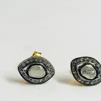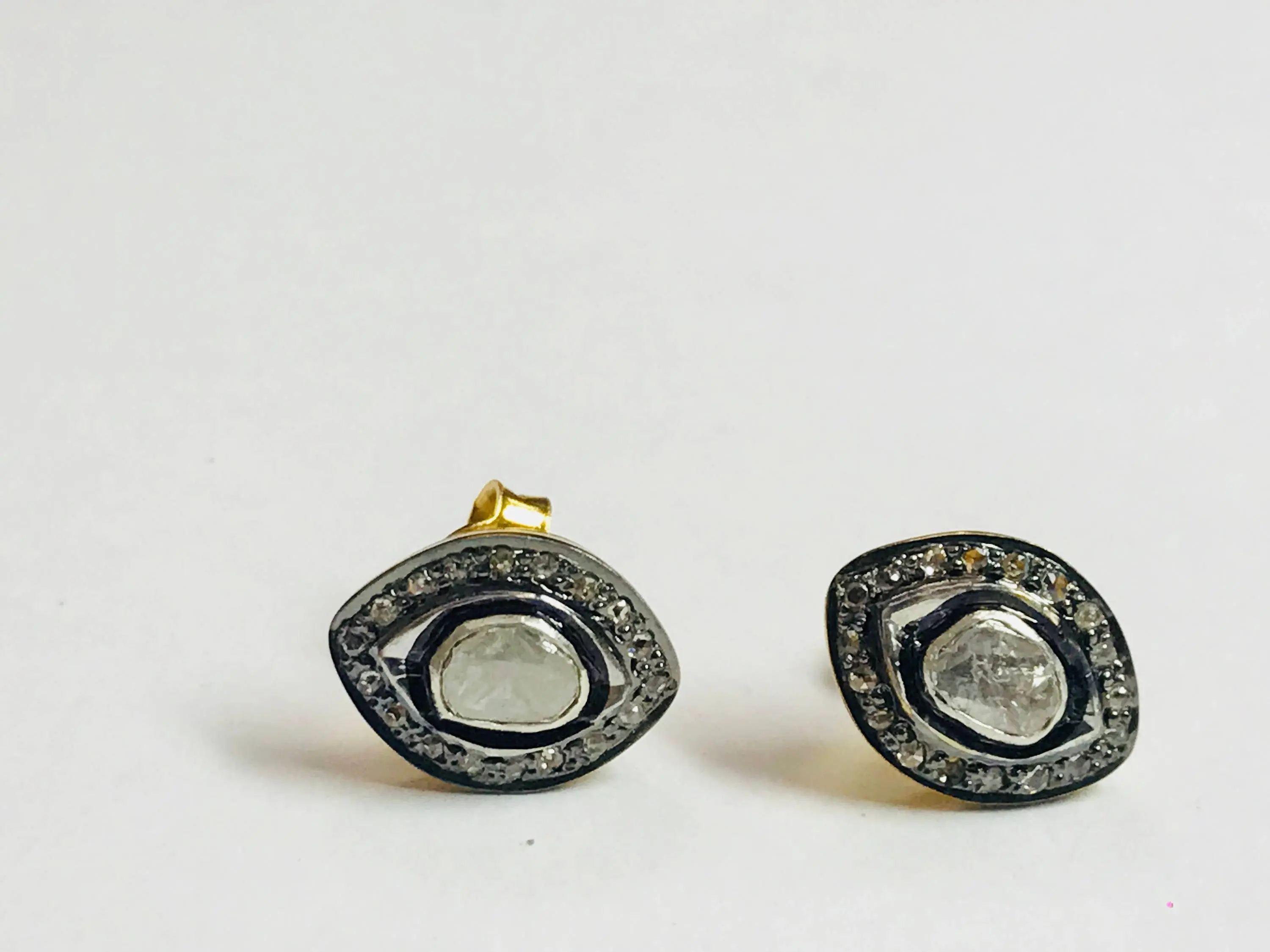 finest handmade art , elegant design , antique style , victorian polki diamonds studs in 925 sterling silver ........