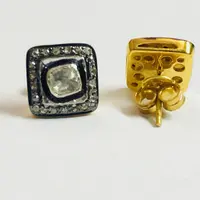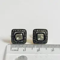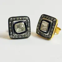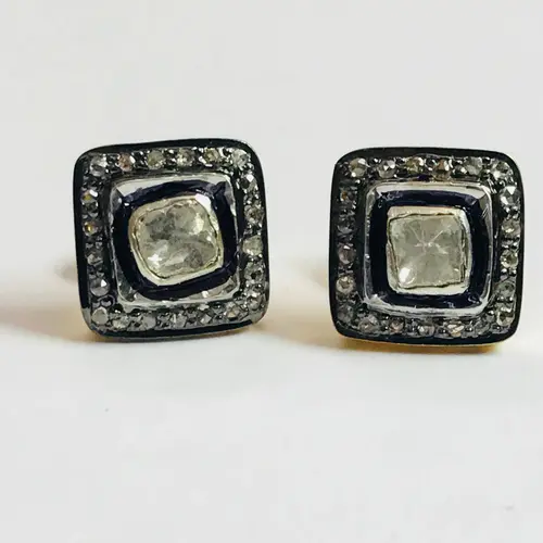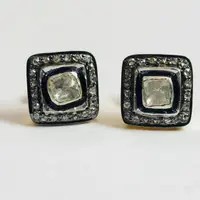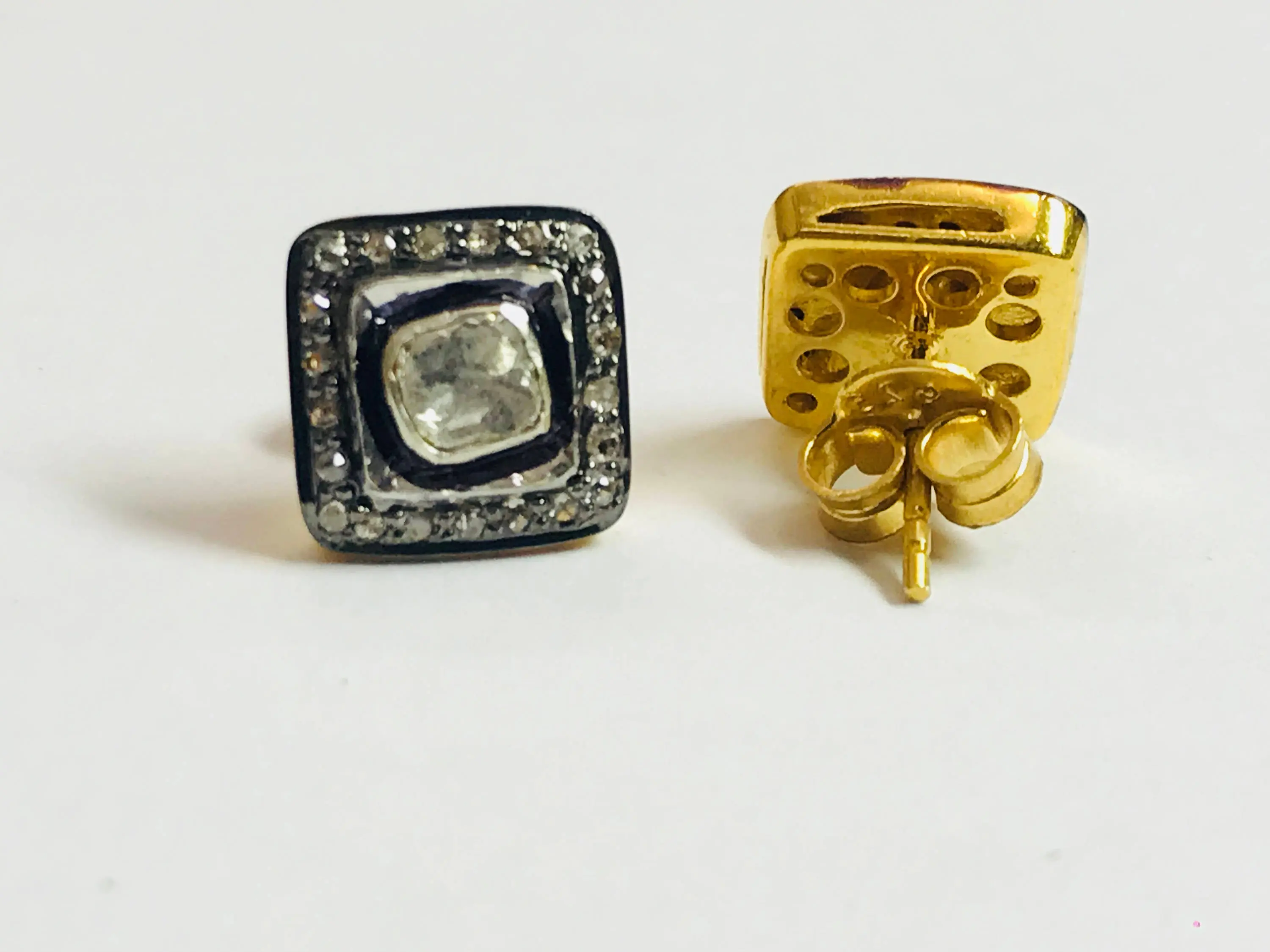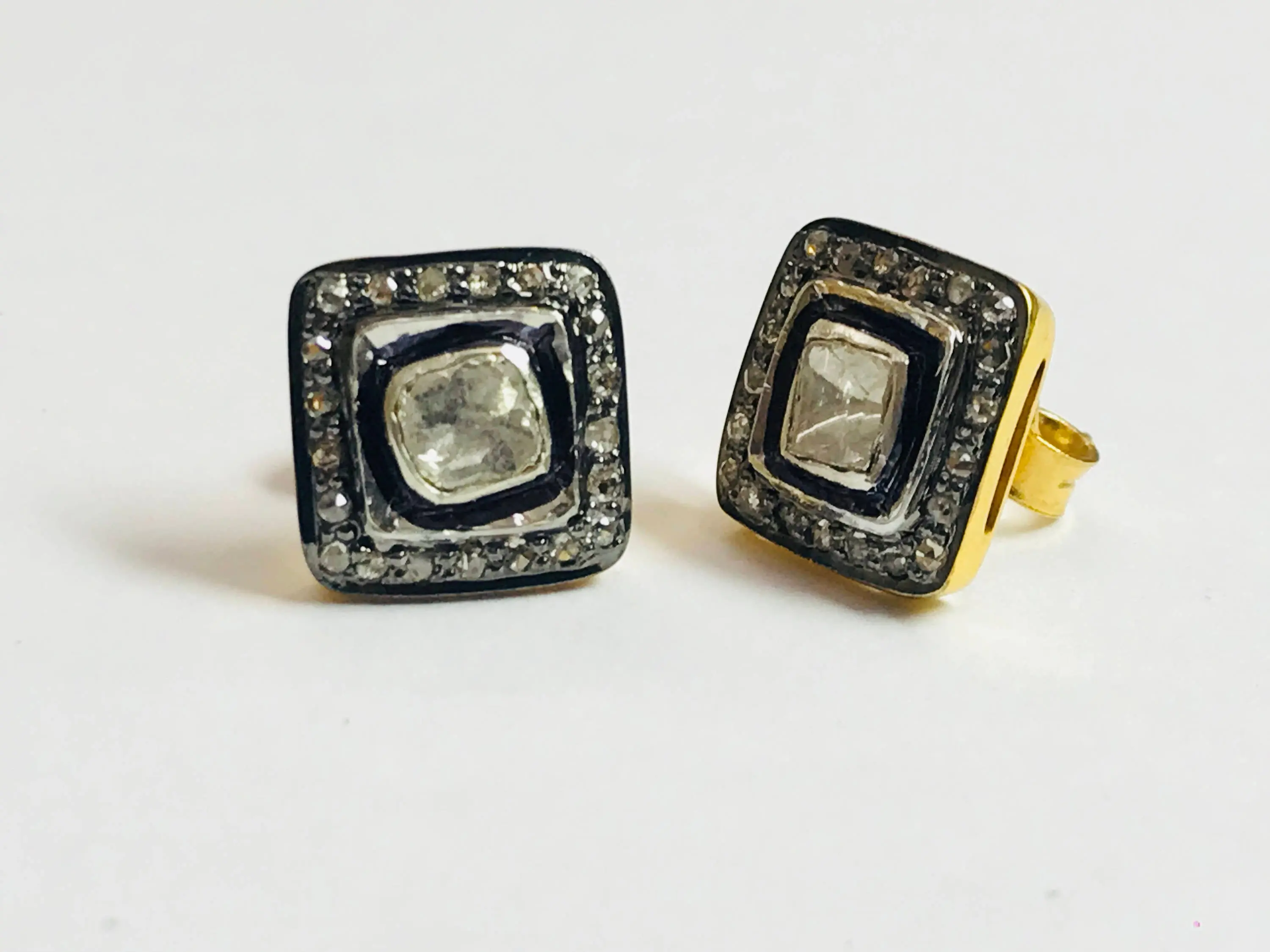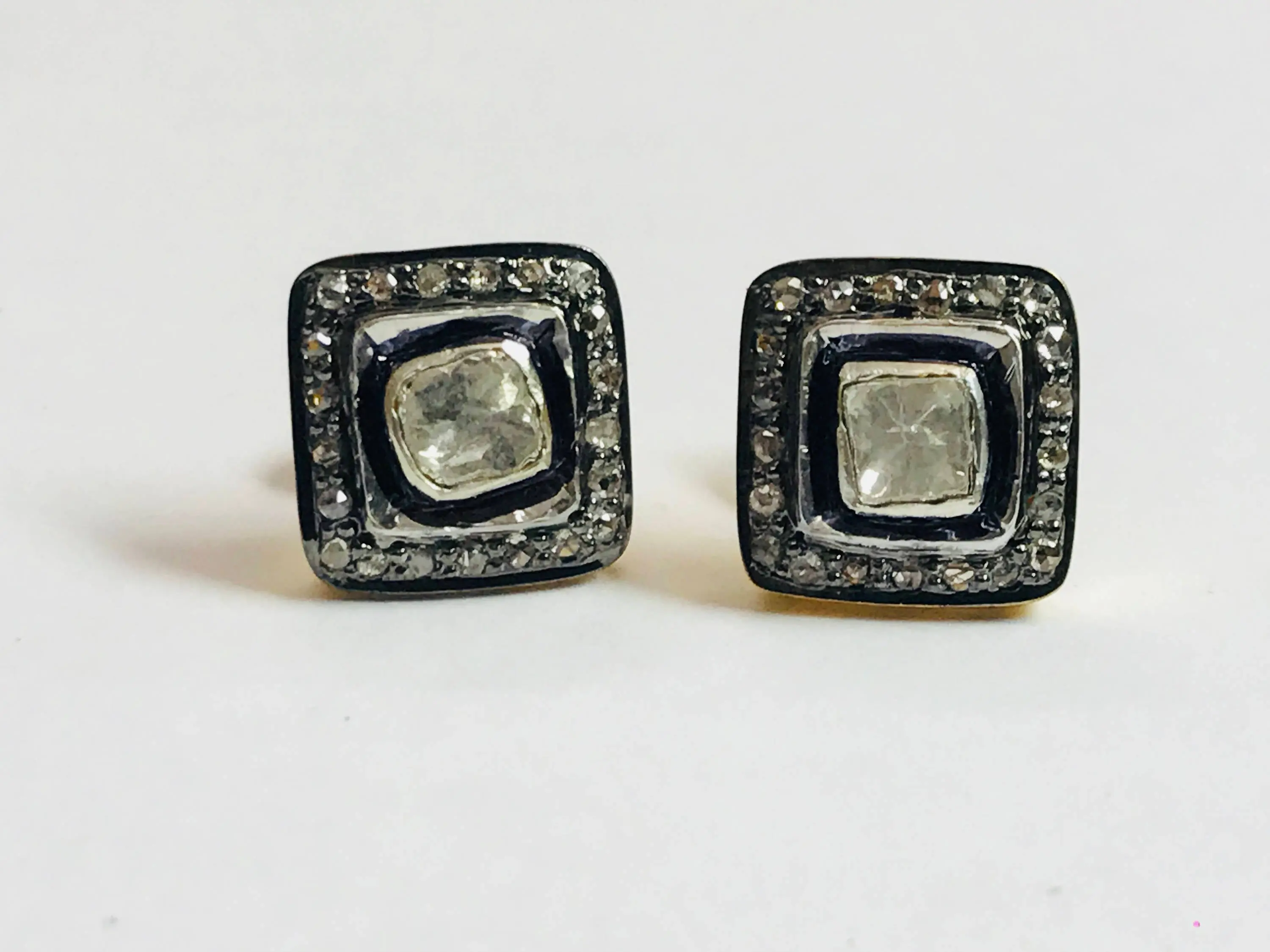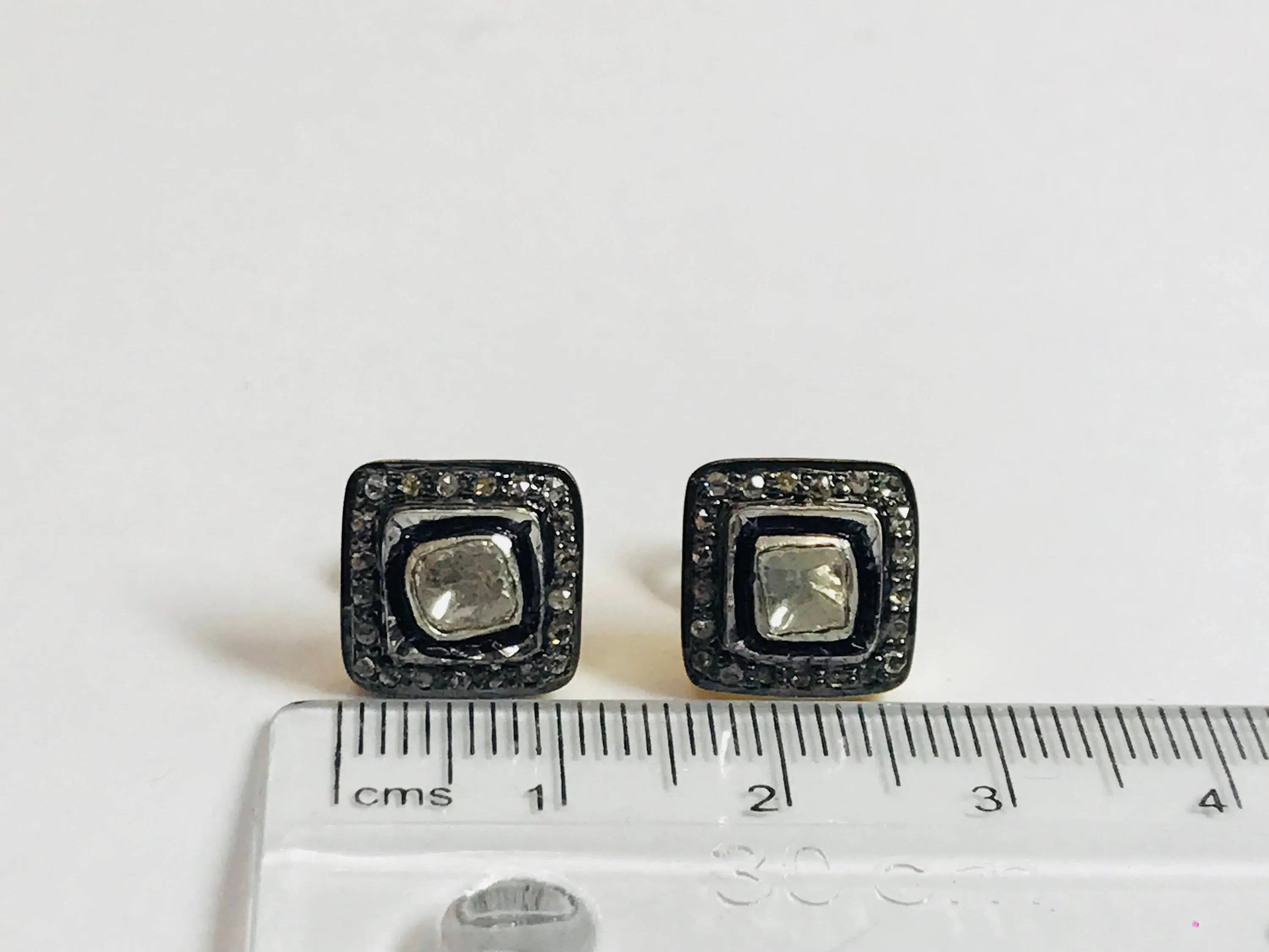 NATURAL DIAMONDS CLUSTER Earrings, Rose cut diamonds , Valentine Gift , Sterling Silver Stud Earrings, Square Shaped Earrings ...