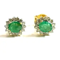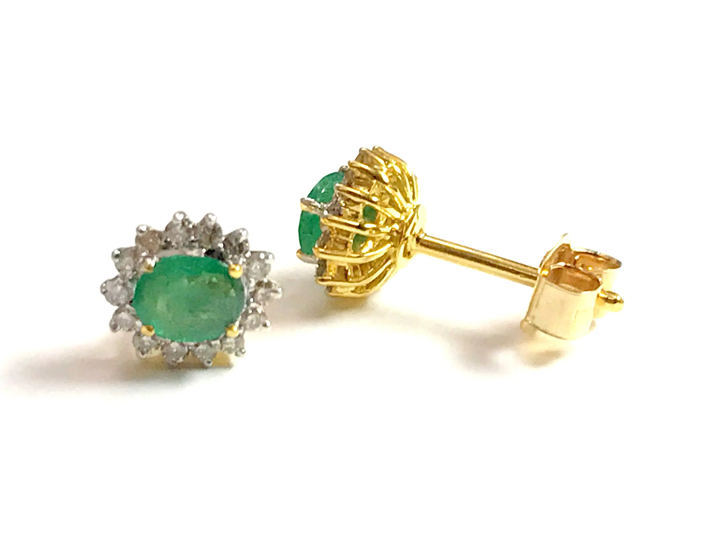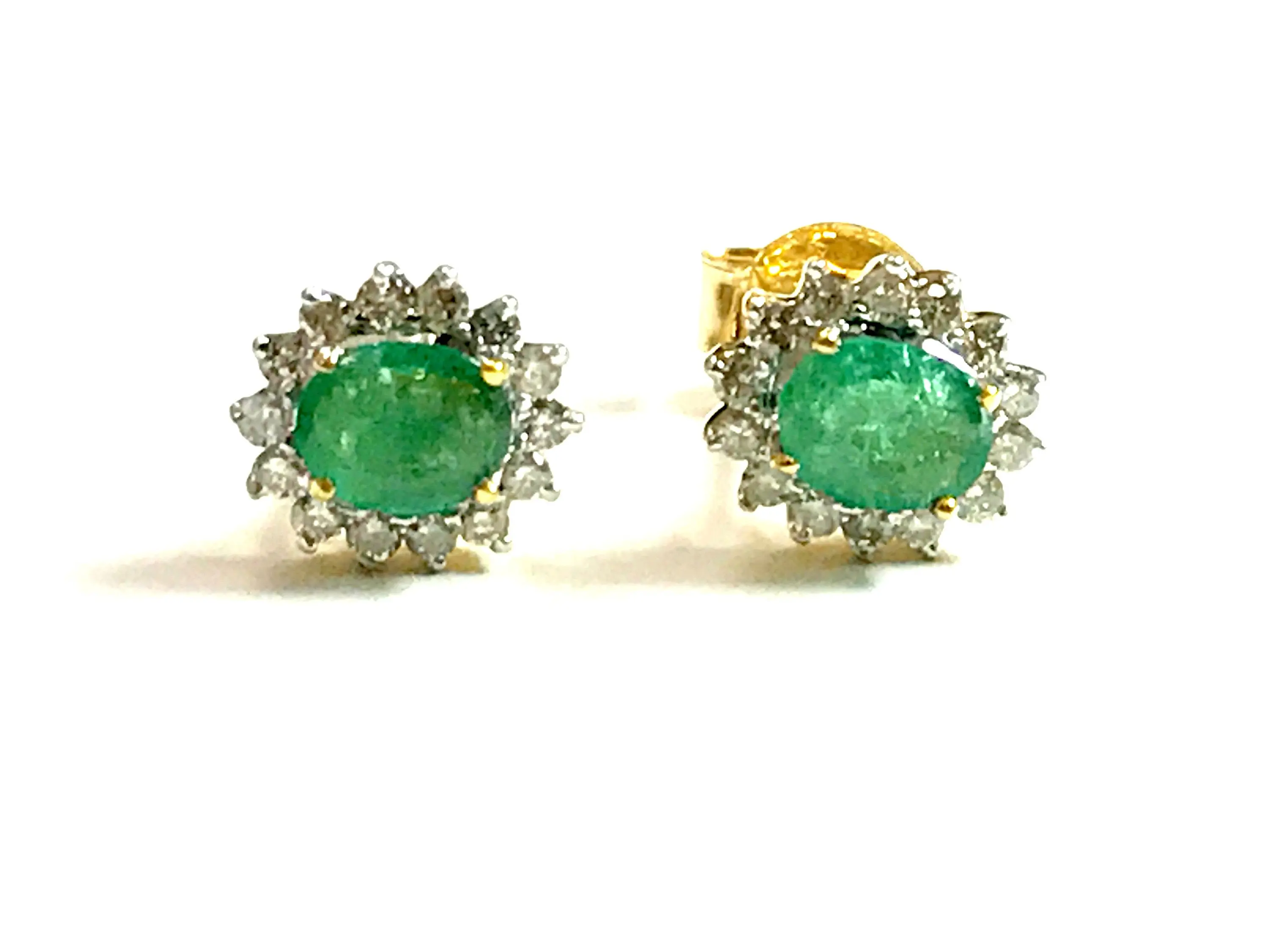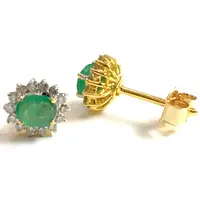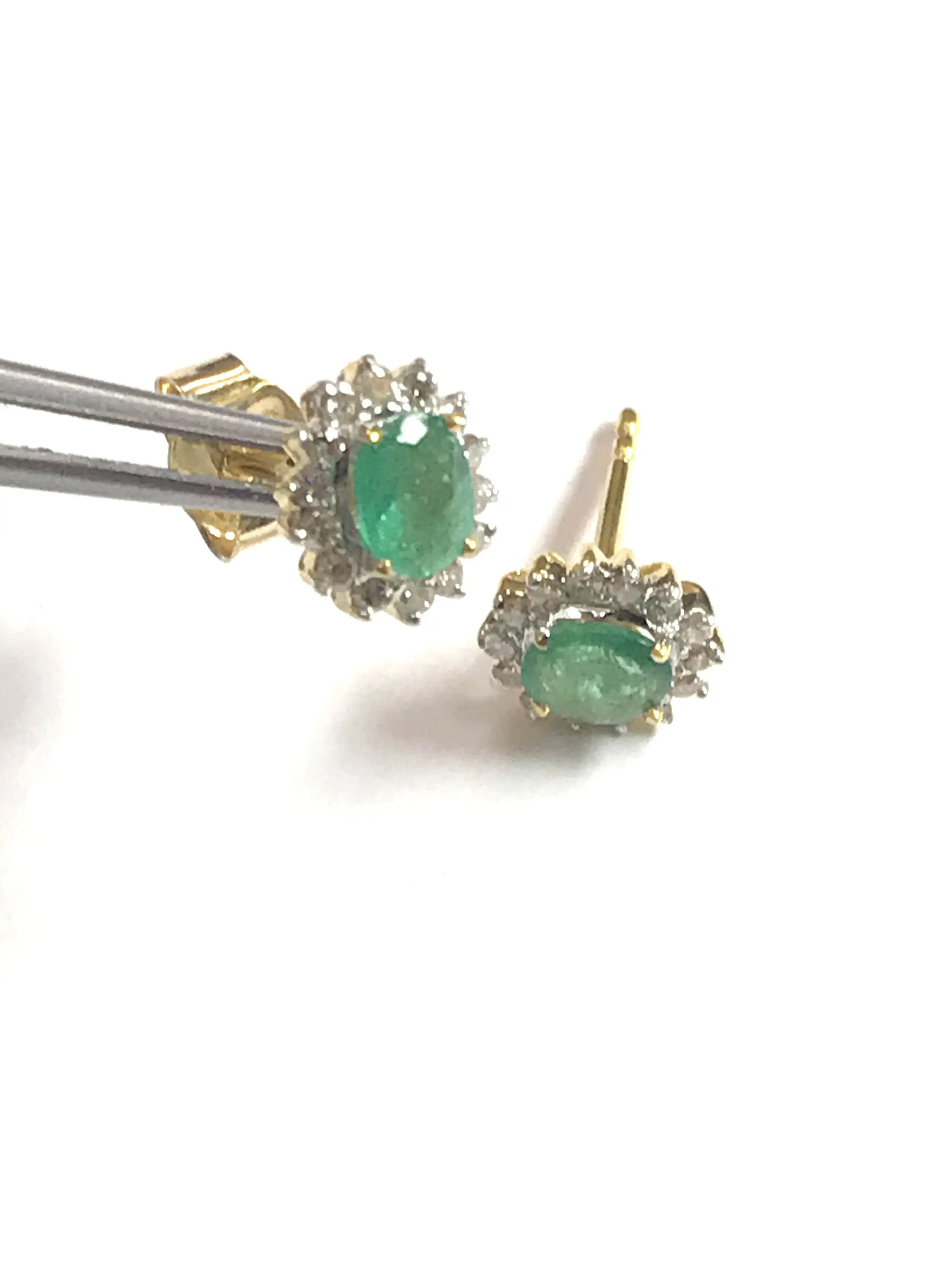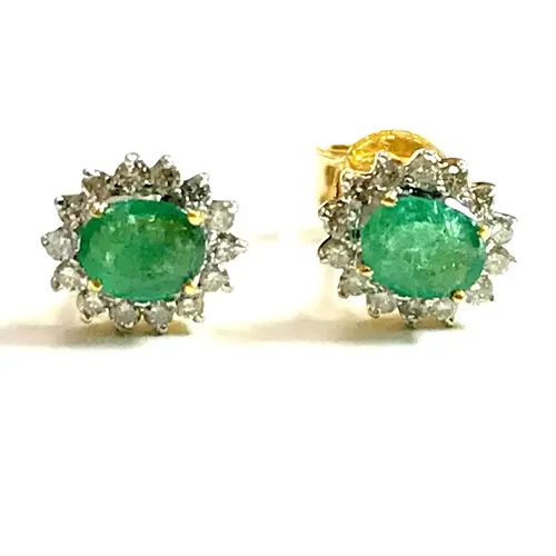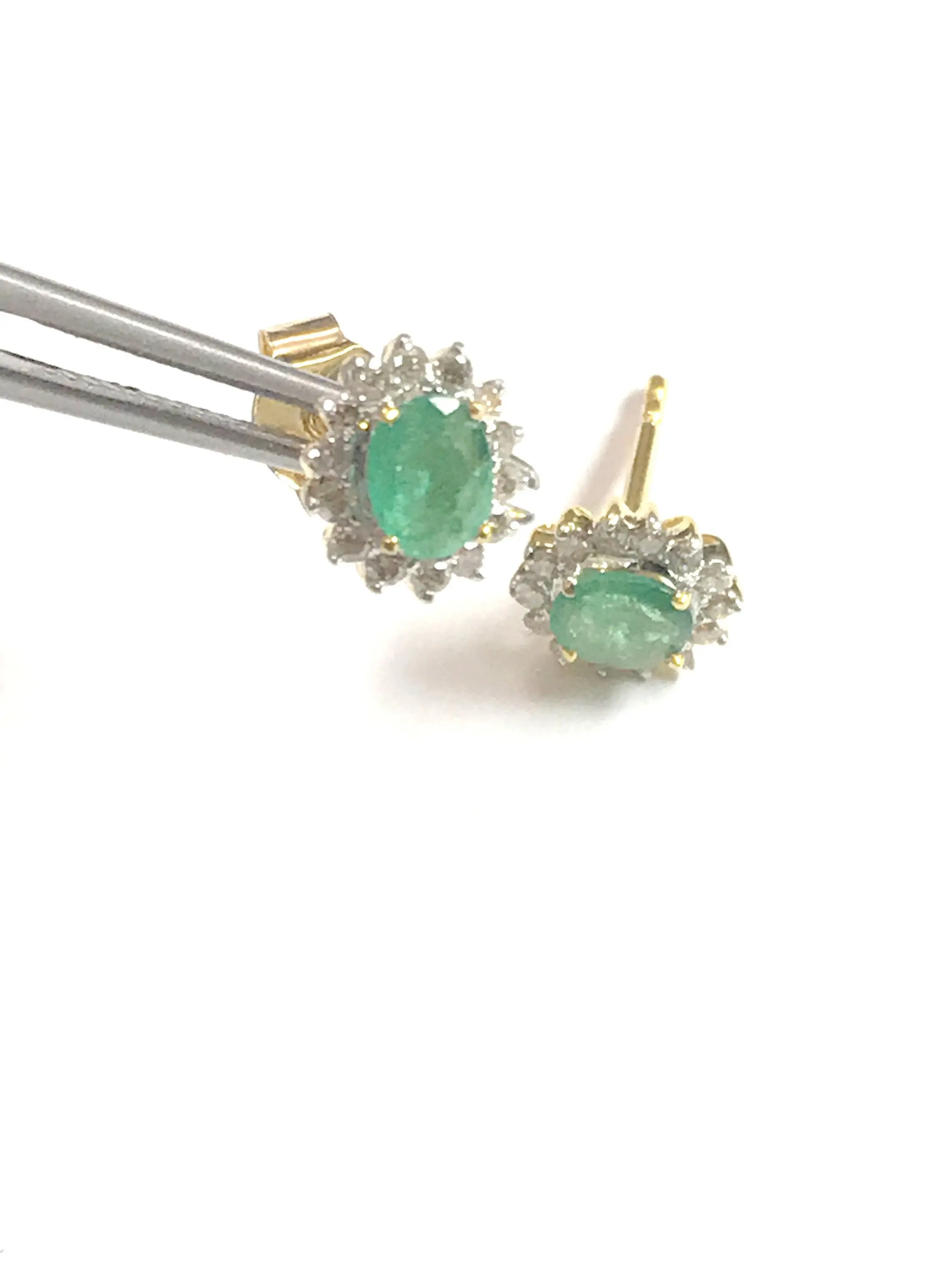 STUD EARRINGS WITH NATURAL EMERALDS,