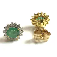 EMERALD DIAMOND push back Earrings,14k Gold Diamond Cluster,Emerald Gemstone,May Birthstone ,Gift for Her