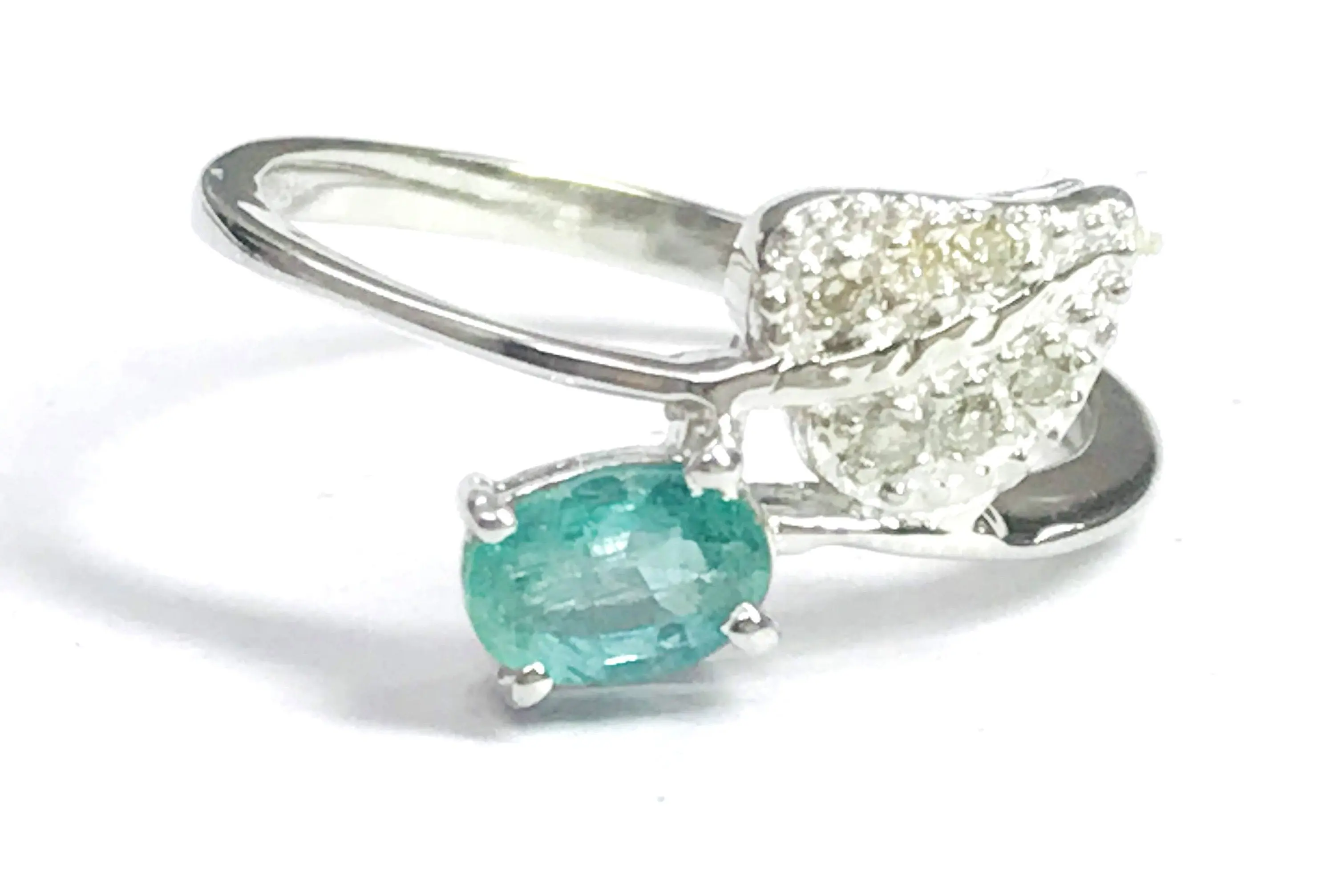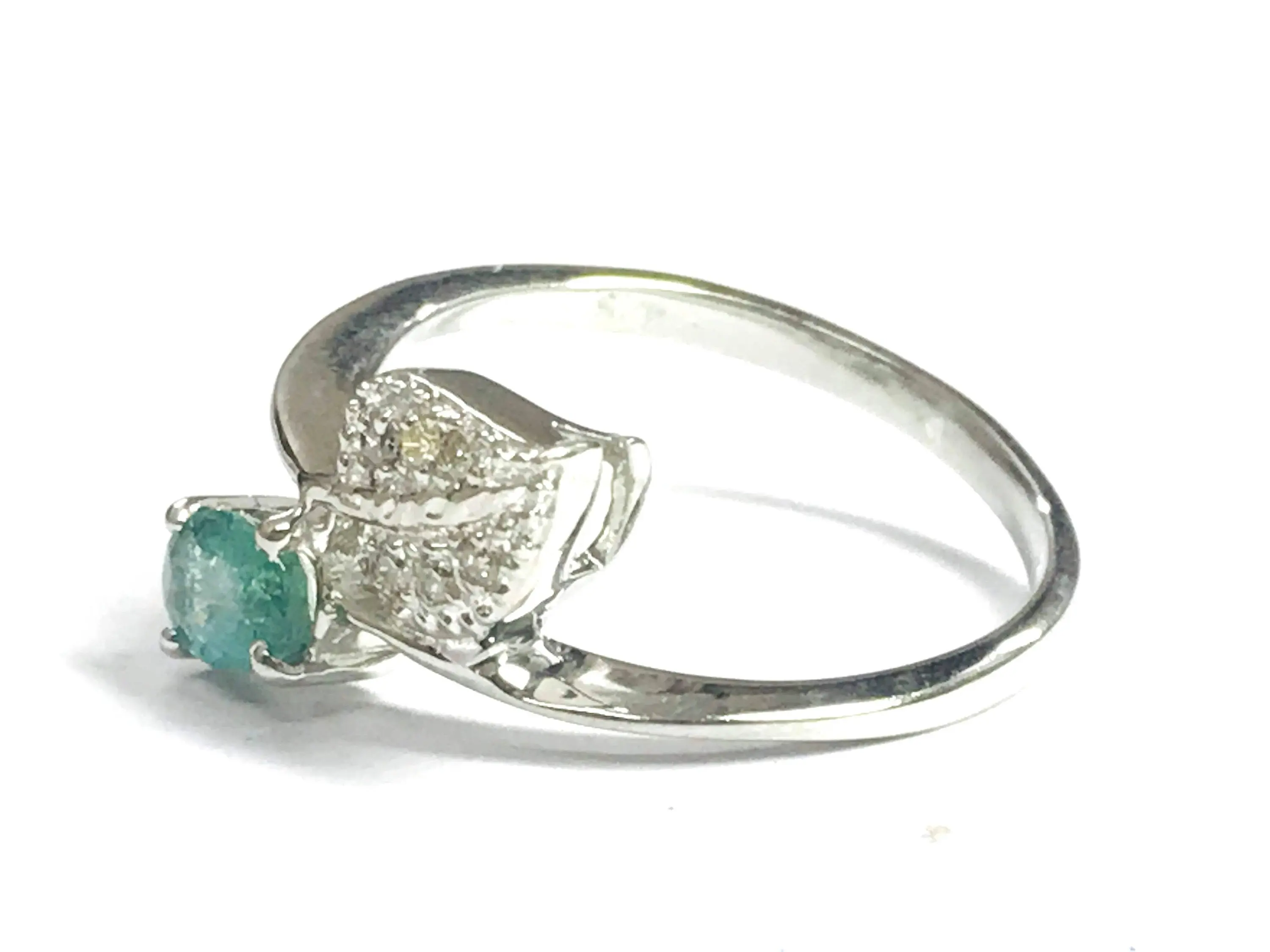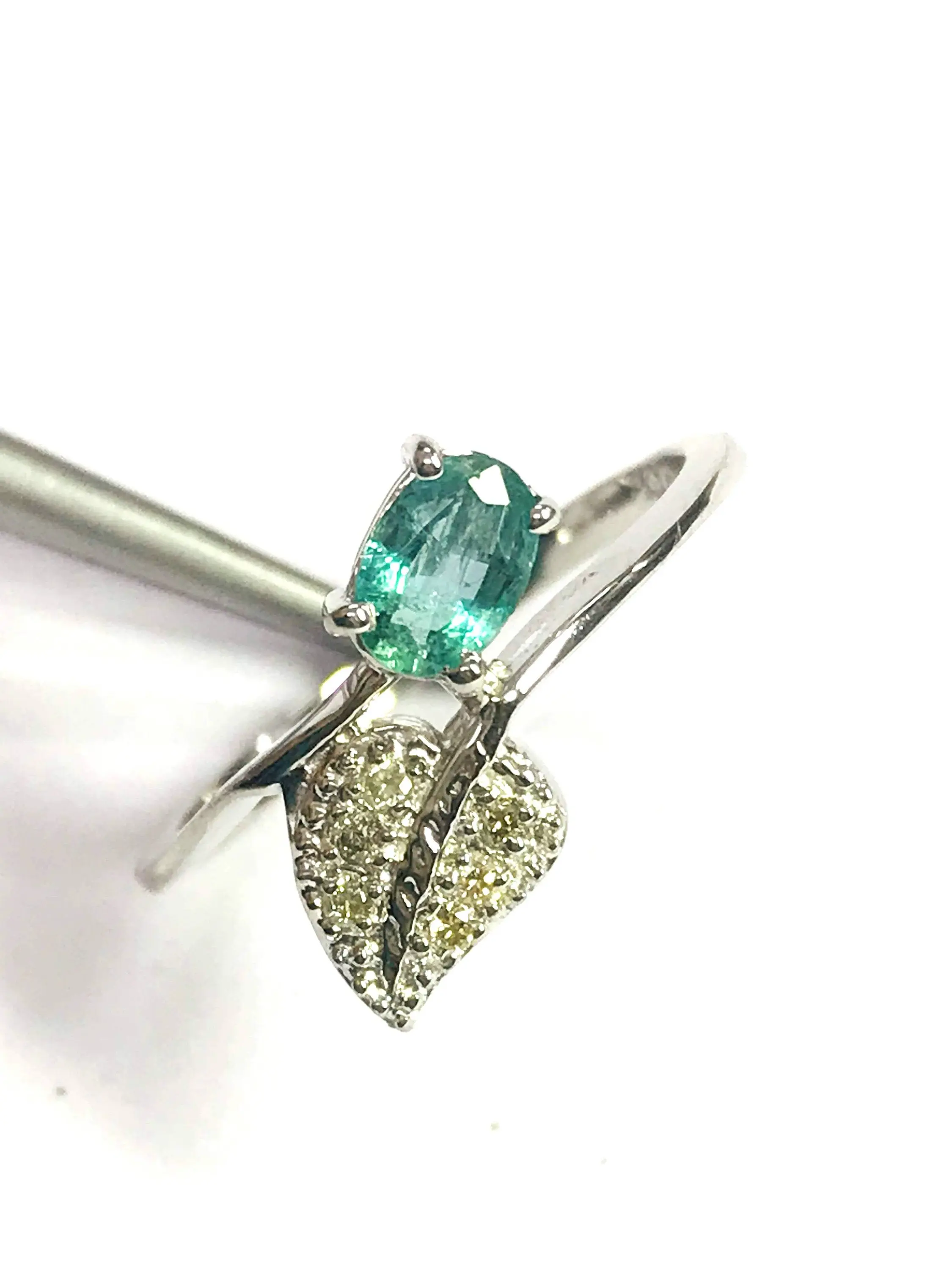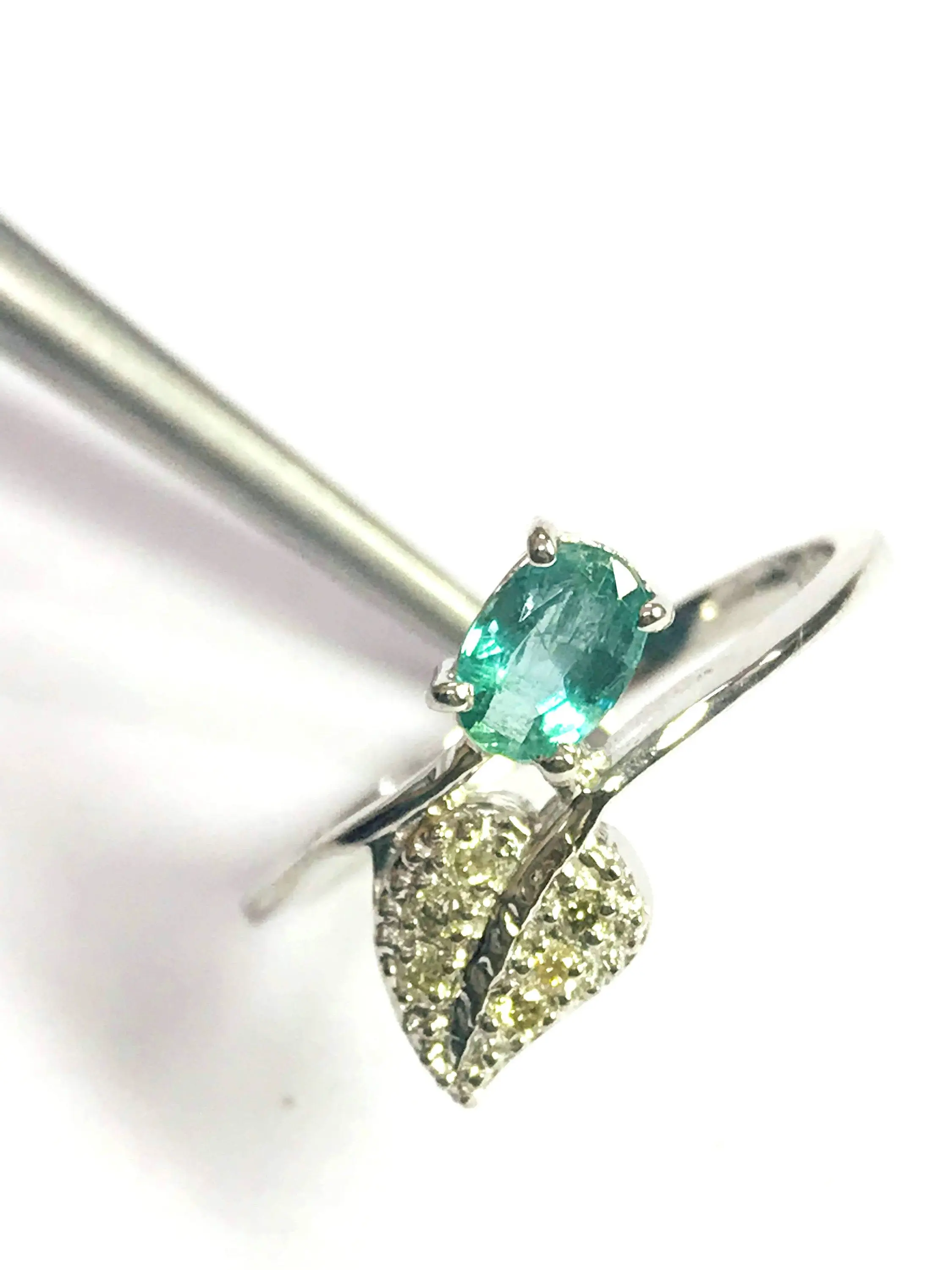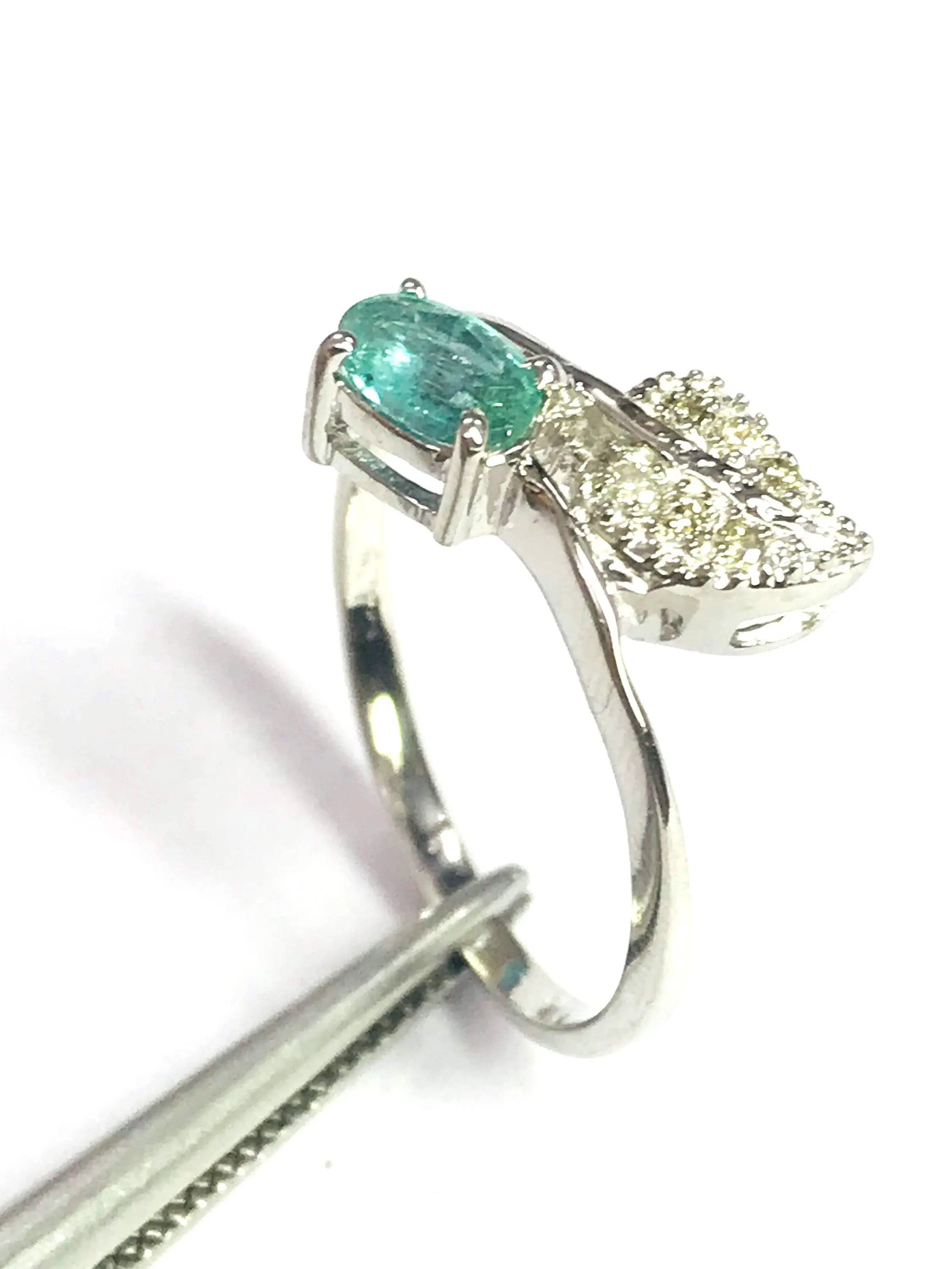 Super thin and feminine ring with a lovely ova faceted natural emerald diamond ring .........