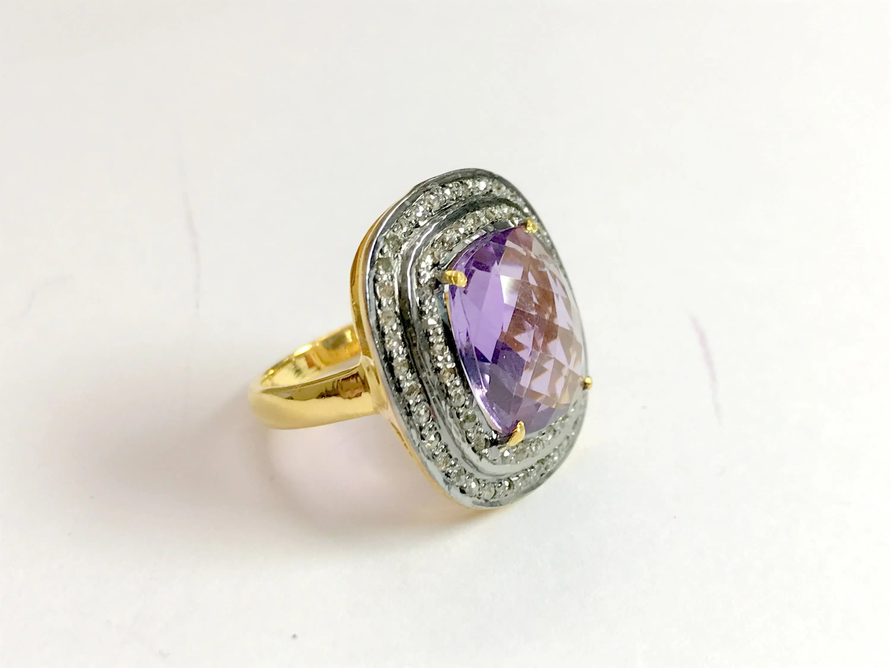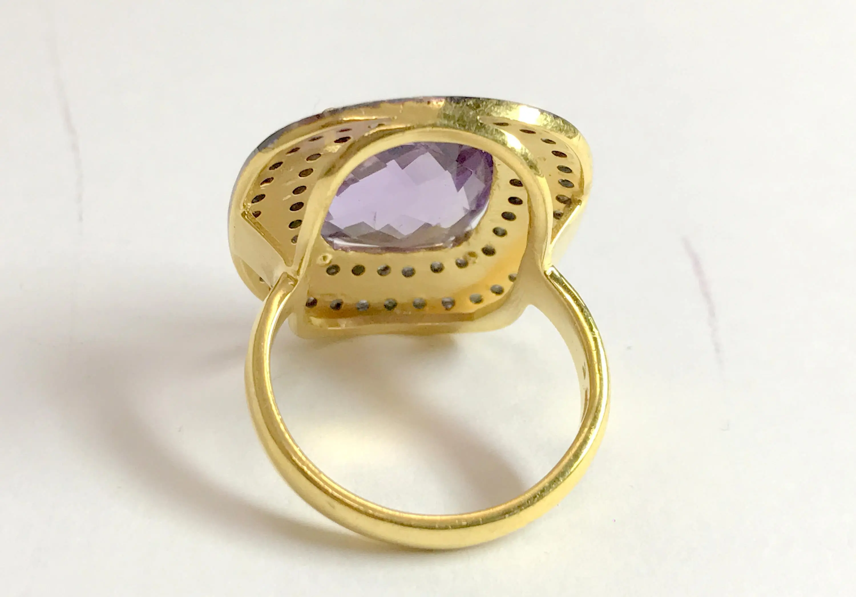 AMETHYST CUSHION COCKTAIL Ring,Diamonds cluster,February birthstone,Art Deco Ring ,Victorian Ring , Women Jewelry