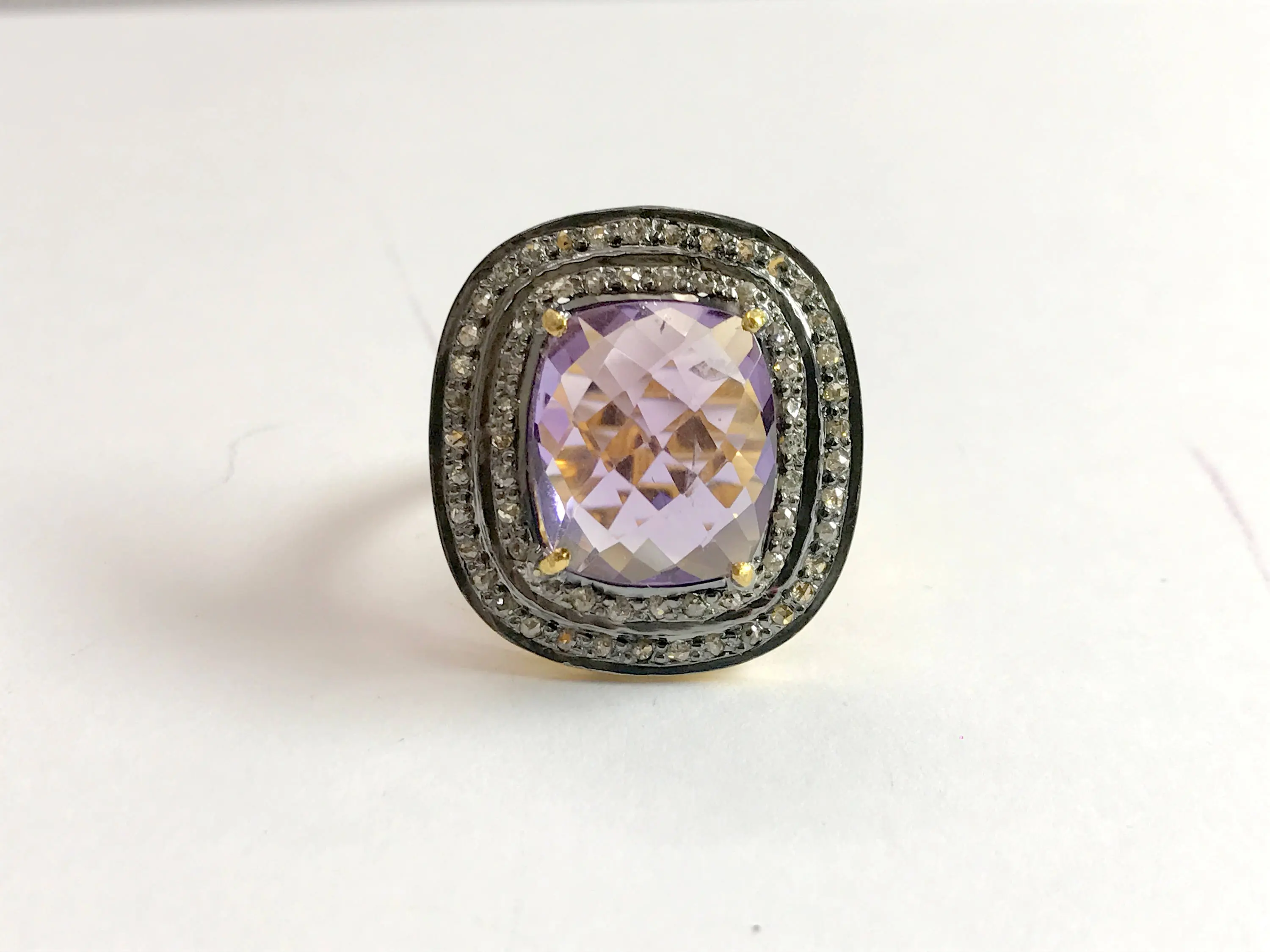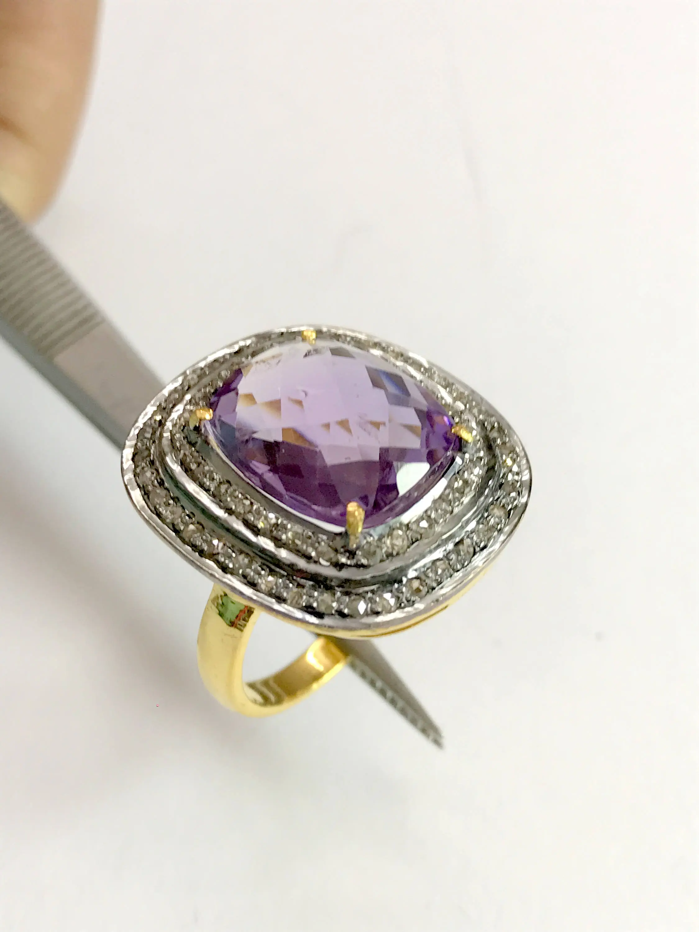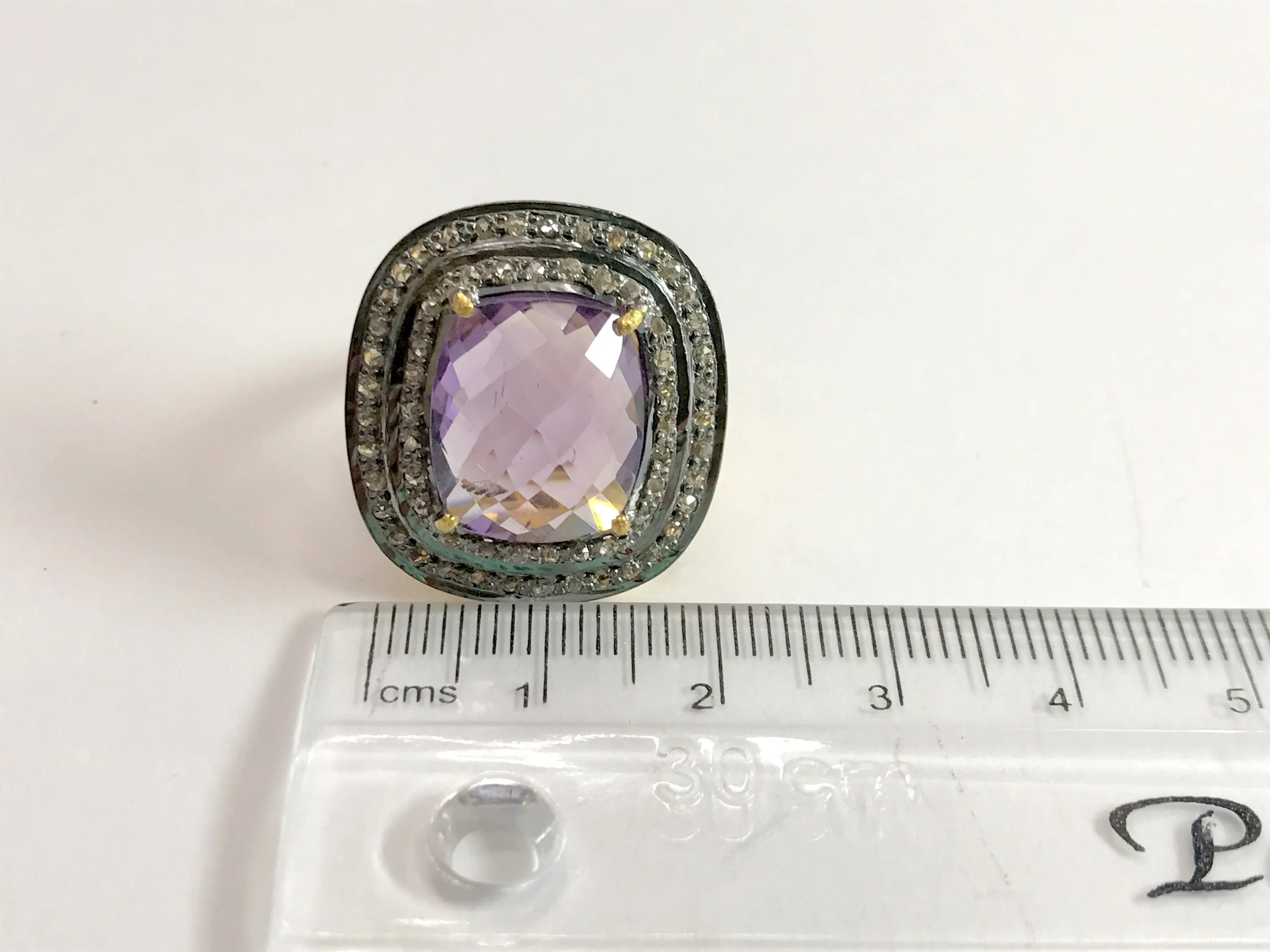 AAA natural super fine quality silver ring of purple amethyst .......amethyst rings........with rose cut diamonds cluster in pave setting ...