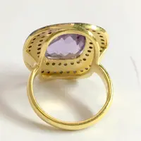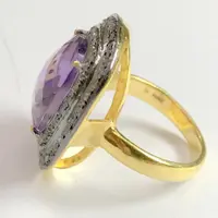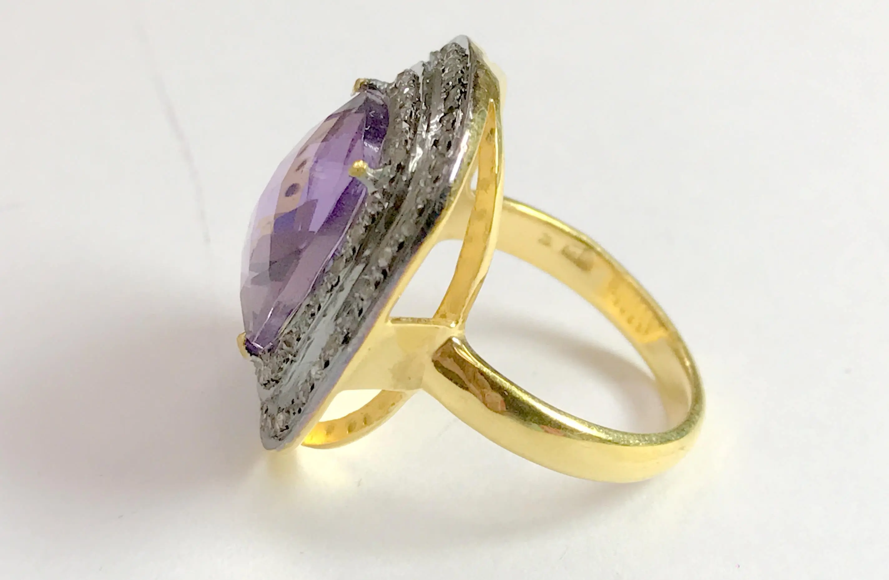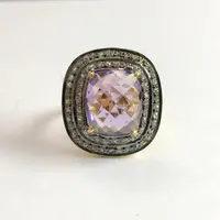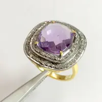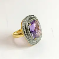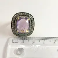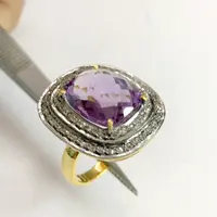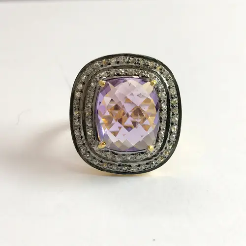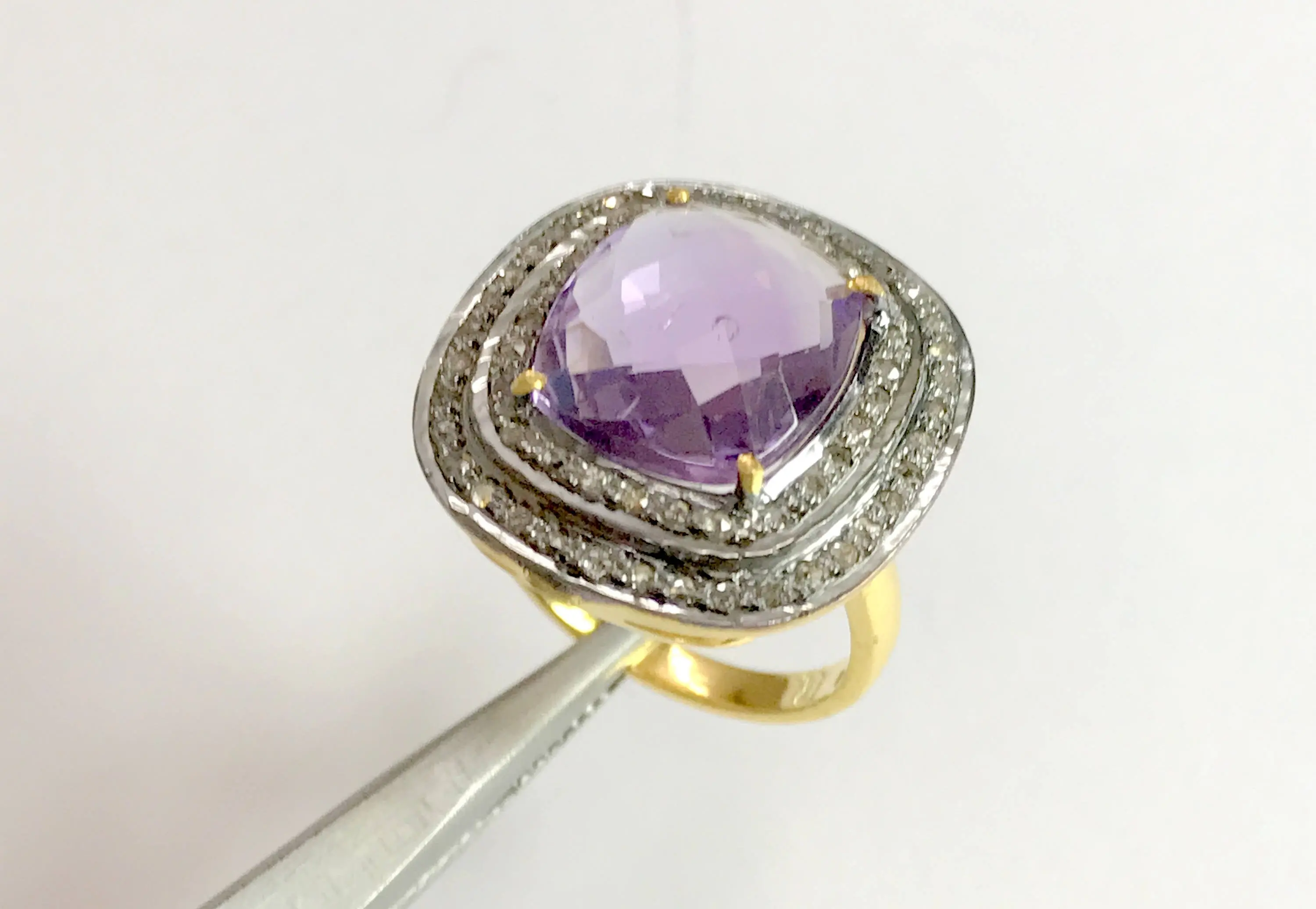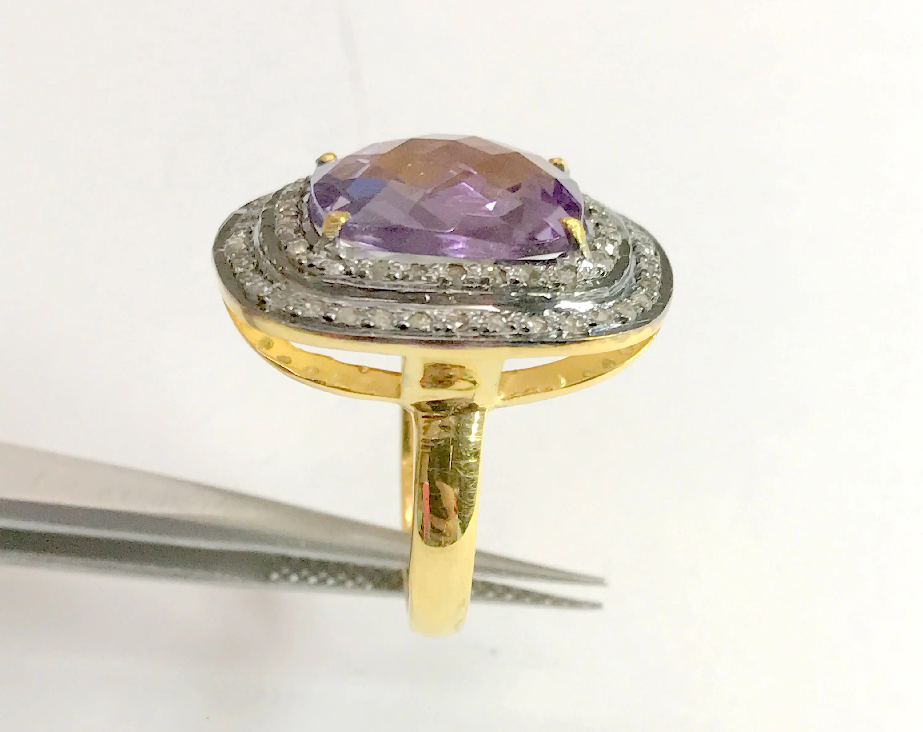 AAA natural super fine quality silver ring of purple amethyst .......amethyst rings........with rose cut diamonds cluster in pave setting ...