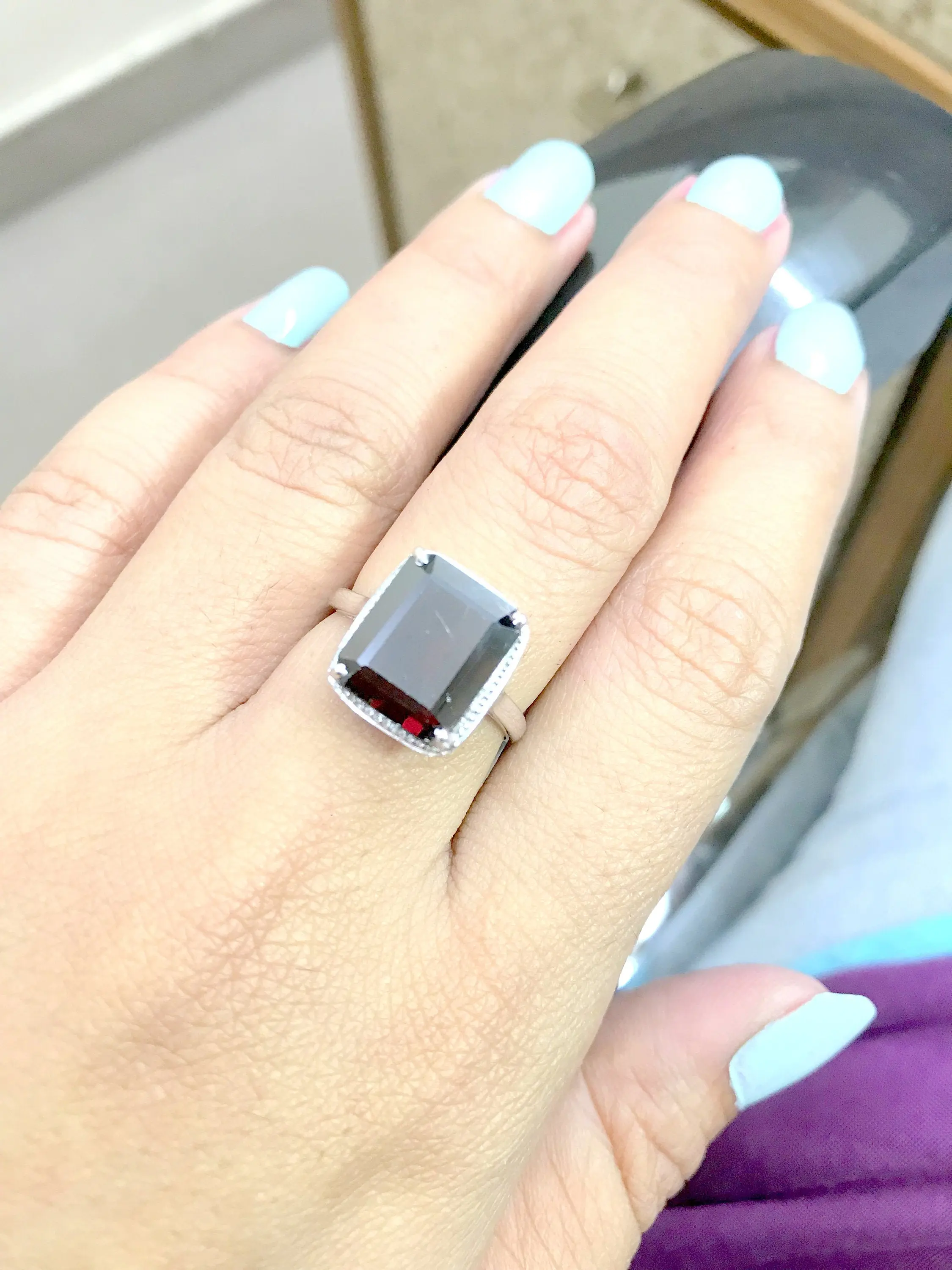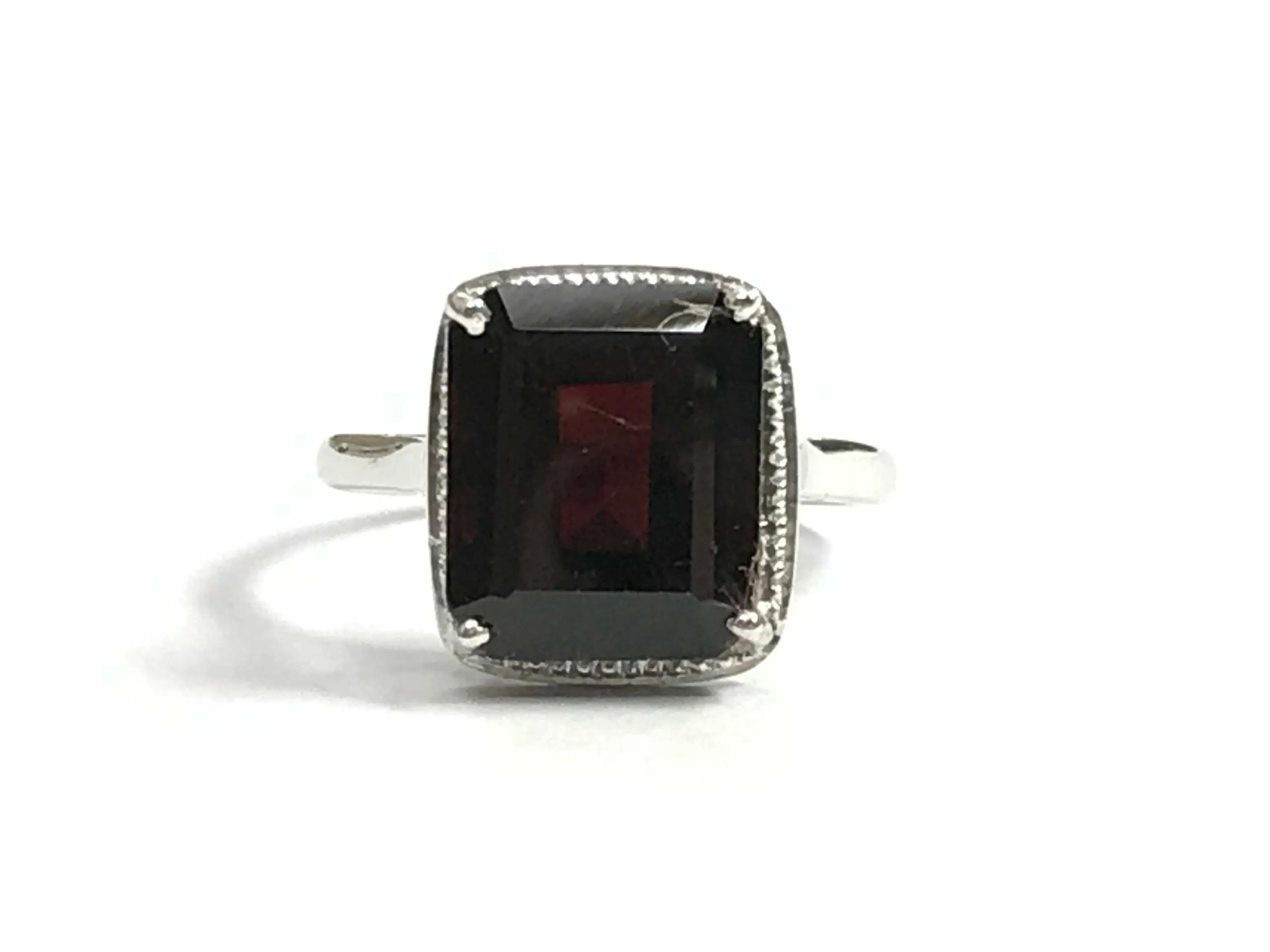 NATURAL GARNET SILVER Ring ,January birthstone rings, Red garnet ring, Octagon shape ,Genuine Garnet Solitaire Unisex Promise Ring