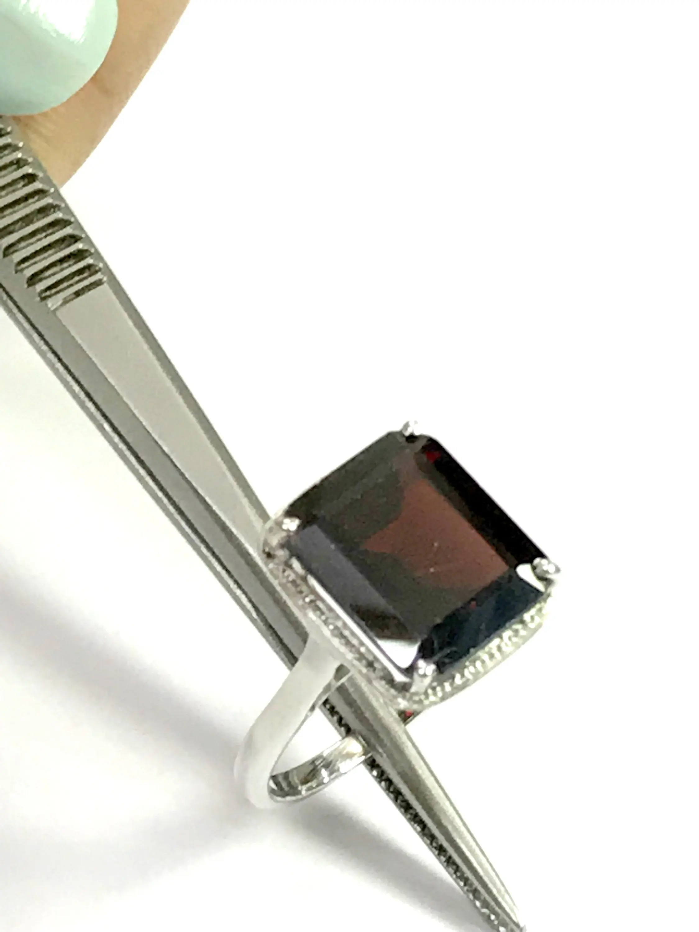 This NATURAL GARNET ring features a very rich, deep brownish red,natural garnet, set in .925 solid sterling silver. Very comfortable to wear and absolutely stunning in natural light.