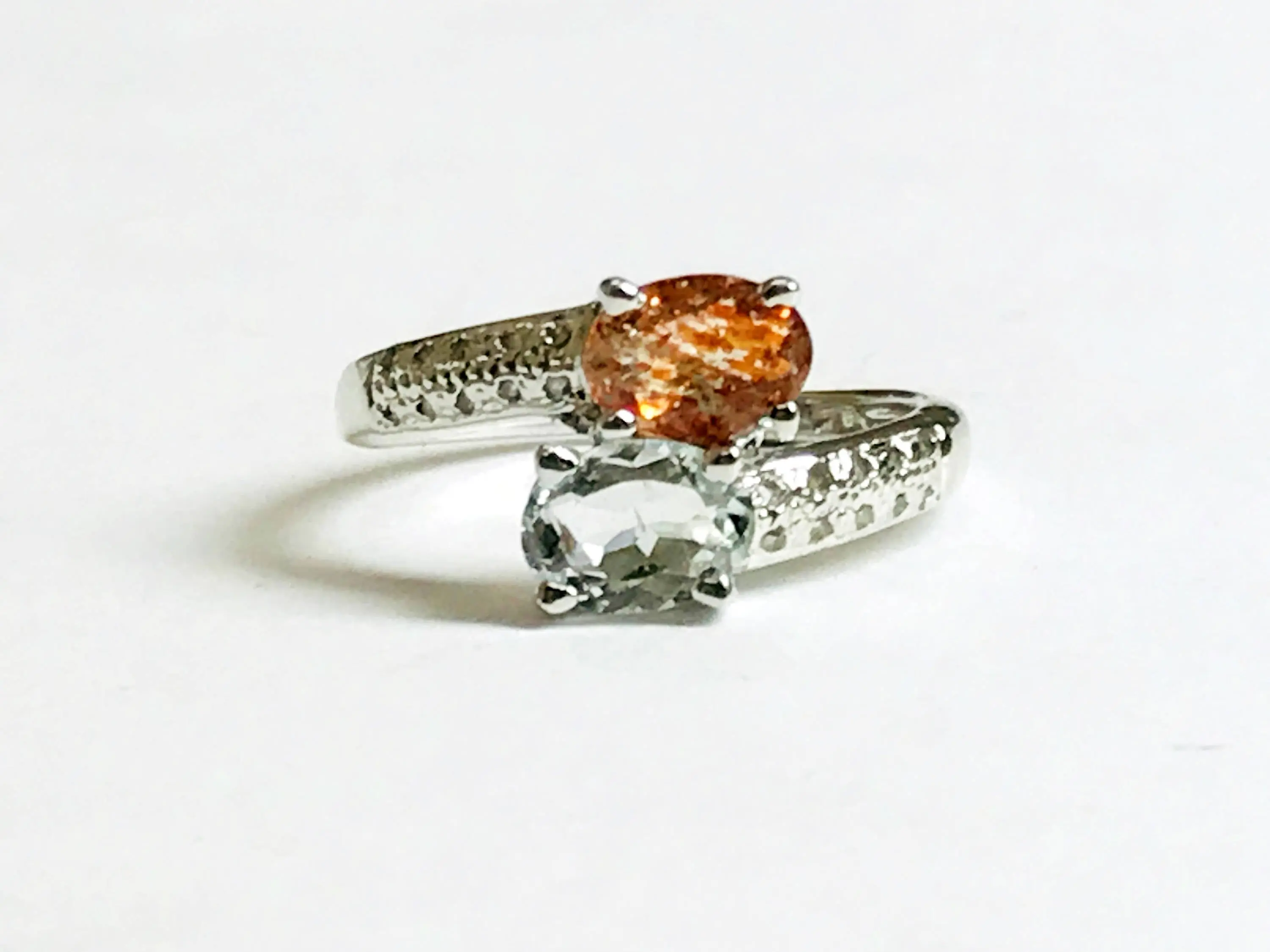 AQUAMARINE SUNSTONE DIAMONDS Ring , Engagement Ring , March Birthstone , Sunstone Gemstone , Mothers Day Gift.....