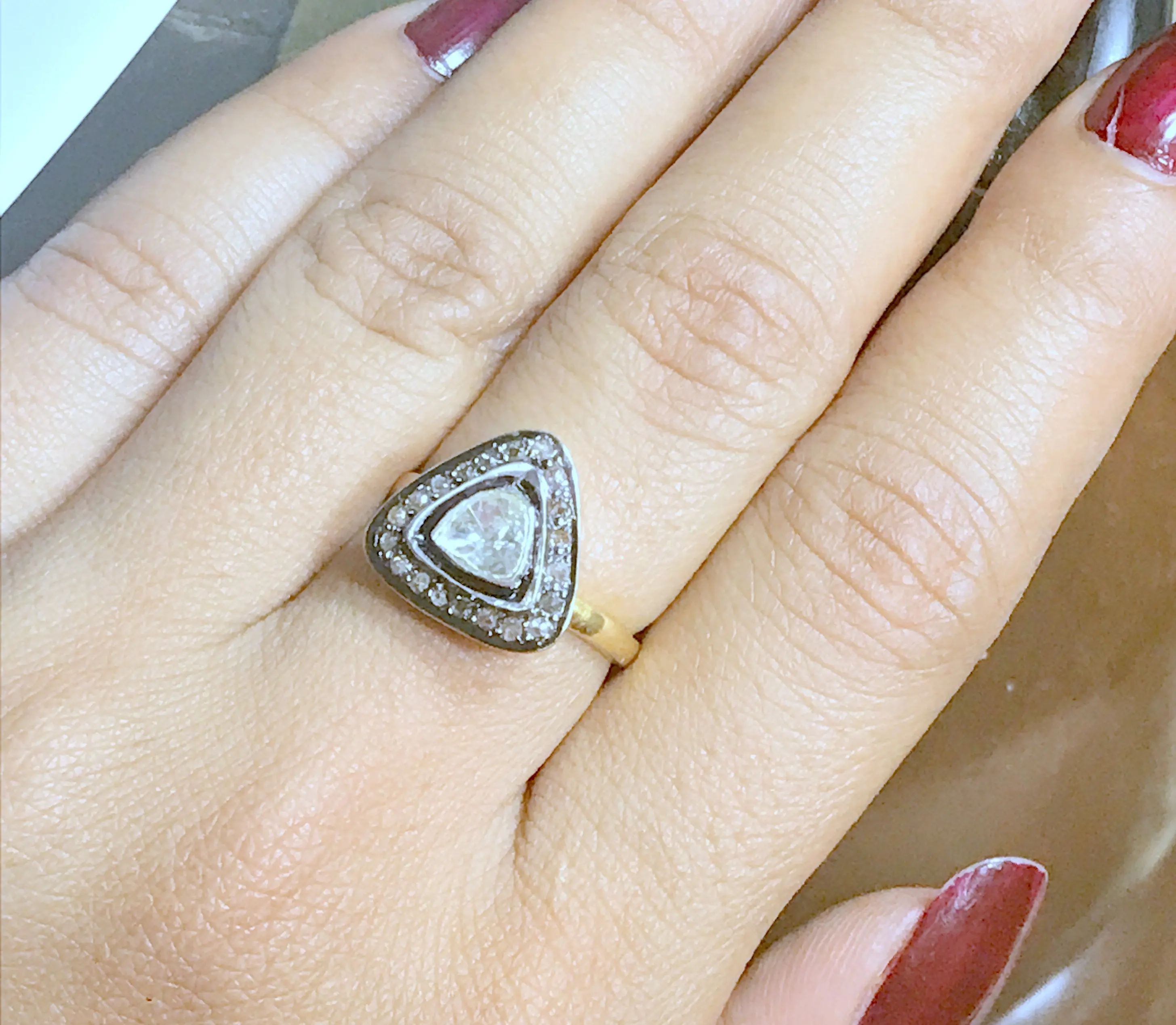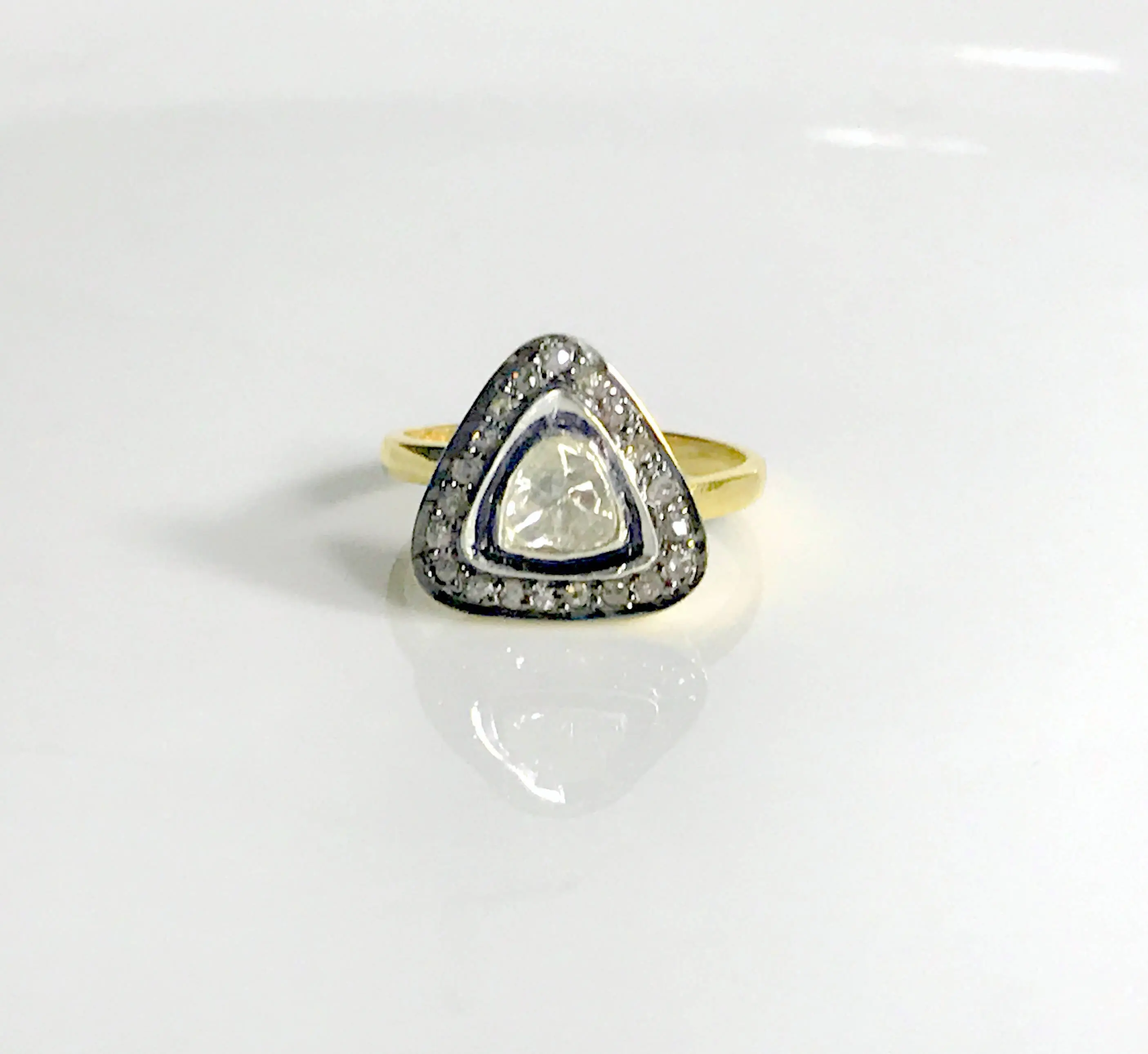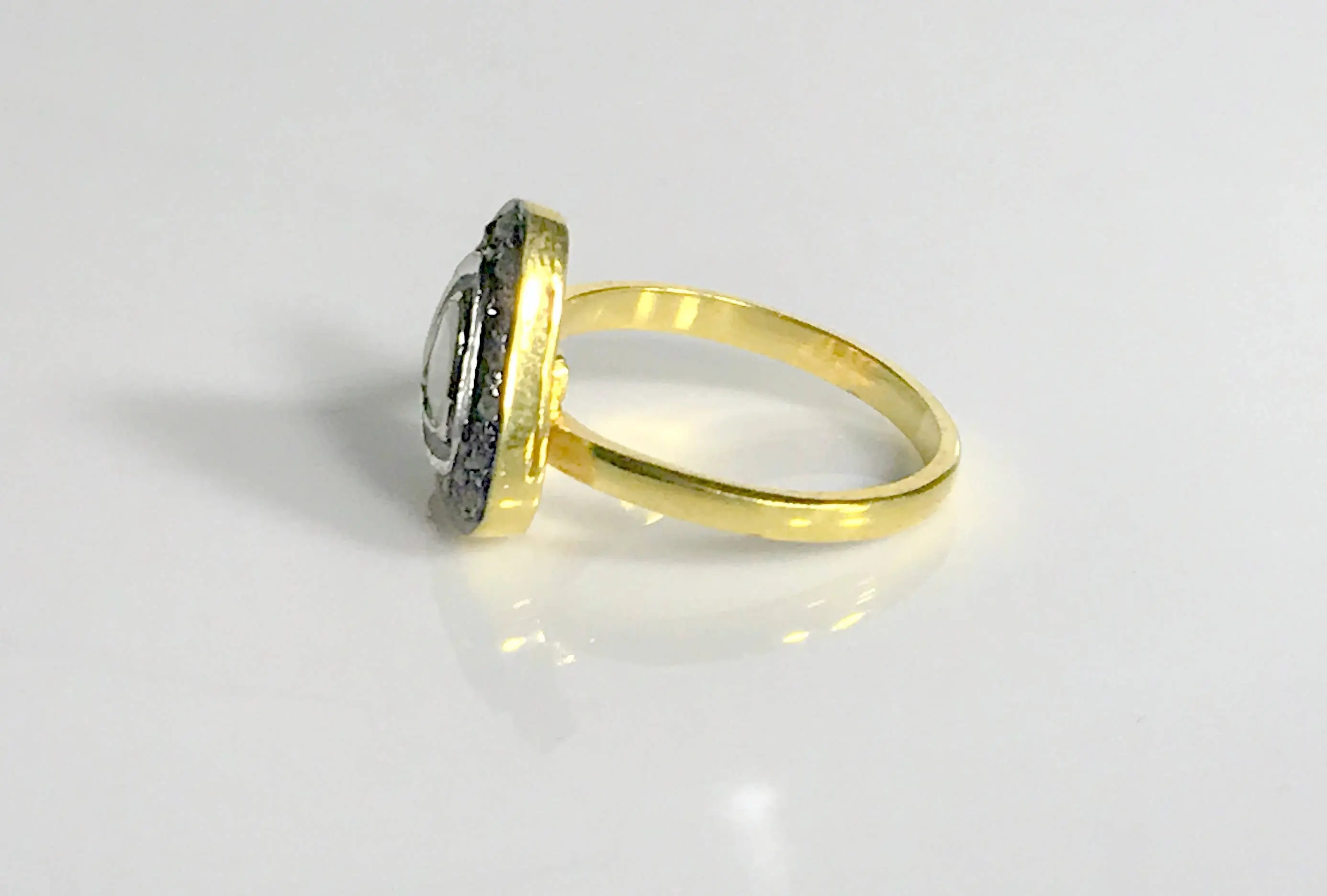 single solitaire hand cut diamond ring studded with 100% natural Rose cut diamonds in pave set......and black rhodium and gold plated plated......................