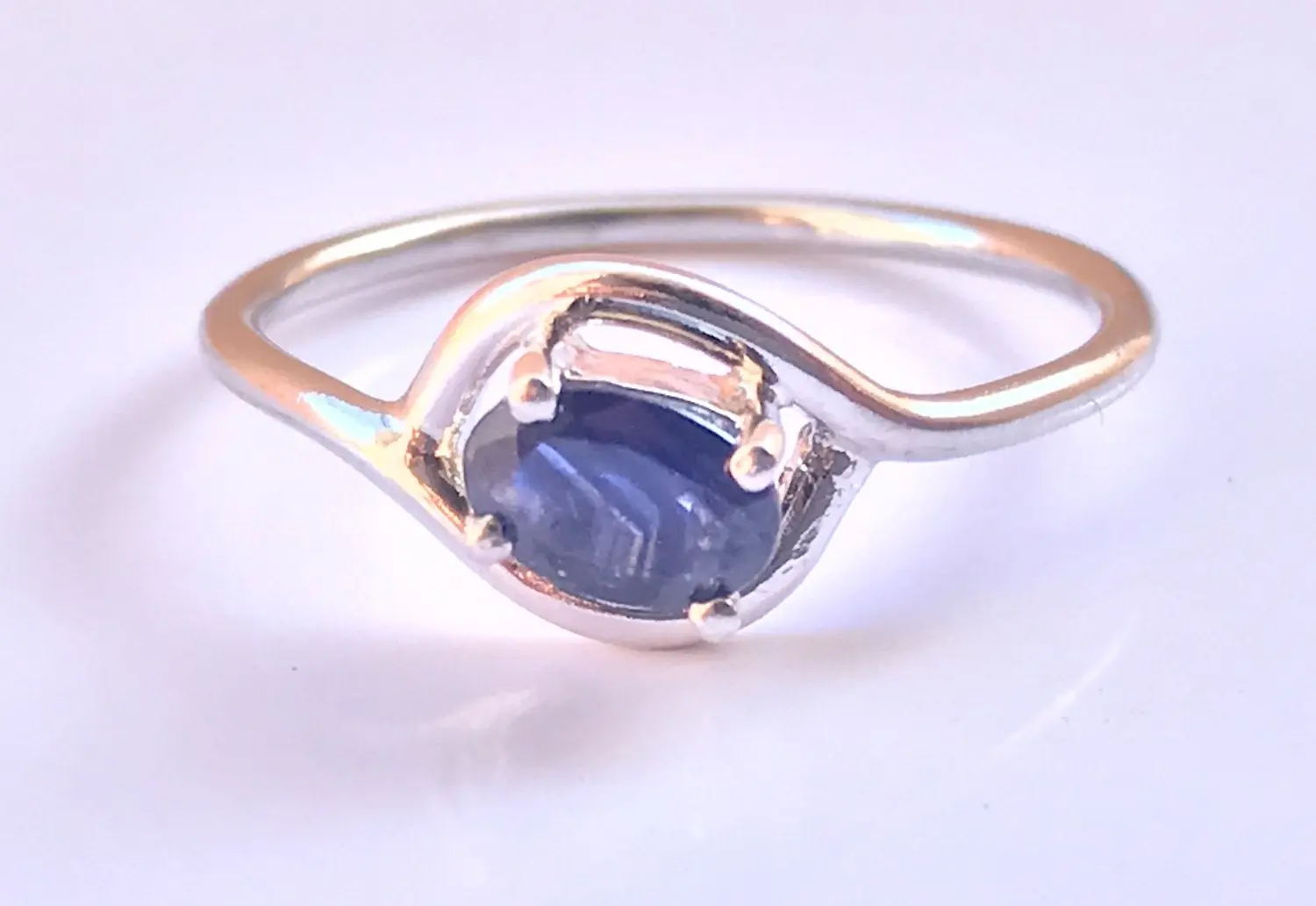 BLUE SAPPHIRE SILVER Ring,Natural Precious Gemstone,September Birthstone, Anniversary Ring ,Engagement Ring,Neelam Stone ,Fine Jewelry Gift.