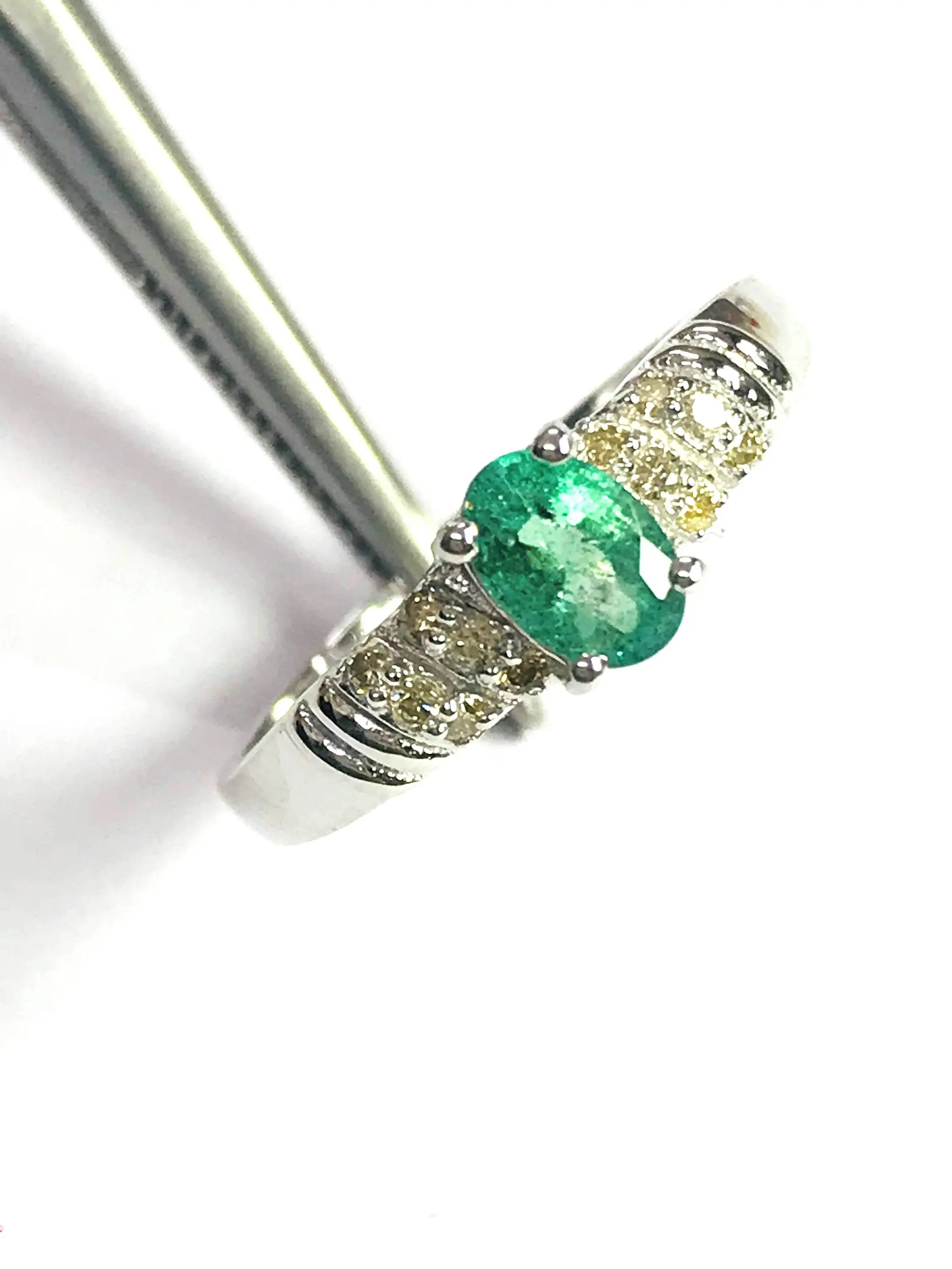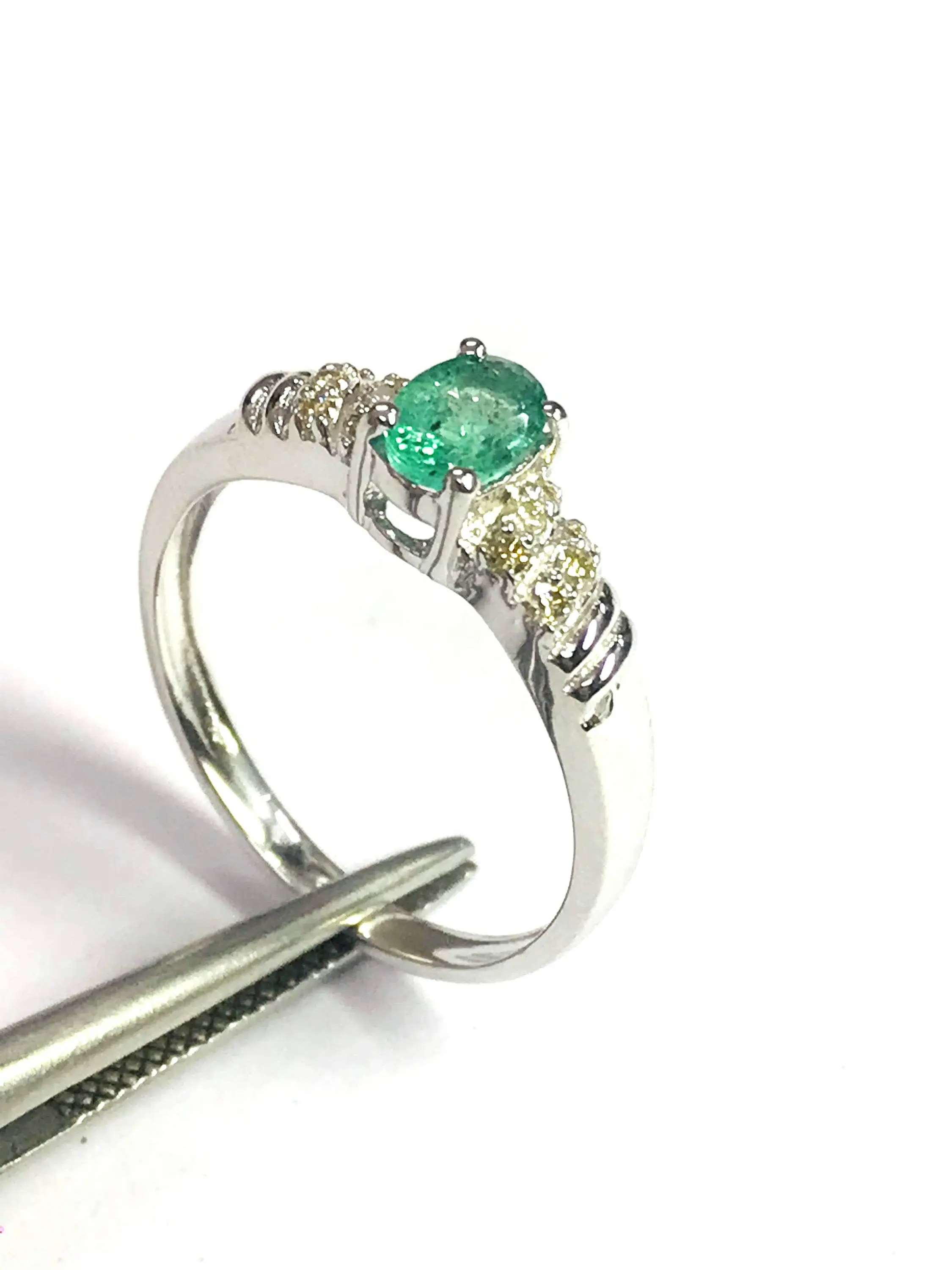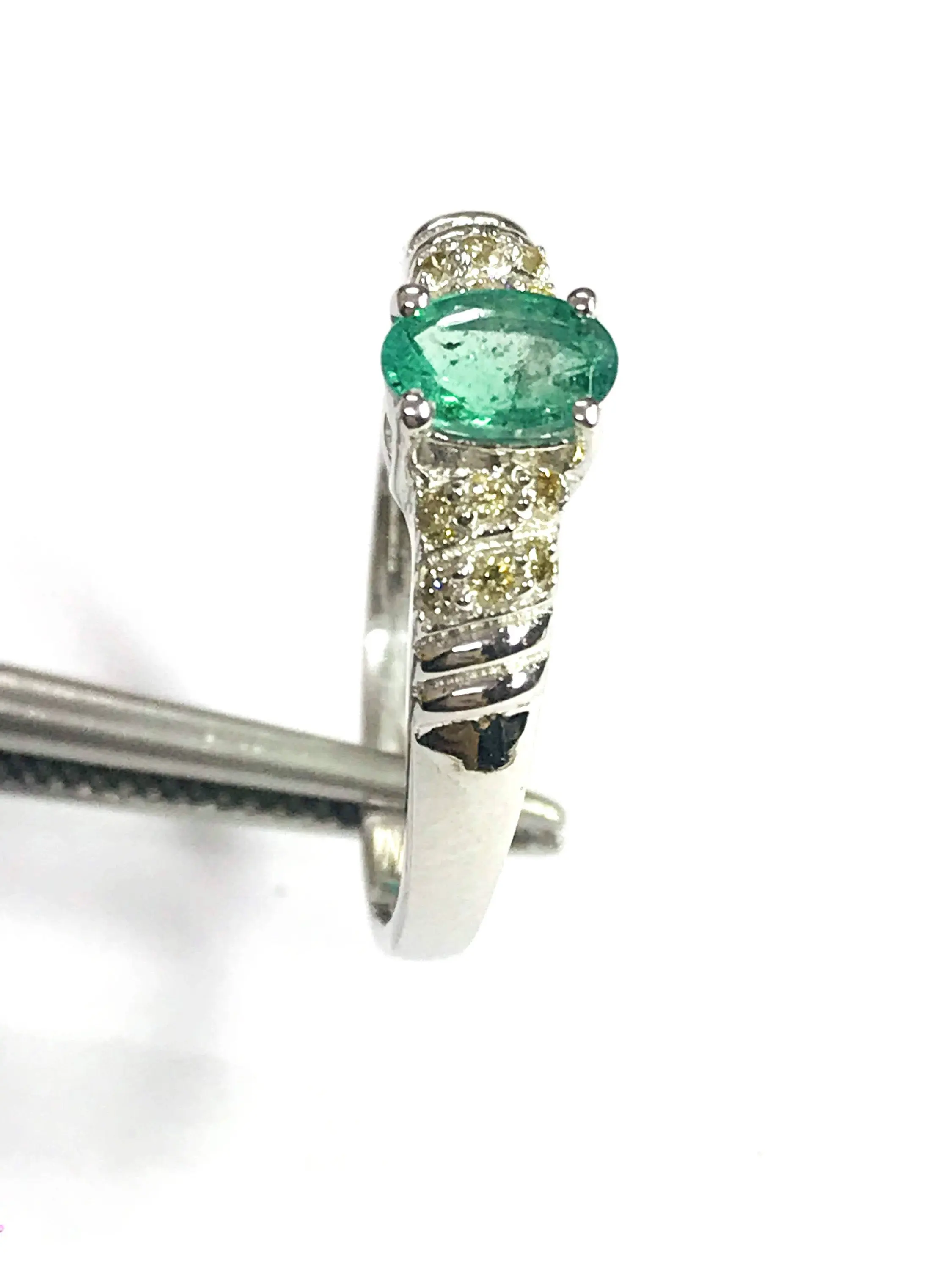 Super thin and feminine ring with a lovely ova faceted natural emerald diamond ring .........