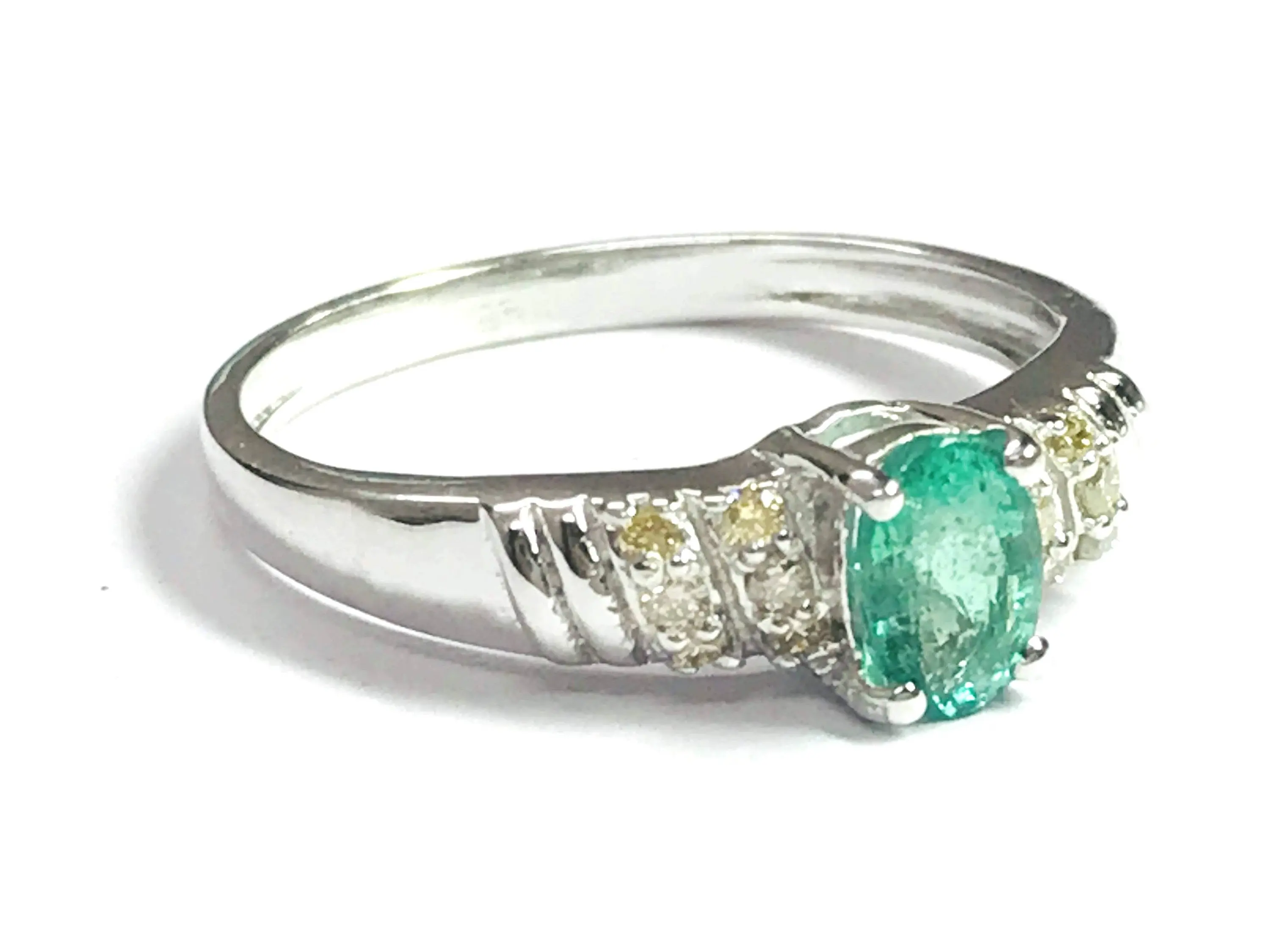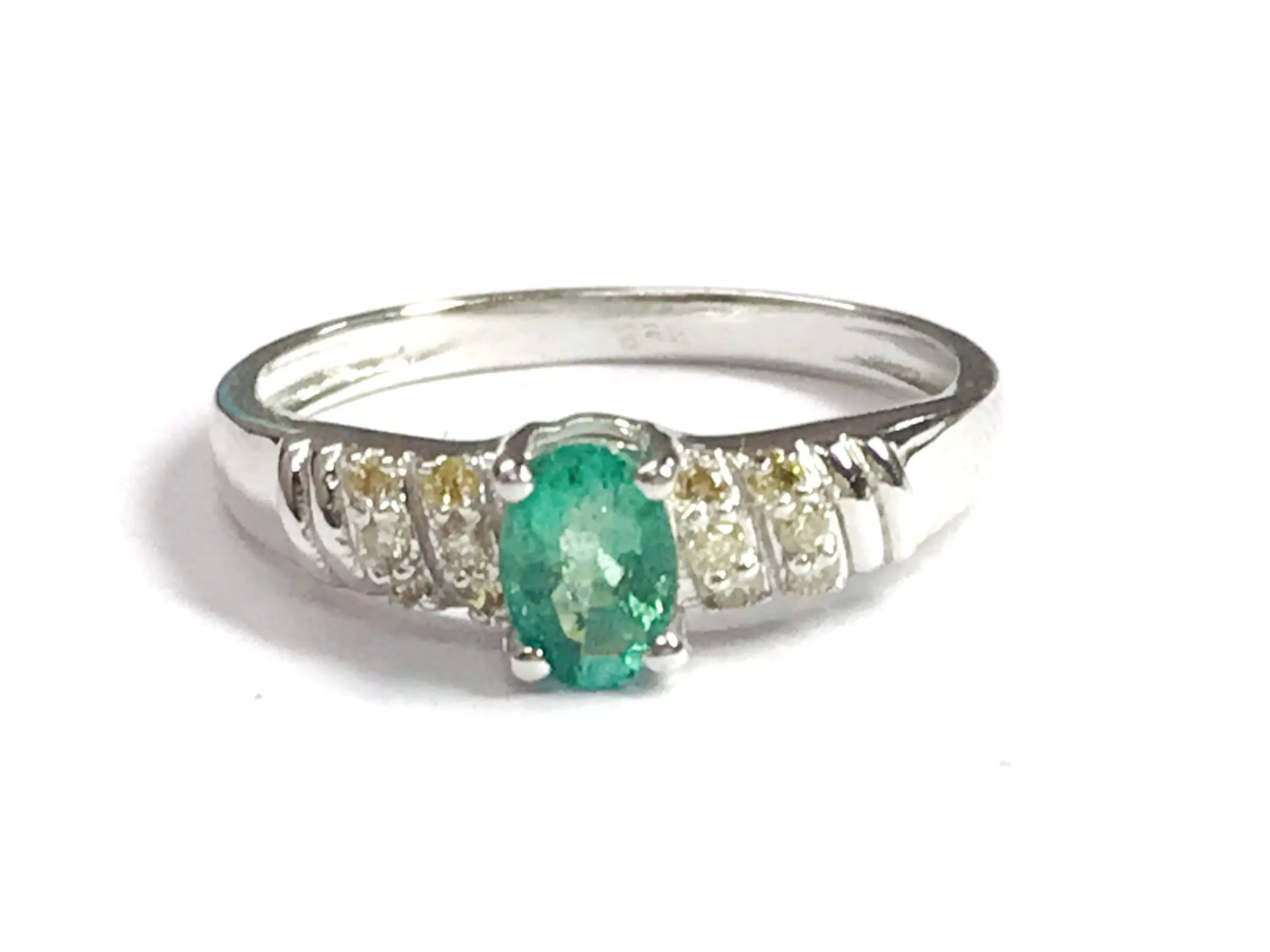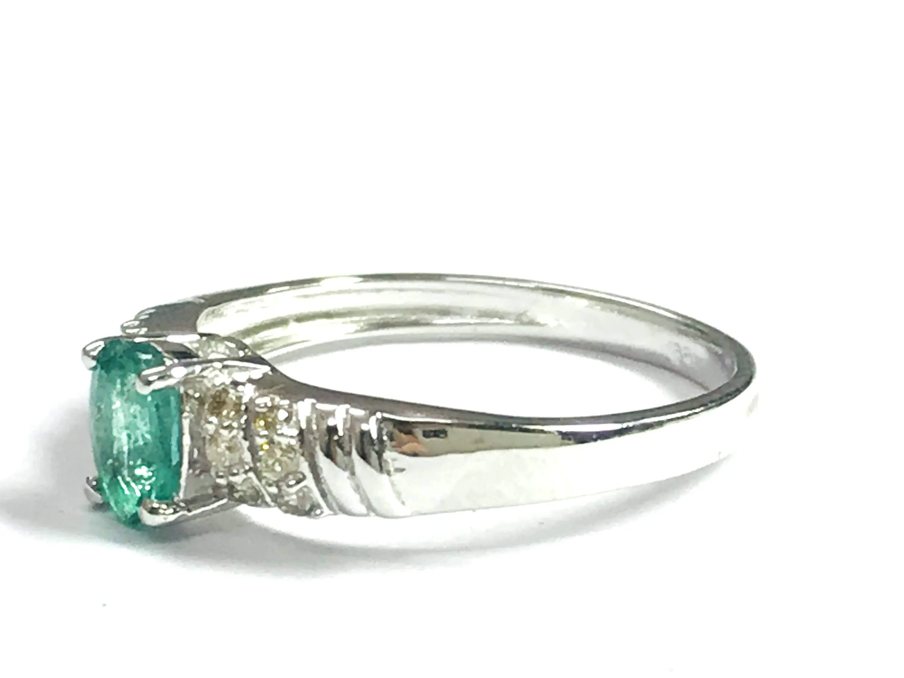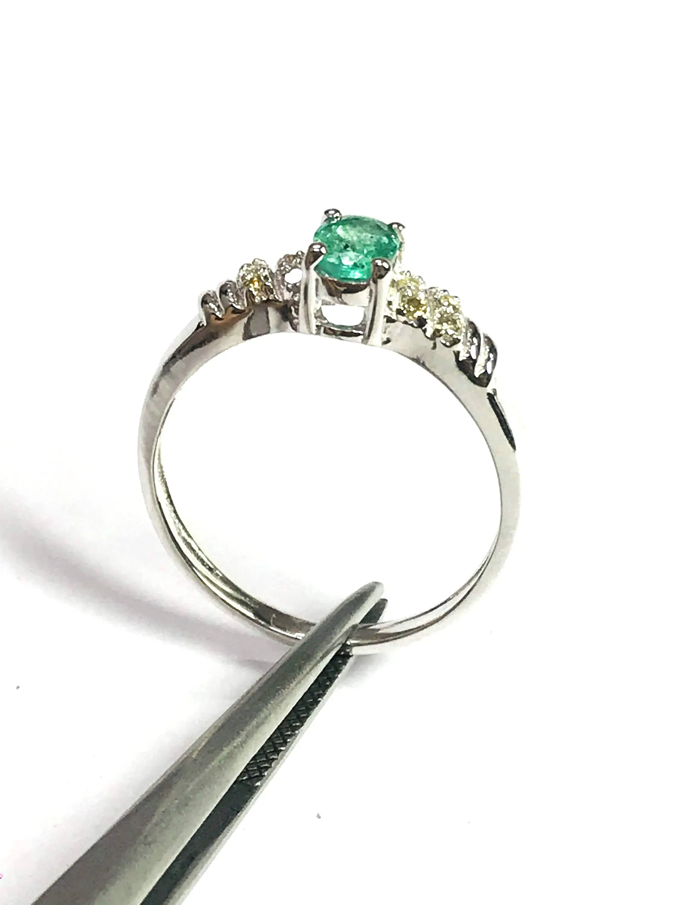 Super thin and feminine ring with a lovely ova faceted natural emerald diamond ring .........