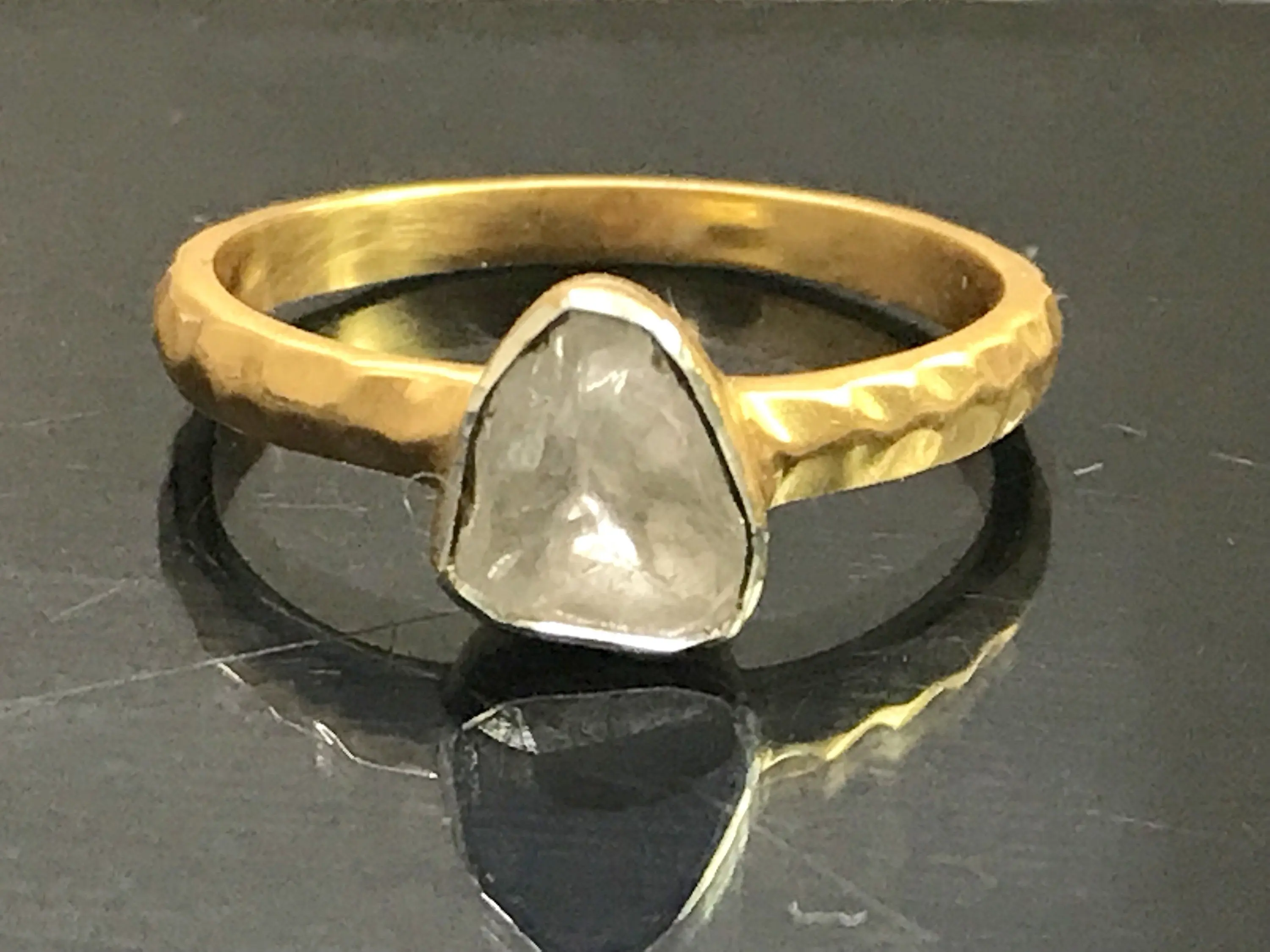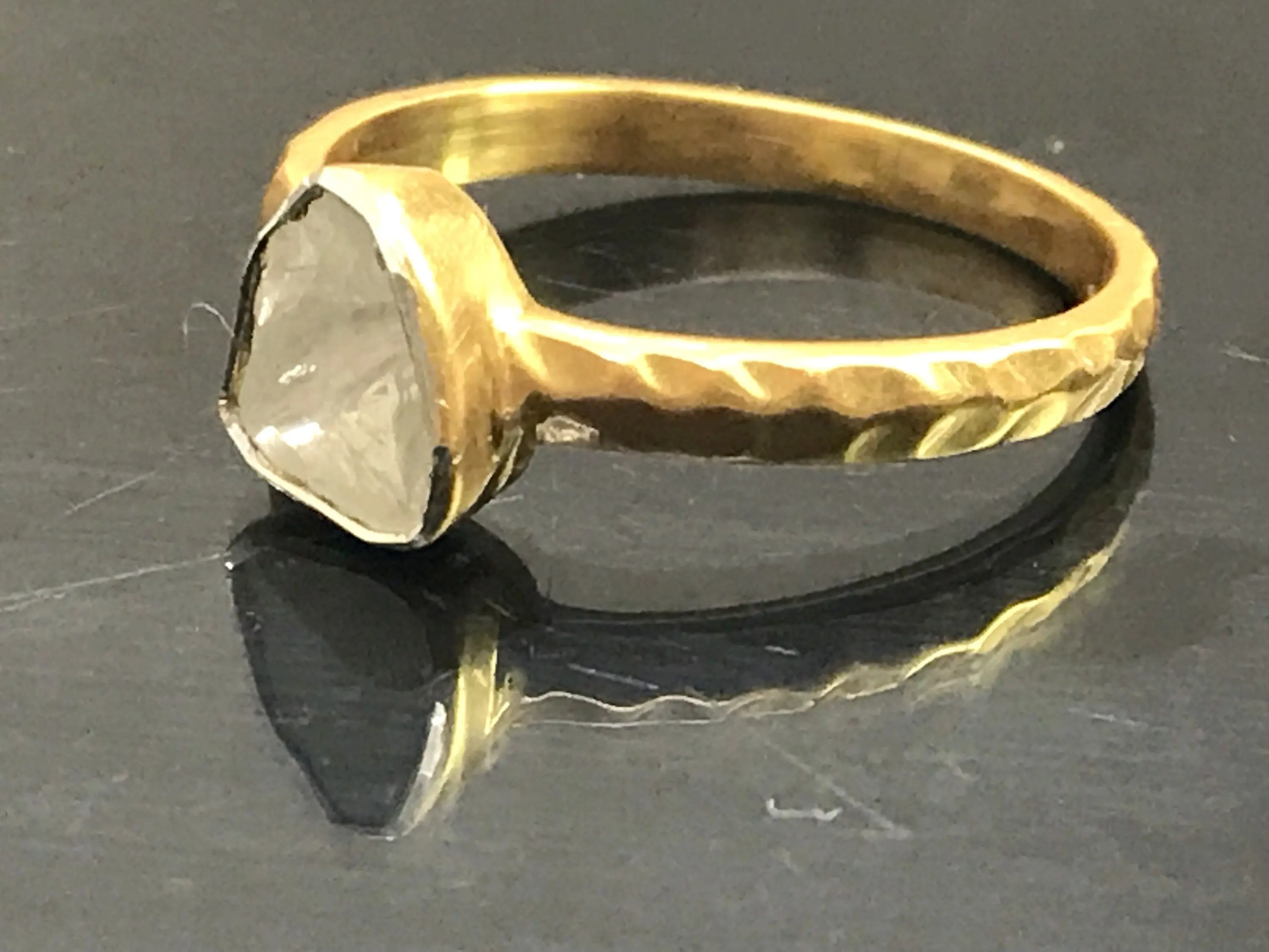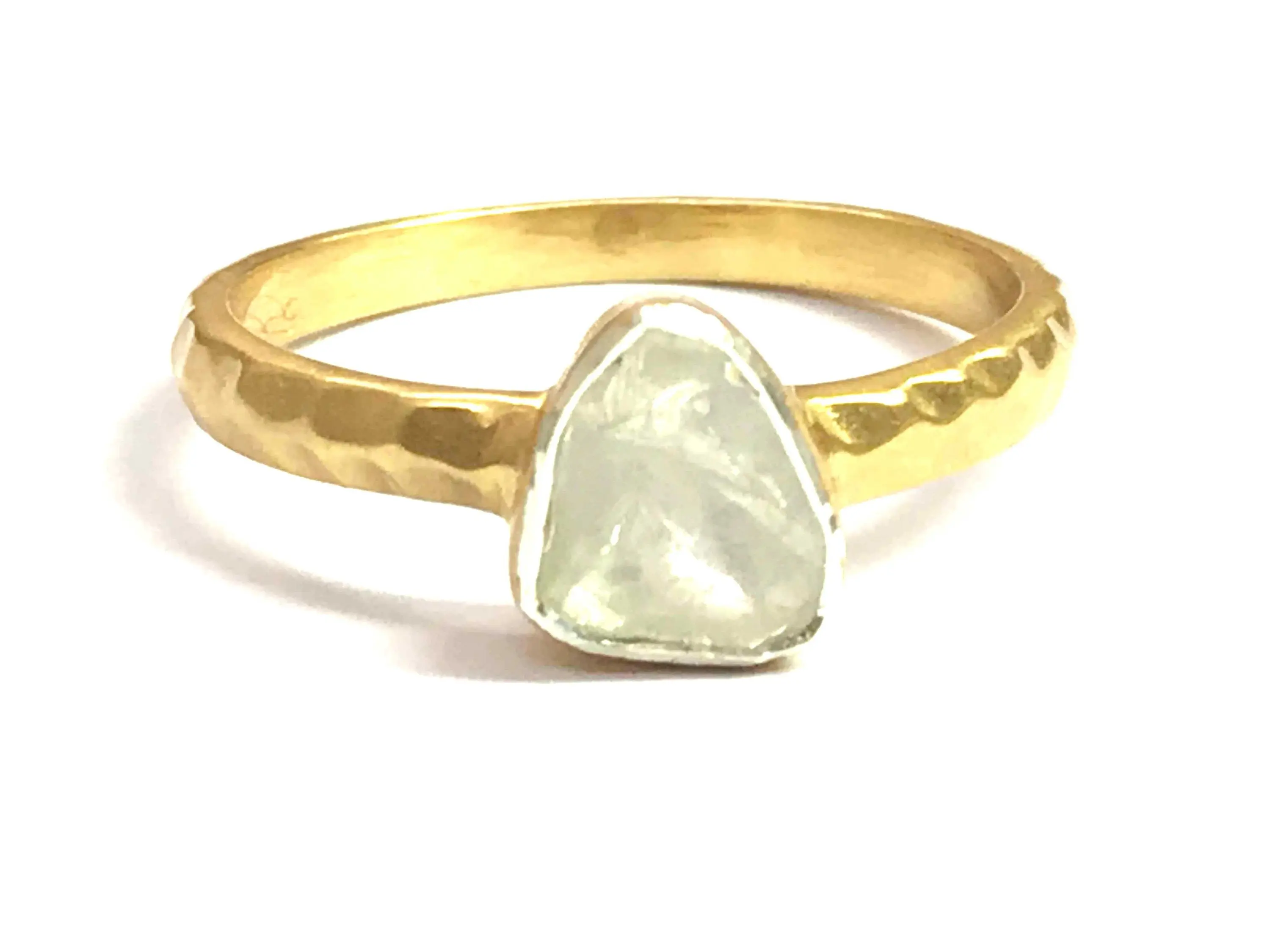 POLKI ROSE CUT DIAMONDS RING ,925 Sterling silver ,Trillion shape Engagement Ring ,Vintage Wedding Band ,Promise Gift For Her , April Birthstone.....Vermeil - 1 Micron Gold Plated ..
