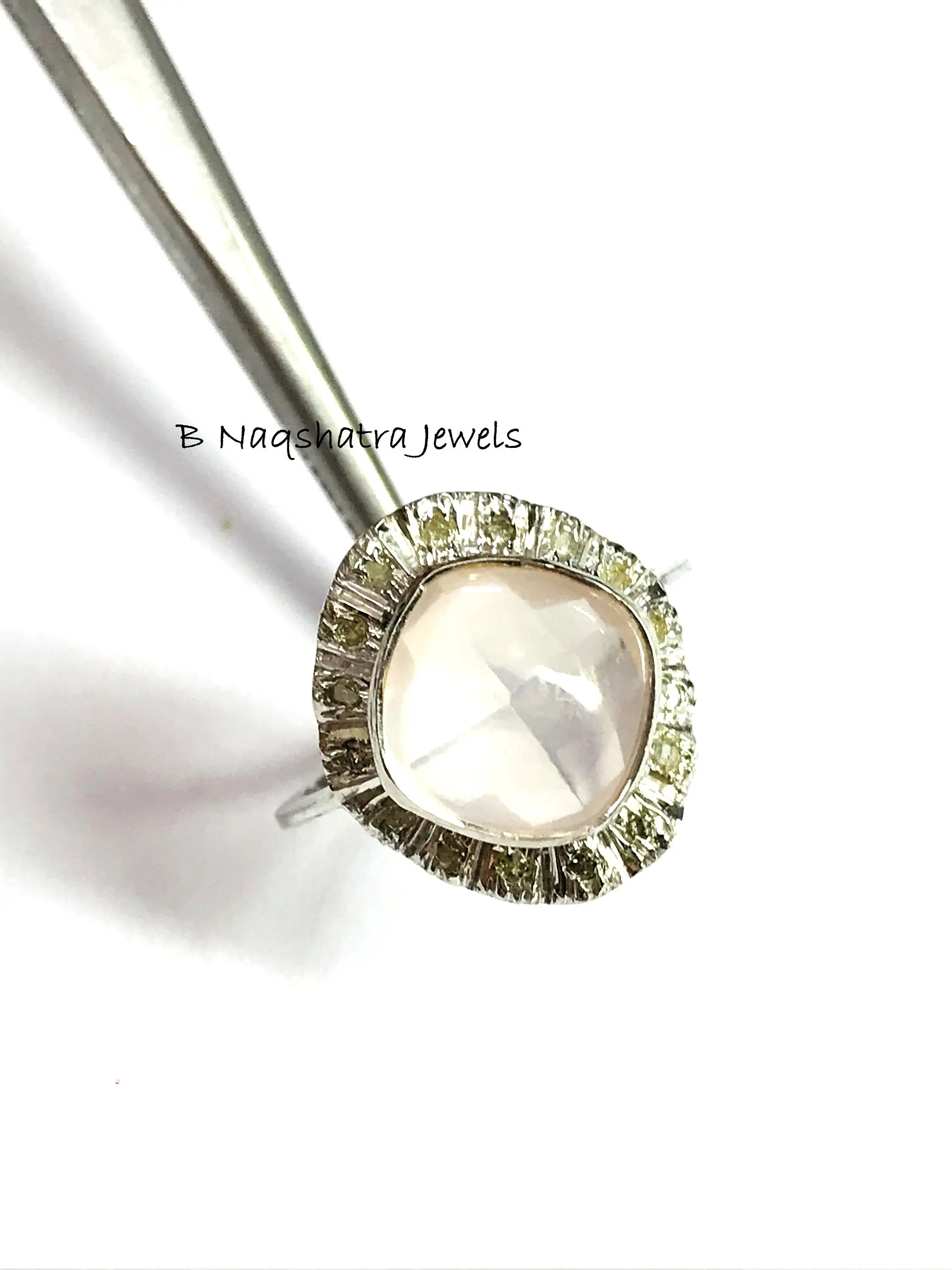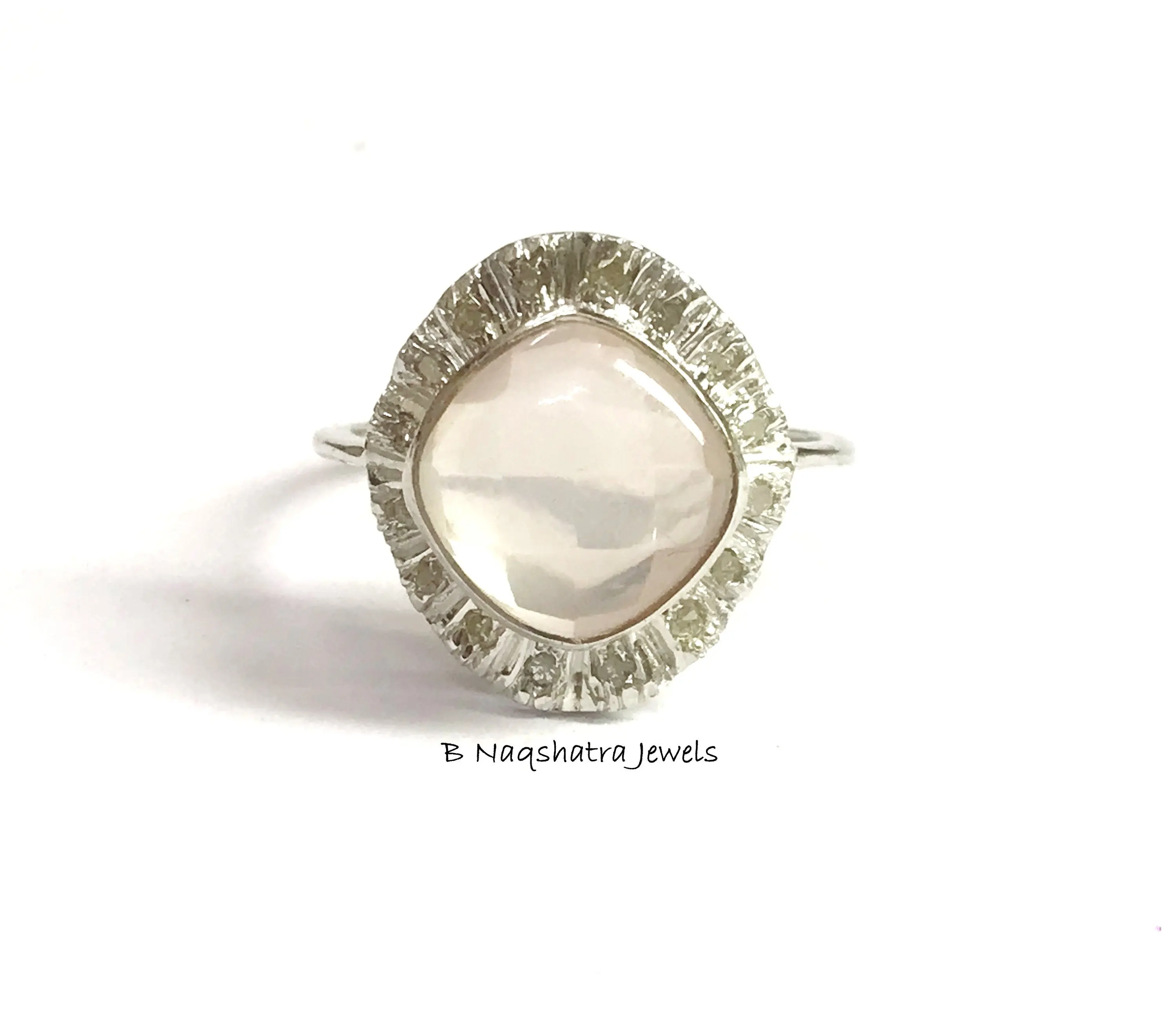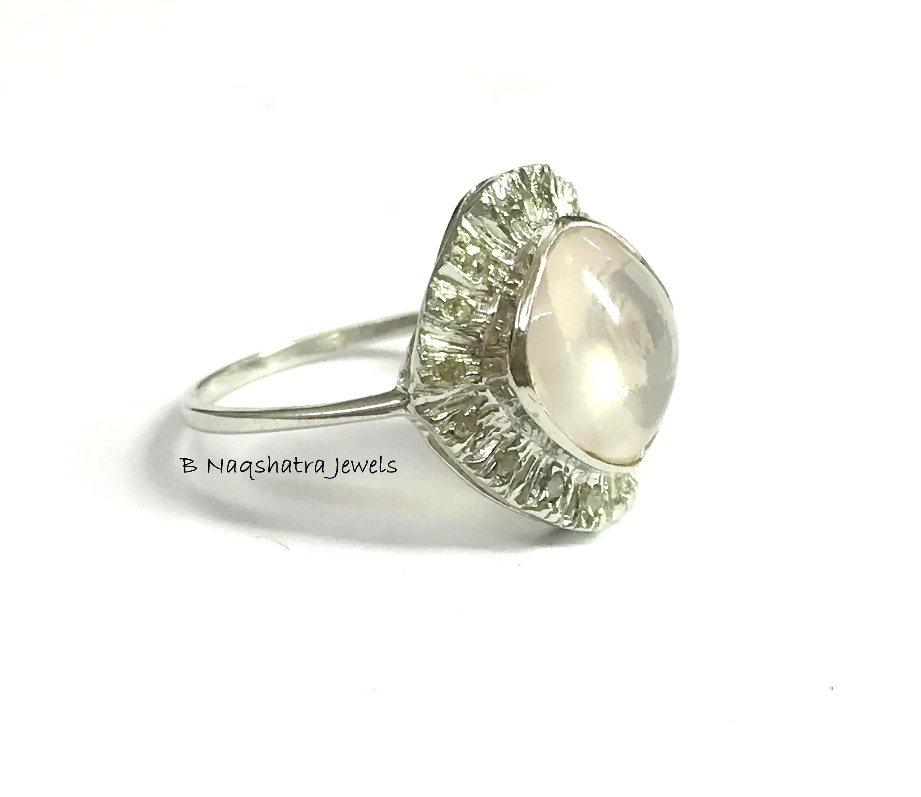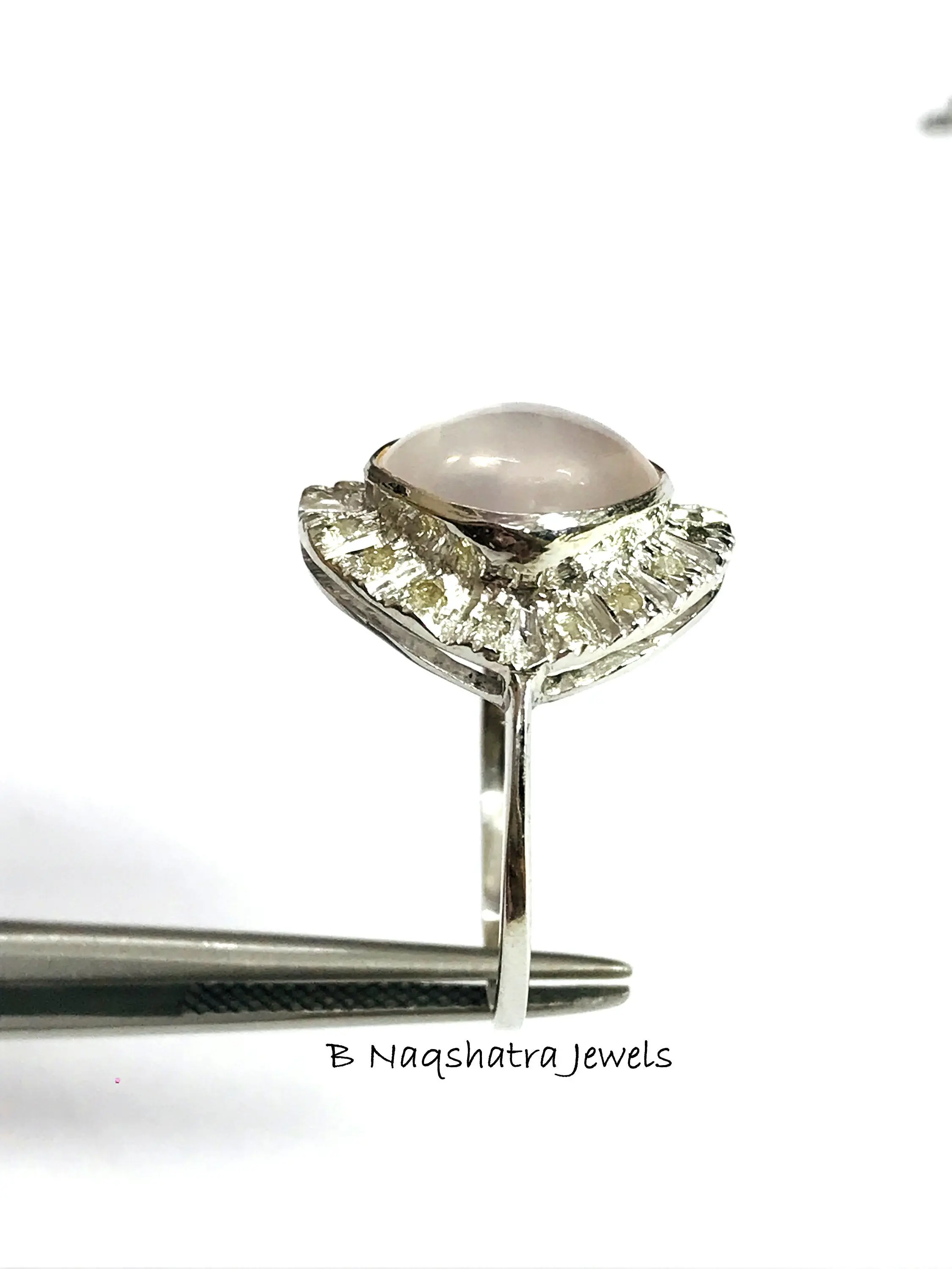 ROSE QUARTZ DIAMOND RING,Handmade 925 sterling silver Ring ,Pink Gemstone , Perfect Gift For Her ,Anniversary Gift , Pink Quartz Gemstone ...