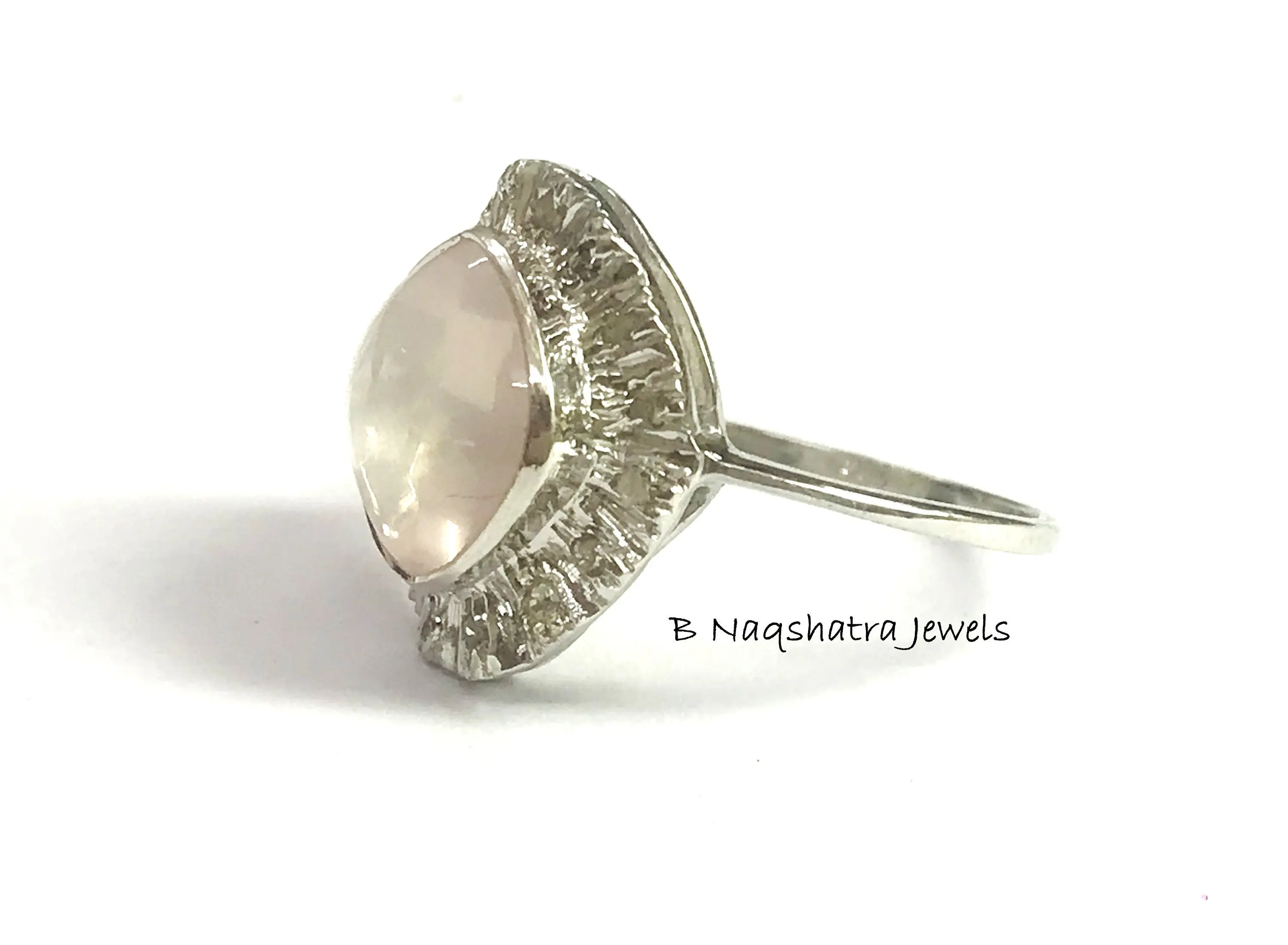 ROSE QUARTZ DIAMOND Ring ,Handmade 925 sterling silver Ring ,Pink Gemstone , Perfect Gift For Her ,Anniversary Gift , Pink Quartz Gemstone