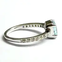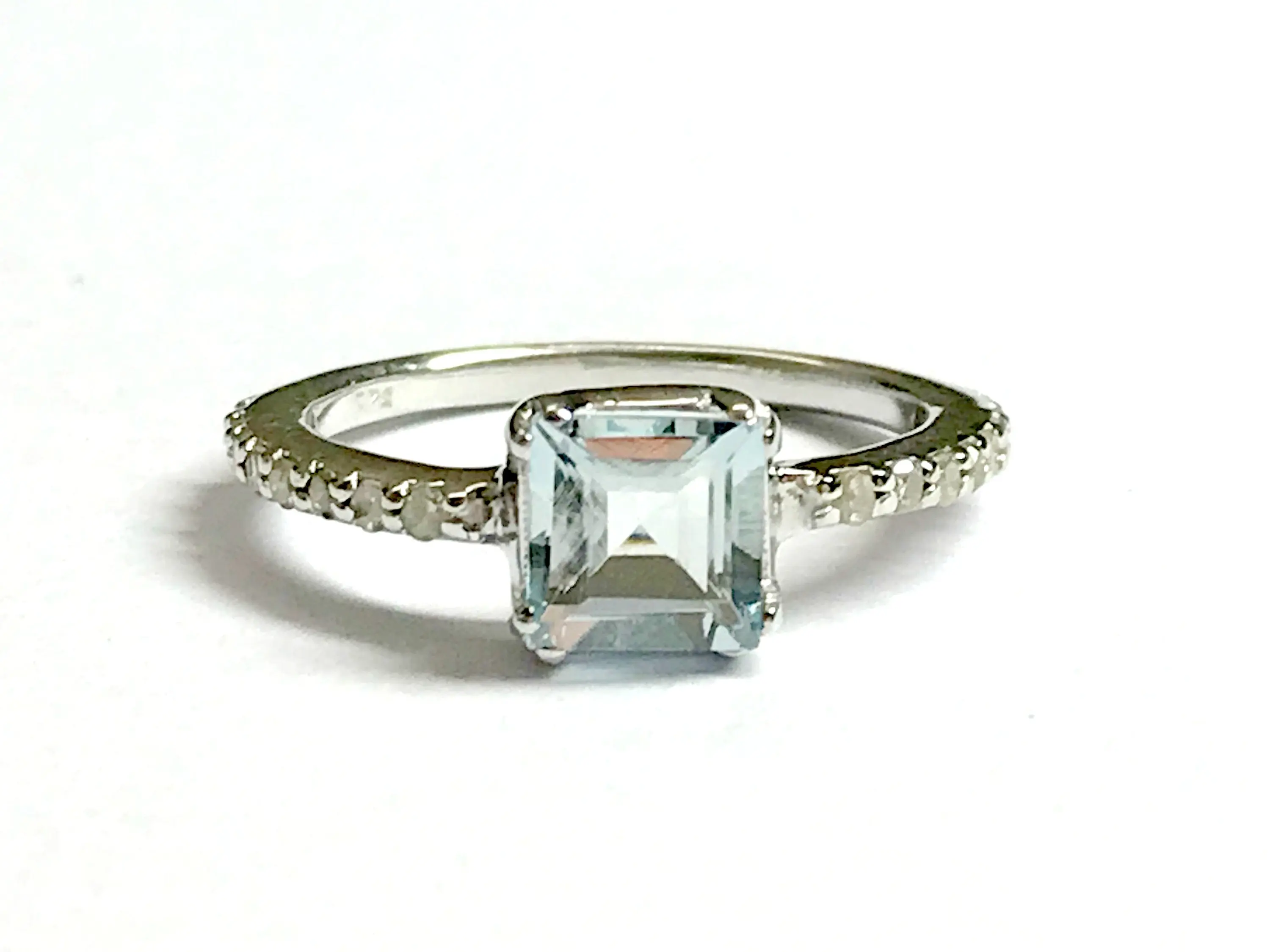 AQUAMARINE DIAMOND ENGAGEMENT Ring , March Birthstone, Aquamarine Ring ,Sterling Silver Ring,Promise Ring for Her