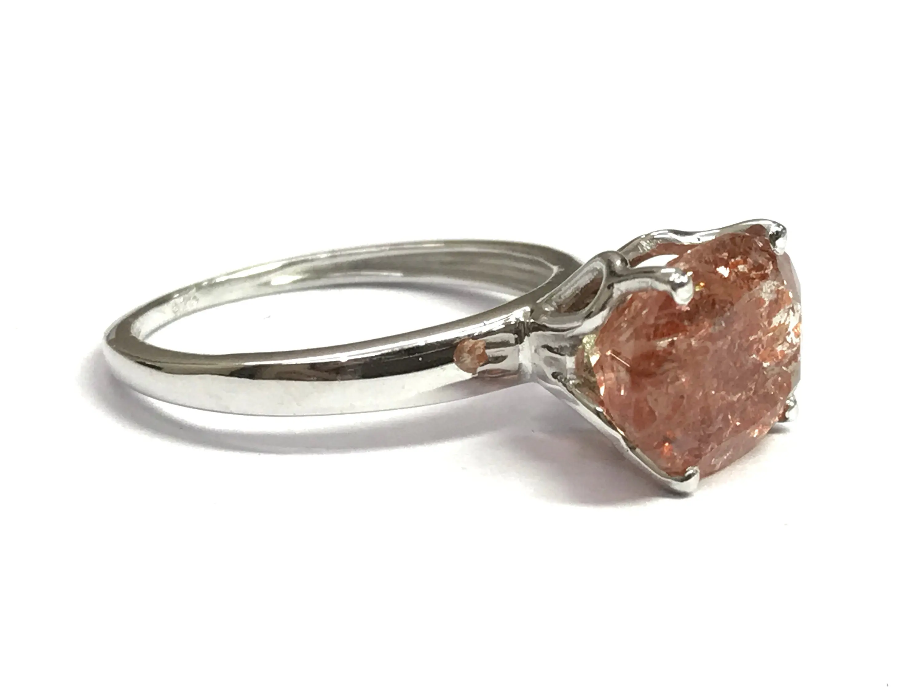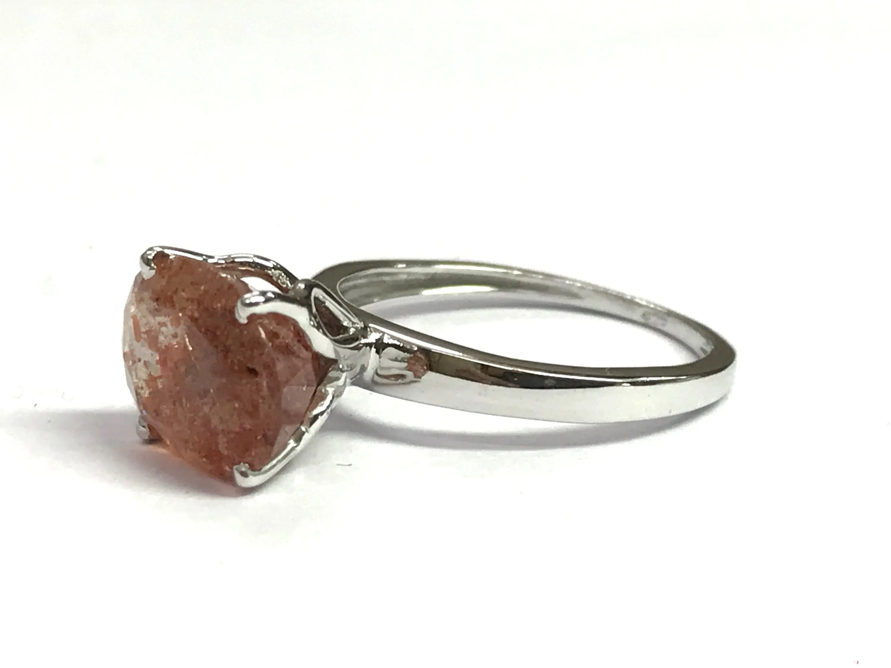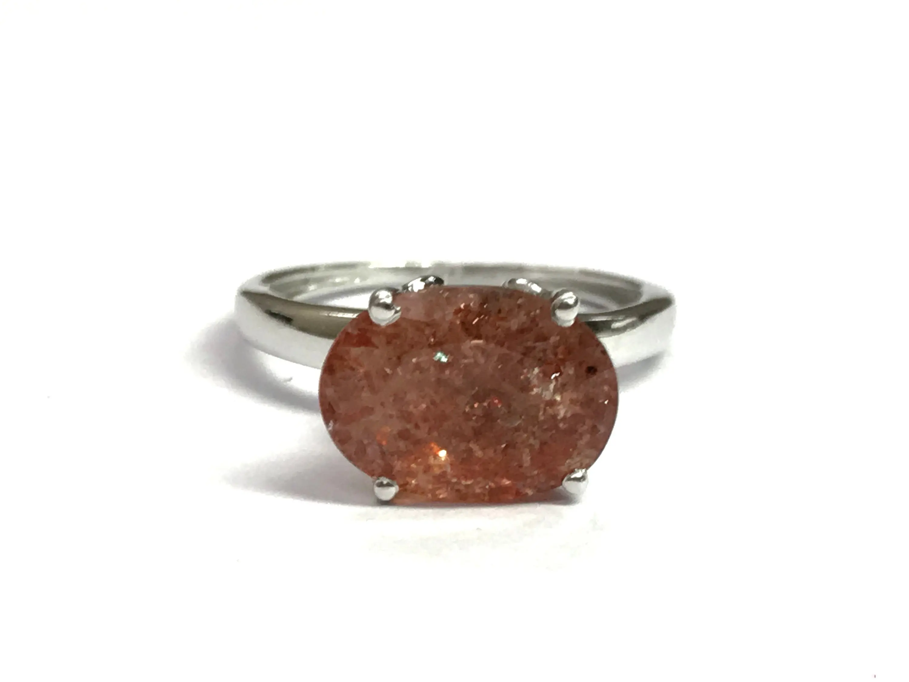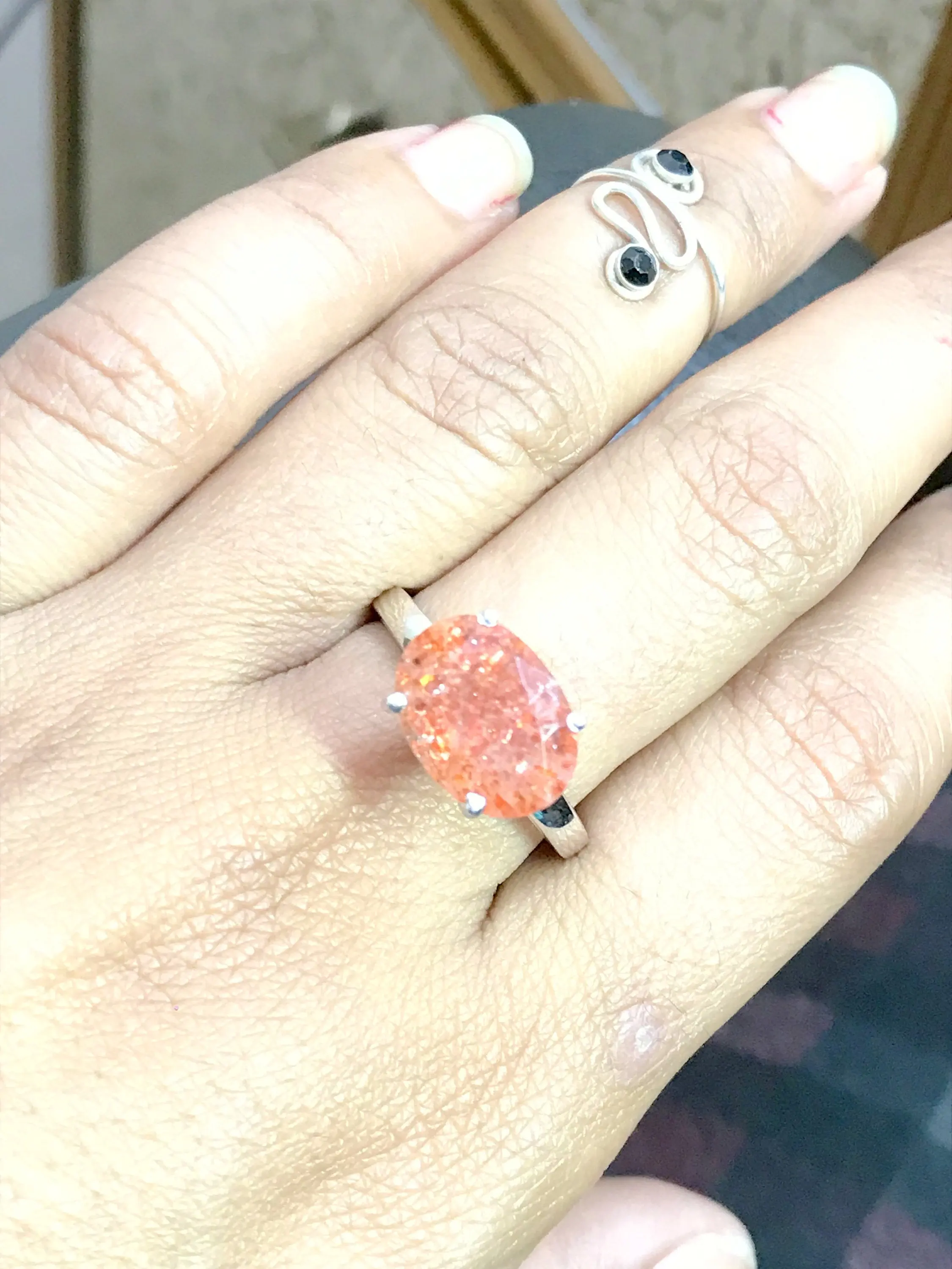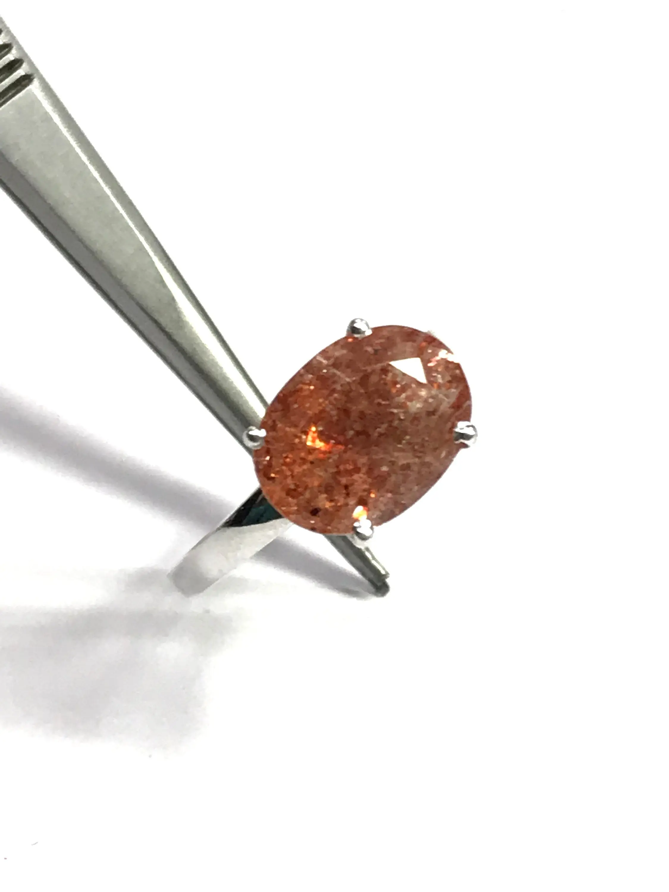 SUNSTONE Sterling Silver Ring,Oval Gemstone,Orange Color,Engagement ring,promise ring ,Beautiful Gift For Loved Ones, feldspar gemstone.....