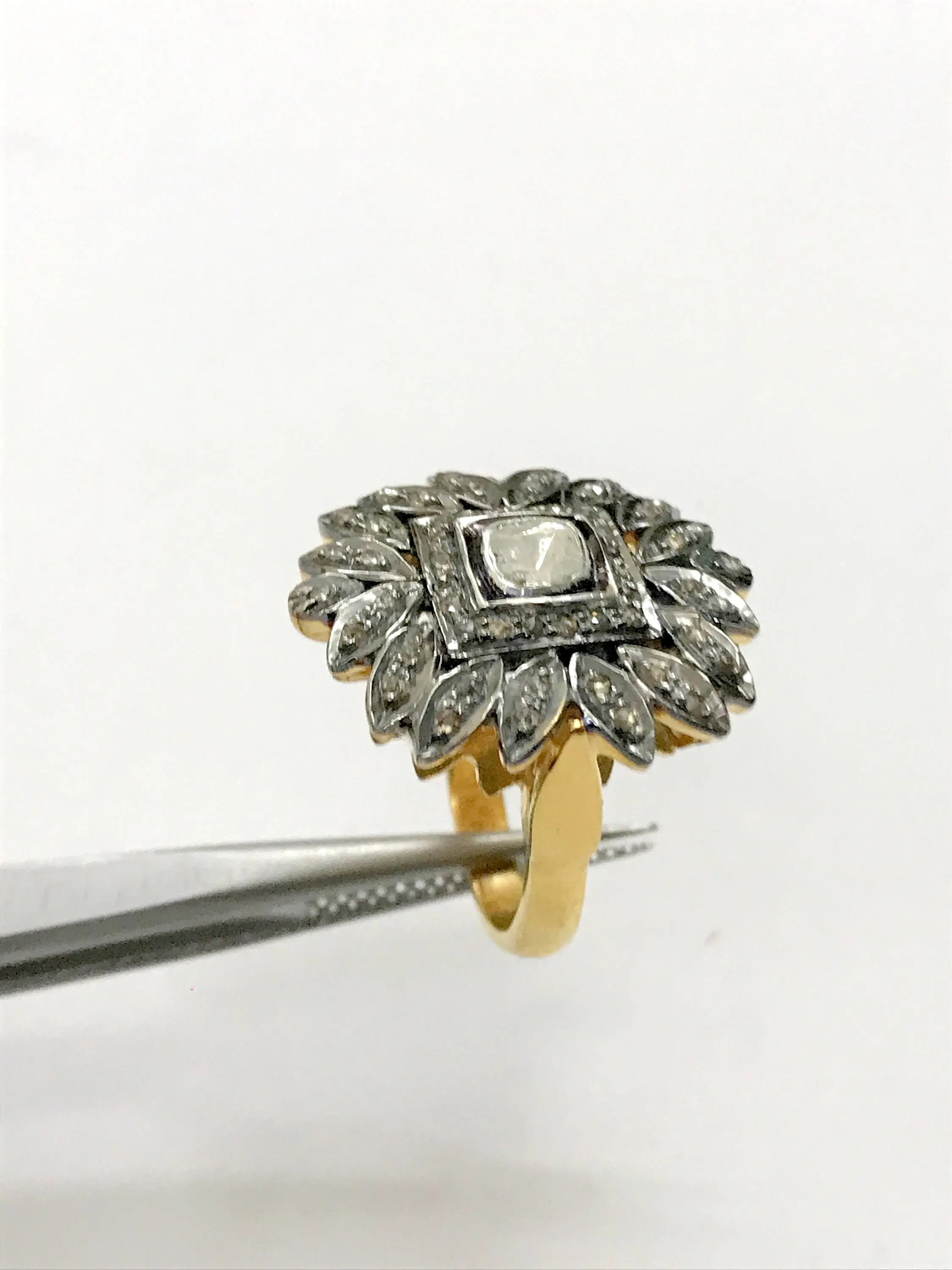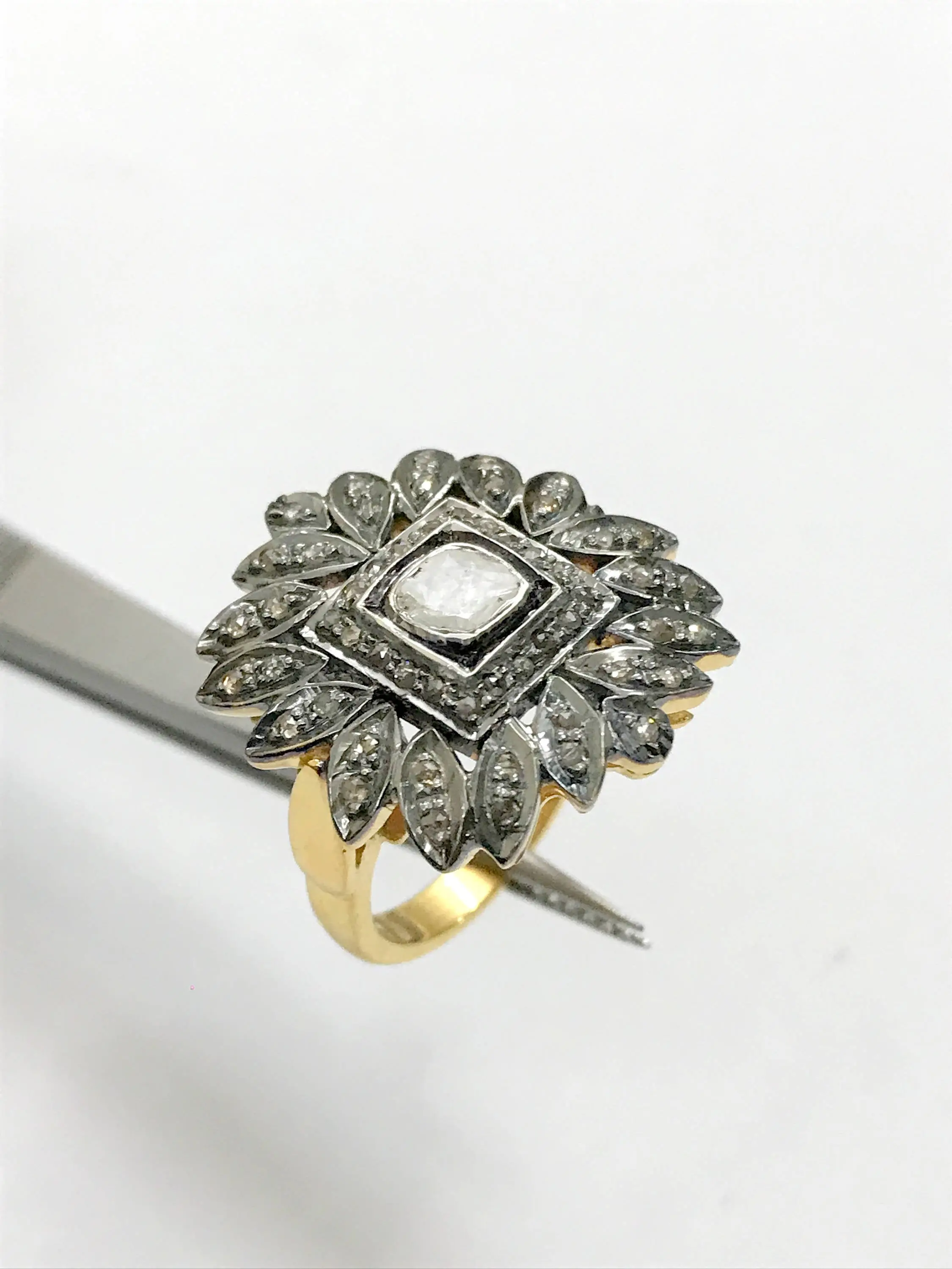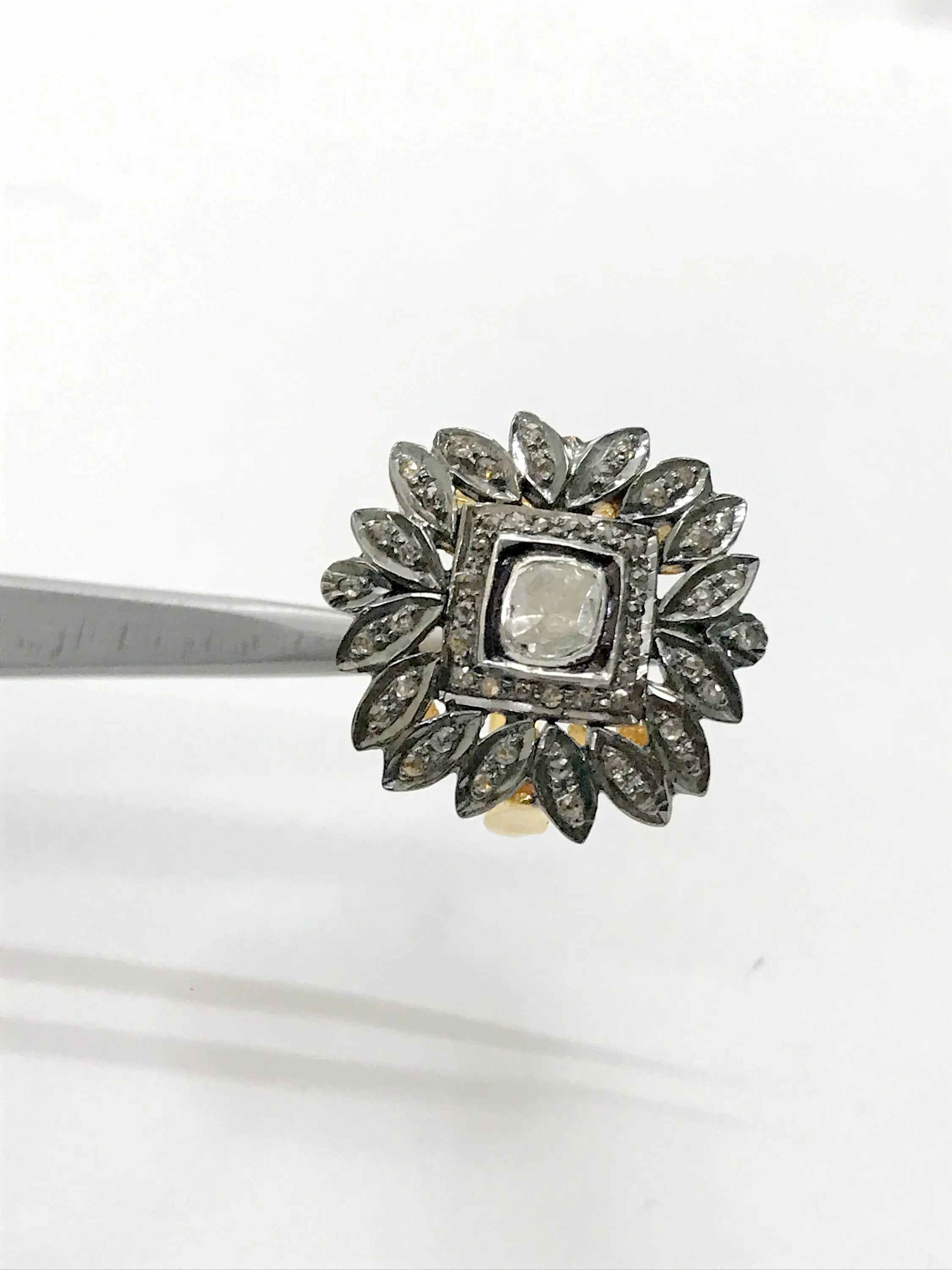 single solitaire hand cut diamond ring seted with 100% natural Rose cut diamonds in pave set......and black rhodium plated
