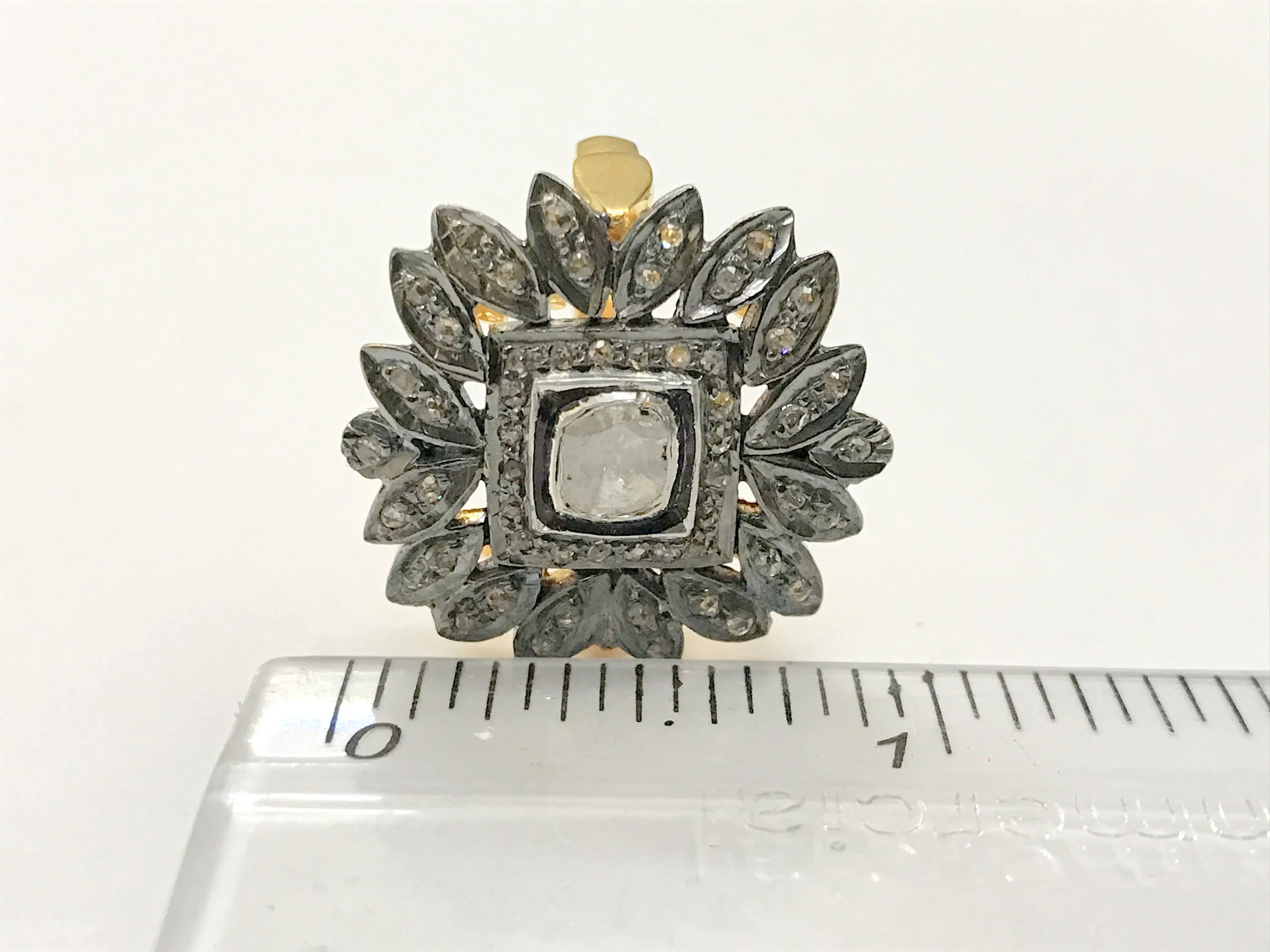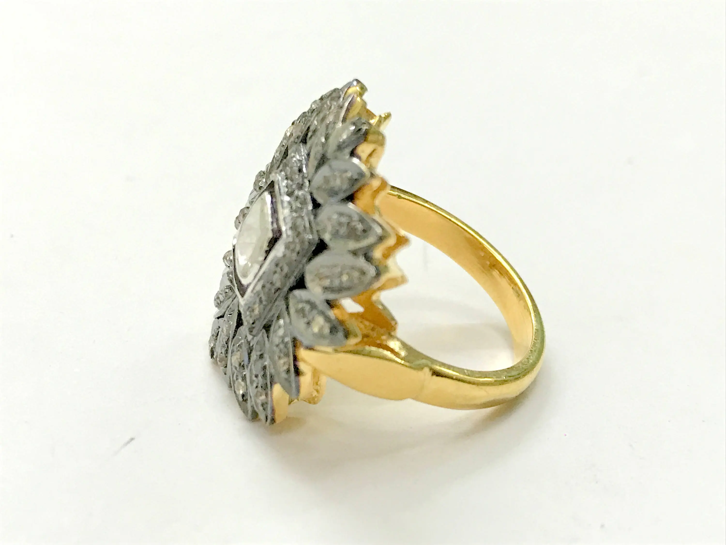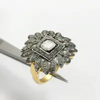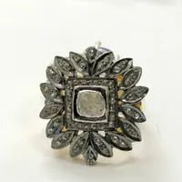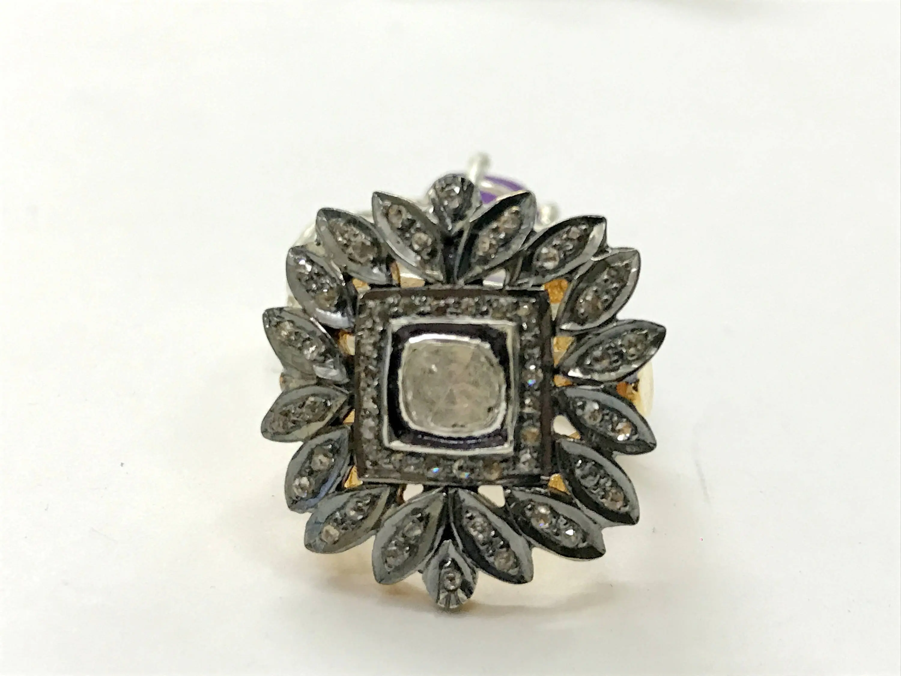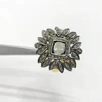 super fine quality of 100% natural rose cut and hand cut diamonds rings in 925 sterling silver with black rhodium plated..