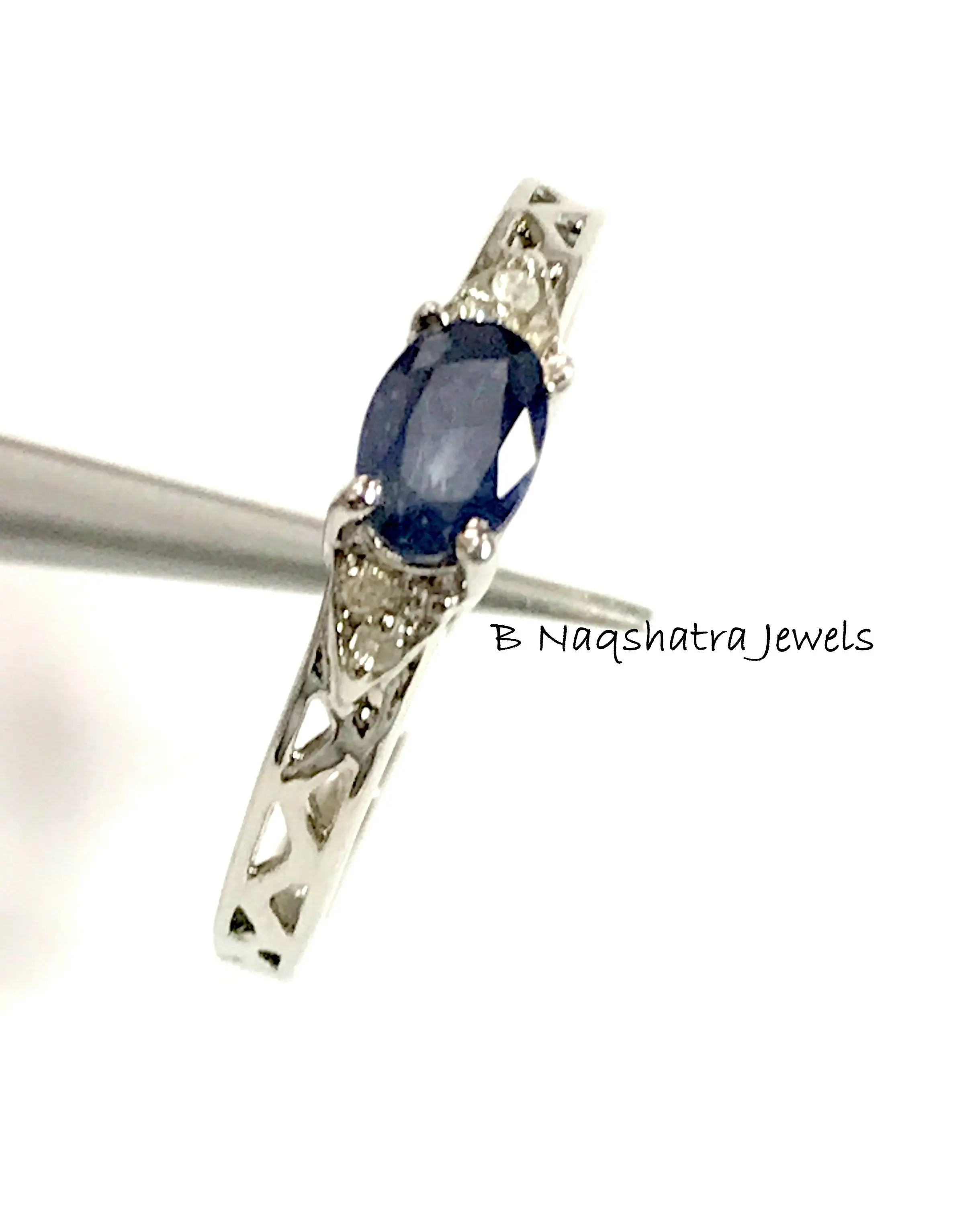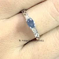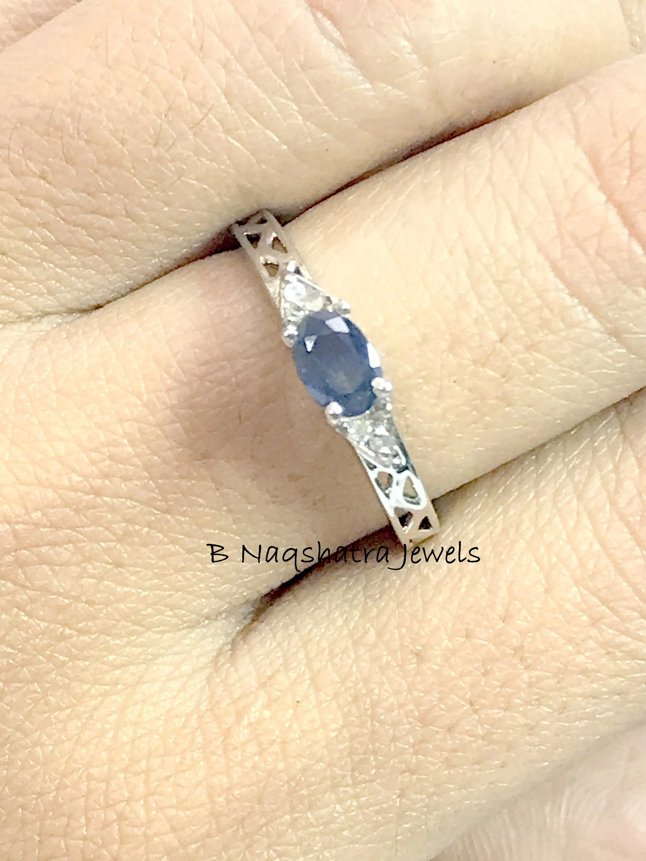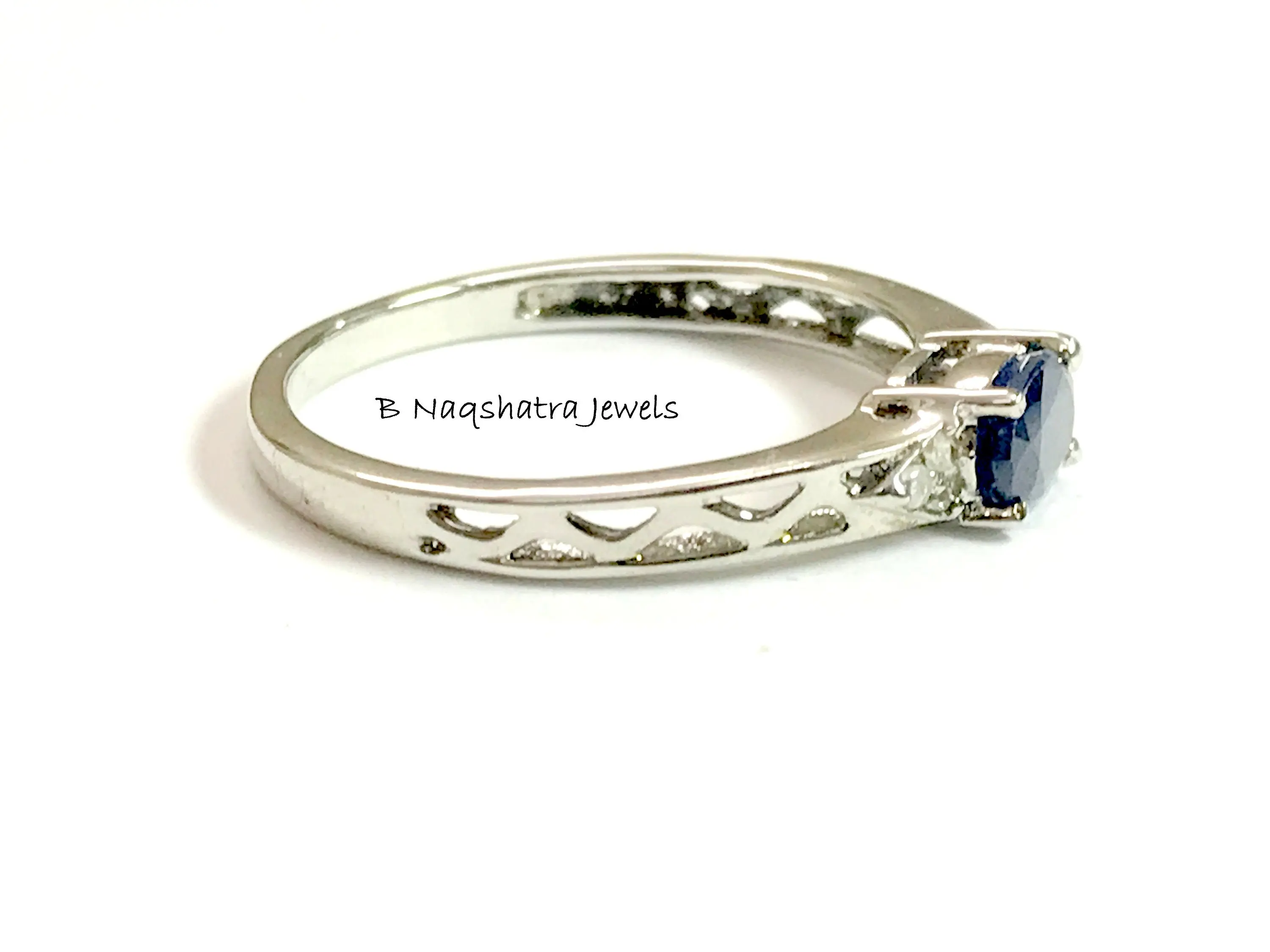 BLUE SAPPHIRE RING with single cut Diamonds ,September Birthstone Ring, small lovely wedding band , sapphire rings, Christmas special gift