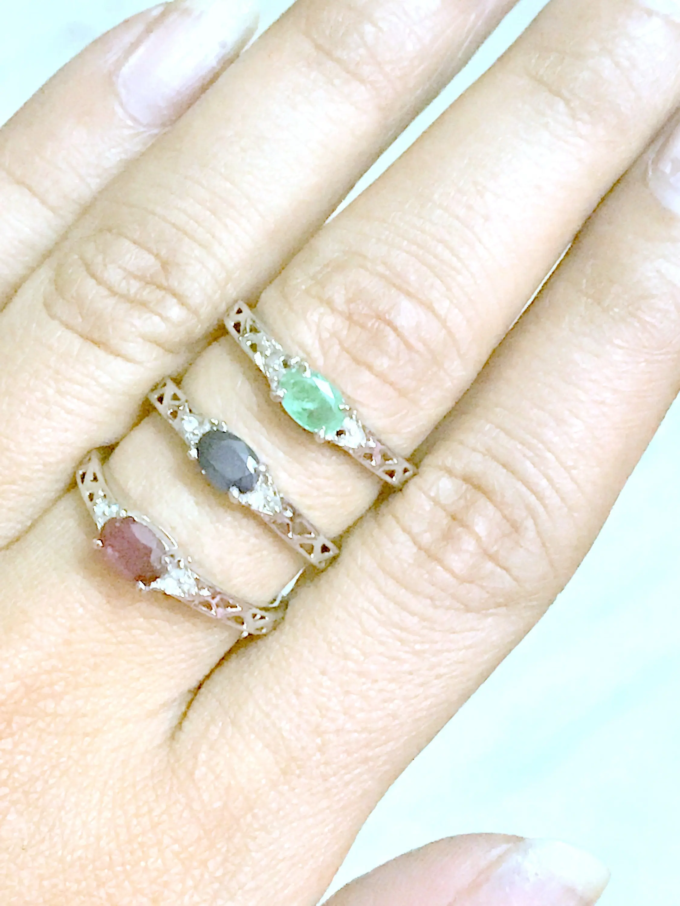 ✦Gemstone: Natural dark blue sapphires and single cut diamonds