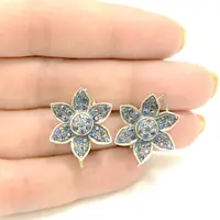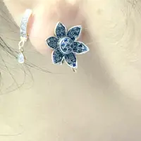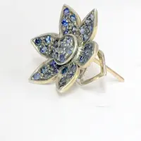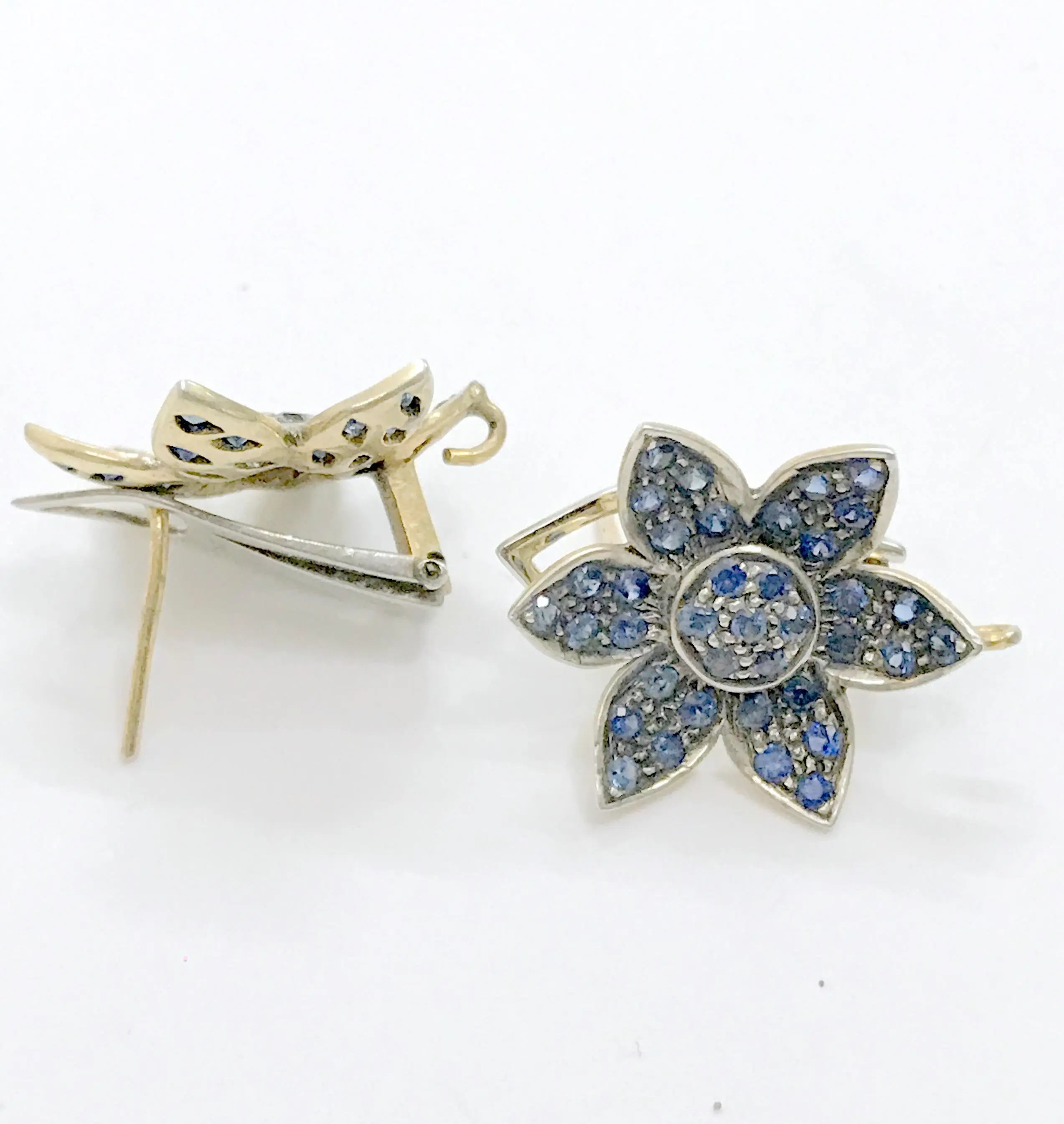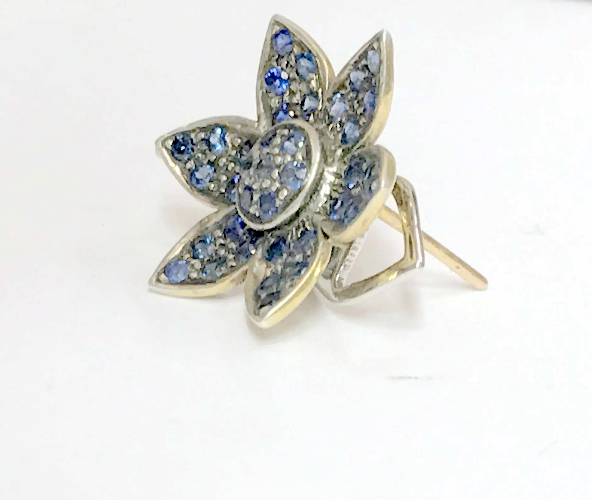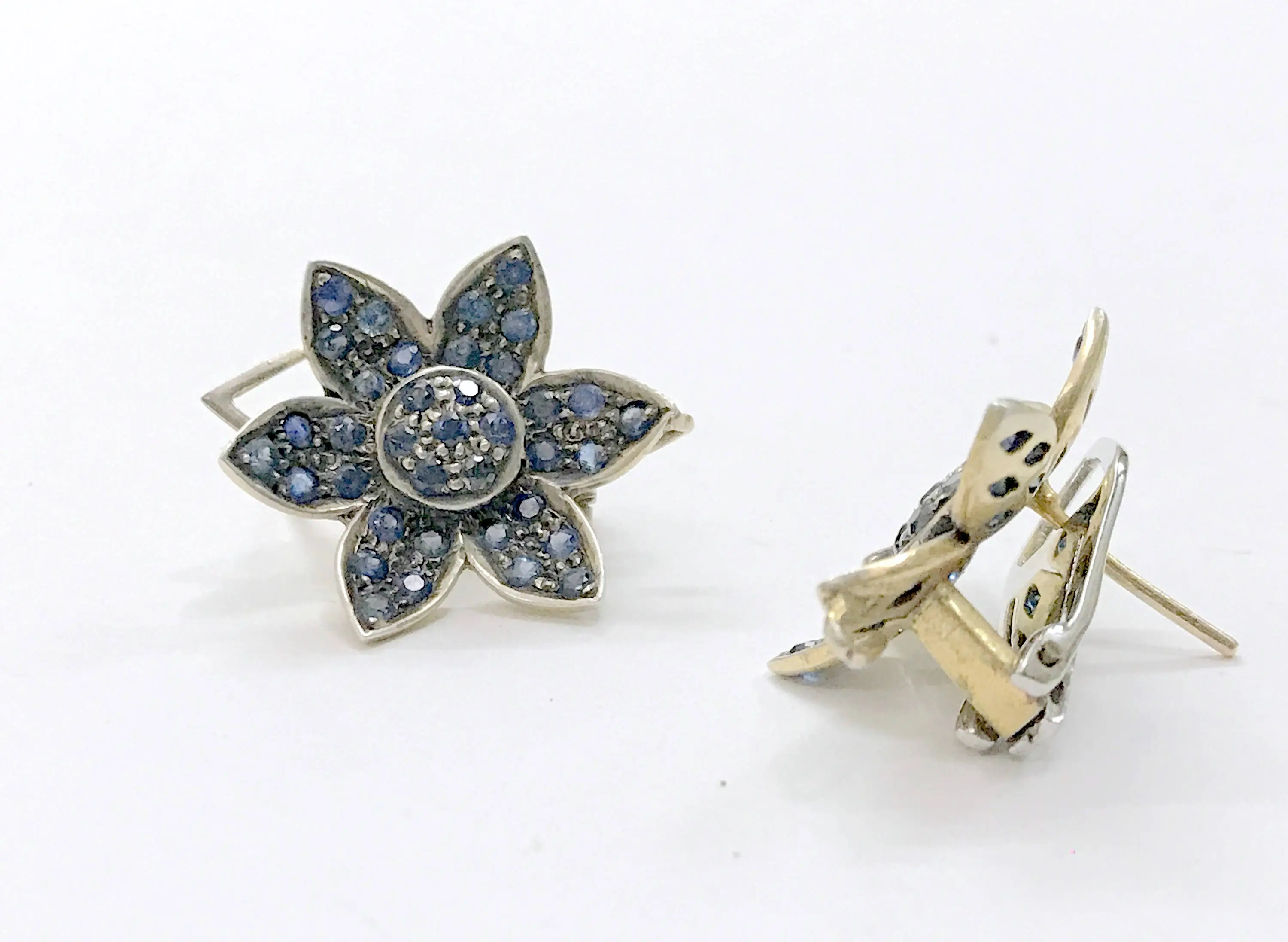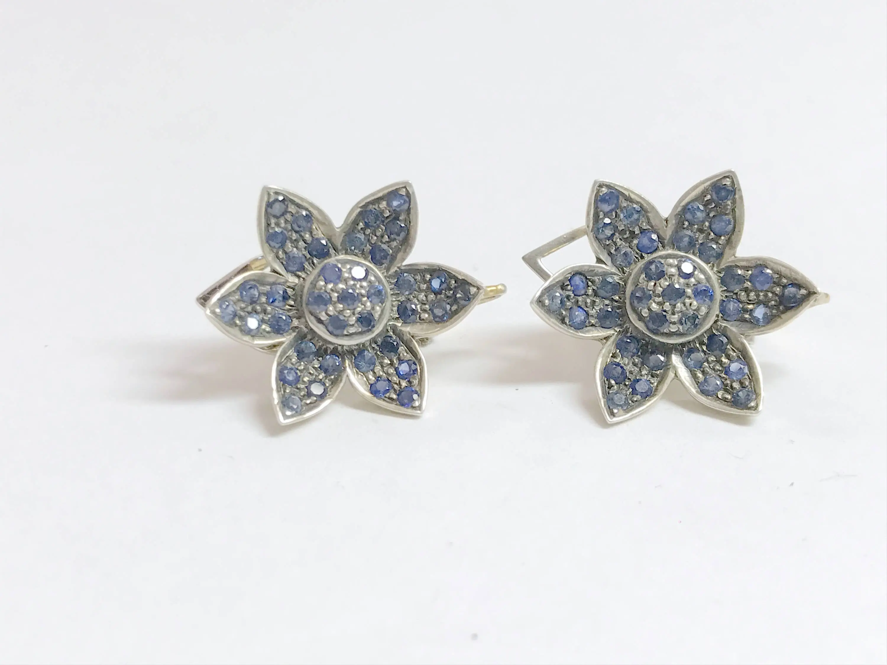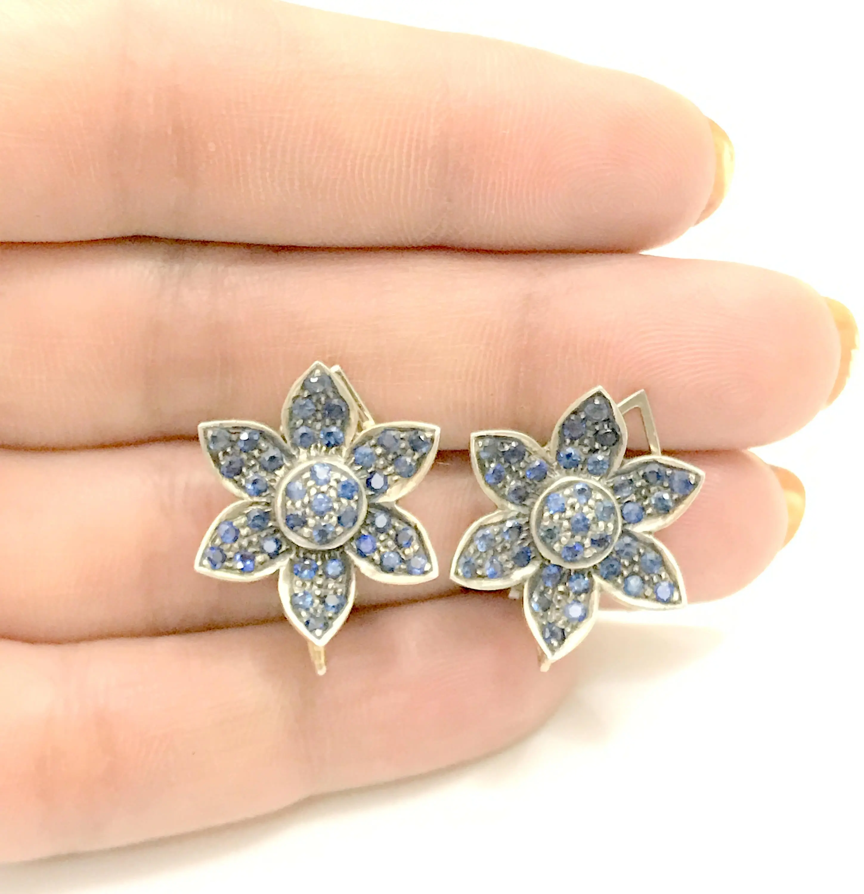 NATURAL BLUE SAPPHIRE clip on earrings, September birthstone ,blue flower petal design Cocktail earrings, gift for her