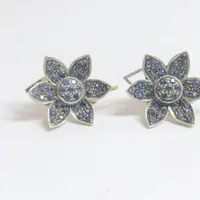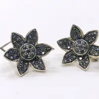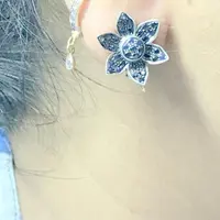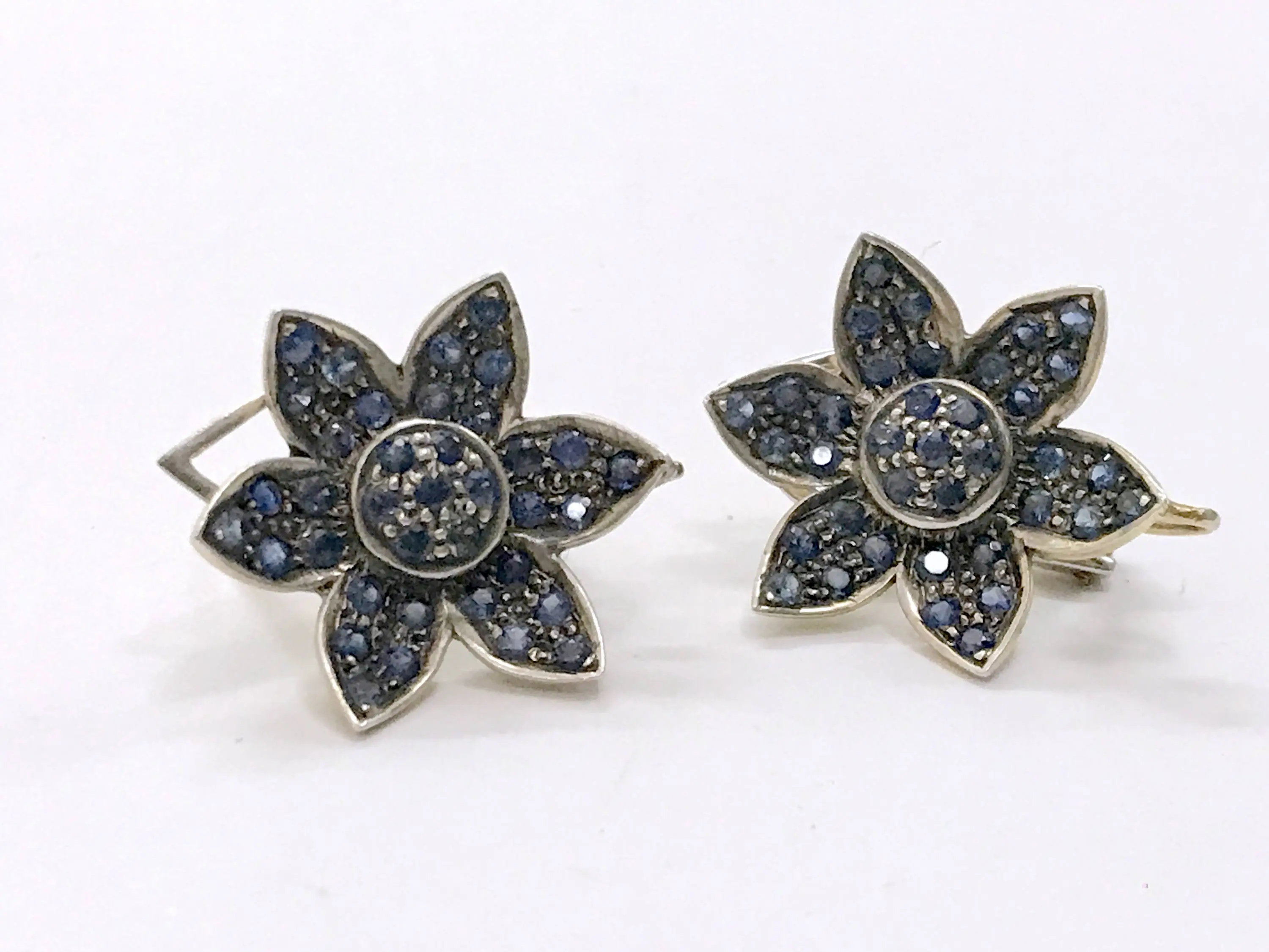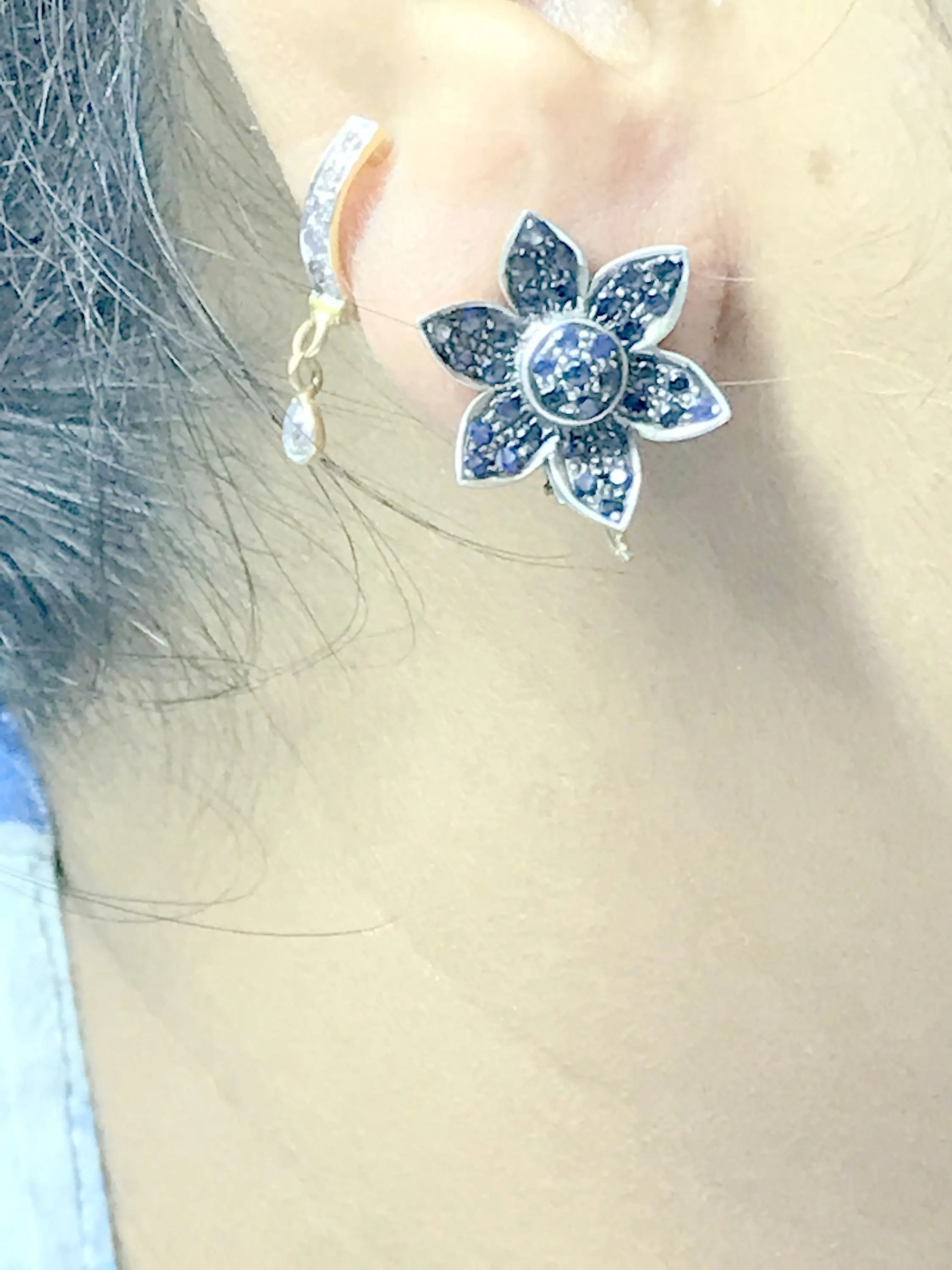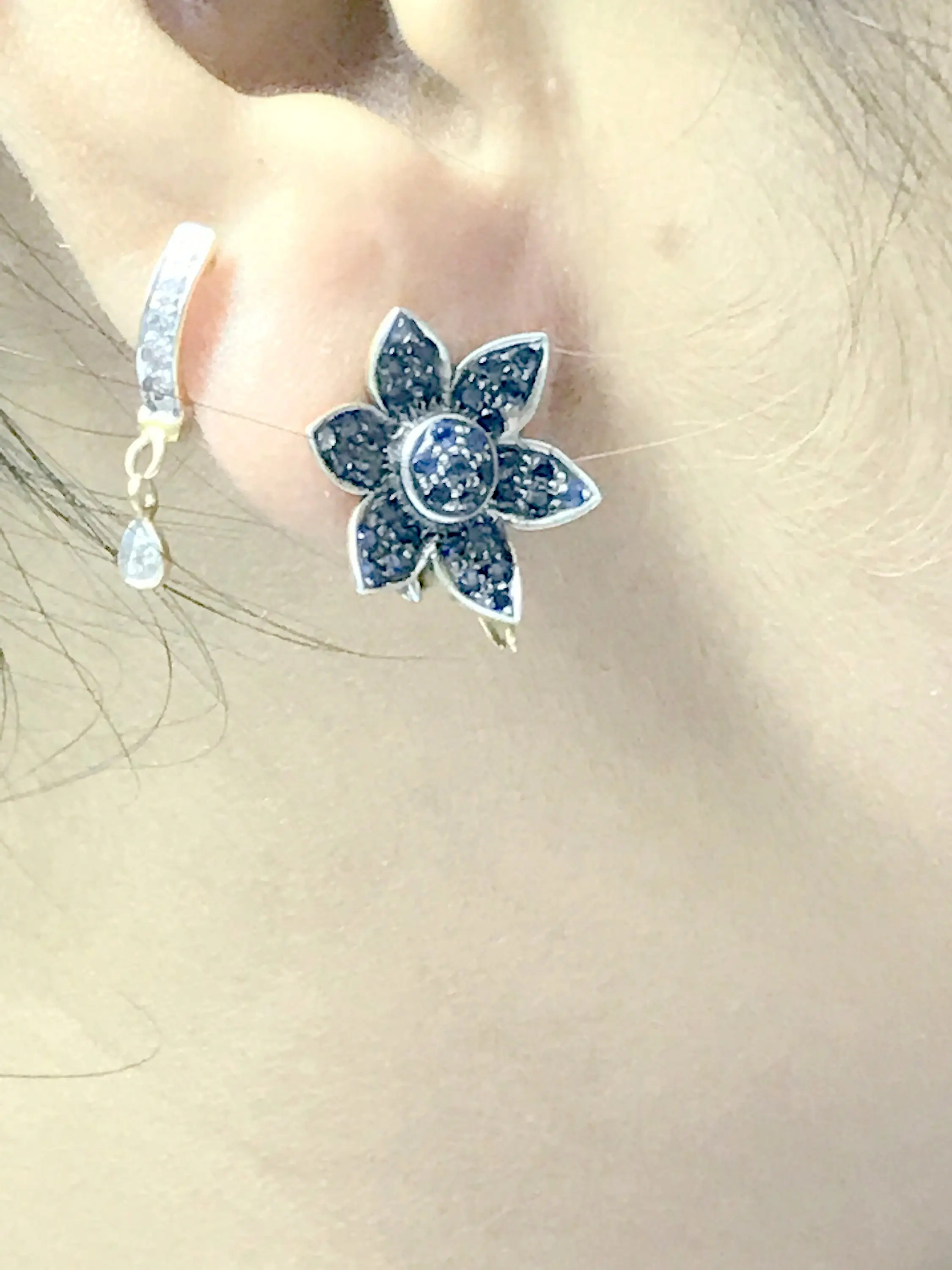 NATURAL BLUE SAPPHIRE clip on earrings, September birthstone , navy blue flower petal design earrings, best for party wear and gift for her