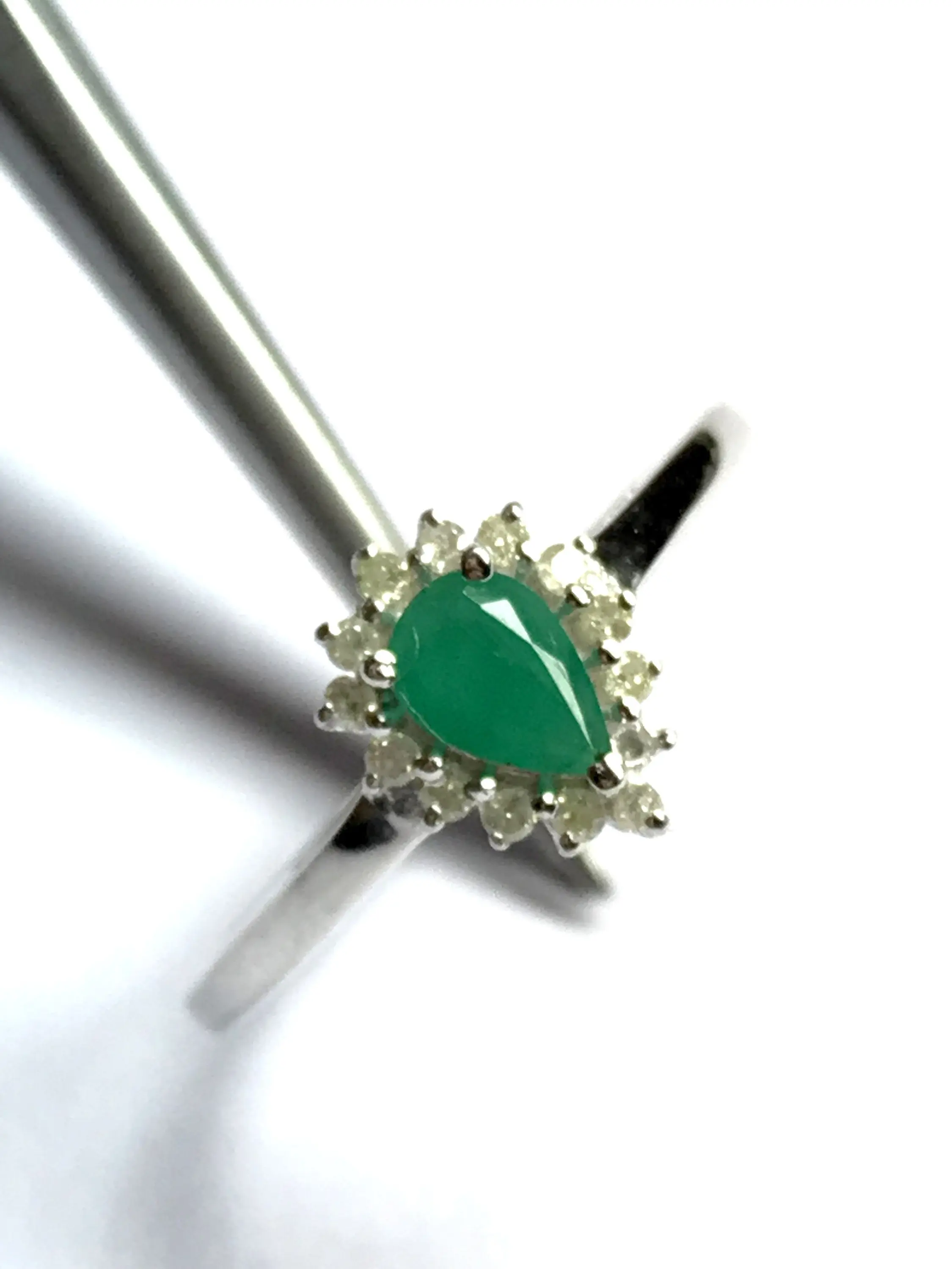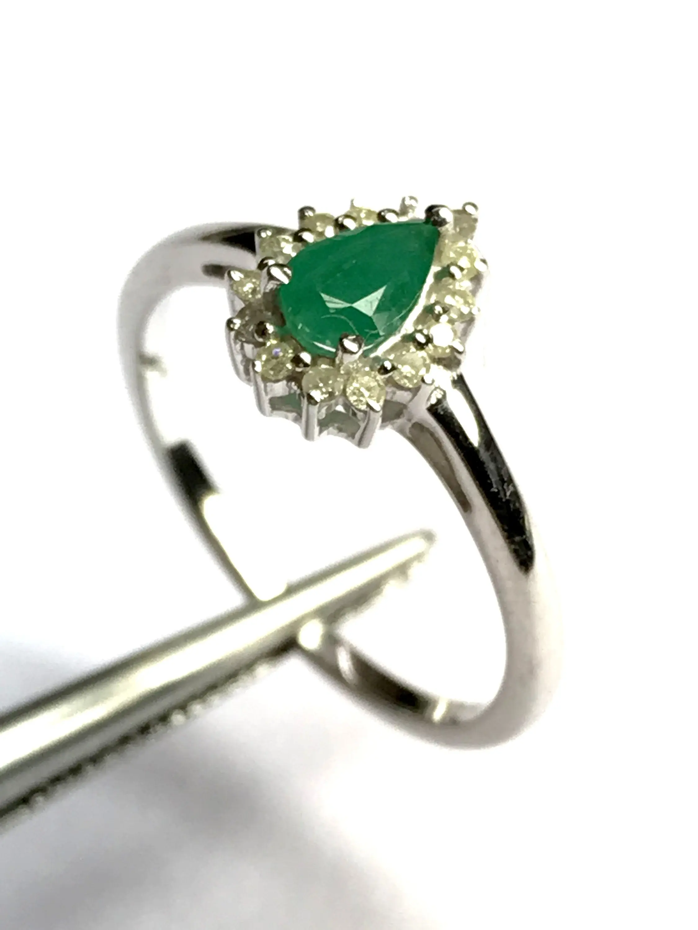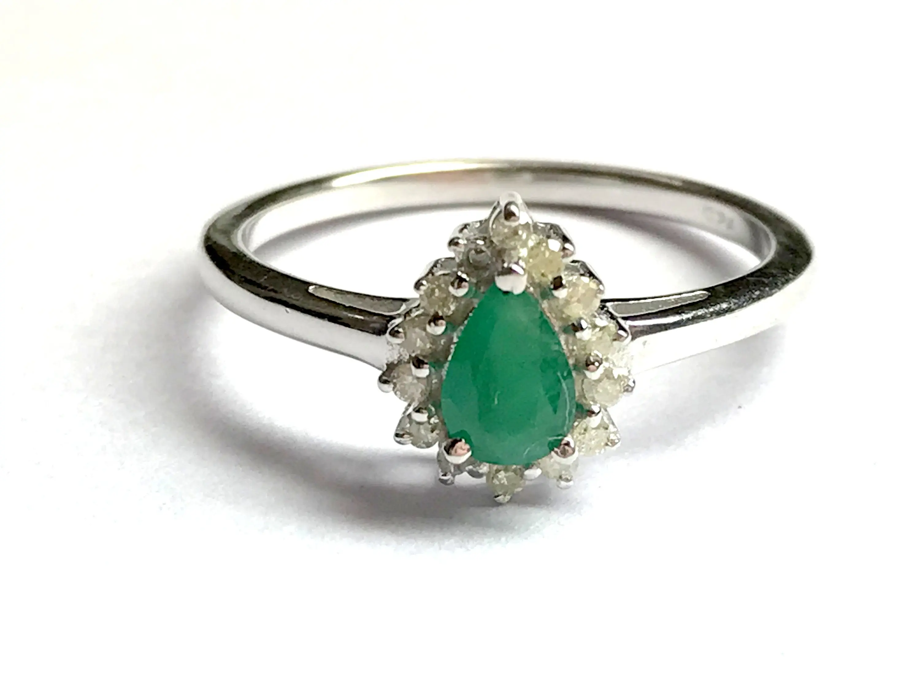 EMERALD DIAMOND RING, May birthstone , Halo Diamond Ring,emerald engagement ring, Pear emerald ring, antique emerald ring ,emerald jewellery