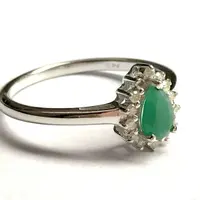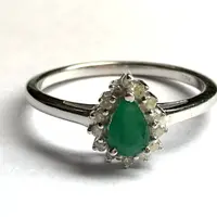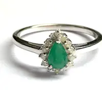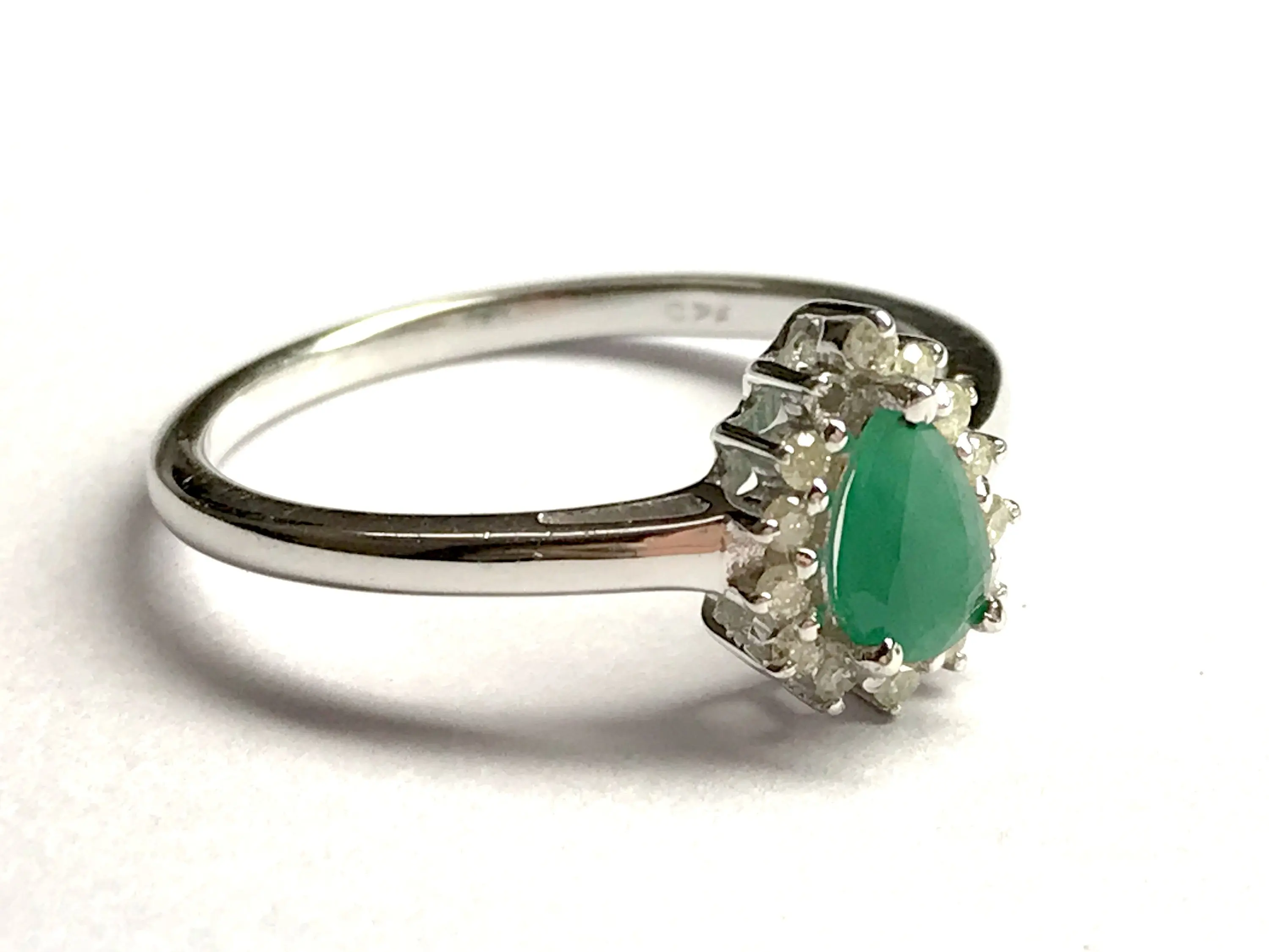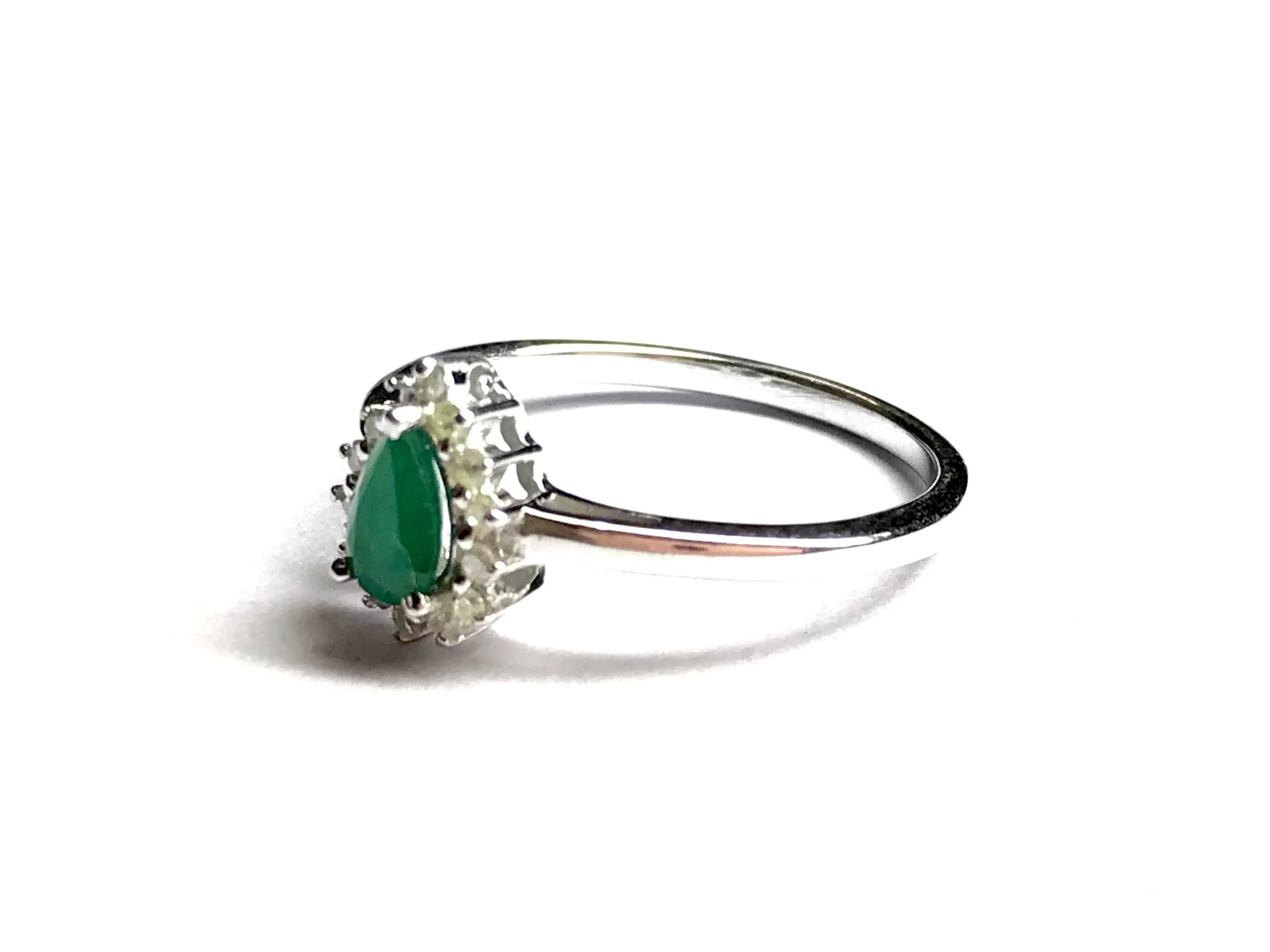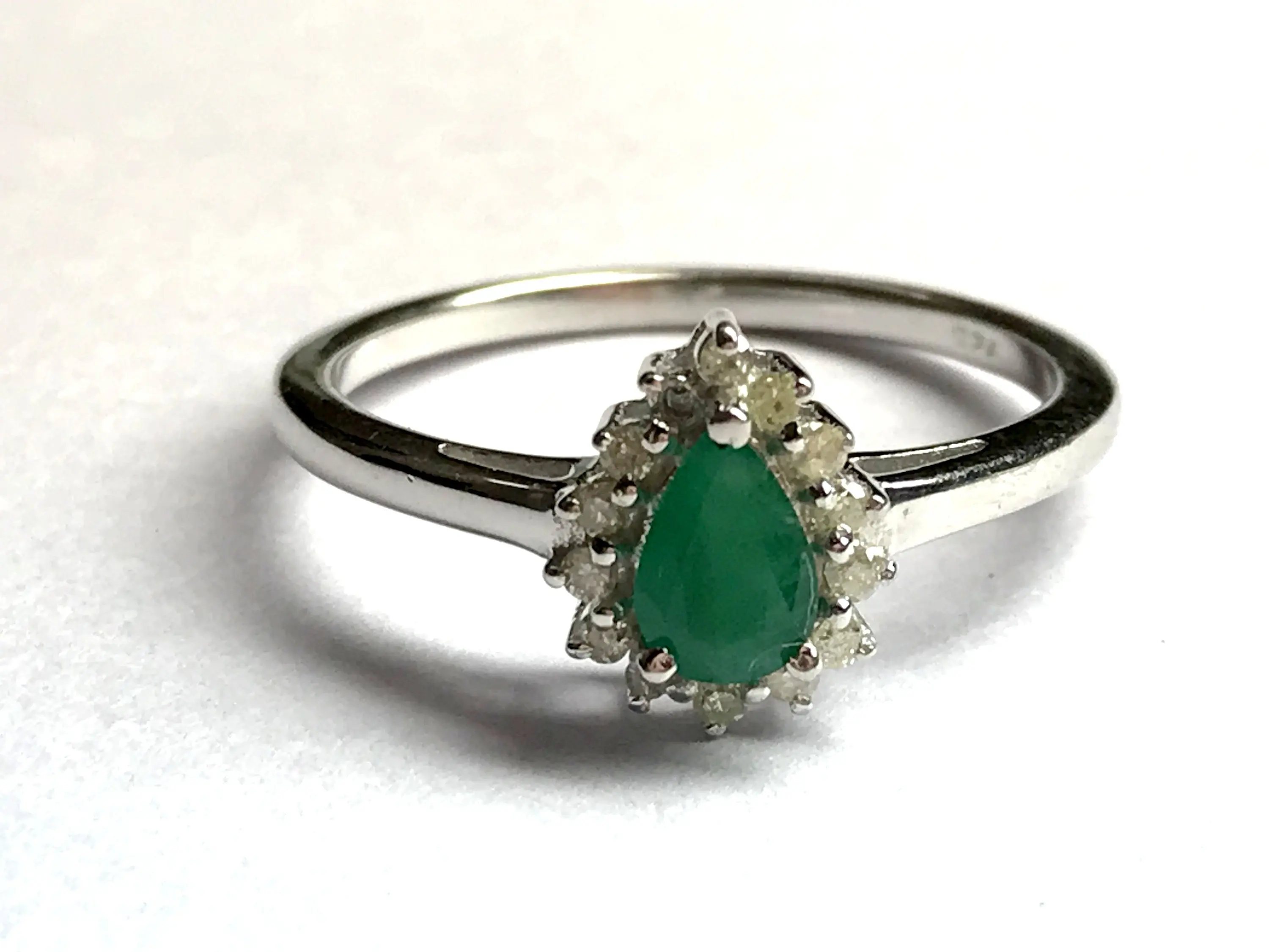 EMERALD DIAMOND RING, May birthstone , Halo Diamond Ring,emerald engagement ring, Pear emerald ring, antique emerald ring ,emerald jewellery