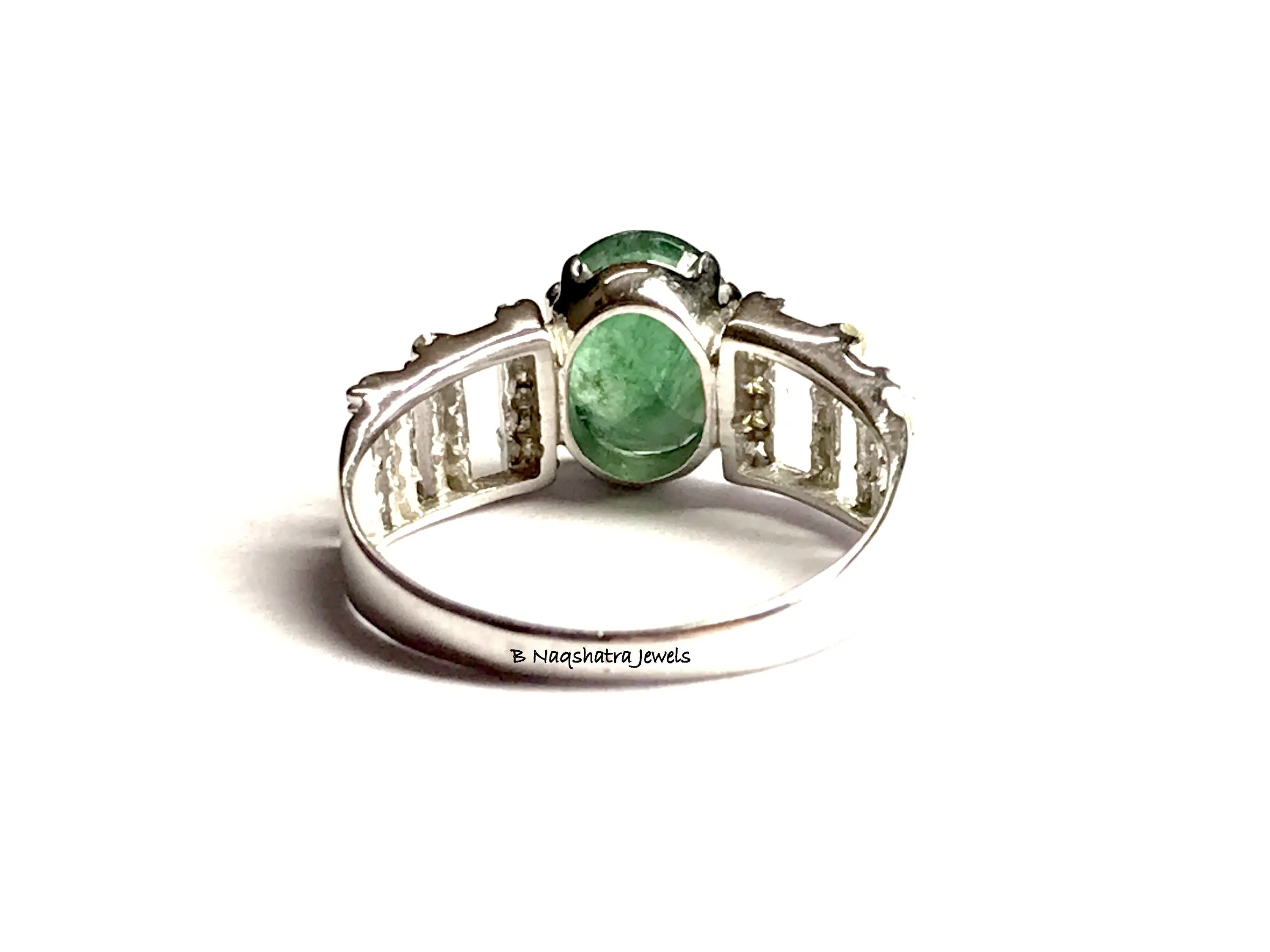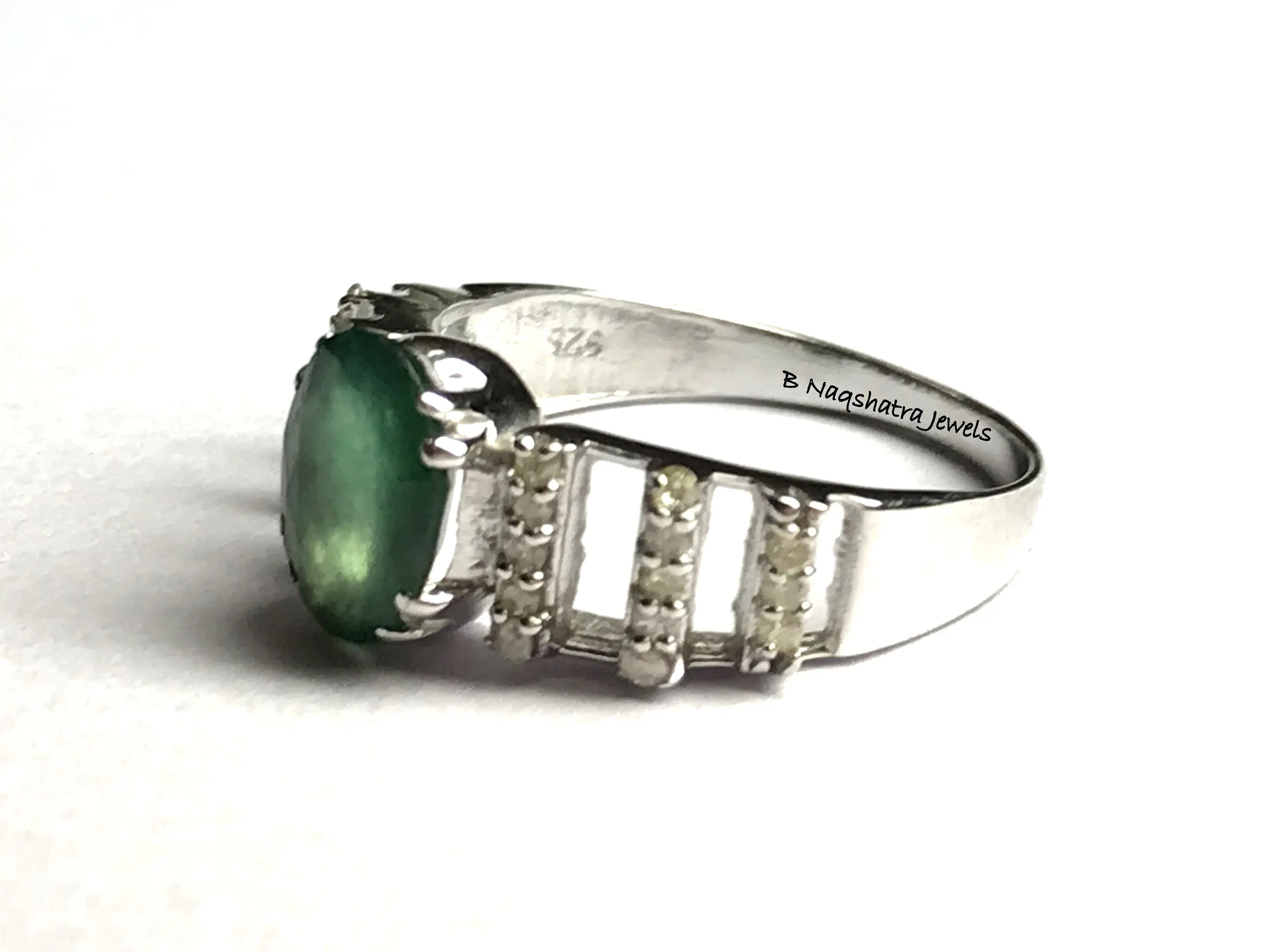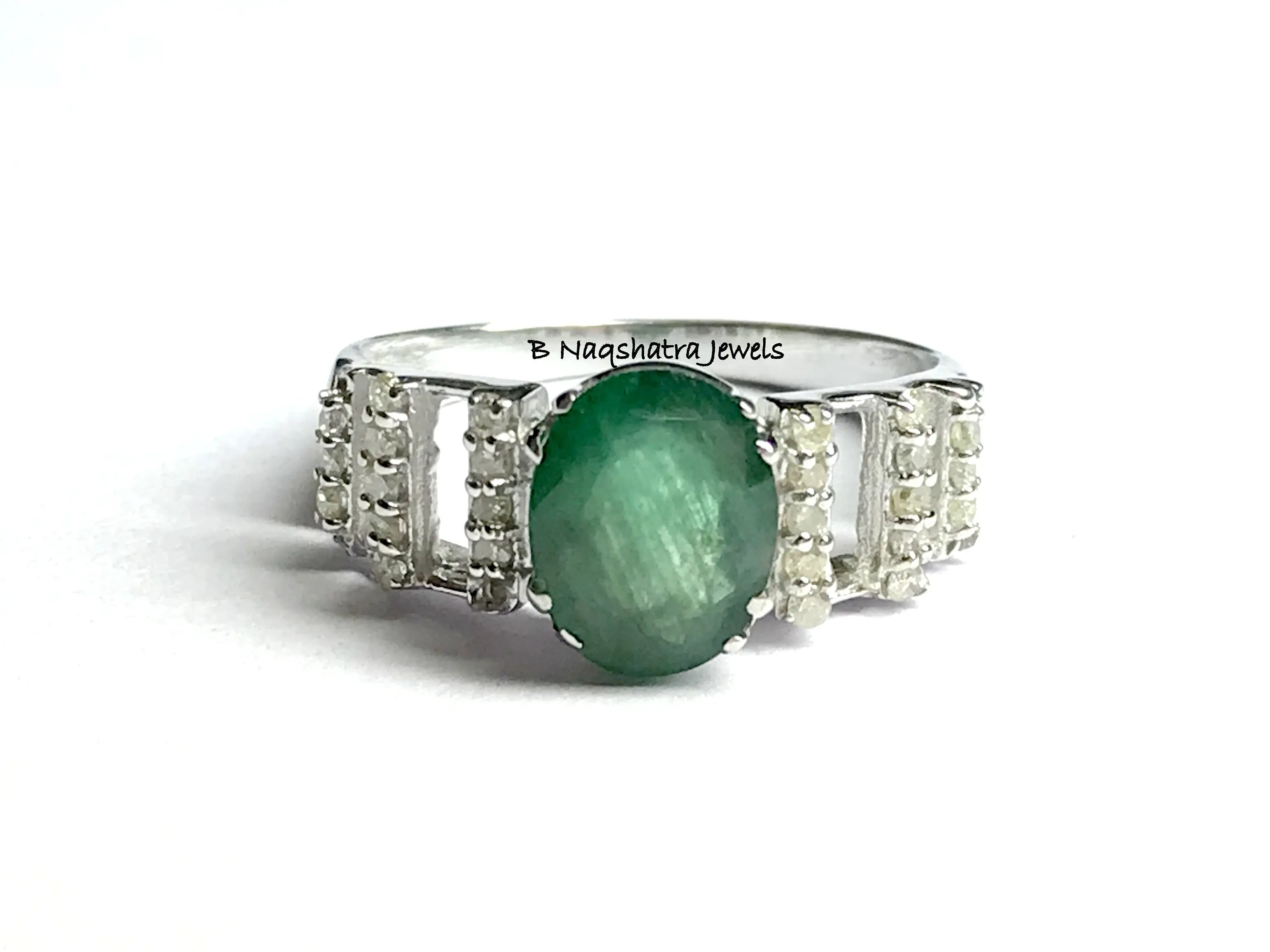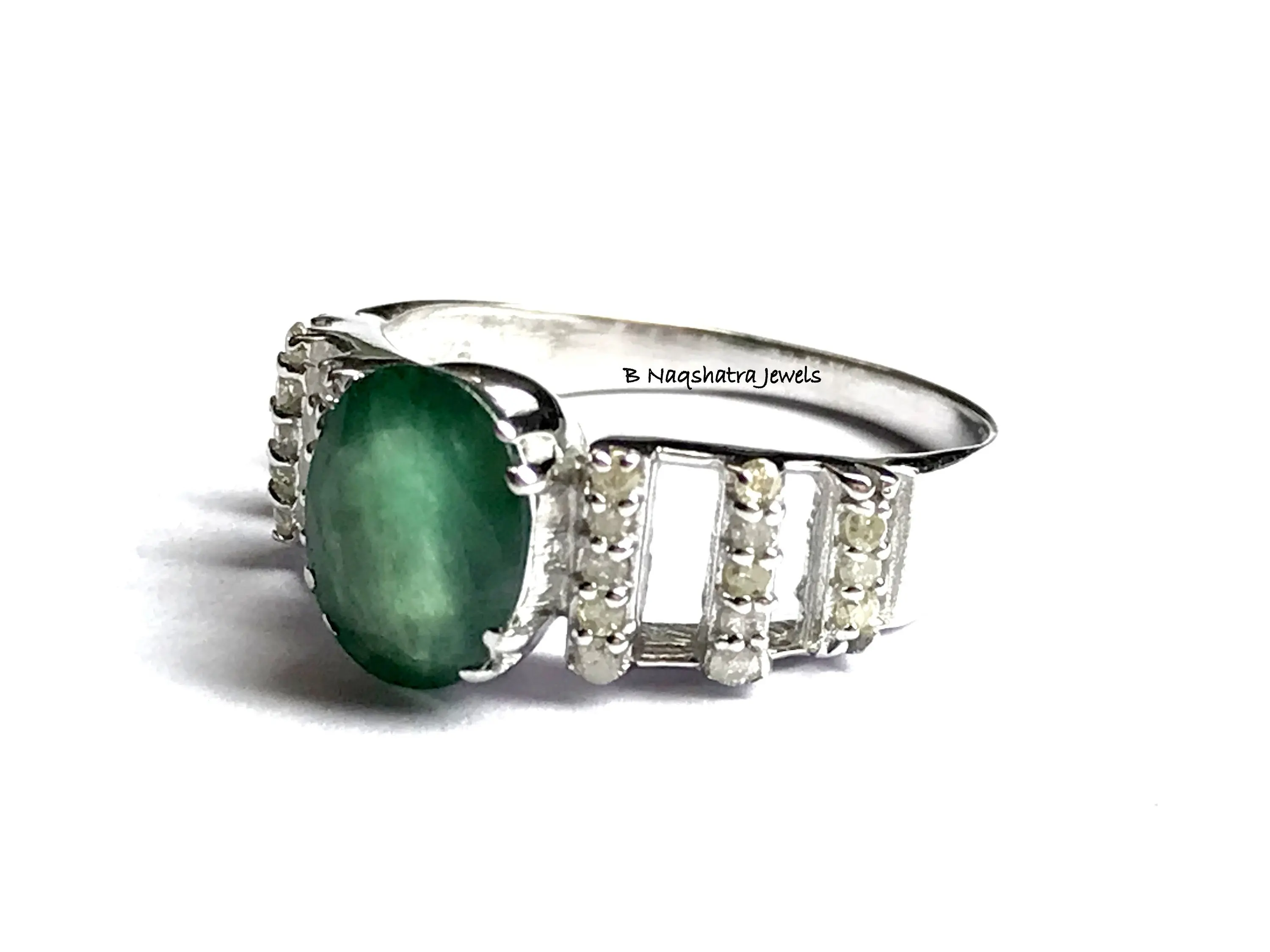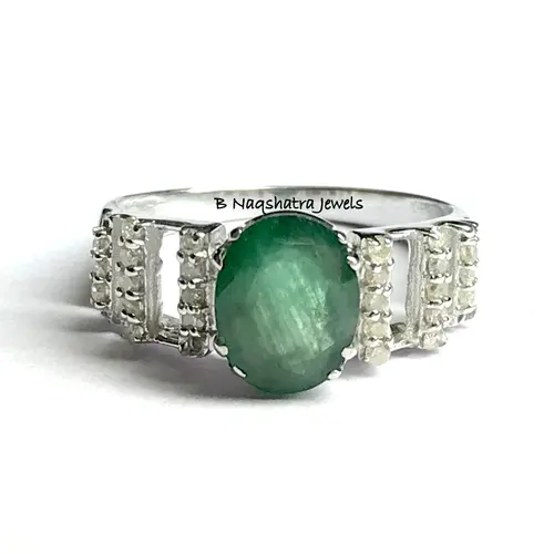 NATURAL EMERALD DIAMONDS Engagement Ring , 925 Sterling silver , Emerald Cut oval Shape , Emerald Anniversary gift