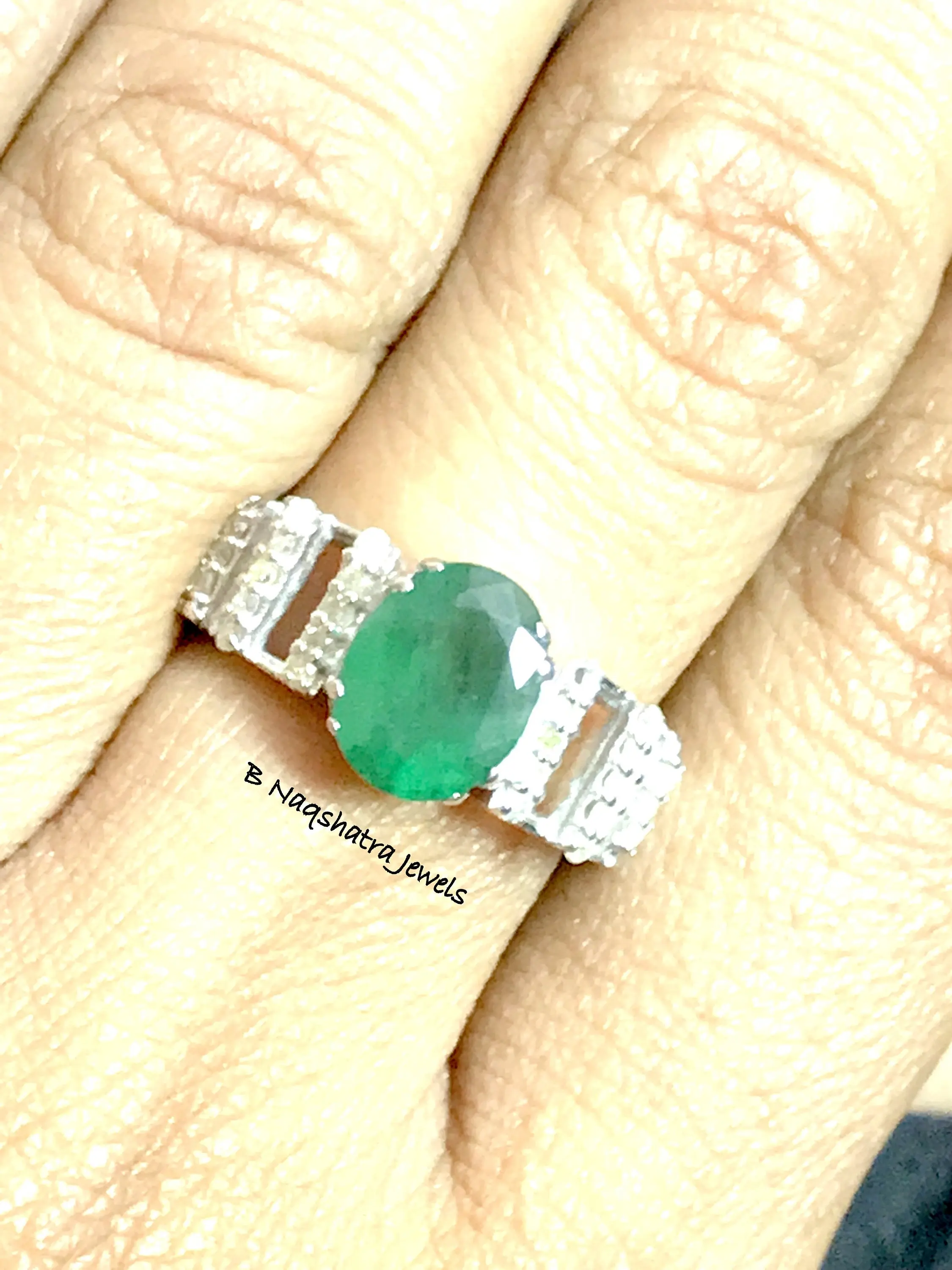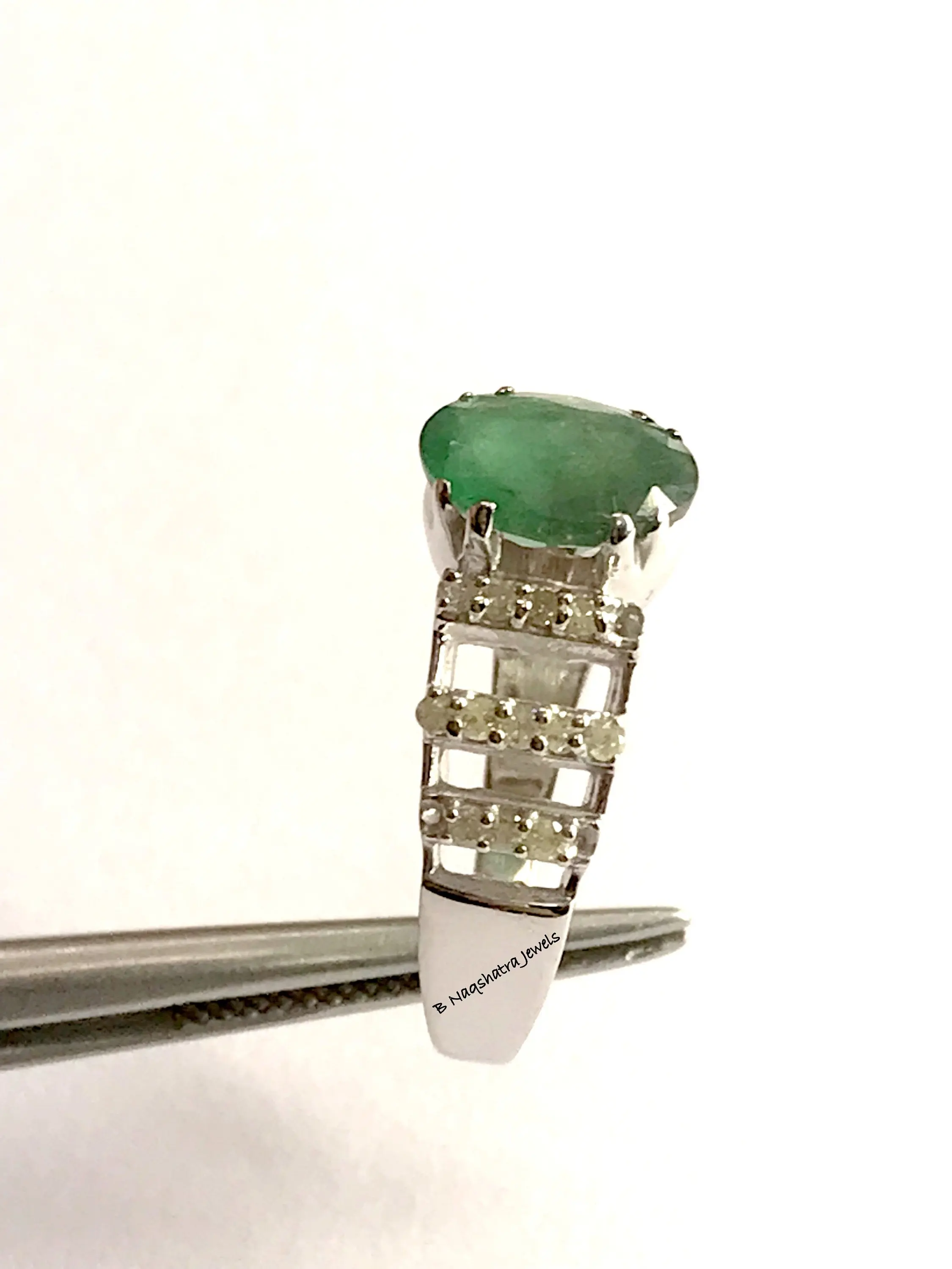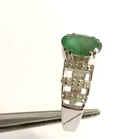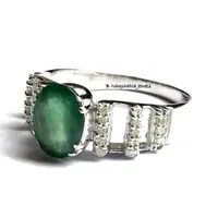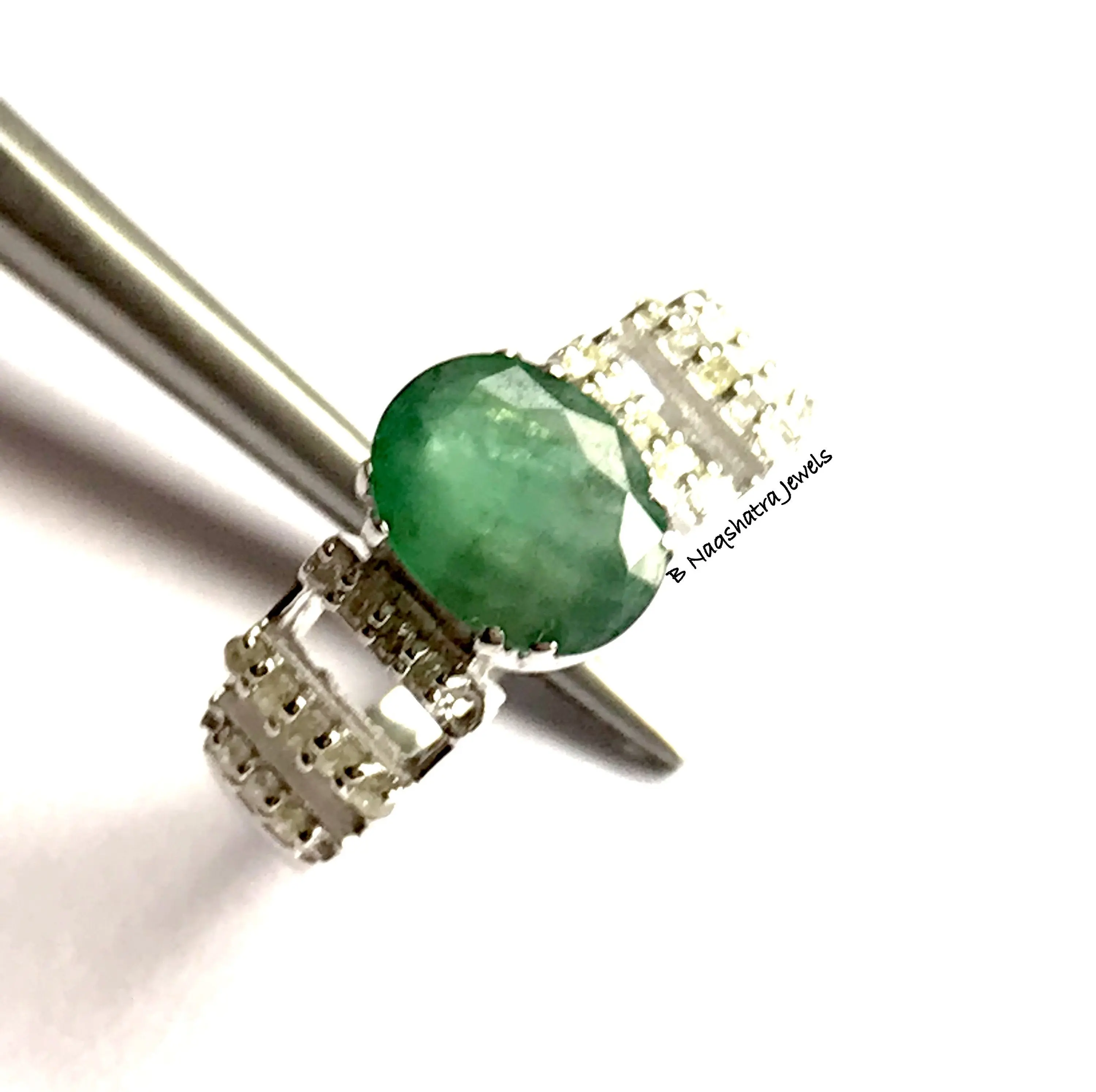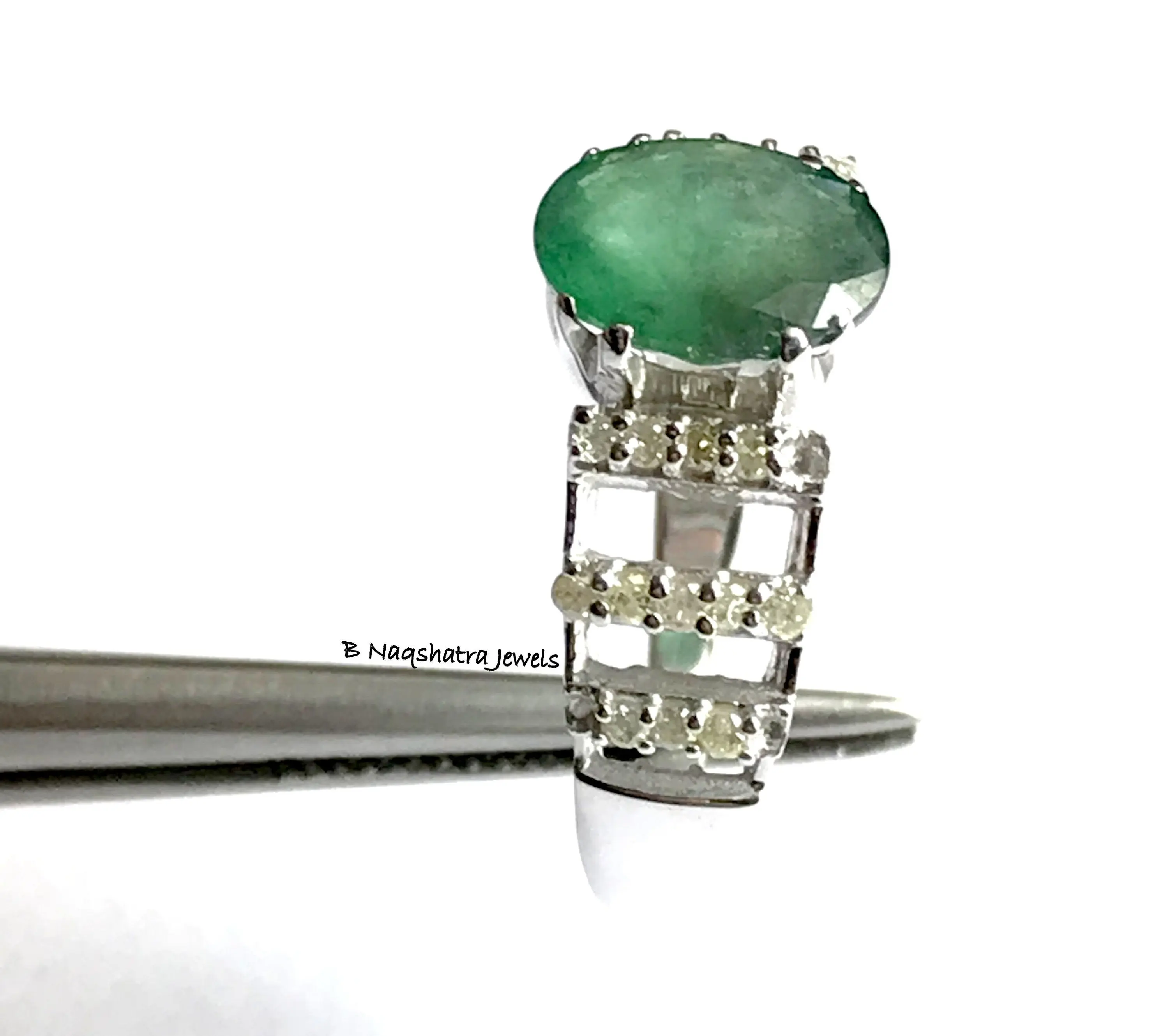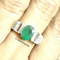 feminine ring with a lovely oval faceted natural emerald diamond ring .........