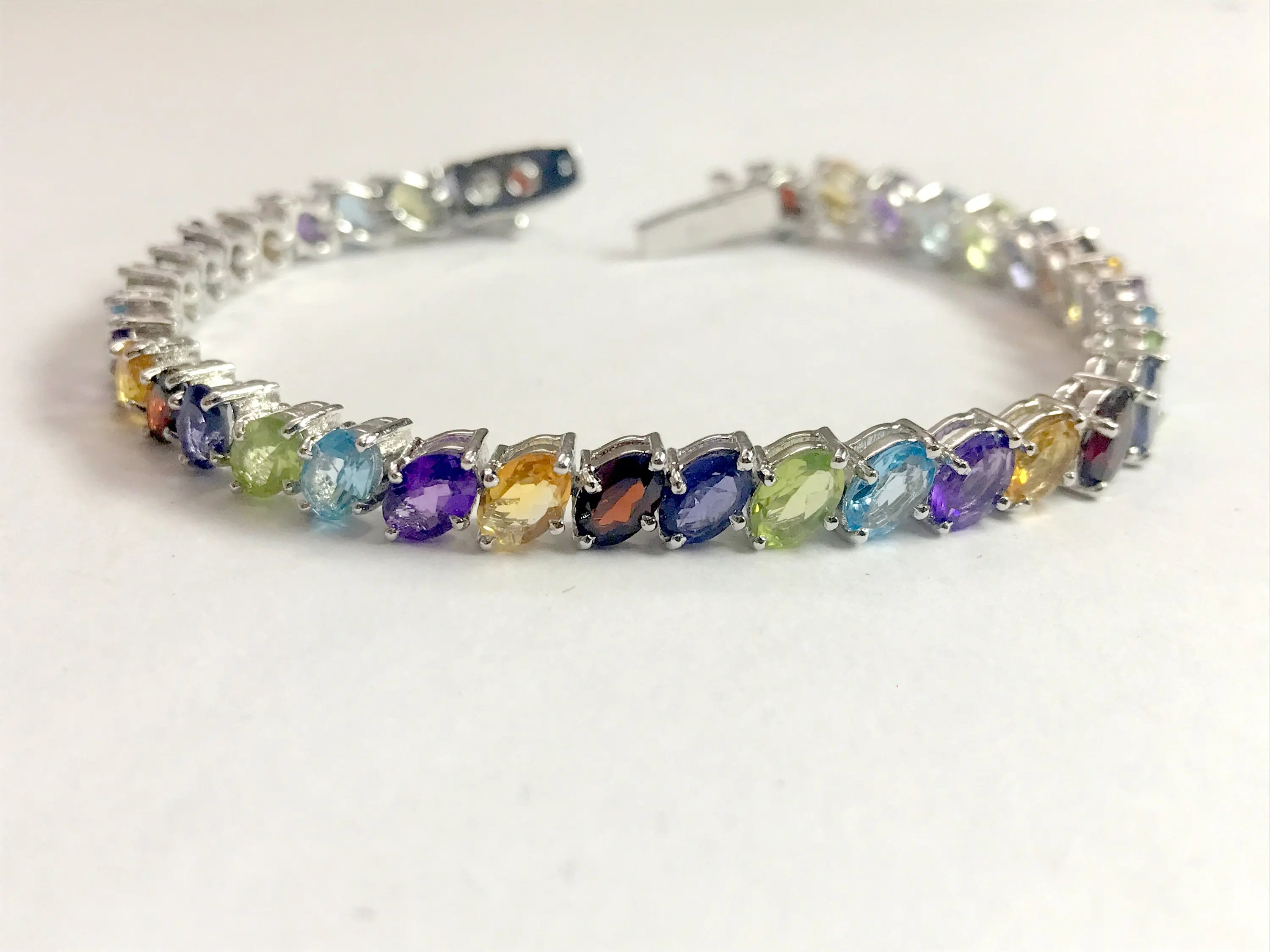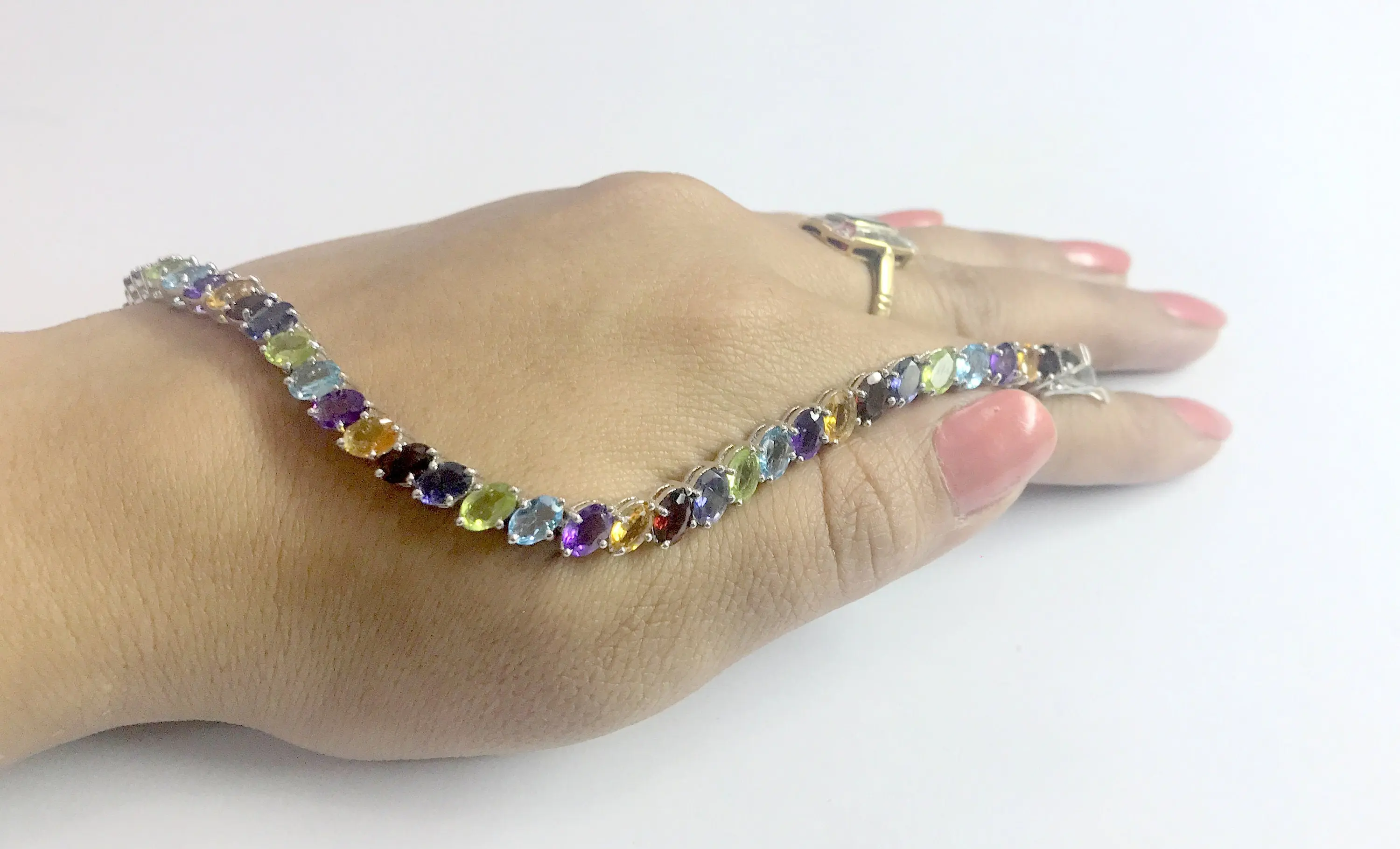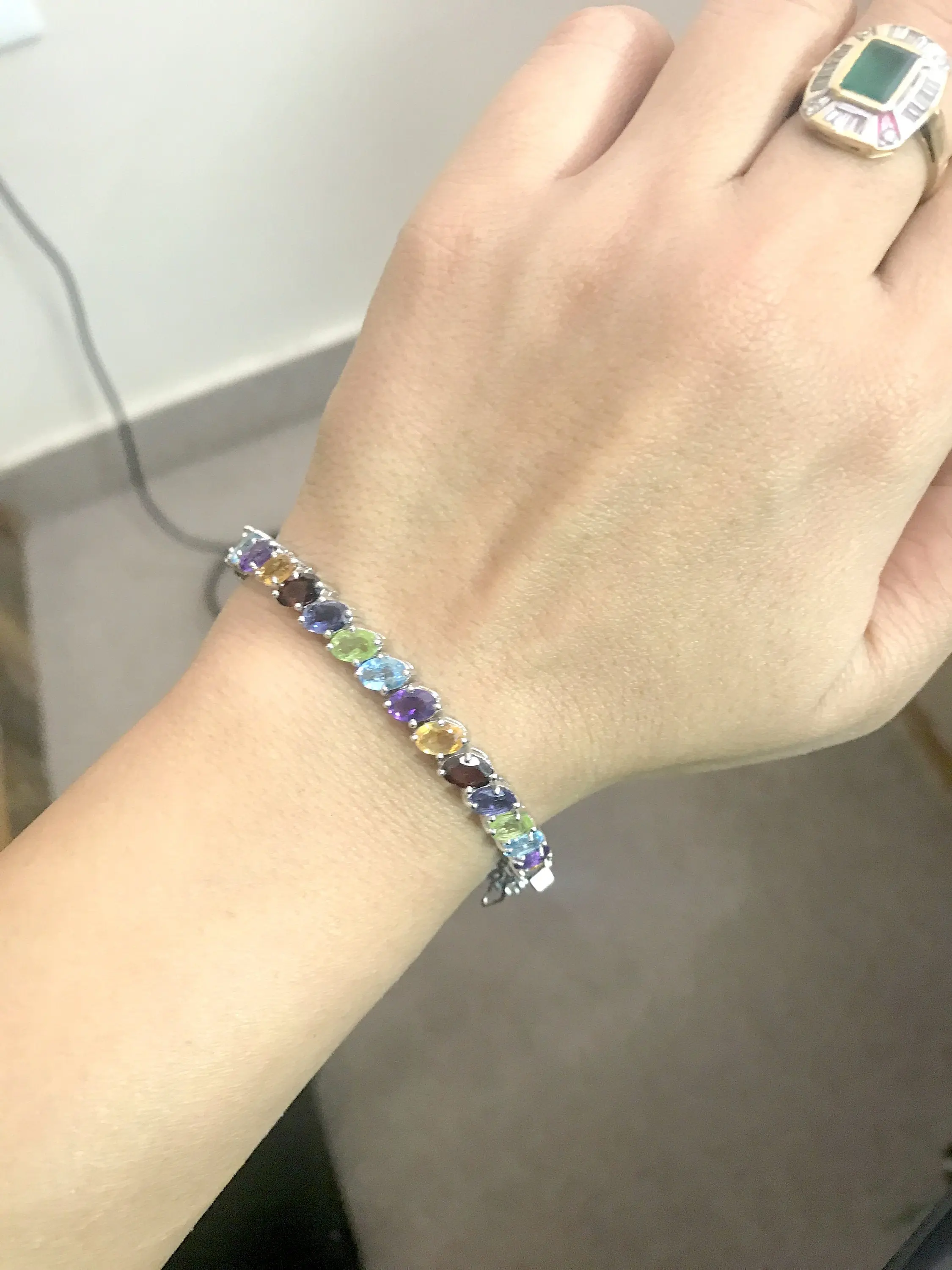 7.25 inches MULTI STONE BRACELET , single line Bracelet , 925 sterling silver , Wedding Collection , Bridal Gift .......