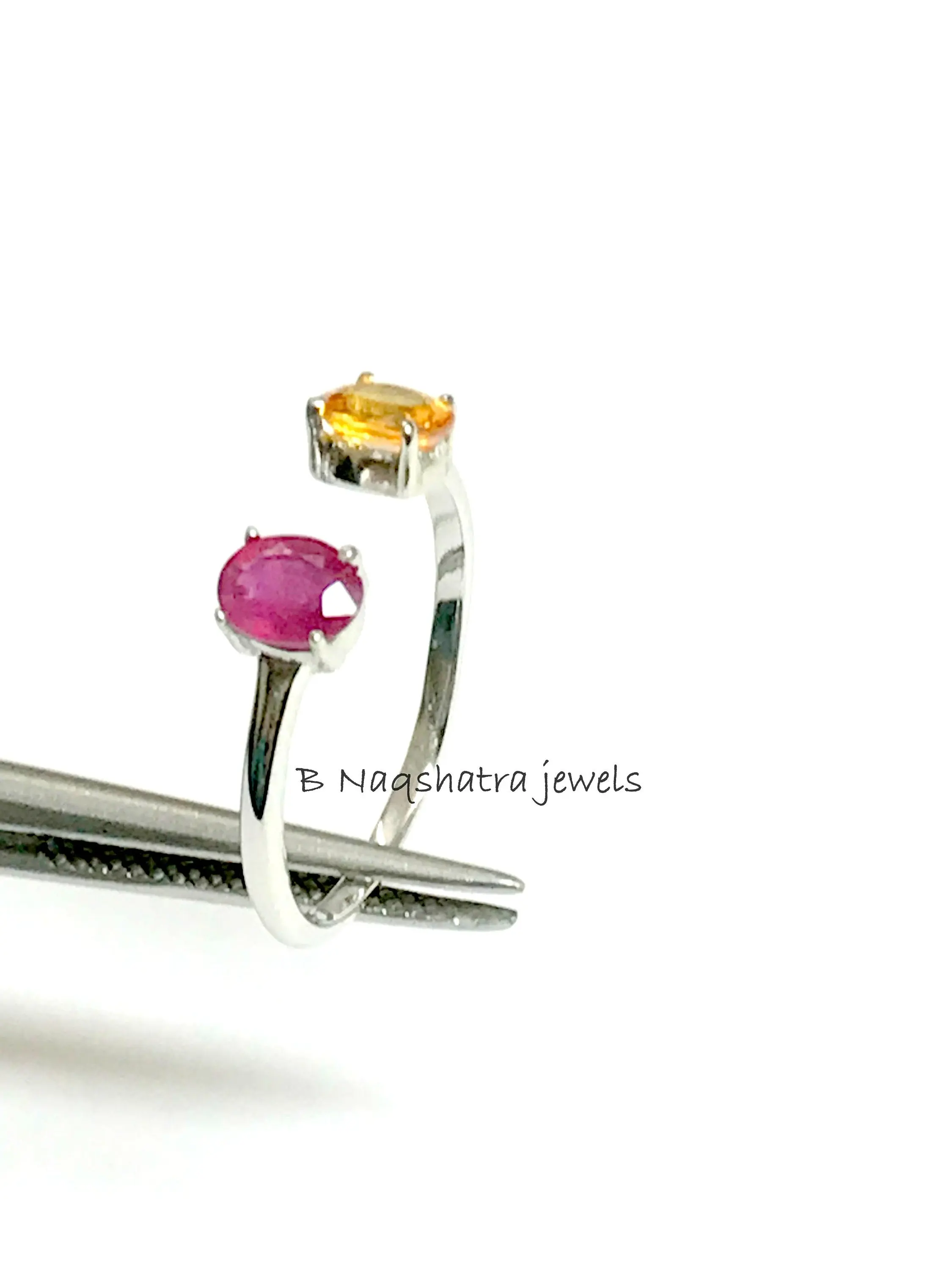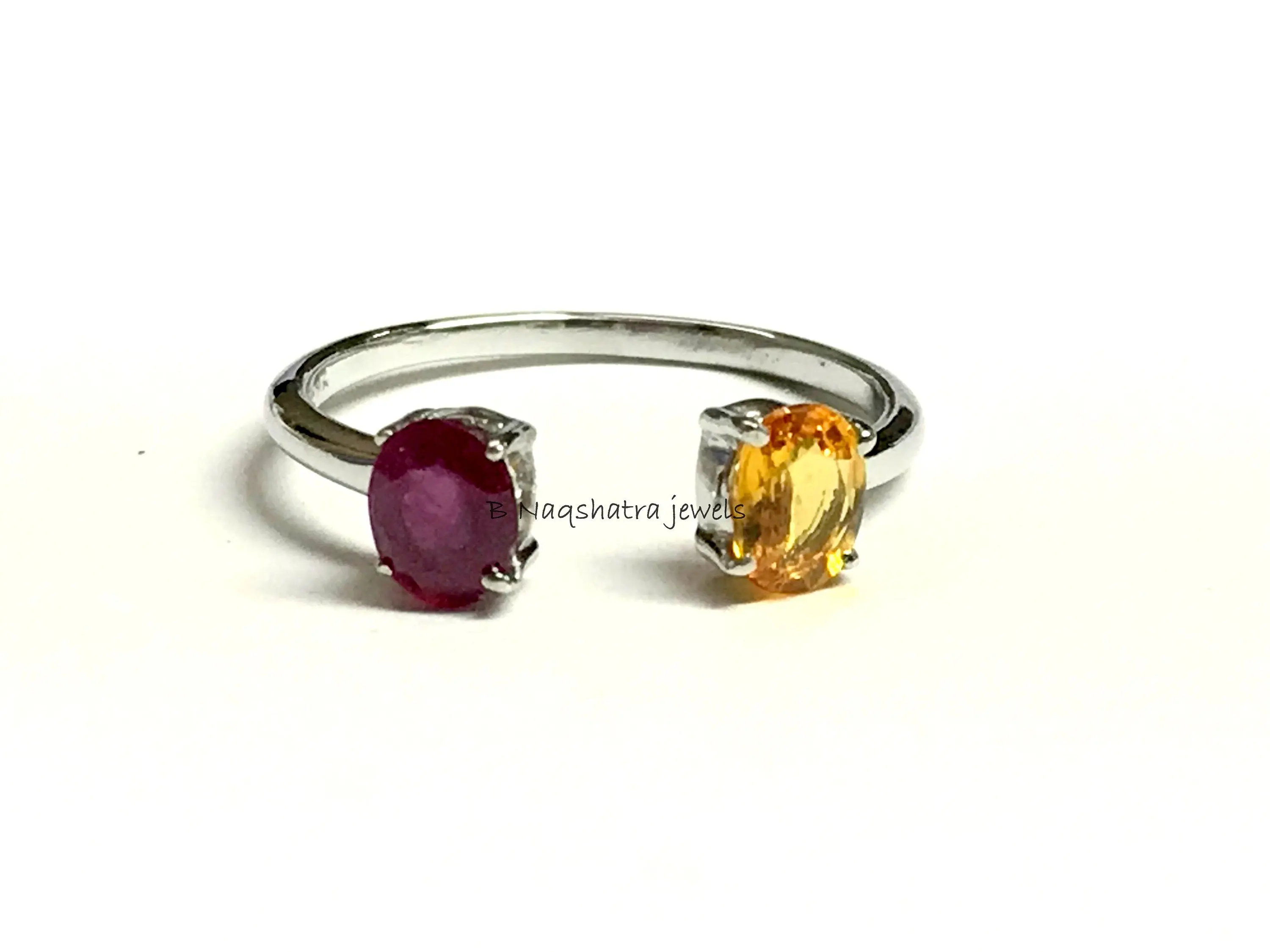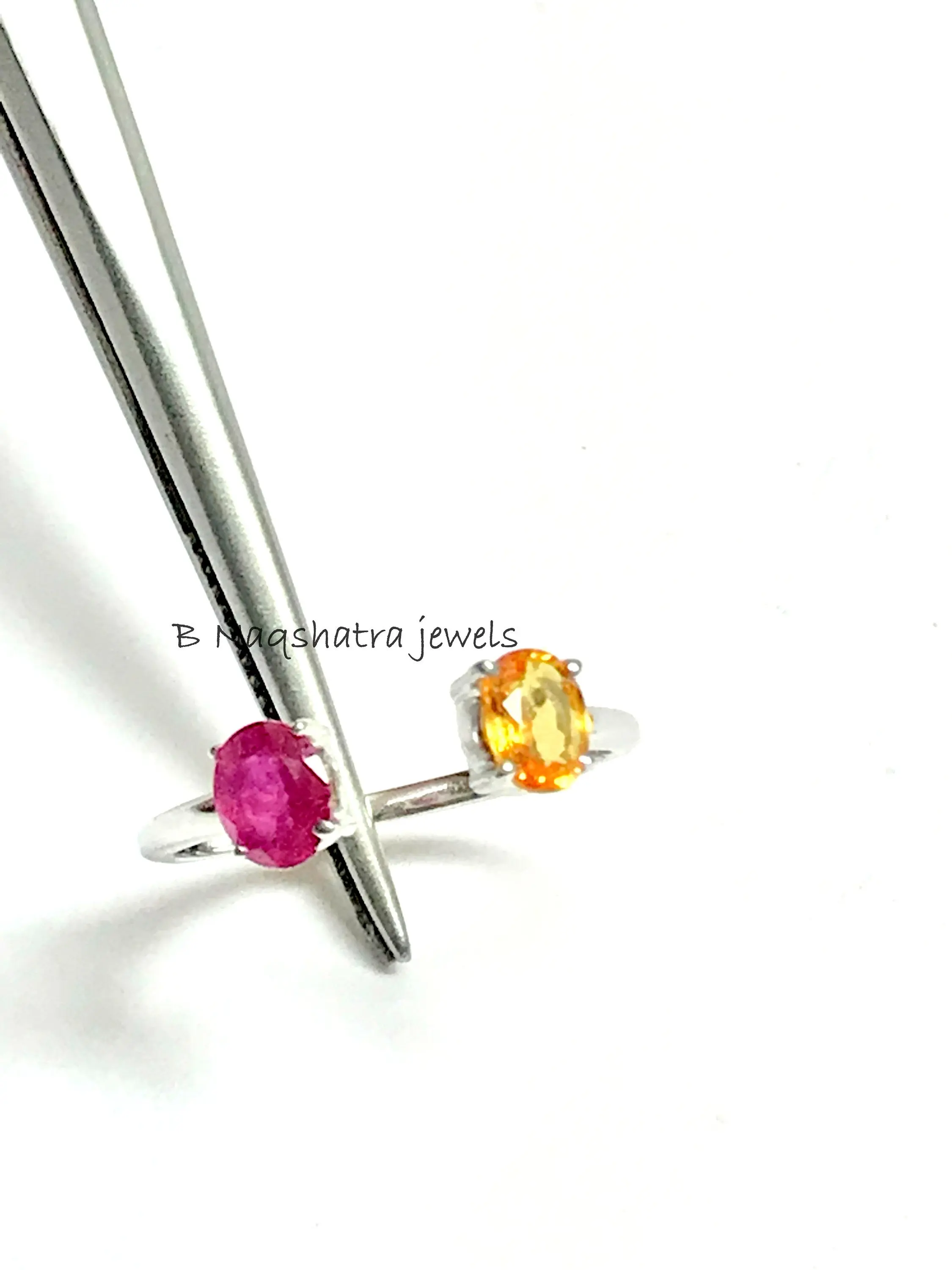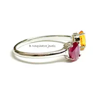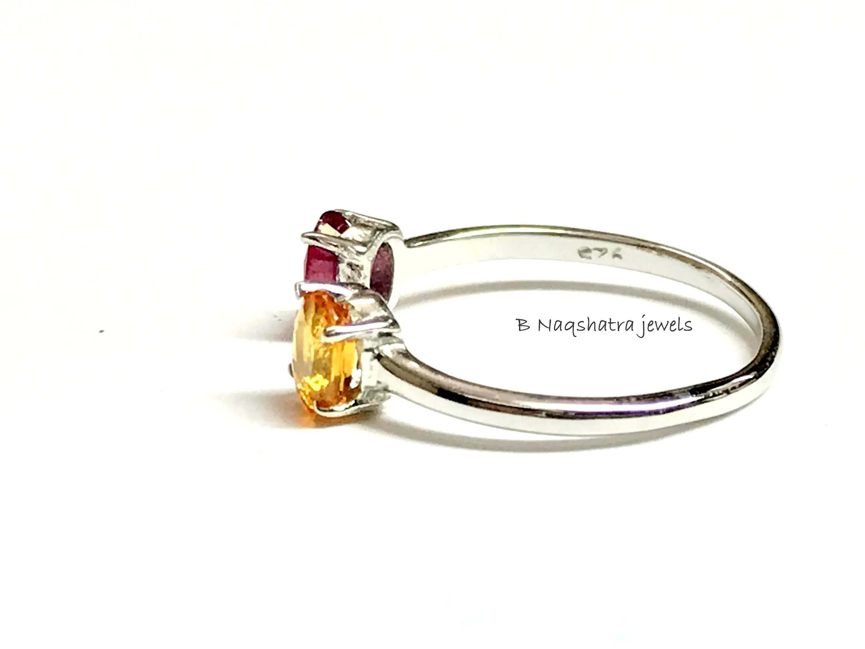 RUBY YELLOW SAPPHIRE Dainty Silver Ring , Red Ruby ,sapphires , Tiny gemstones , Best Gift For loved Ones .............